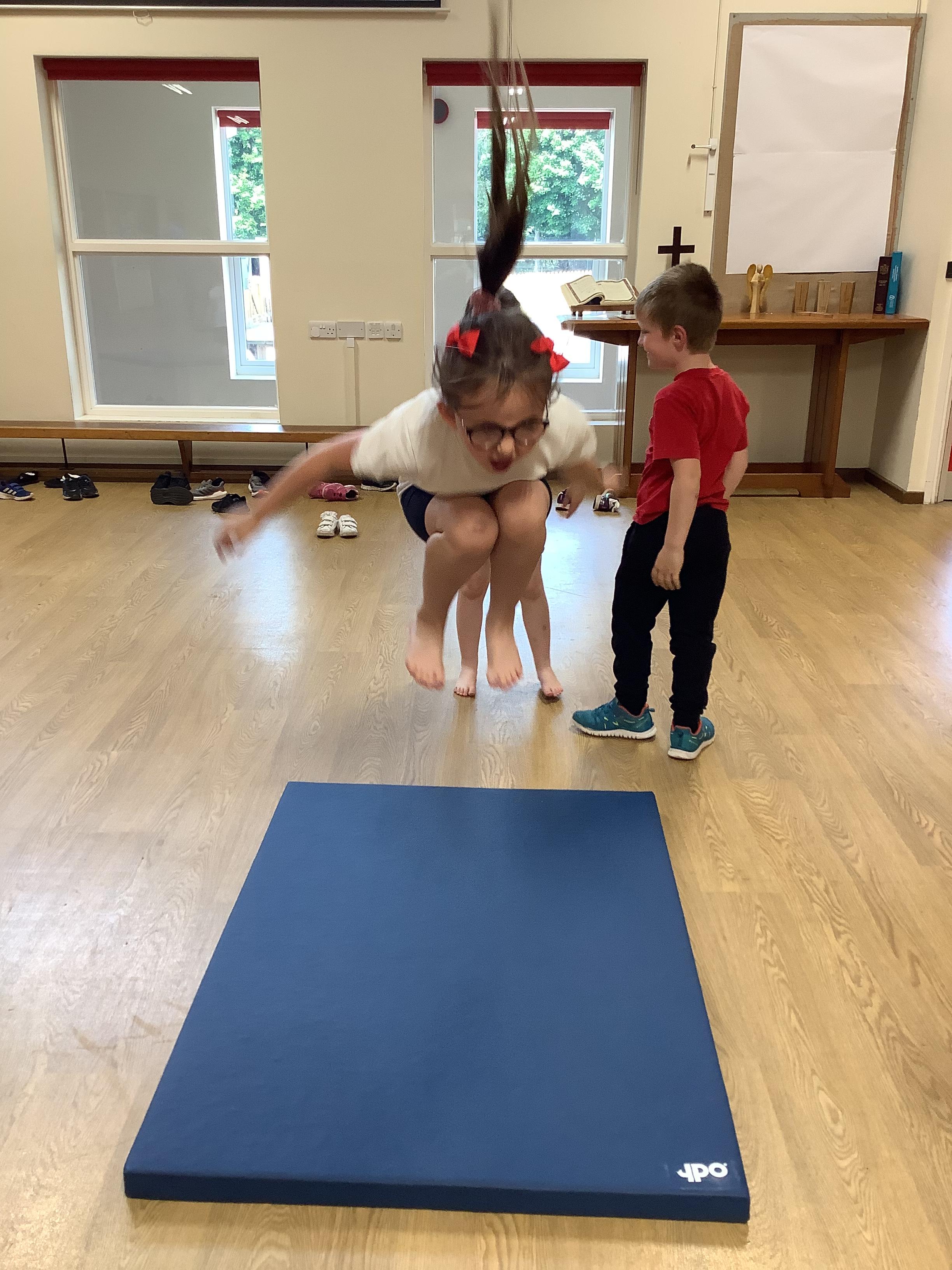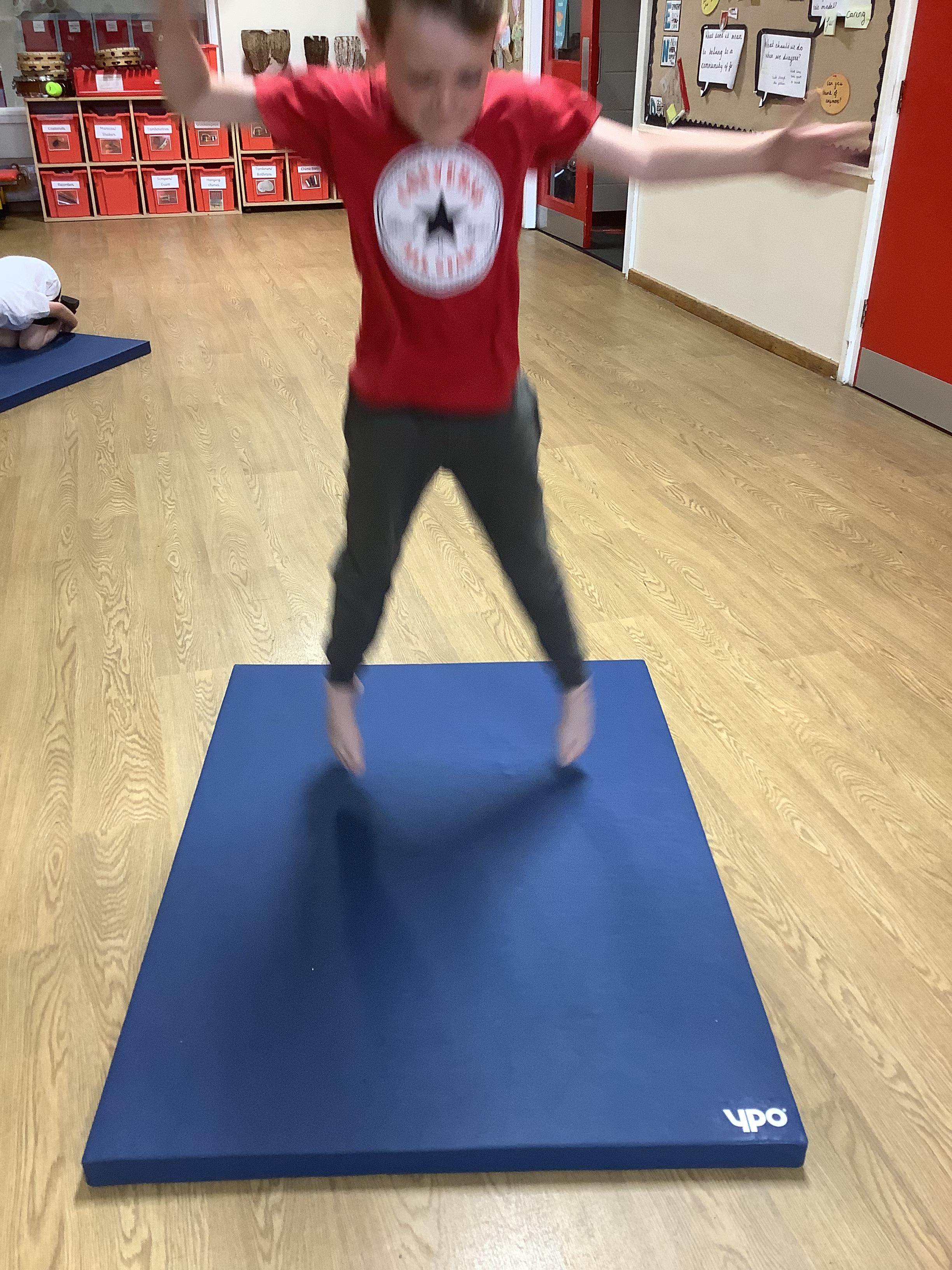 In PE this week, we worked hard to use our tuck, pike and straddle shapes when jumping.