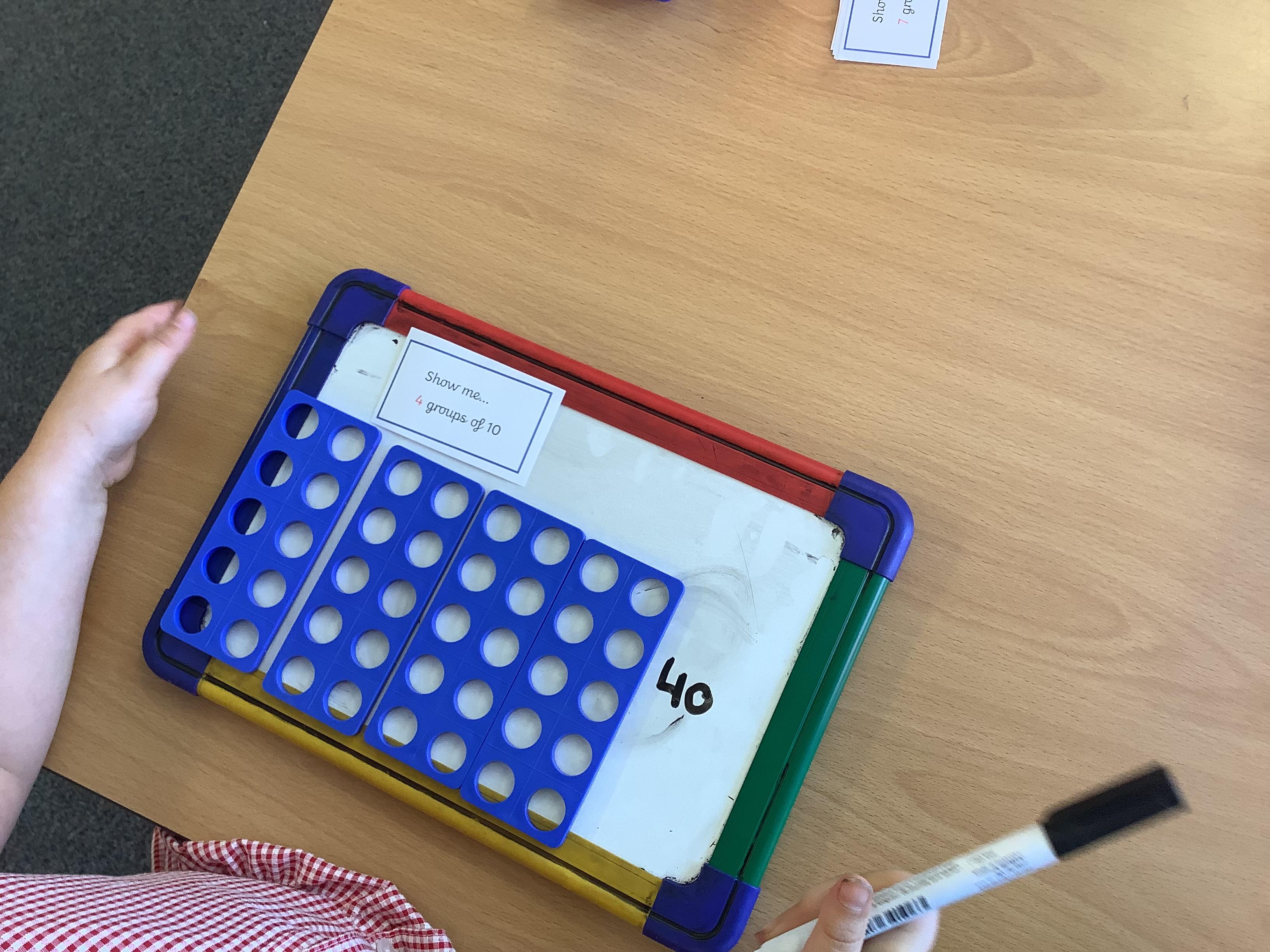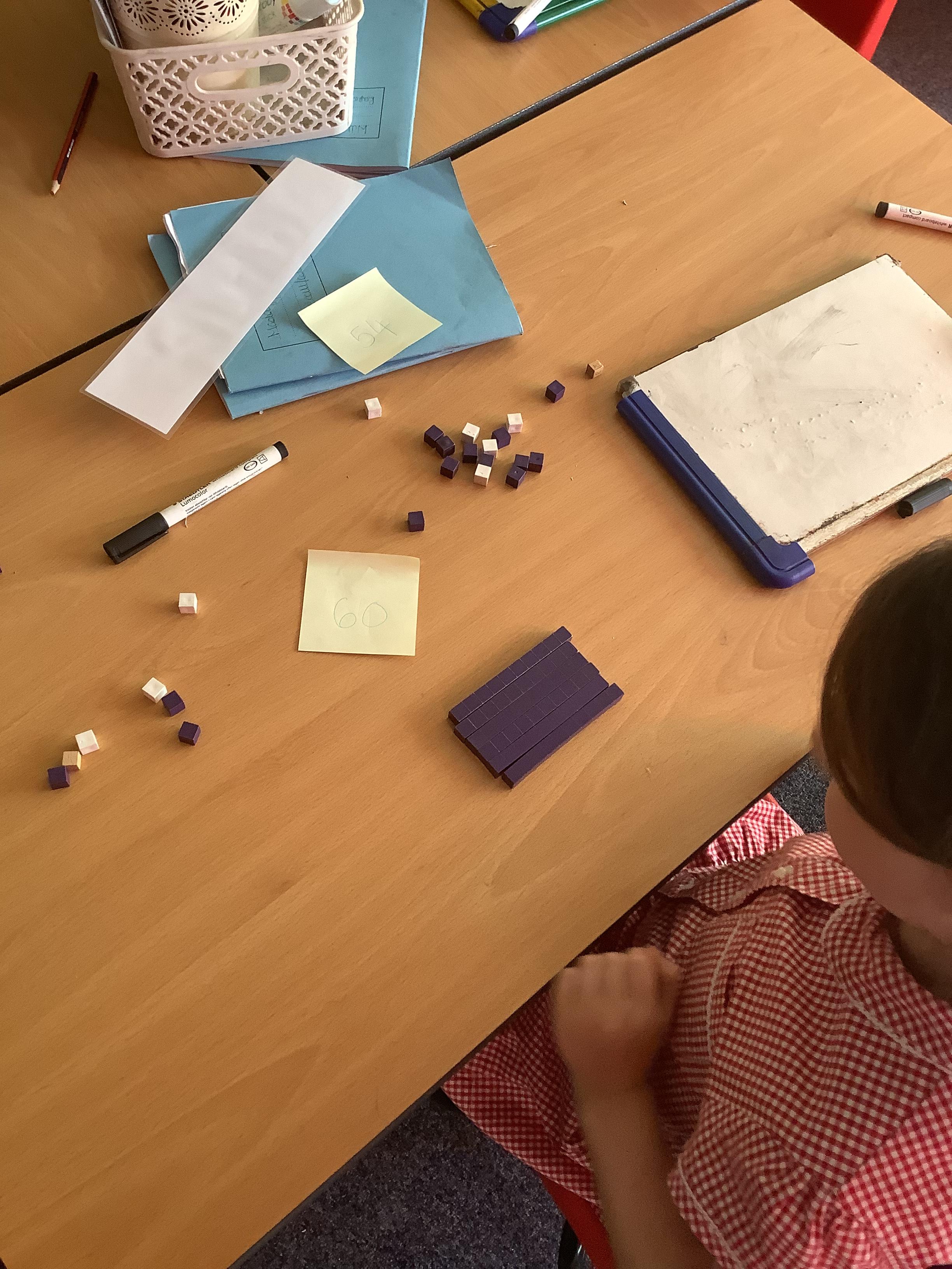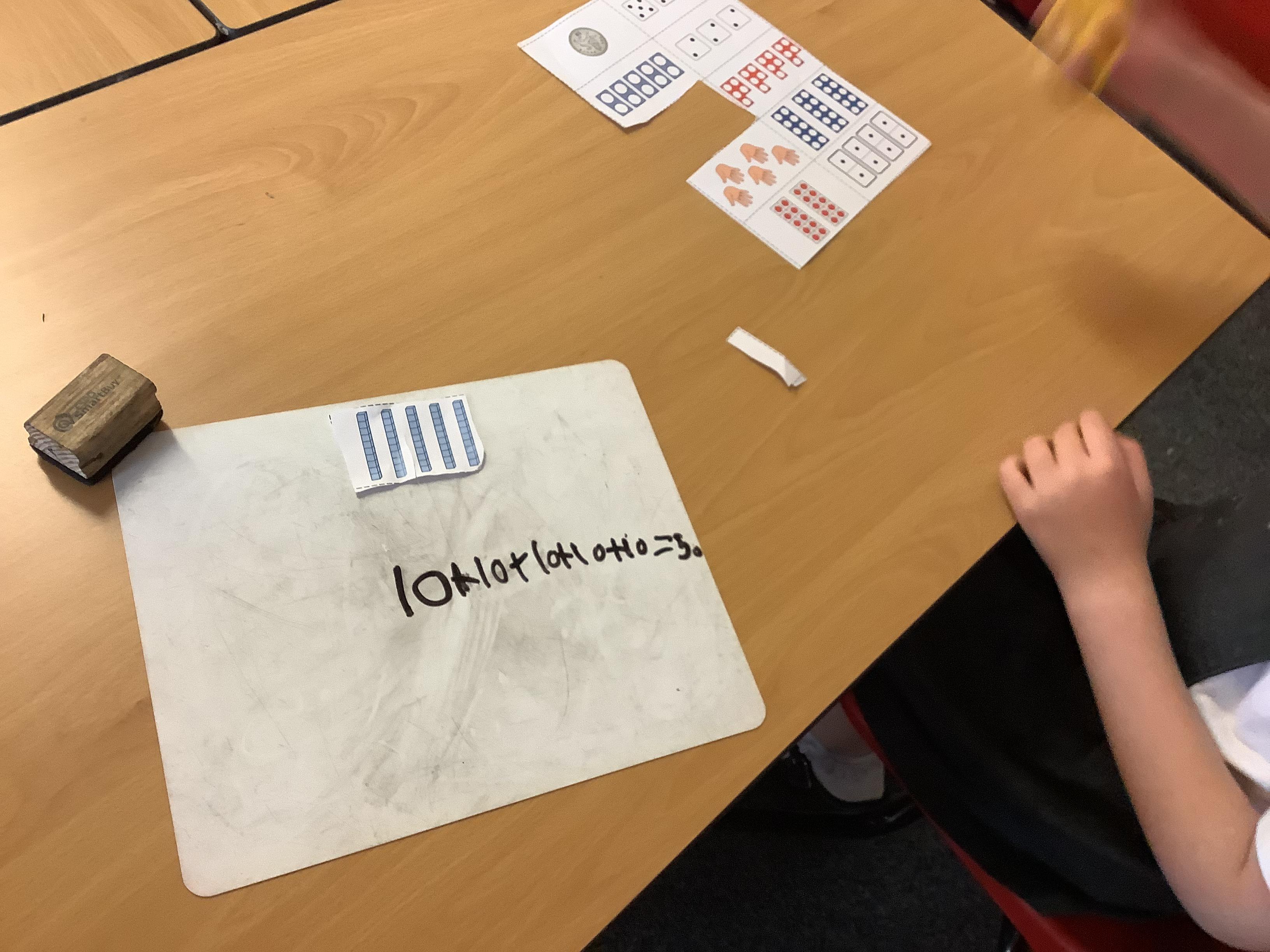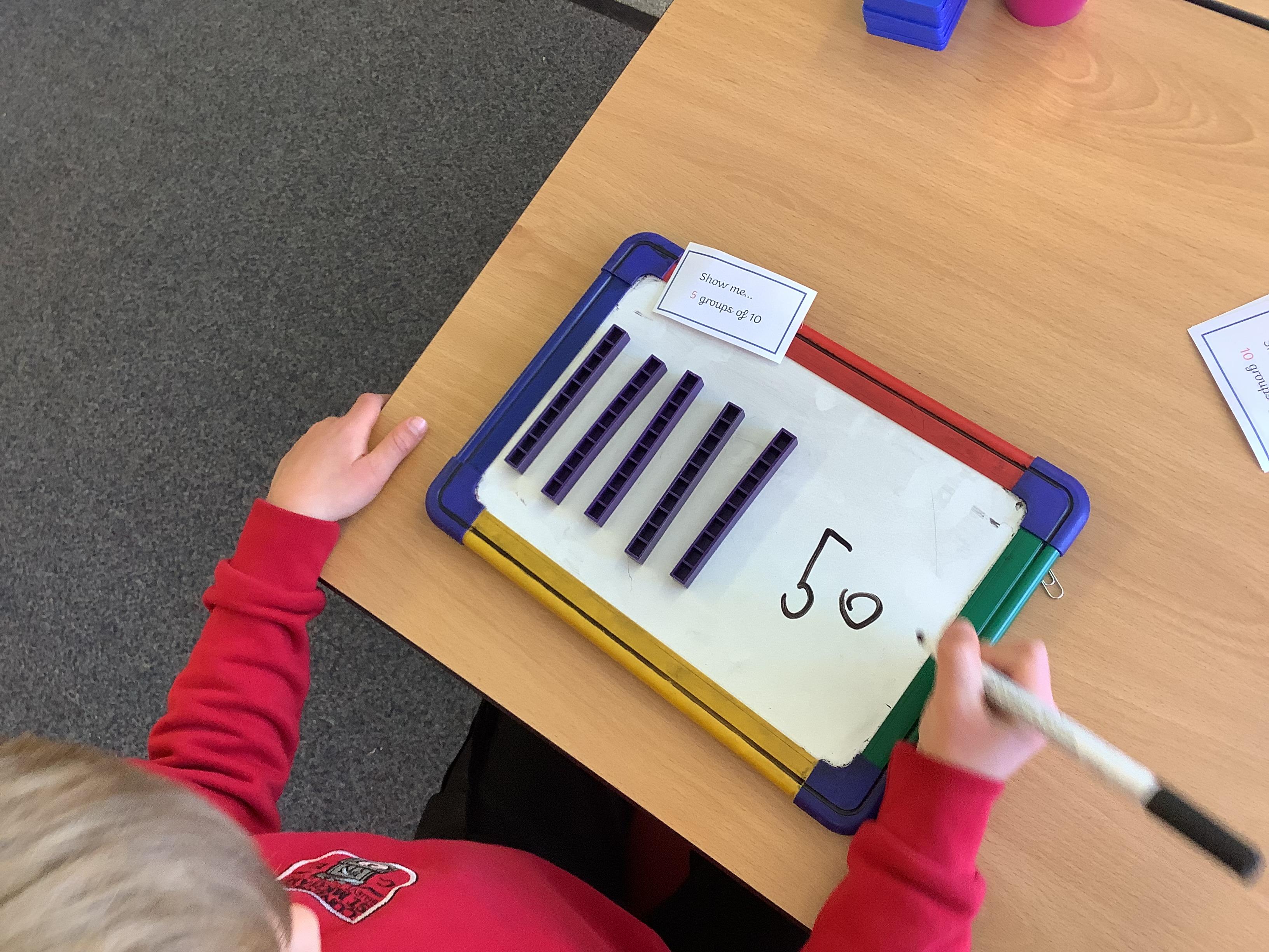 In Maths today, we focussed on counting in 10s. We created groups of 10 using dienes and numicon and counted in 10s to find out how many we had altogether.