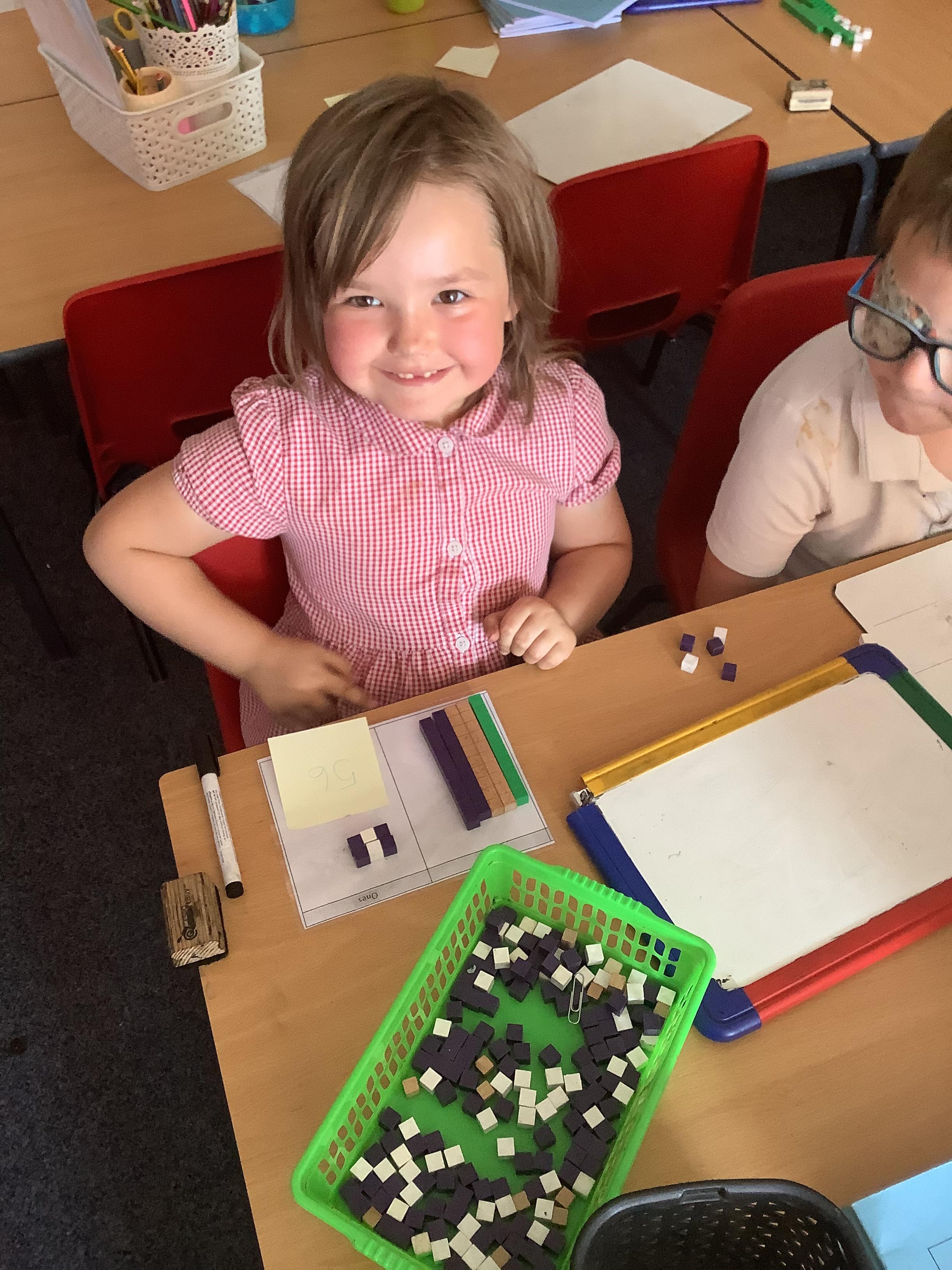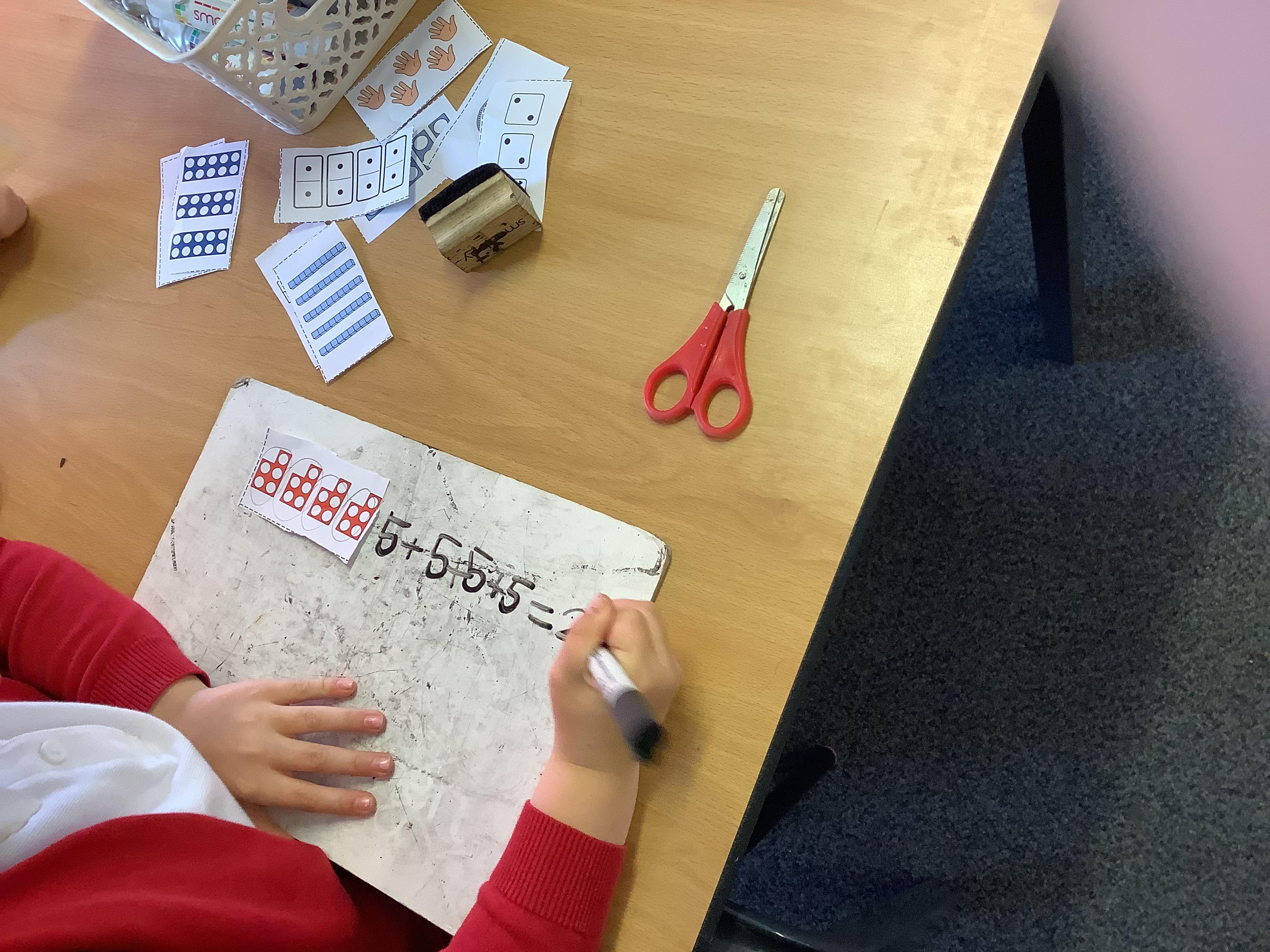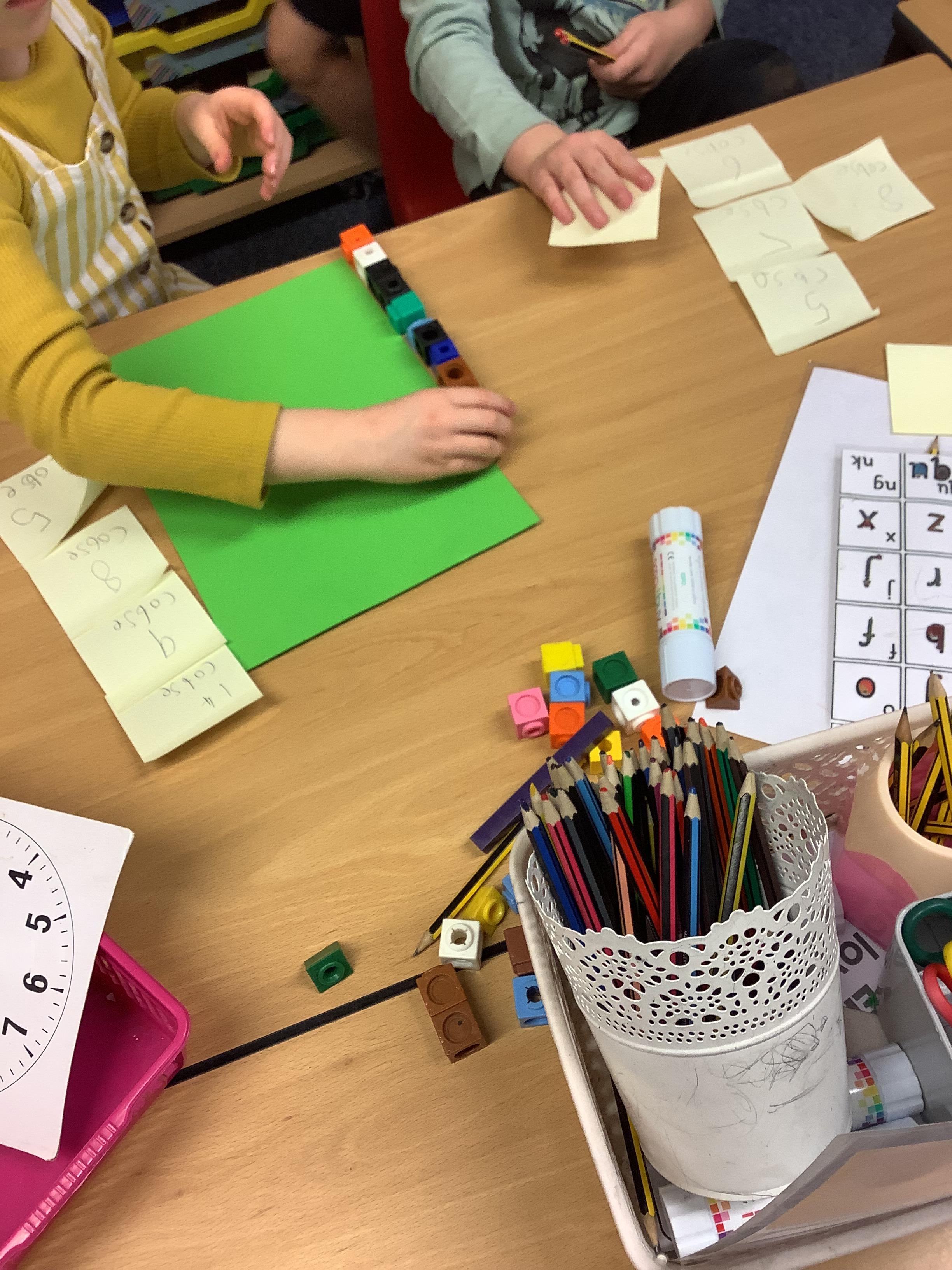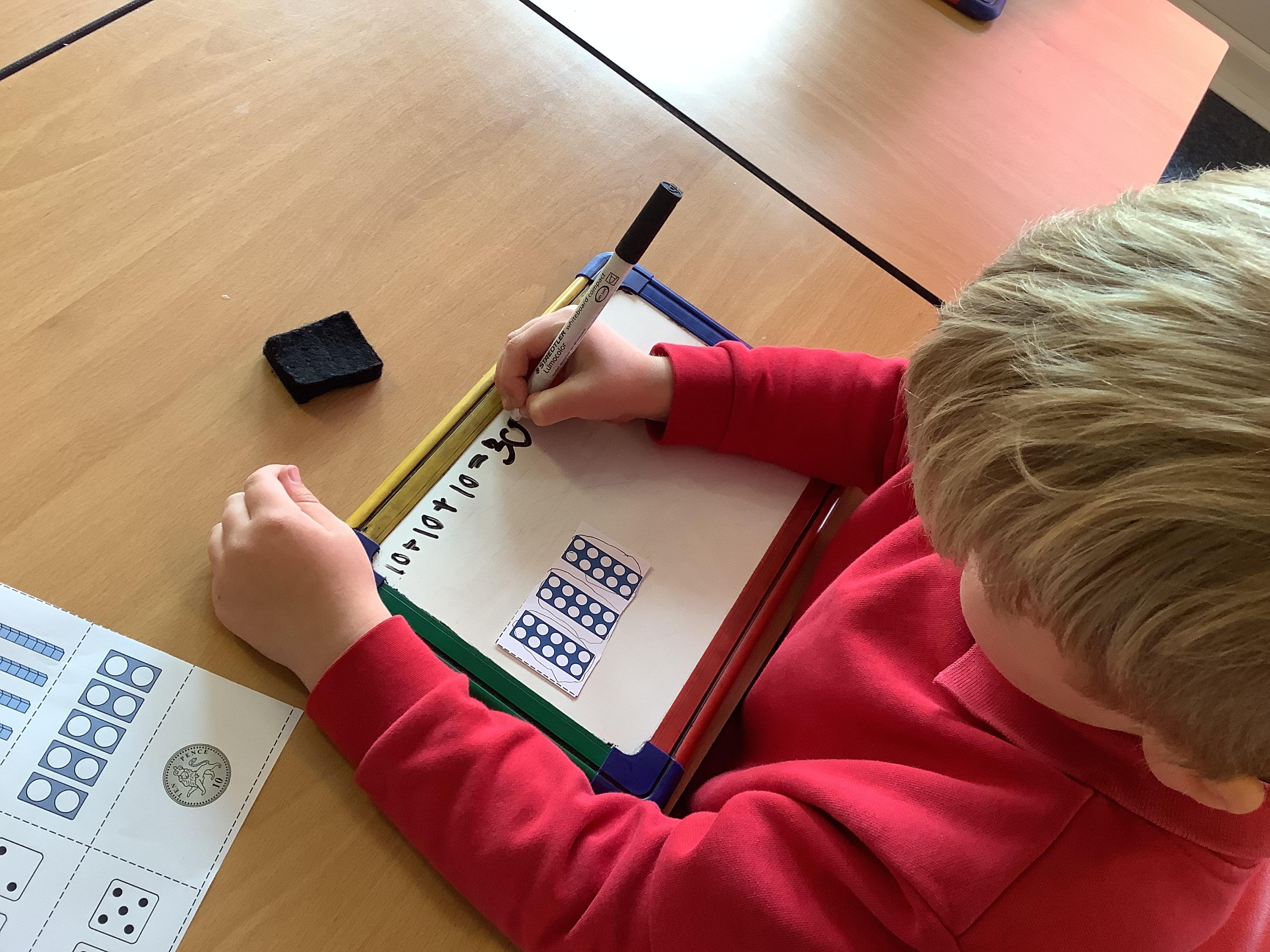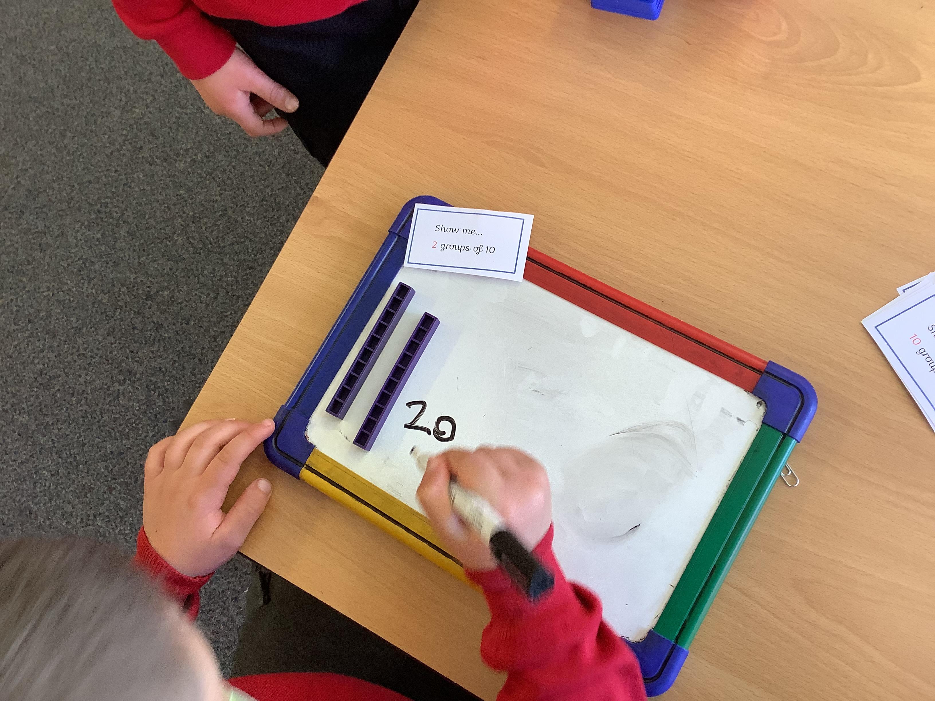 In Maths today, we focussed on counting in 10s. We created groups of 10 using dienes and numicon and counted in 10s to find out how many we had altogether.