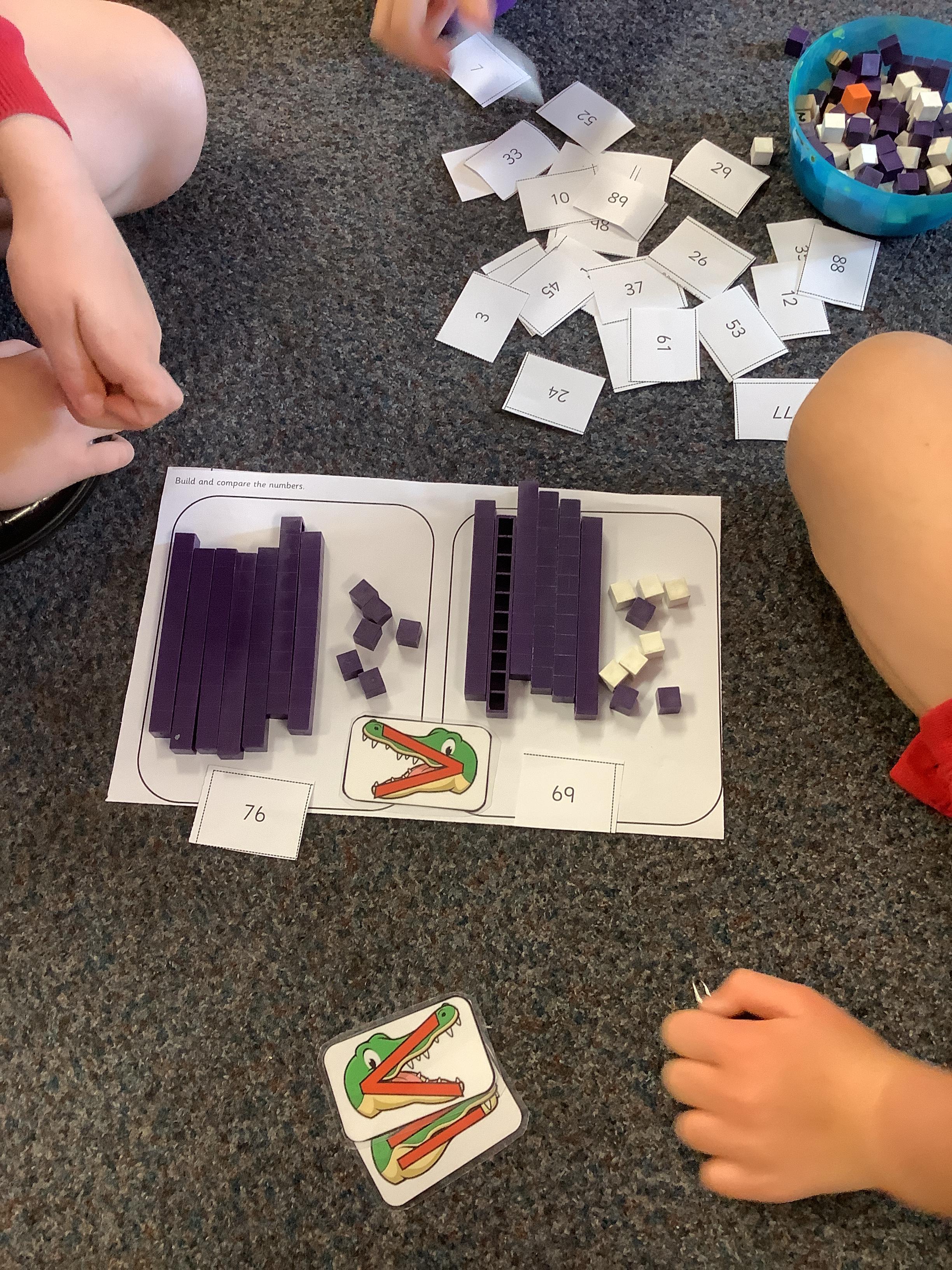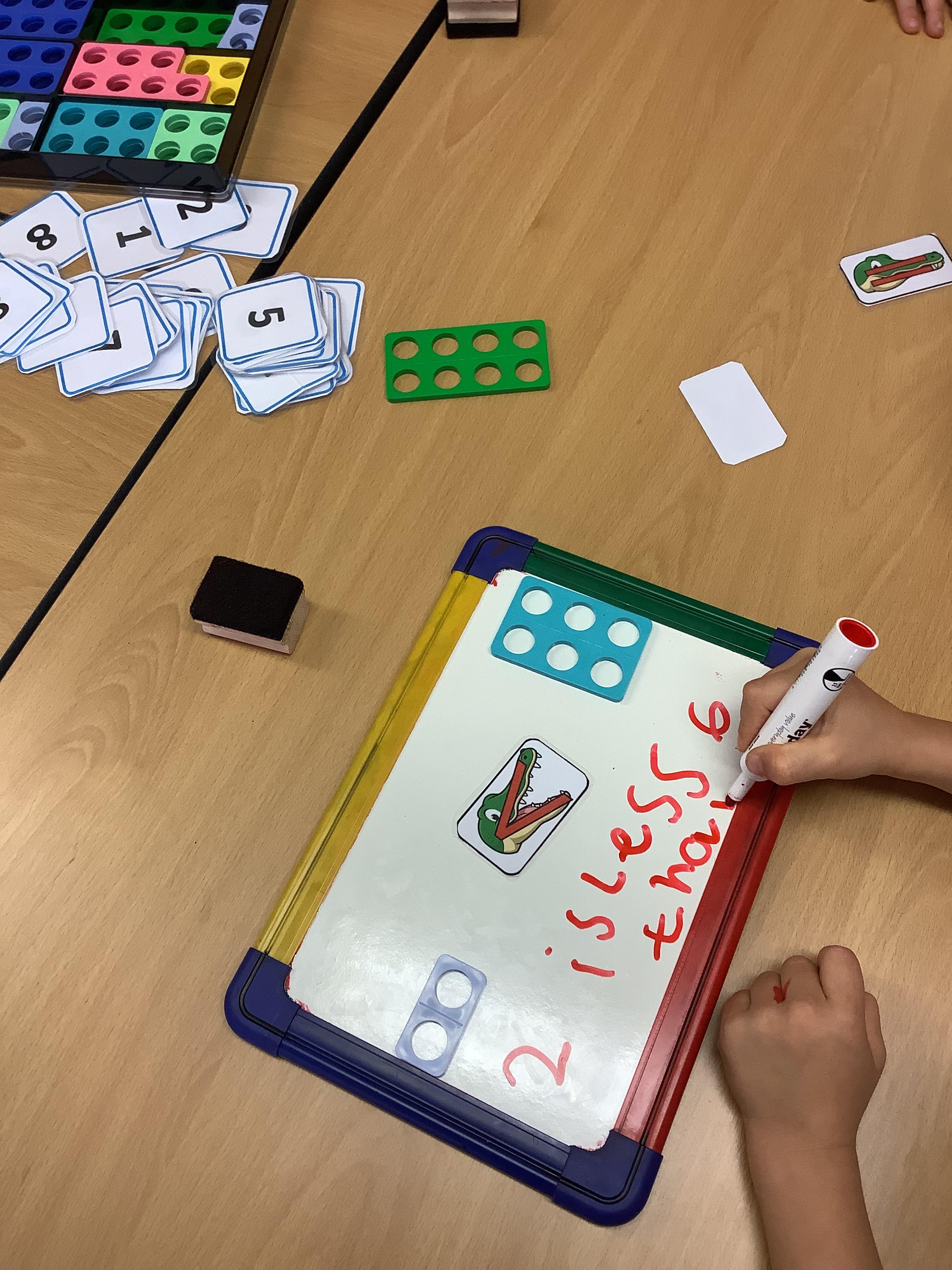 This week in Maths, we have been working hard to compare objects and numbers using less than, greater than and equal to.