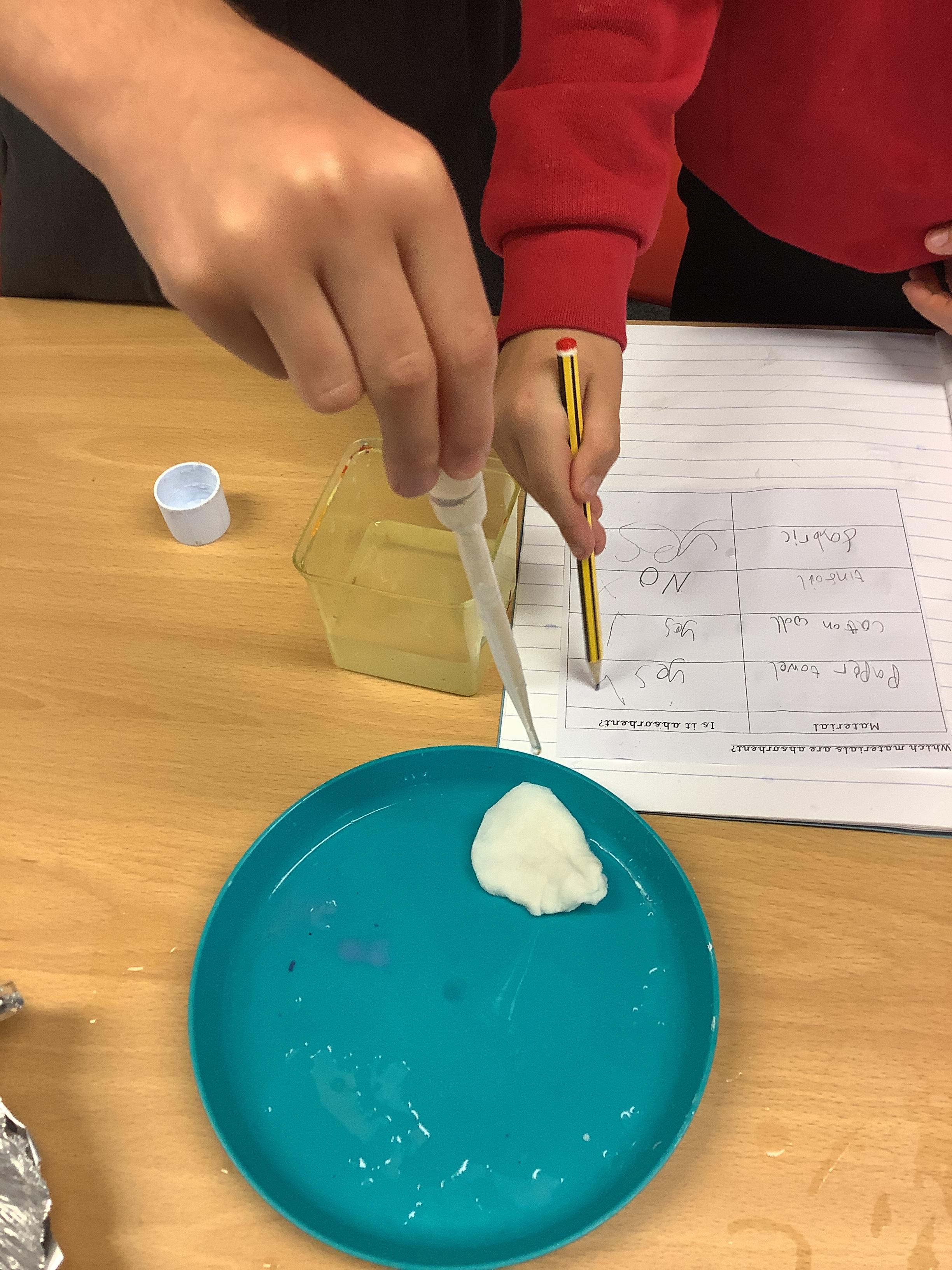 This week in Science we tested different materials to see whether they were absorbent or not.