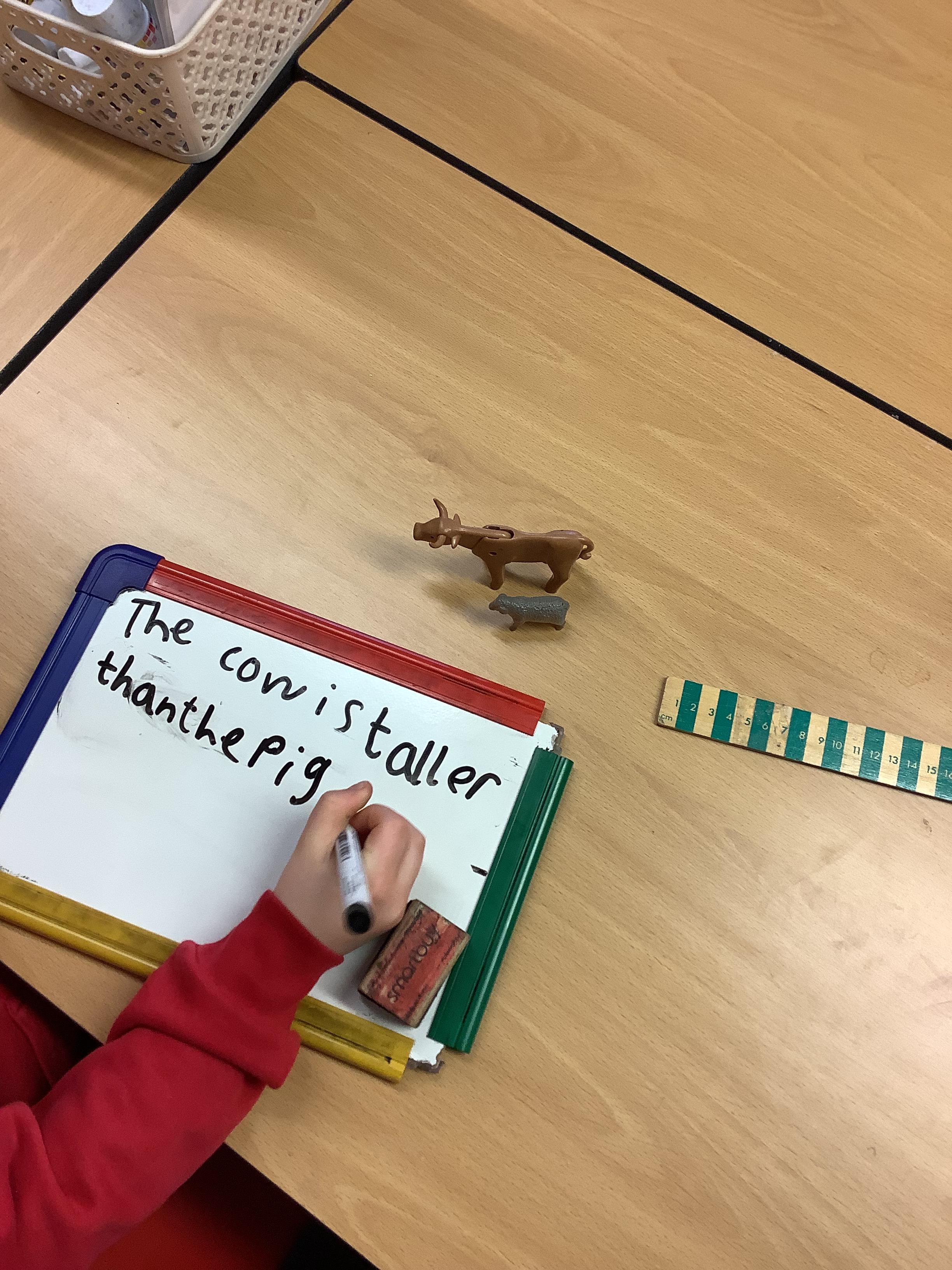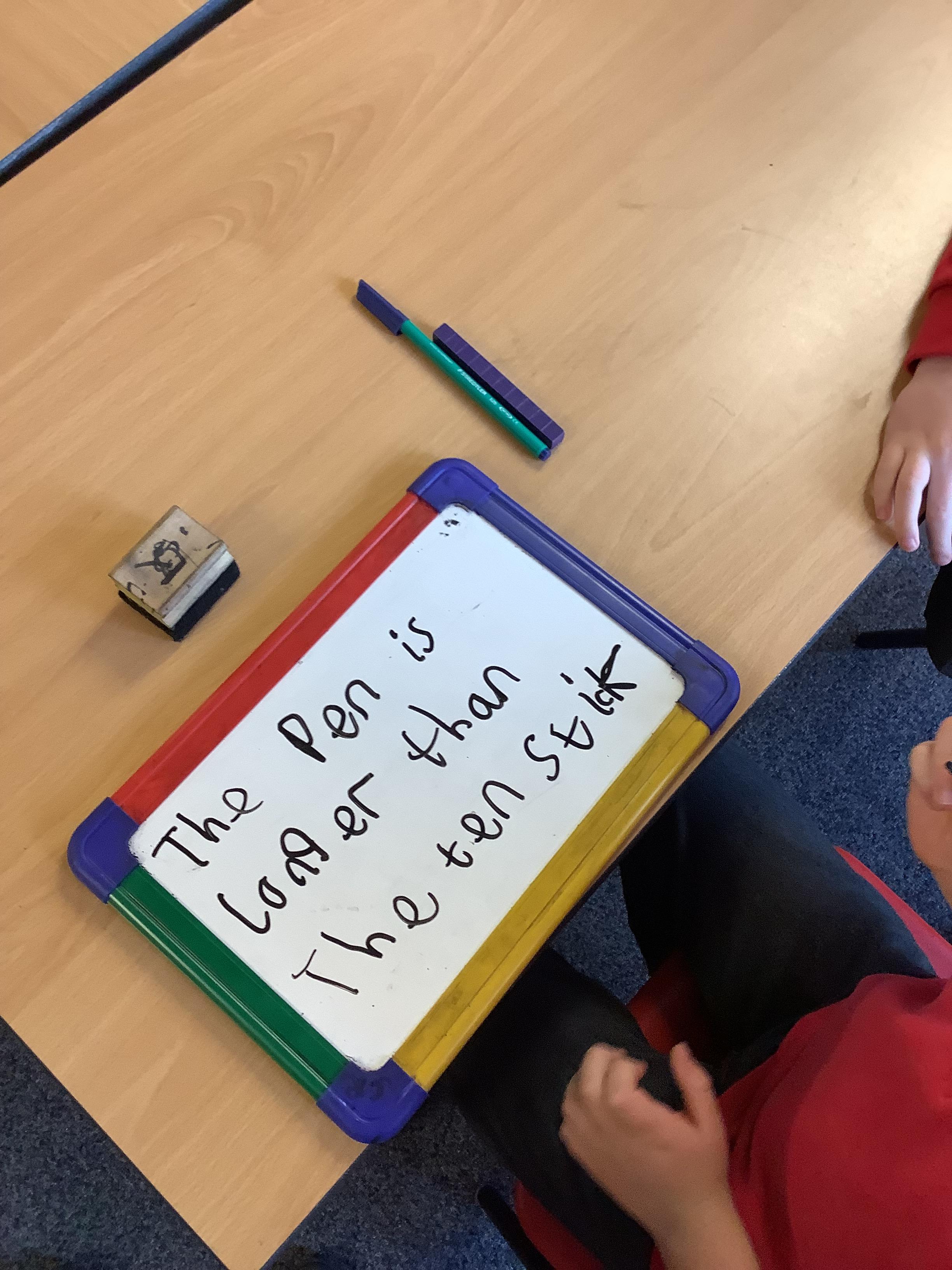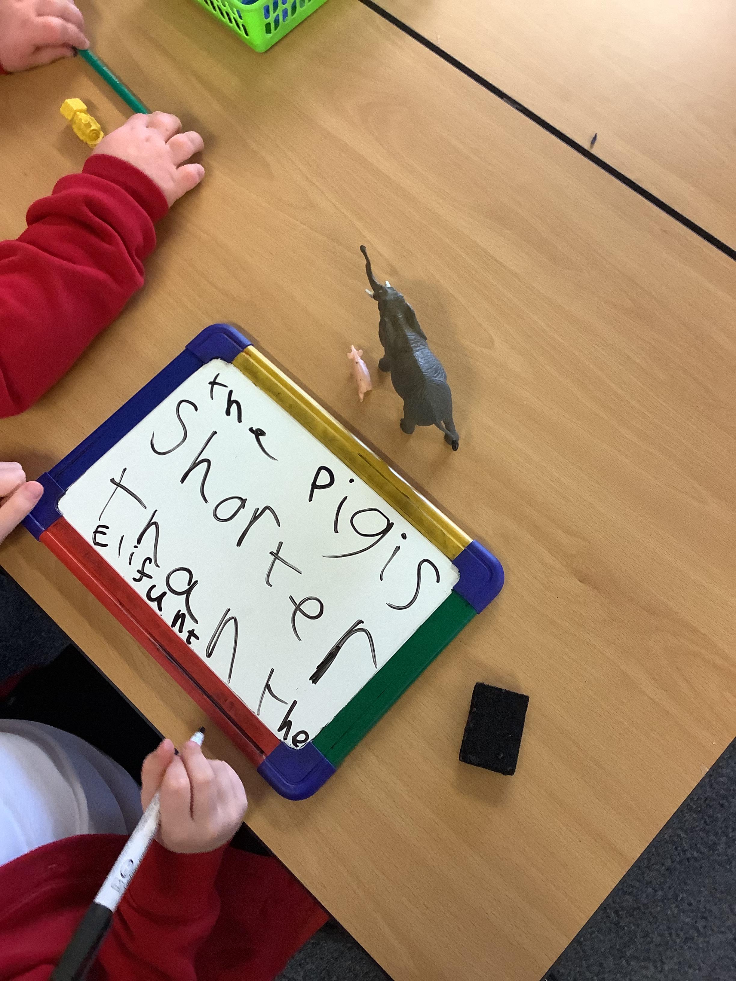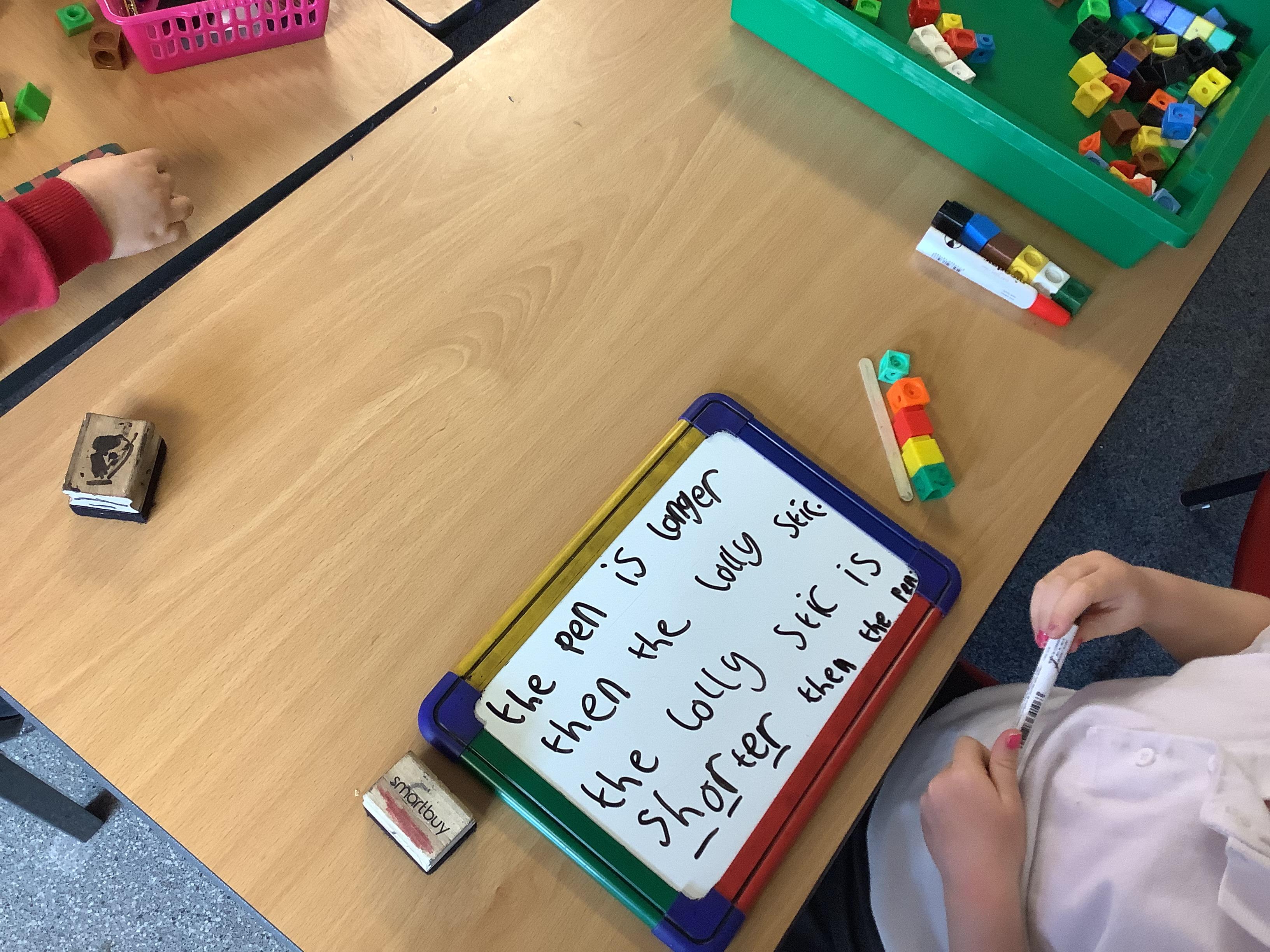 In Maths this week, we have been comparing the length and height of different objects using shorter, longer and taller.