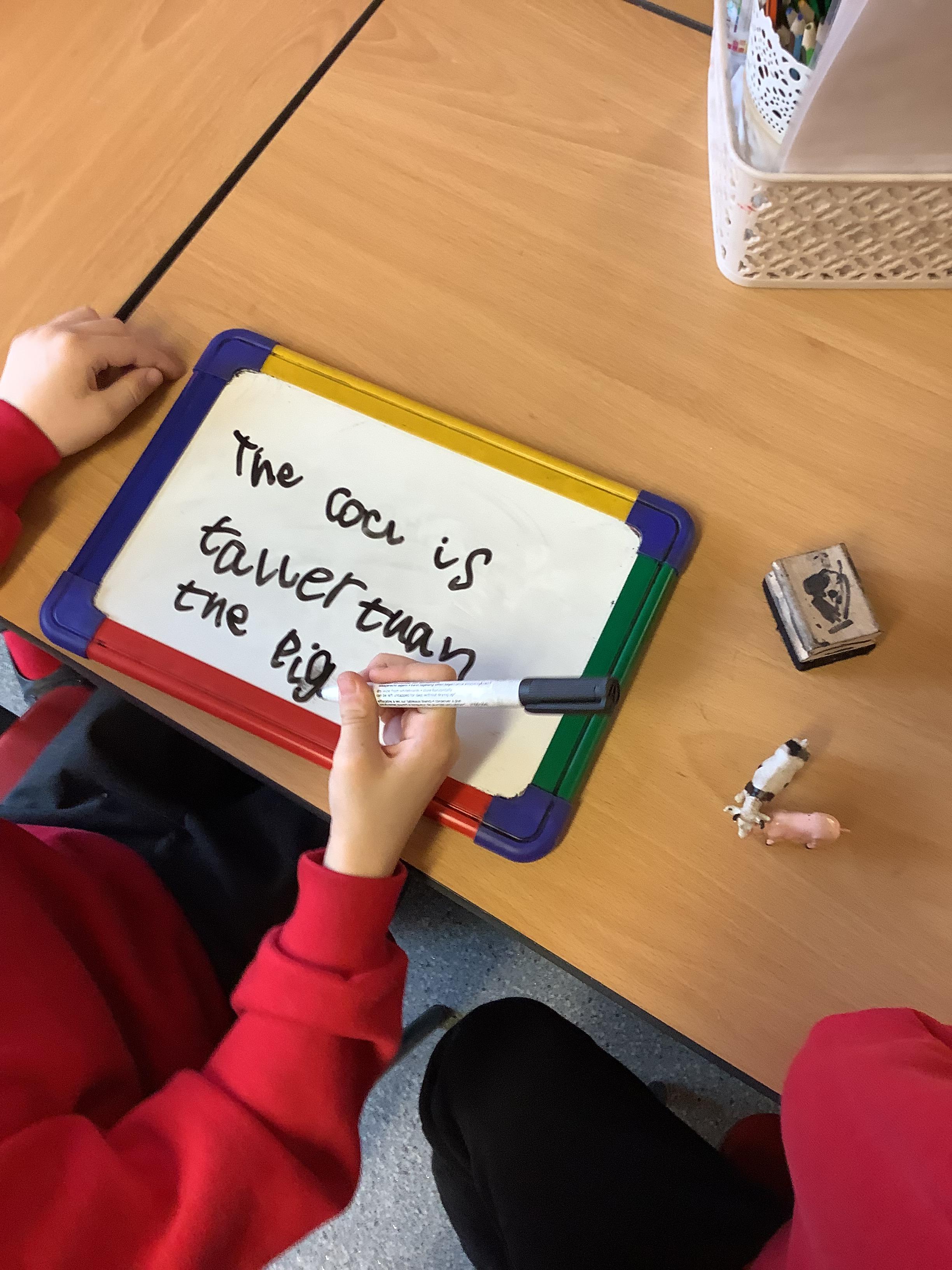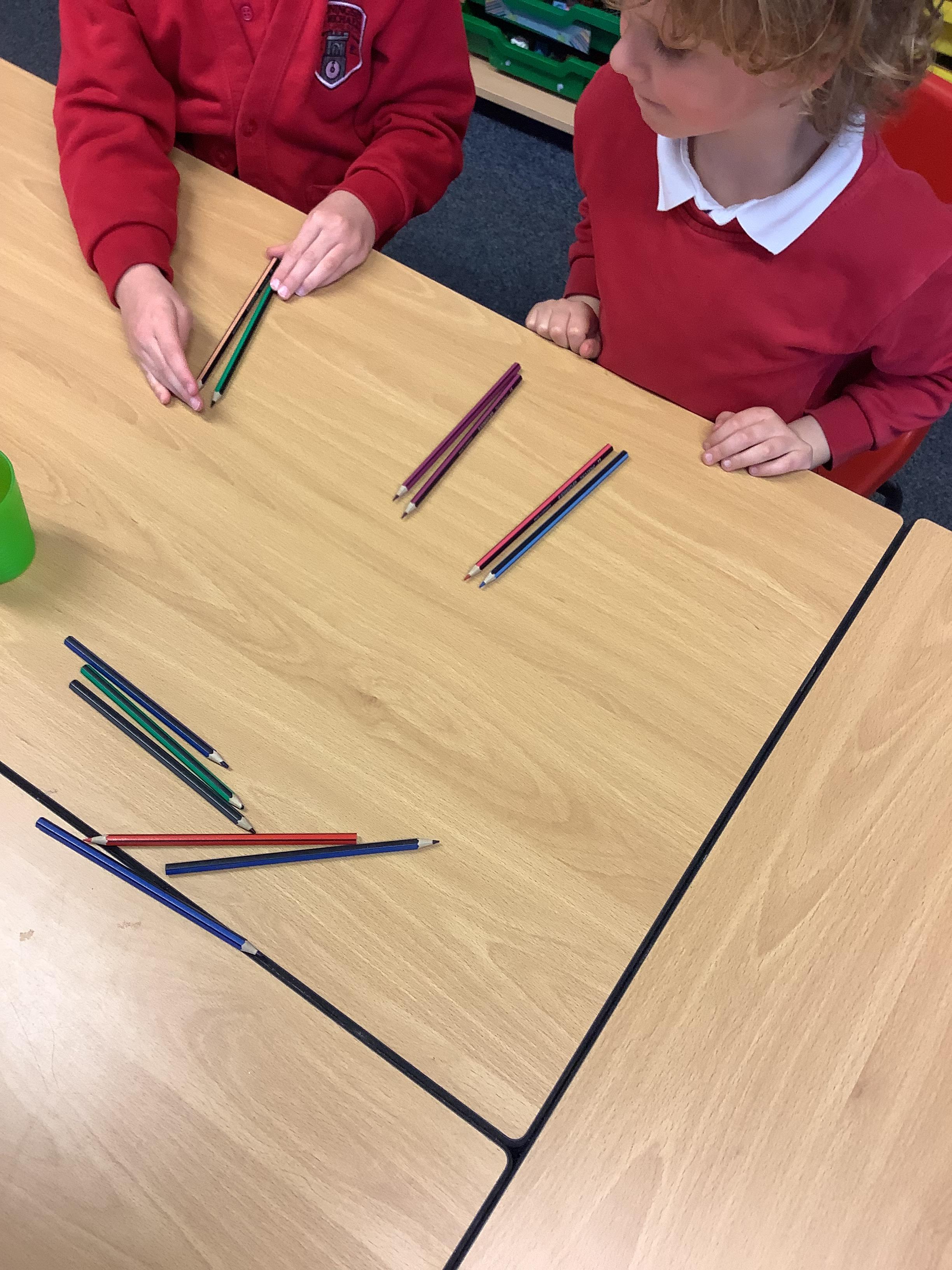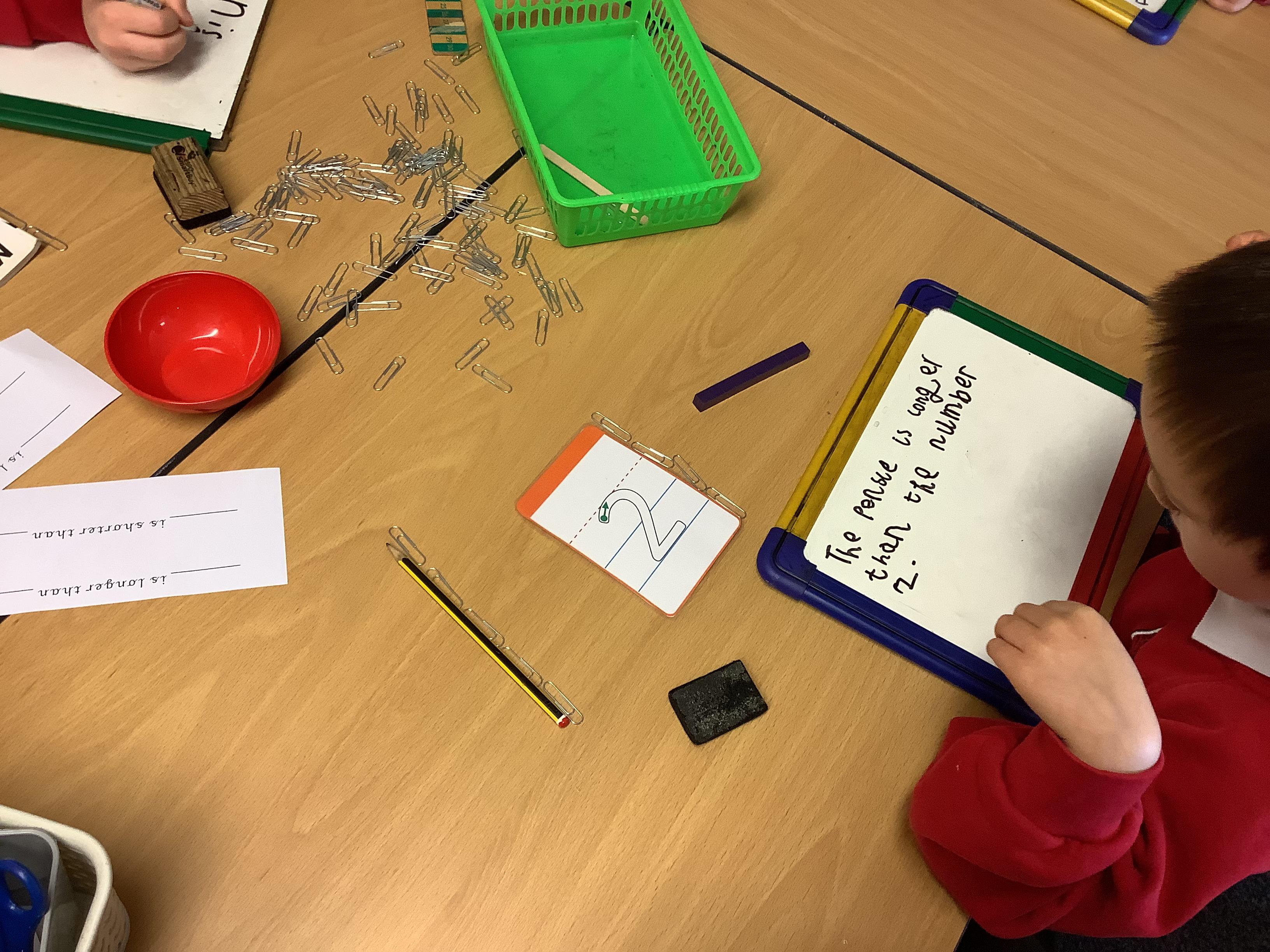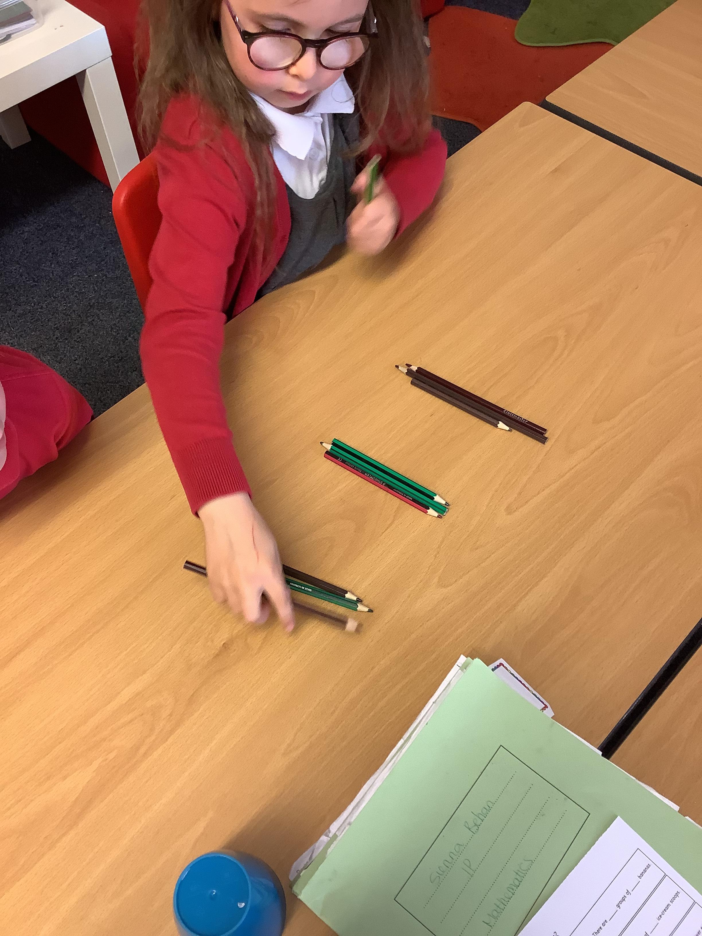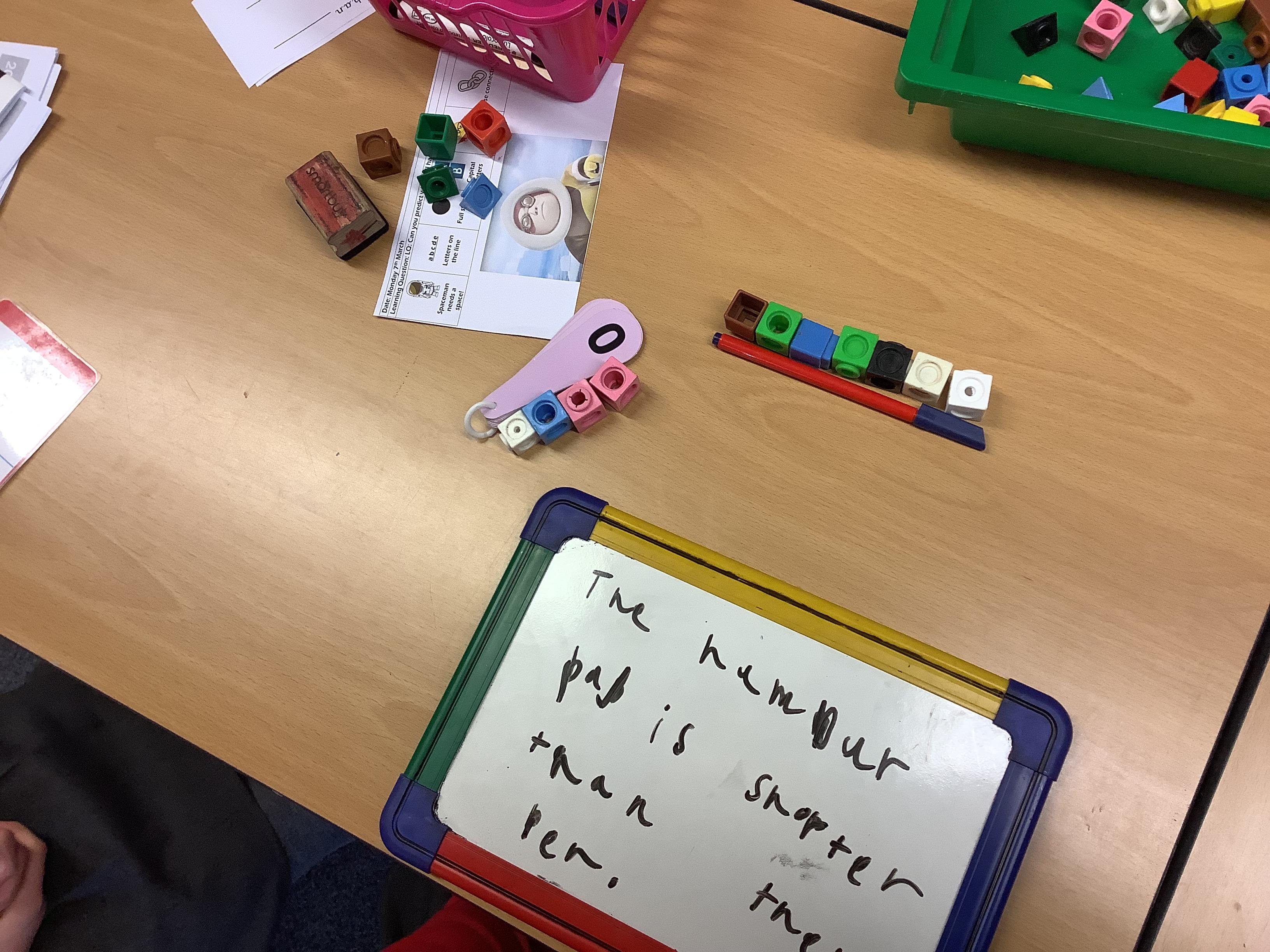 In Maths this week, we have been comparing the length and height of different objects using shorter, longer and taller.