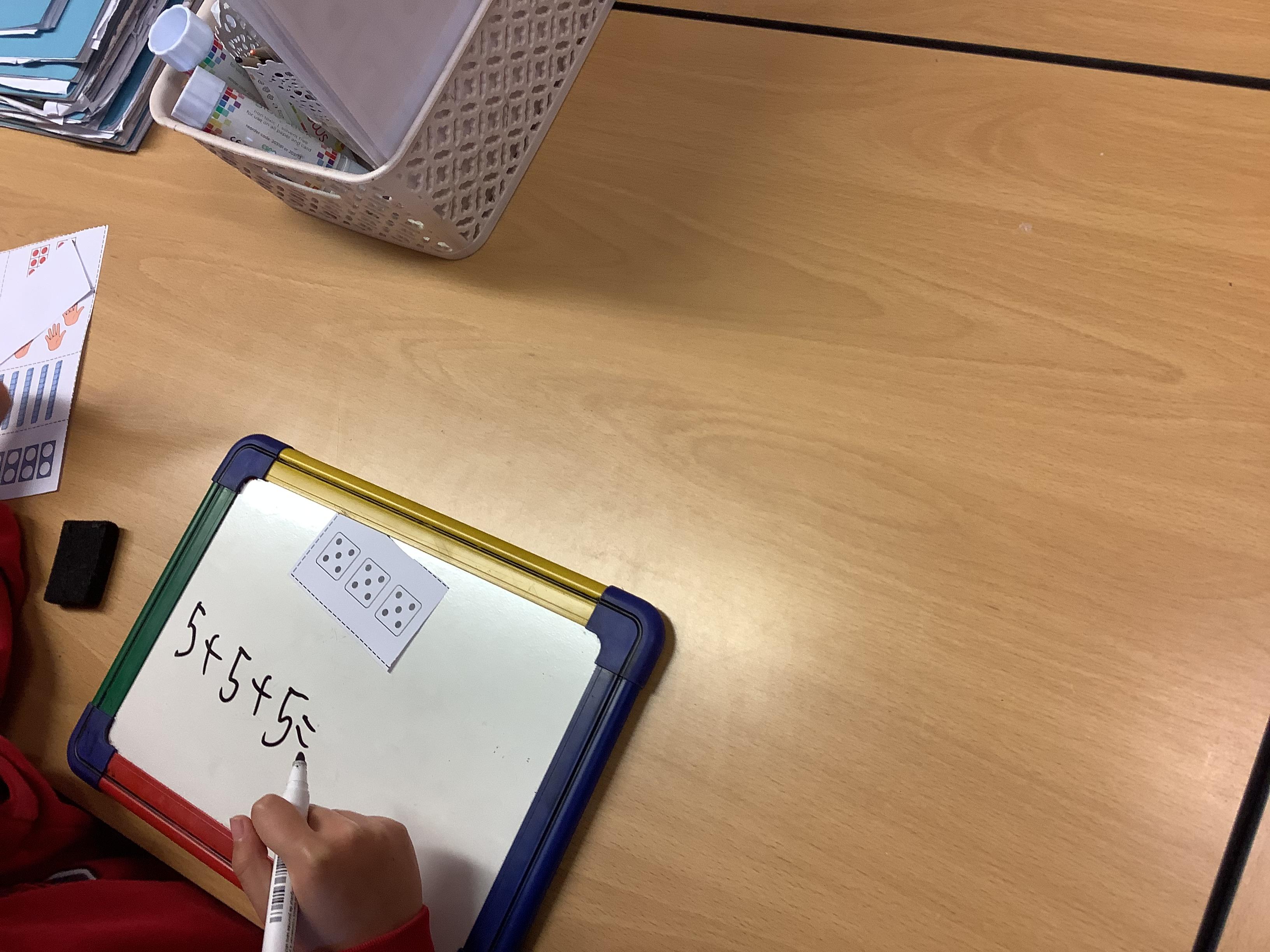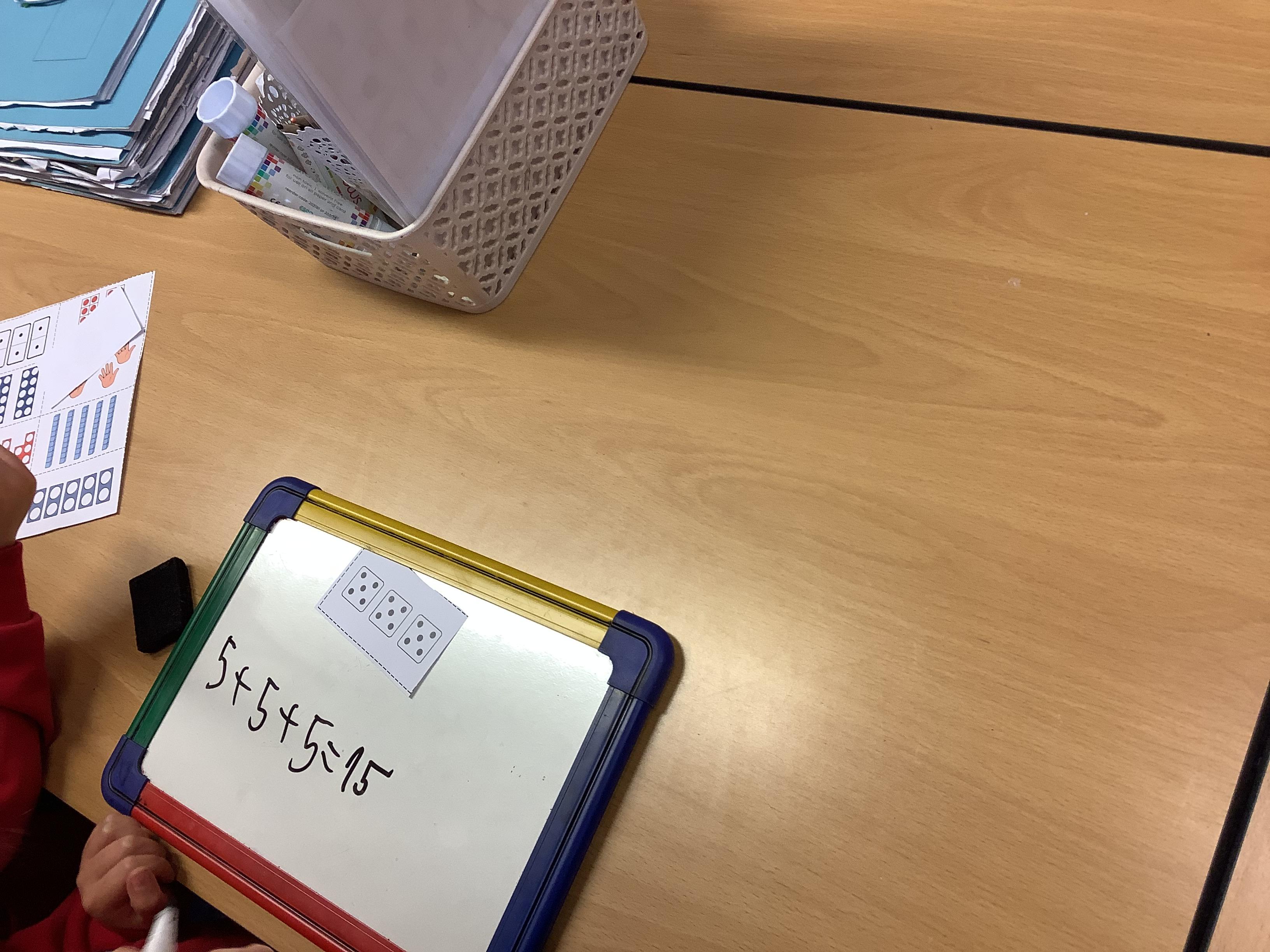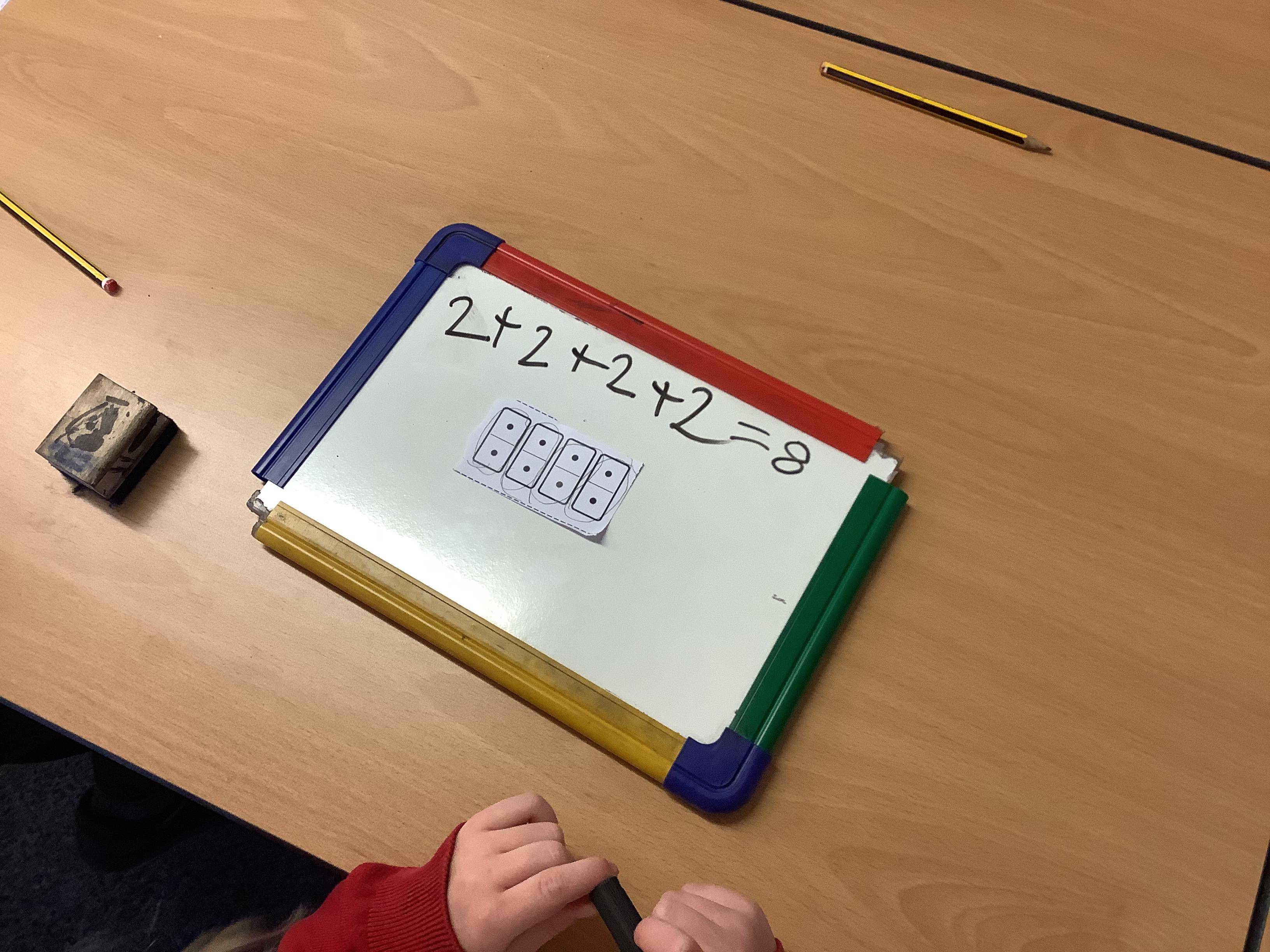 In Maths we have been adding equal groups. We counted in 2s, 5s and 10s to help us find the answer.