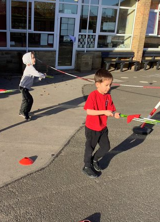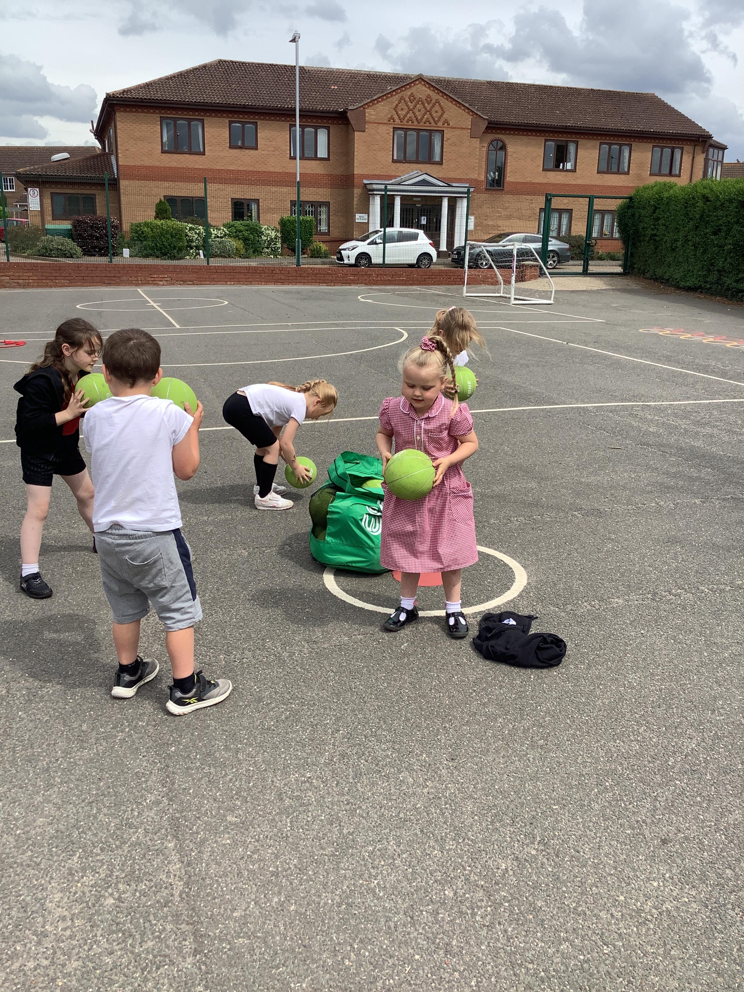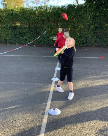 In PE this week, we used tennis rackets to practise carrying and balancing equipment whilst changing speed and direction.