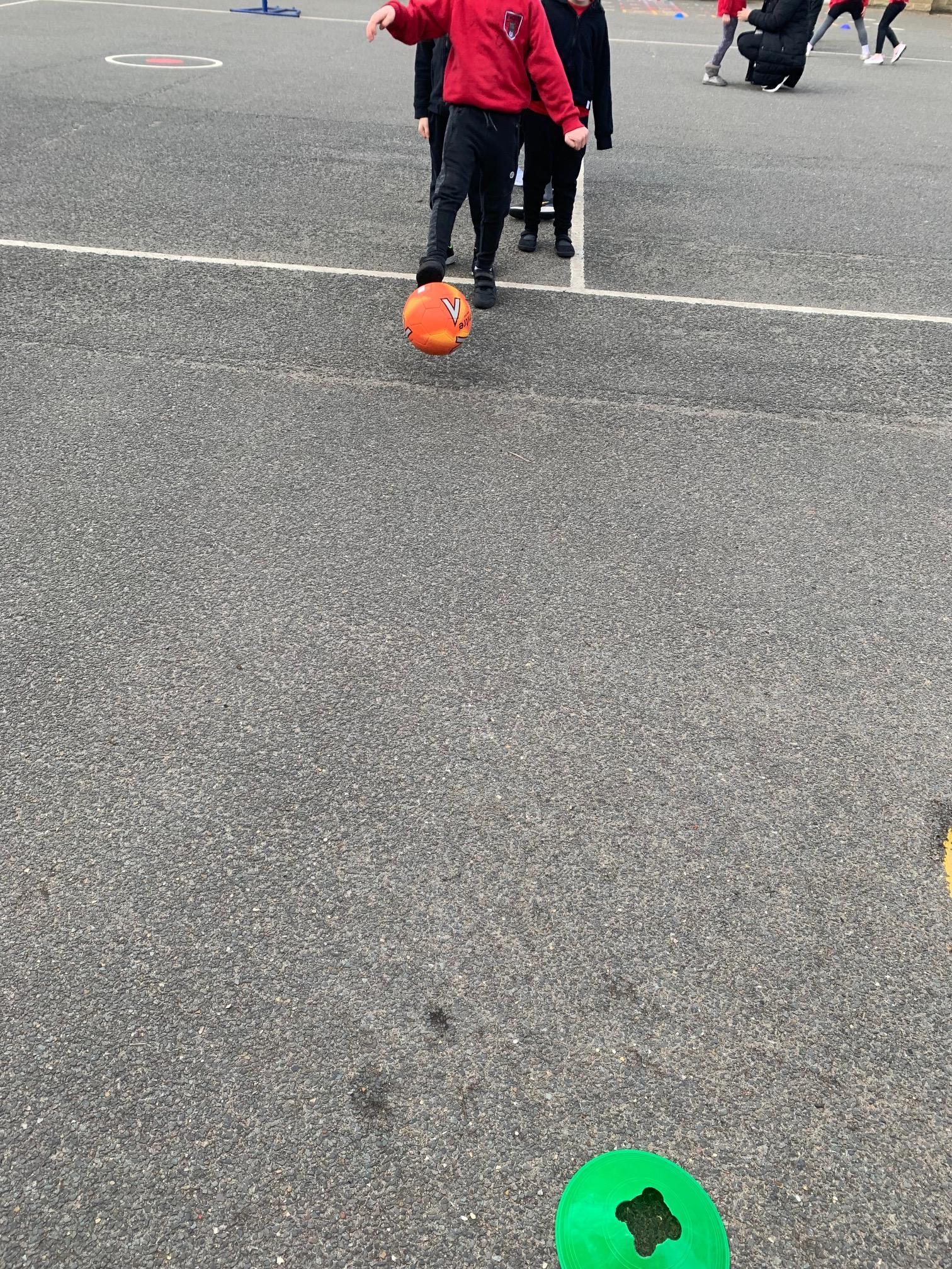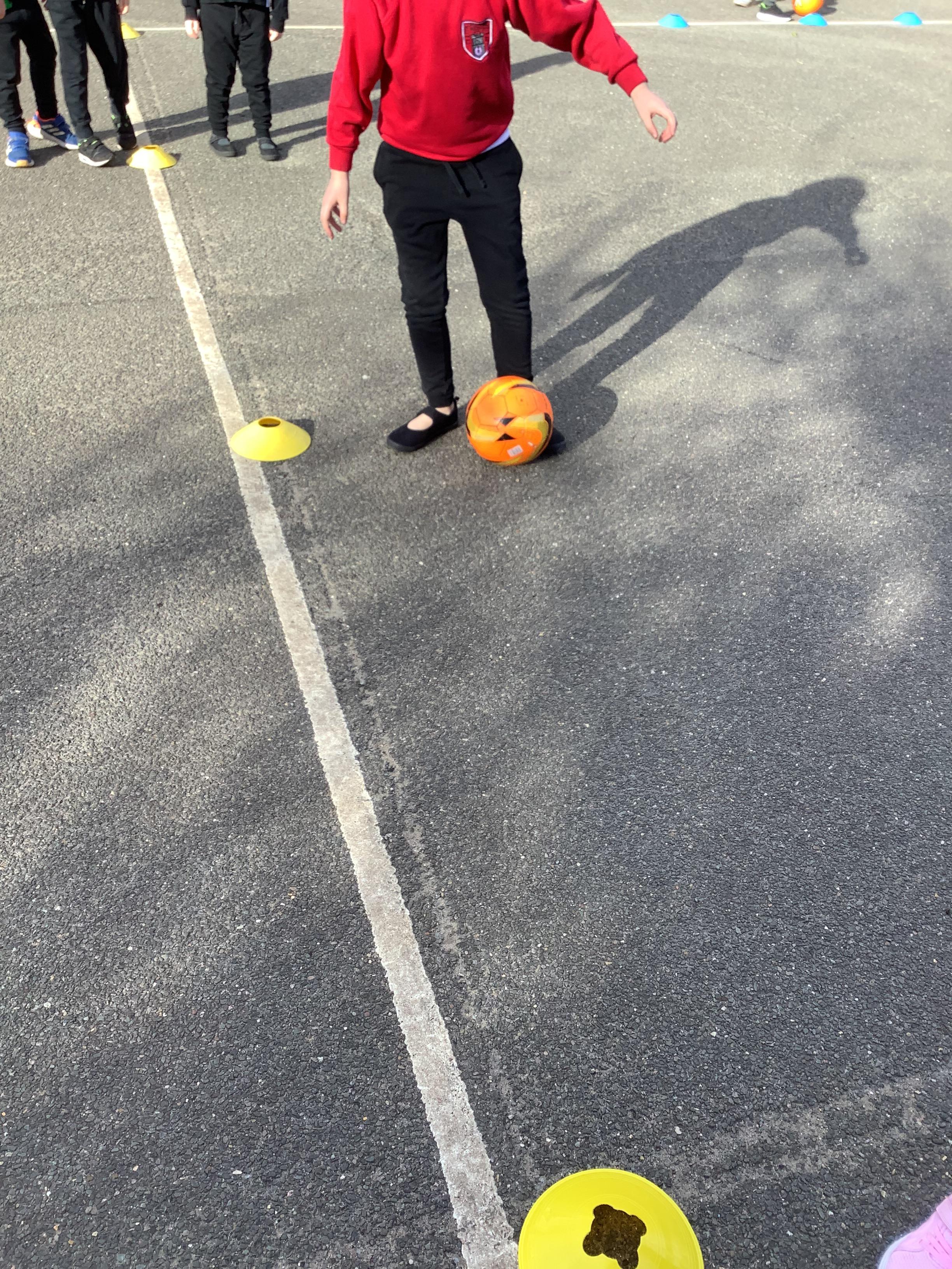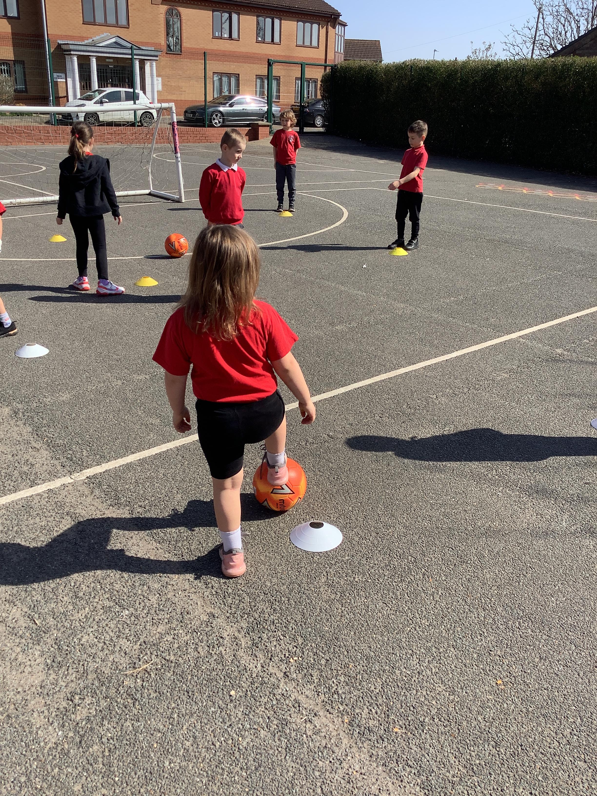 In PE this week we looked at how to dribble a football in different directions and how to stop a football with control.