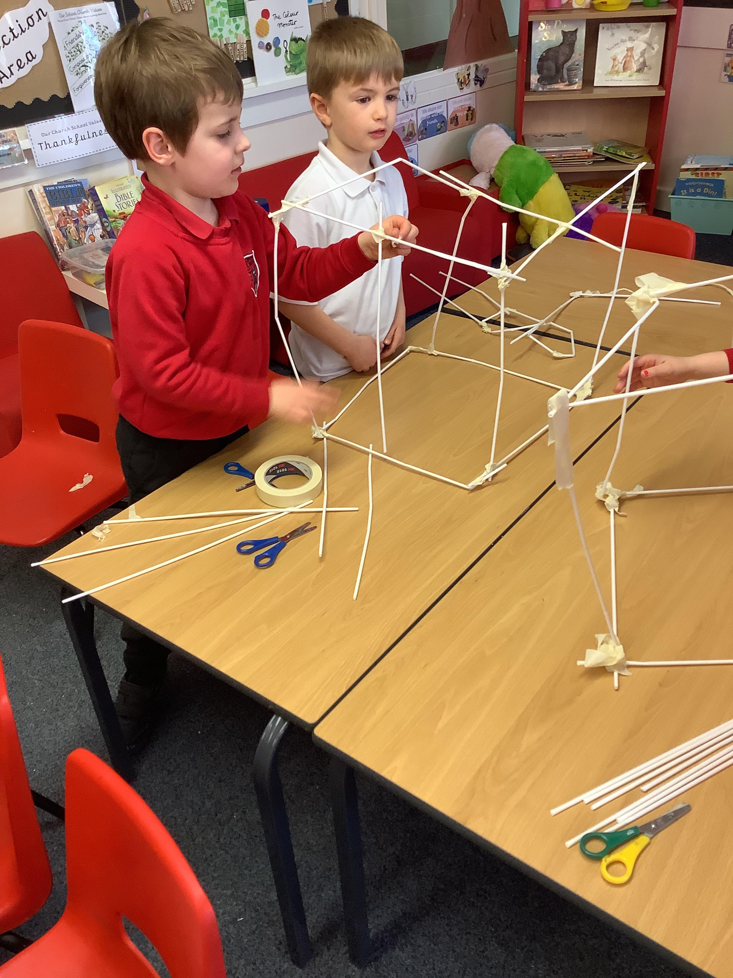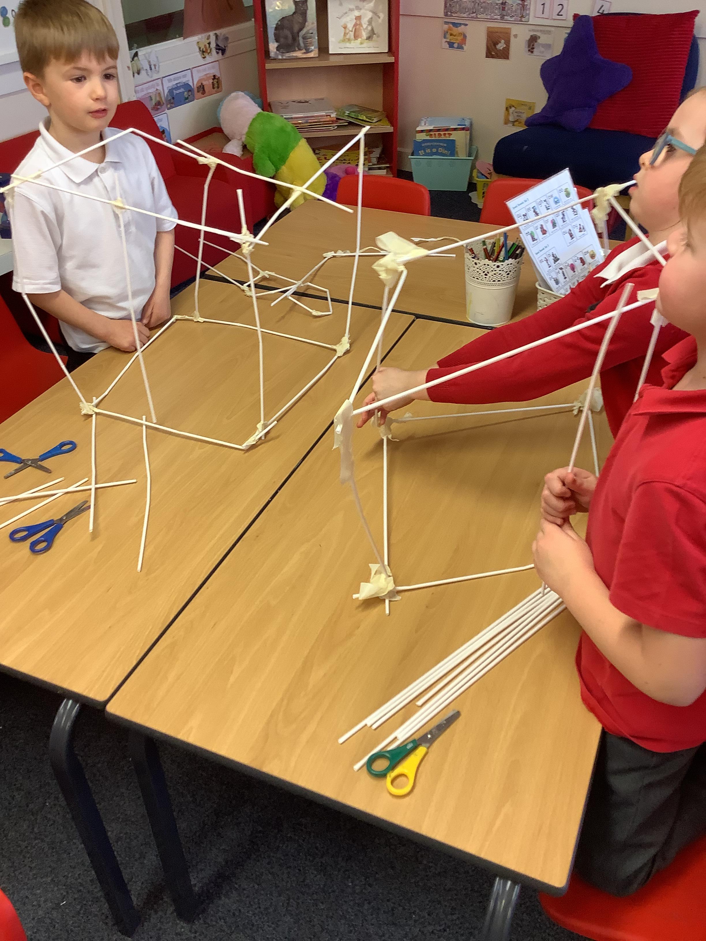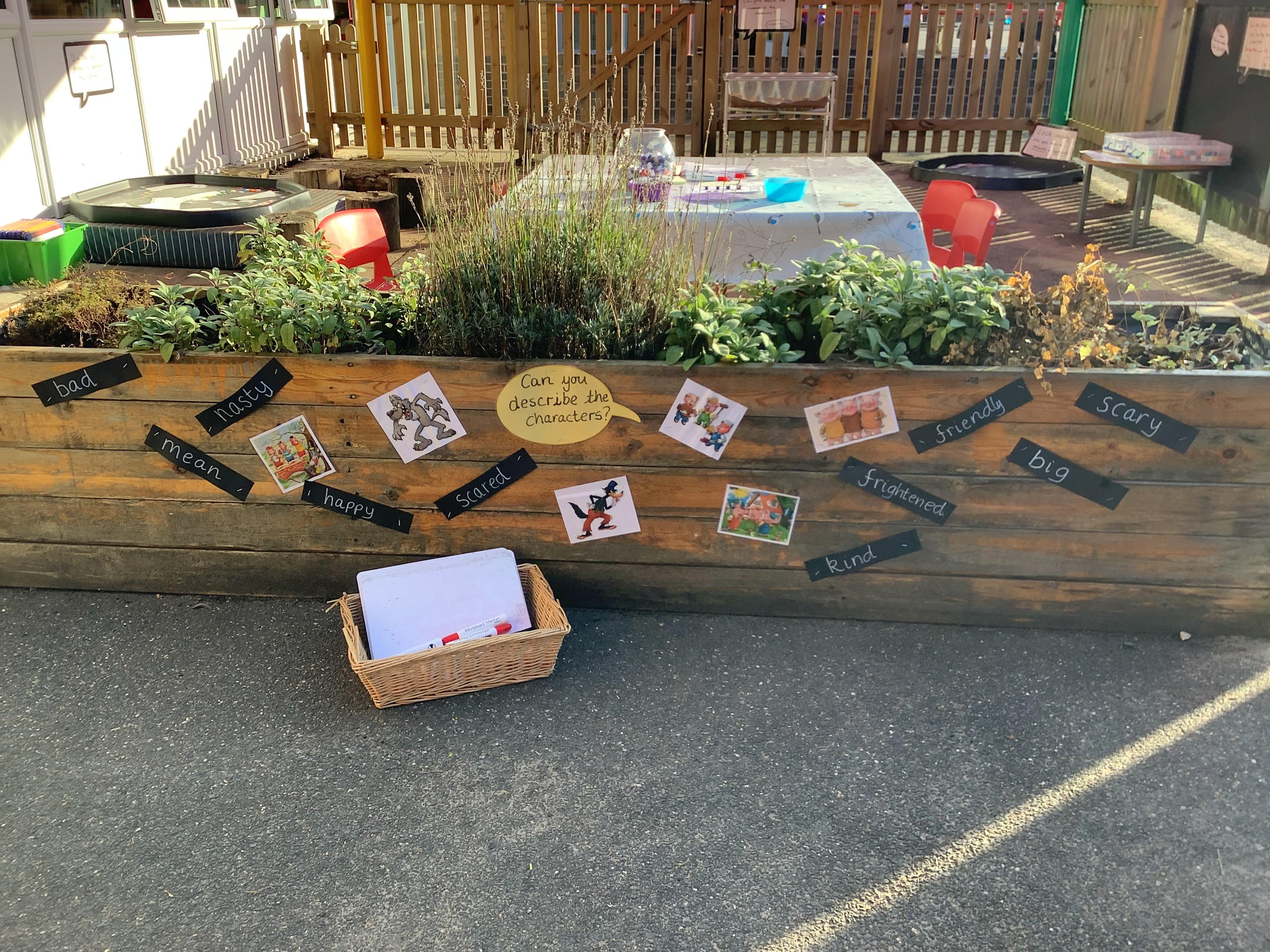 This week in English we have introduced the story of The Three Little Pigs. As part of our outside learning we have been retelling the story, sequencing the events of the story and thinking of ways to describe the characters from the story.