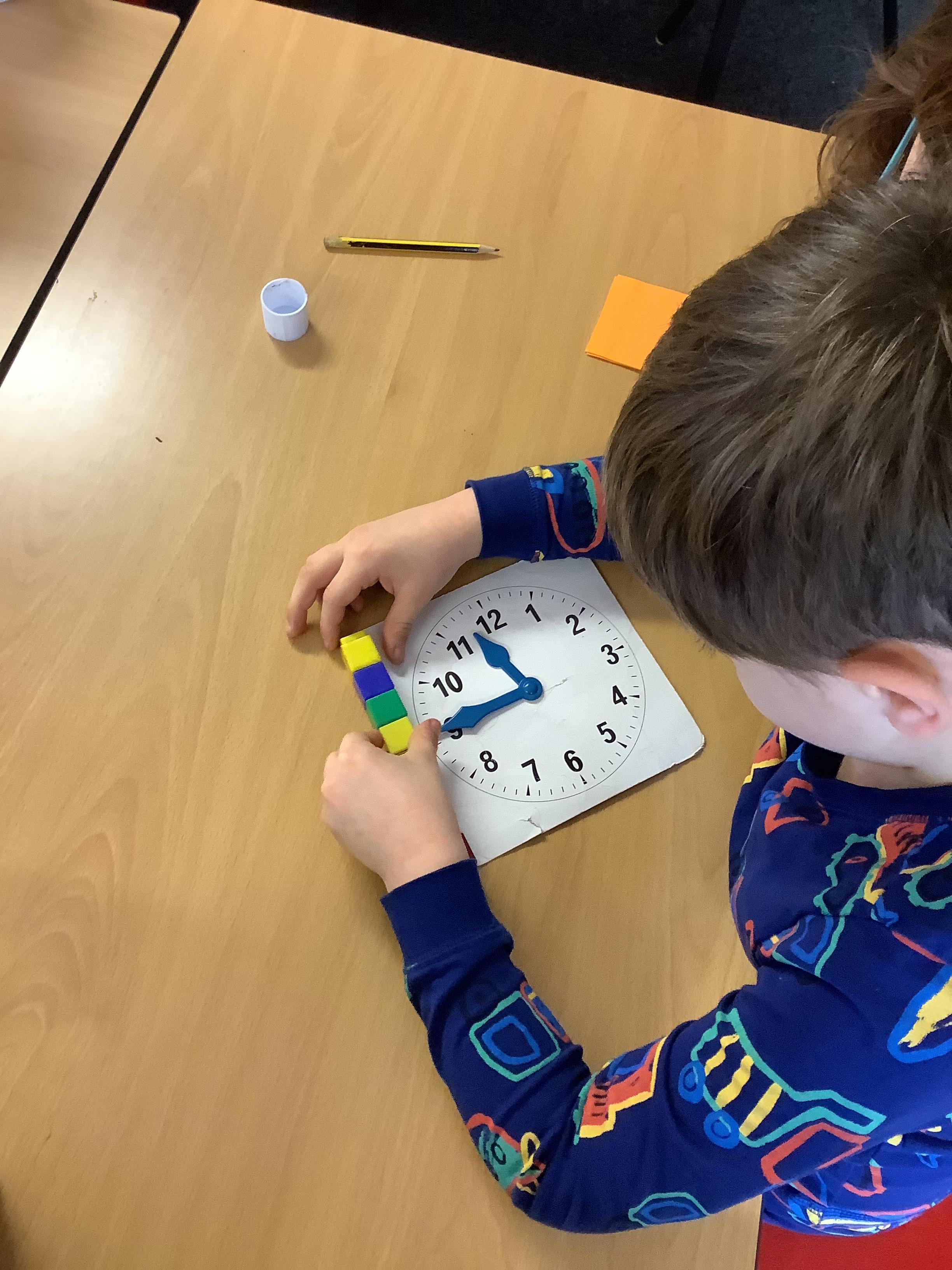 In Maths this week we are starting to explore telling the time. Today we looked at telling the time to the hour.