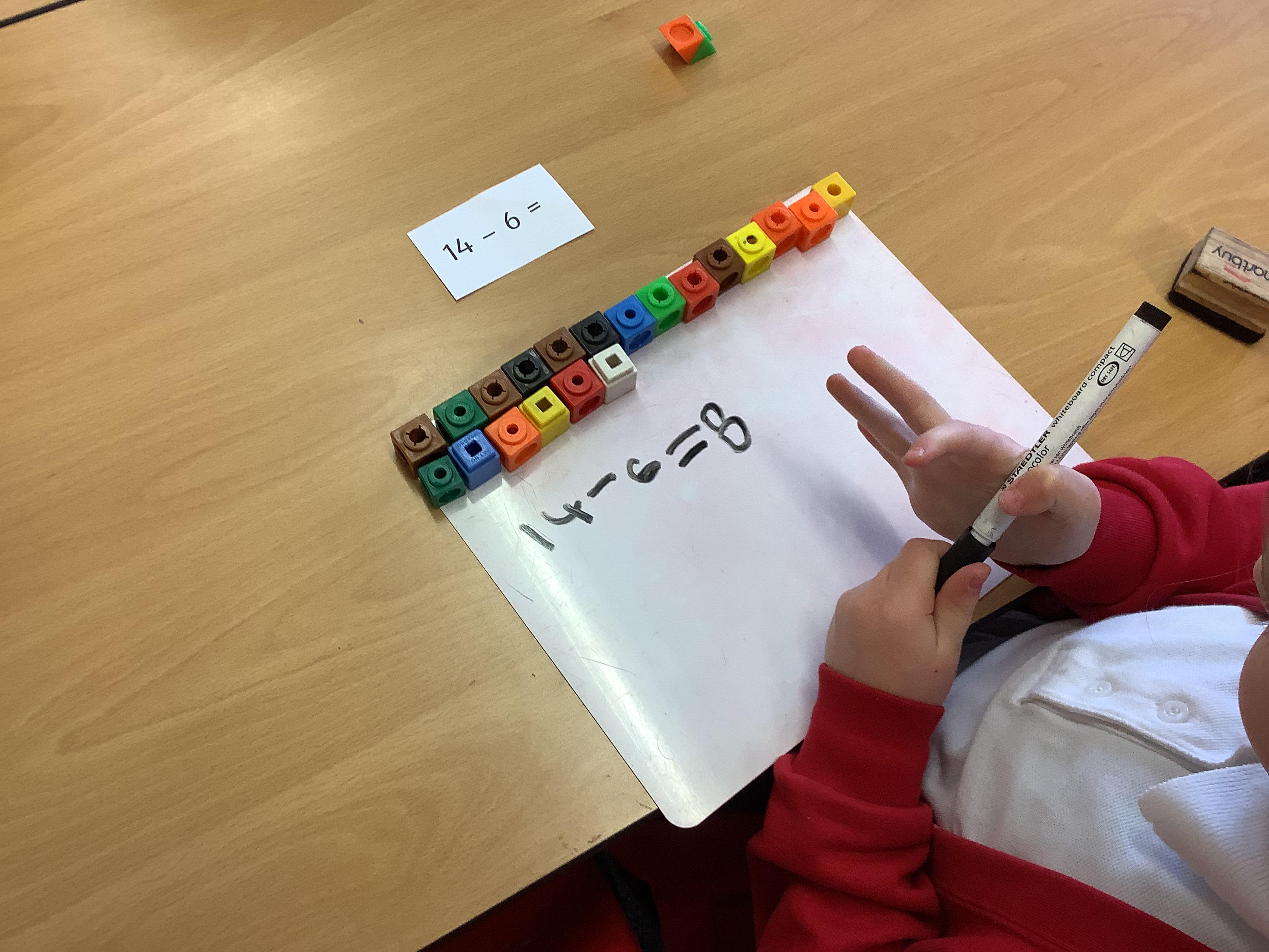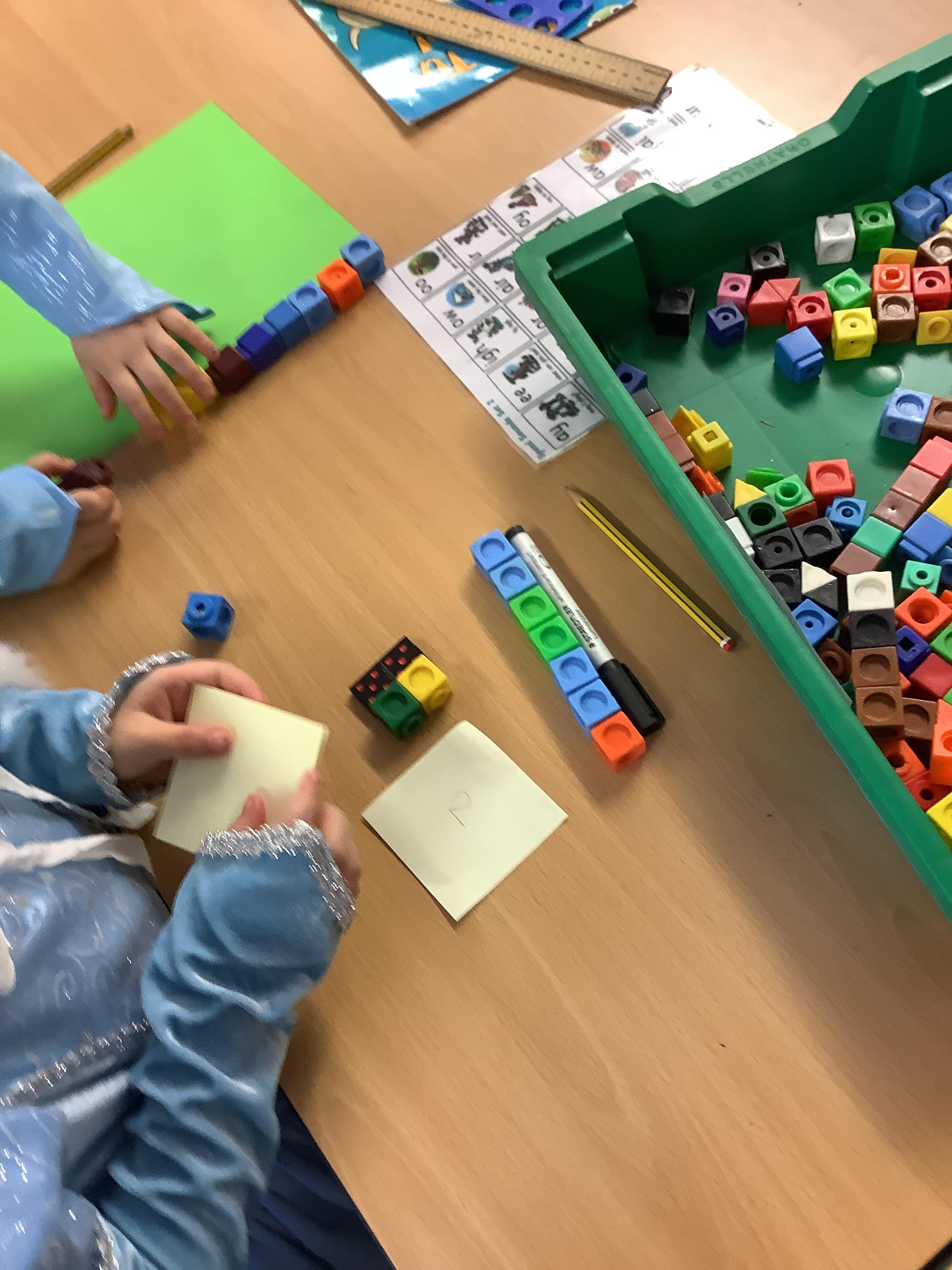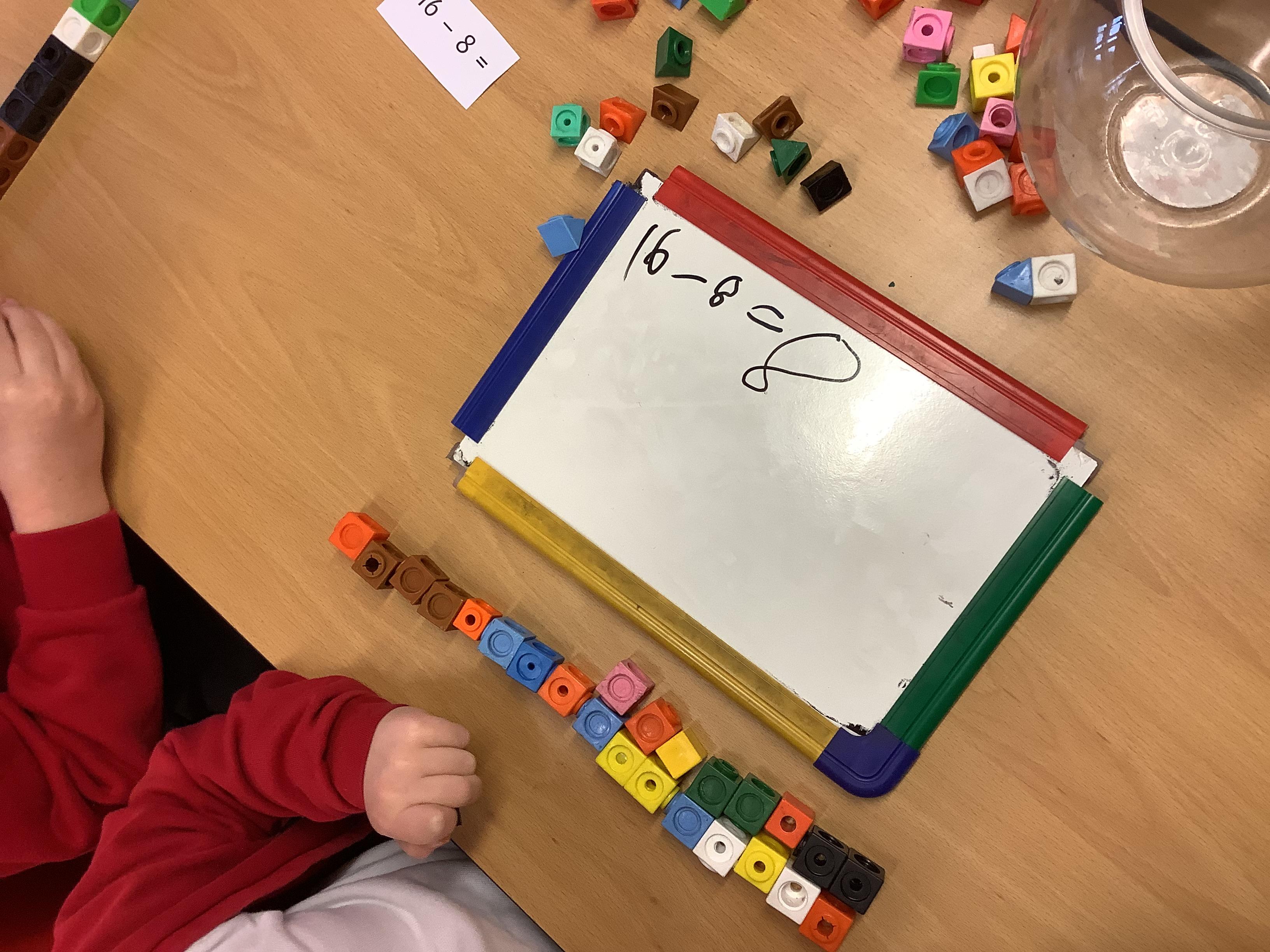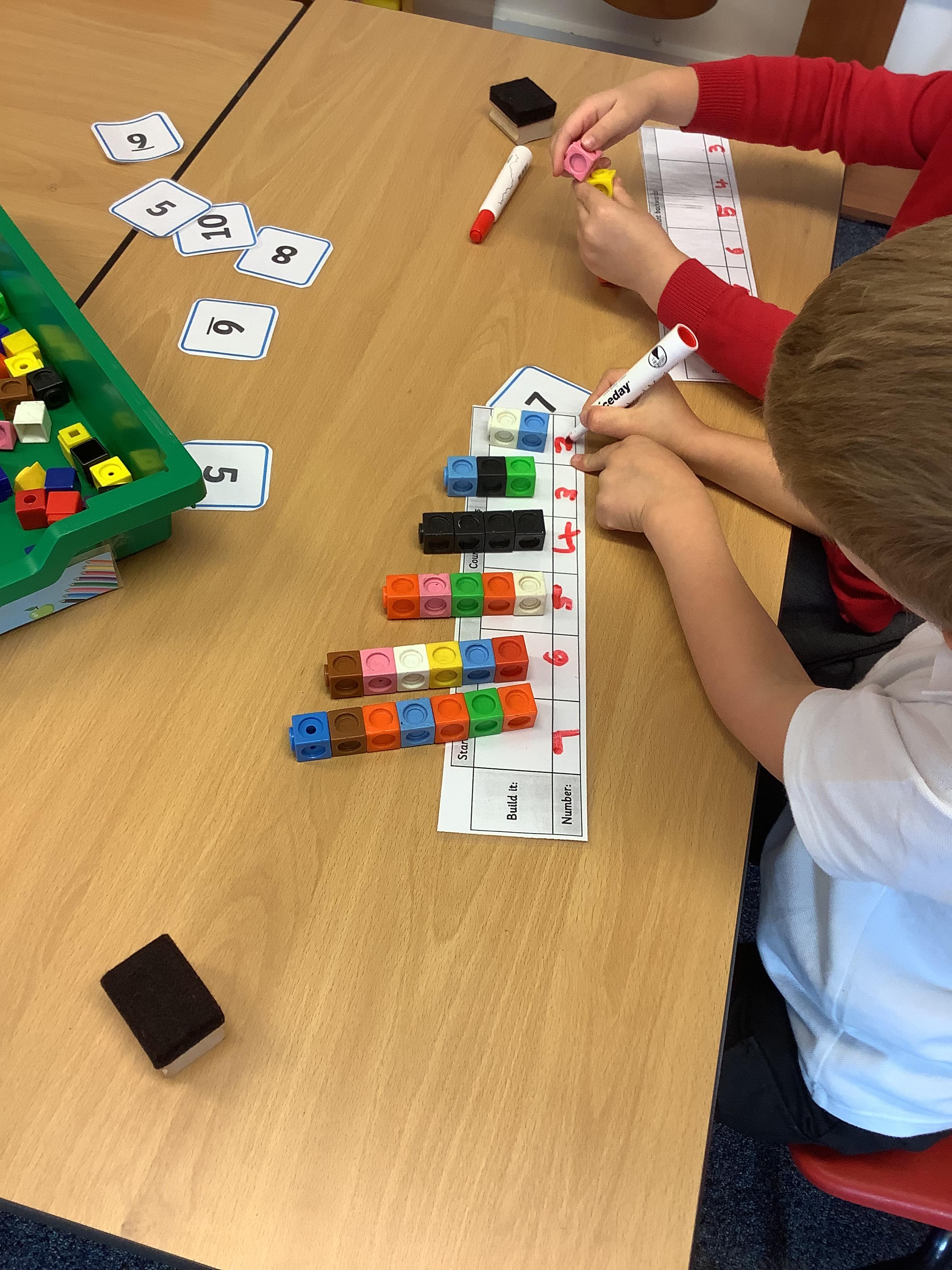In Maths this week we have been learning to find the difference between 2 numbers. We used numicon and cubes to help us.