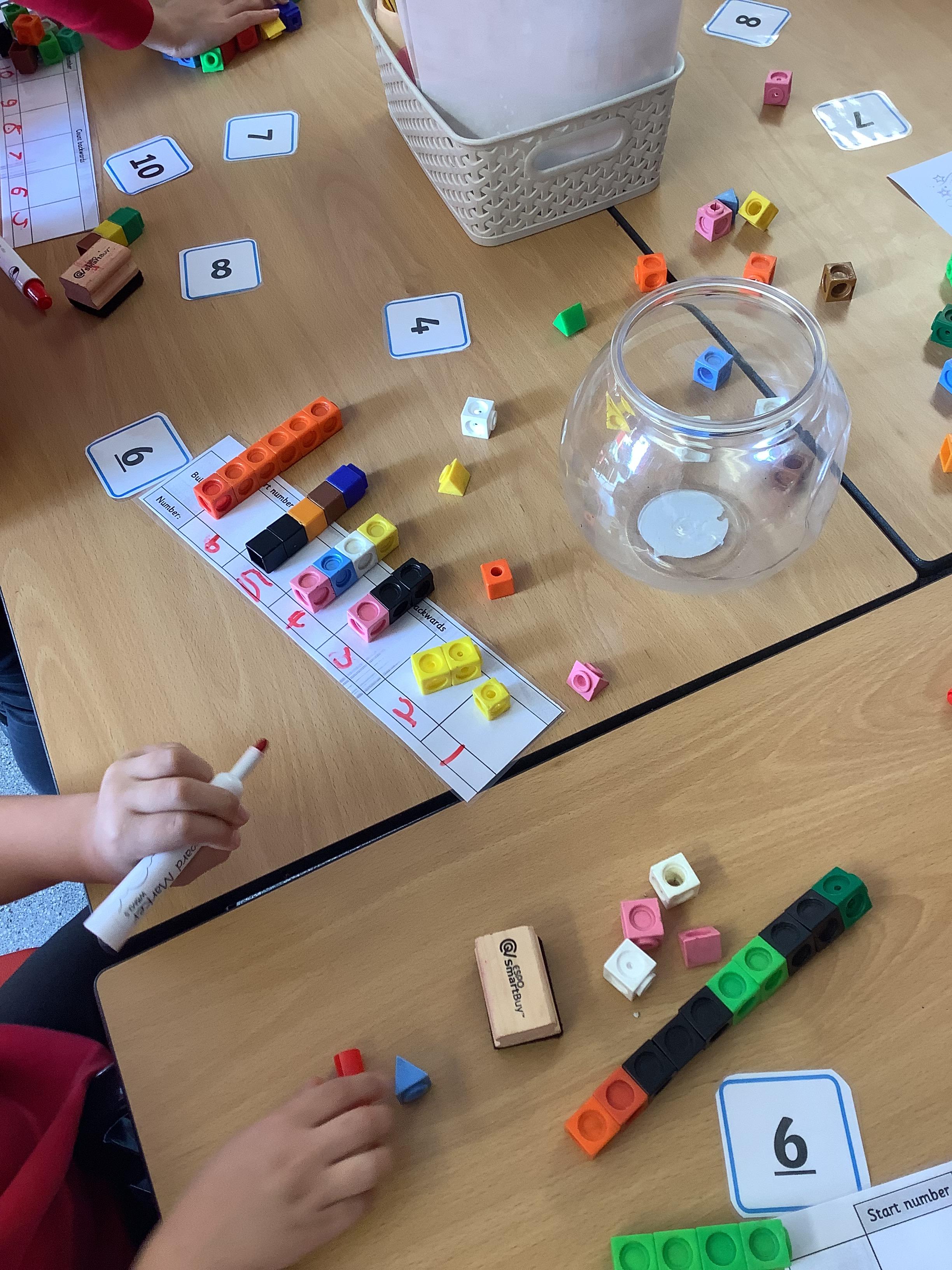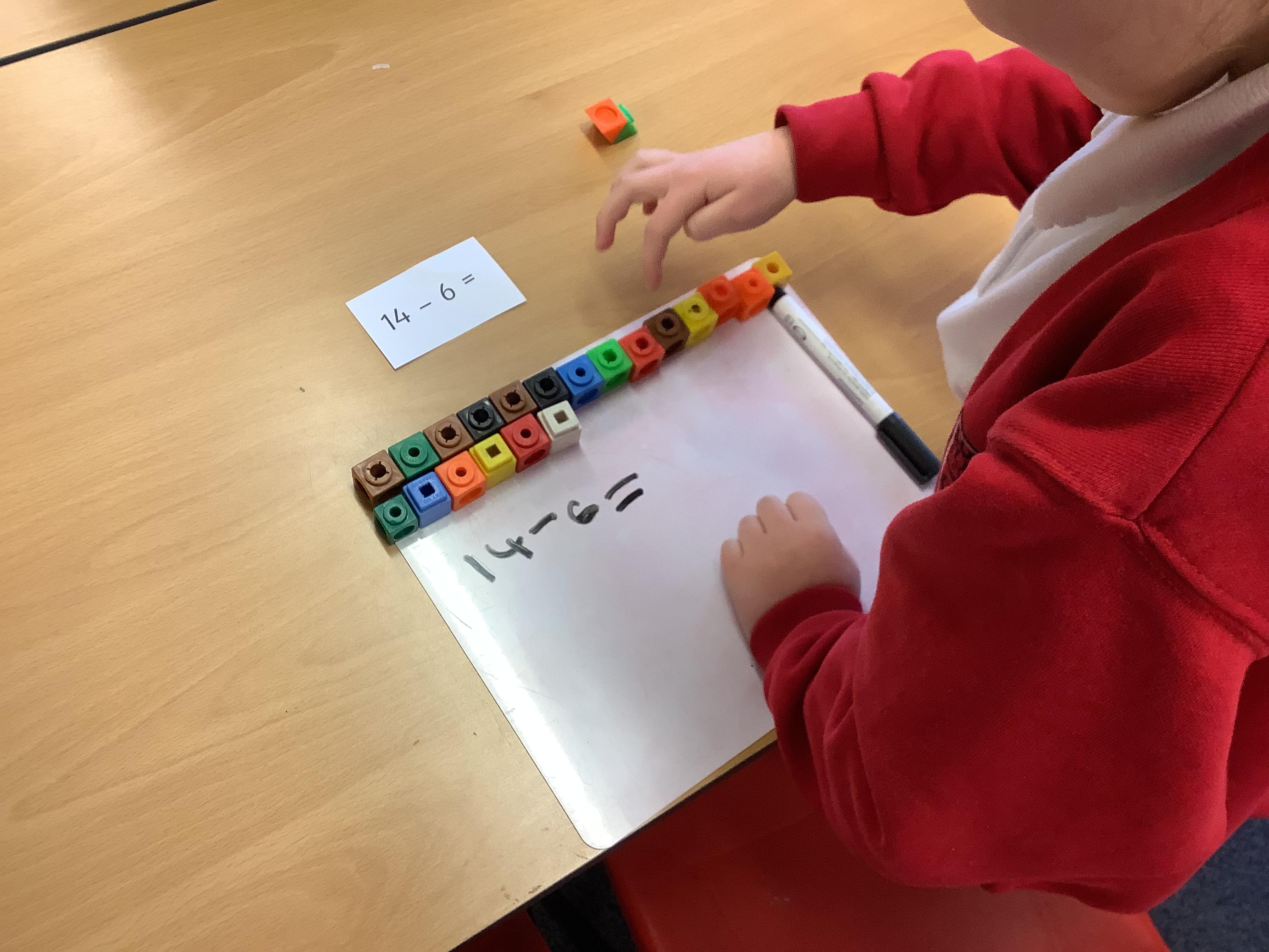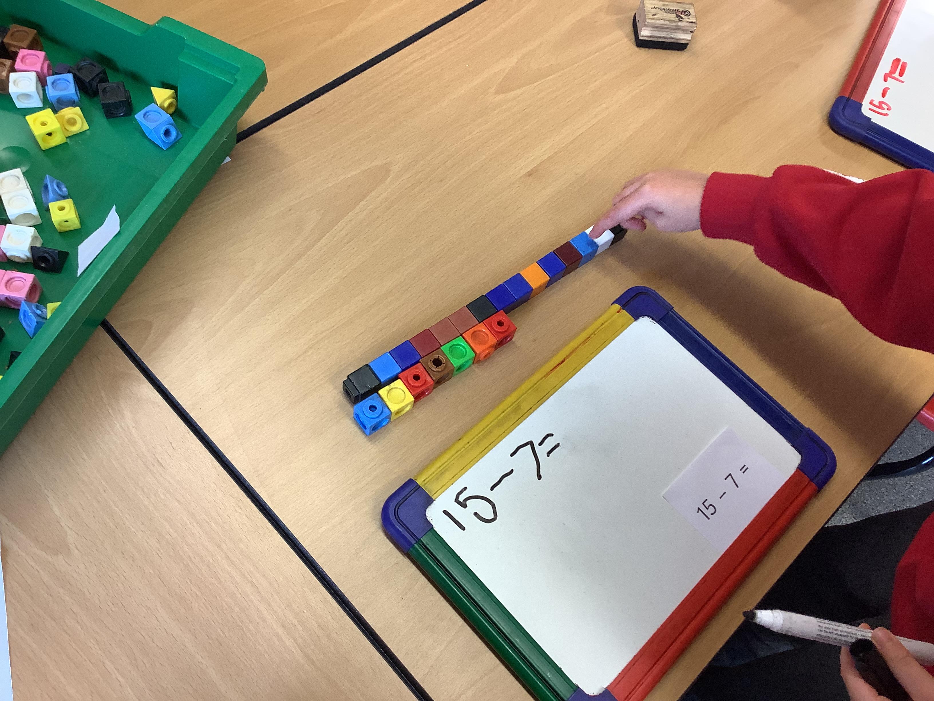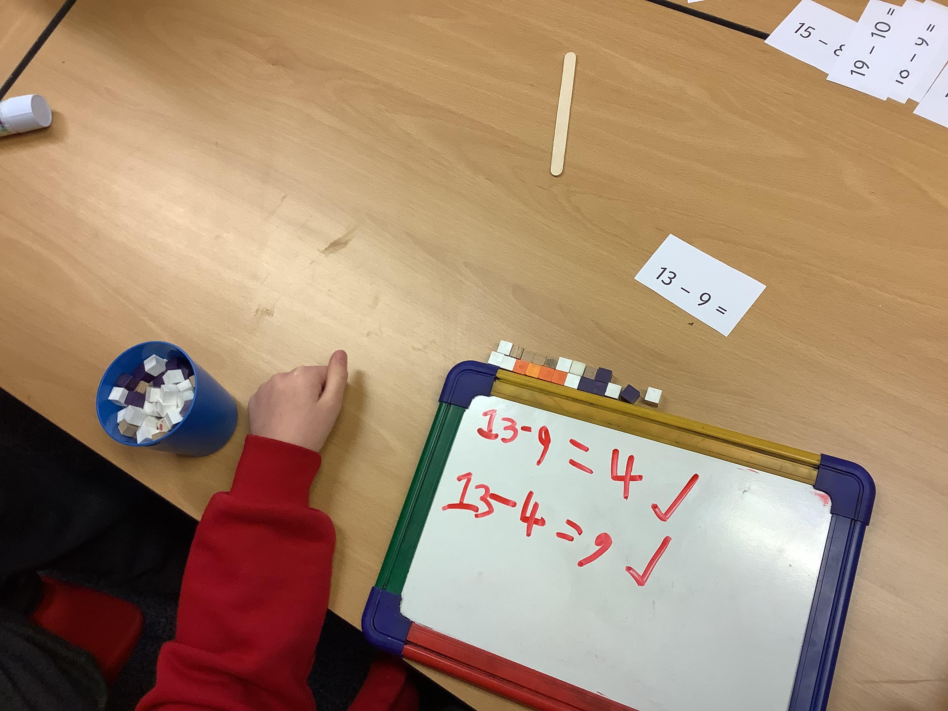 In Maths this week we have been learning to find the difference between 2 numbers. We used numicon and cubes to help us.