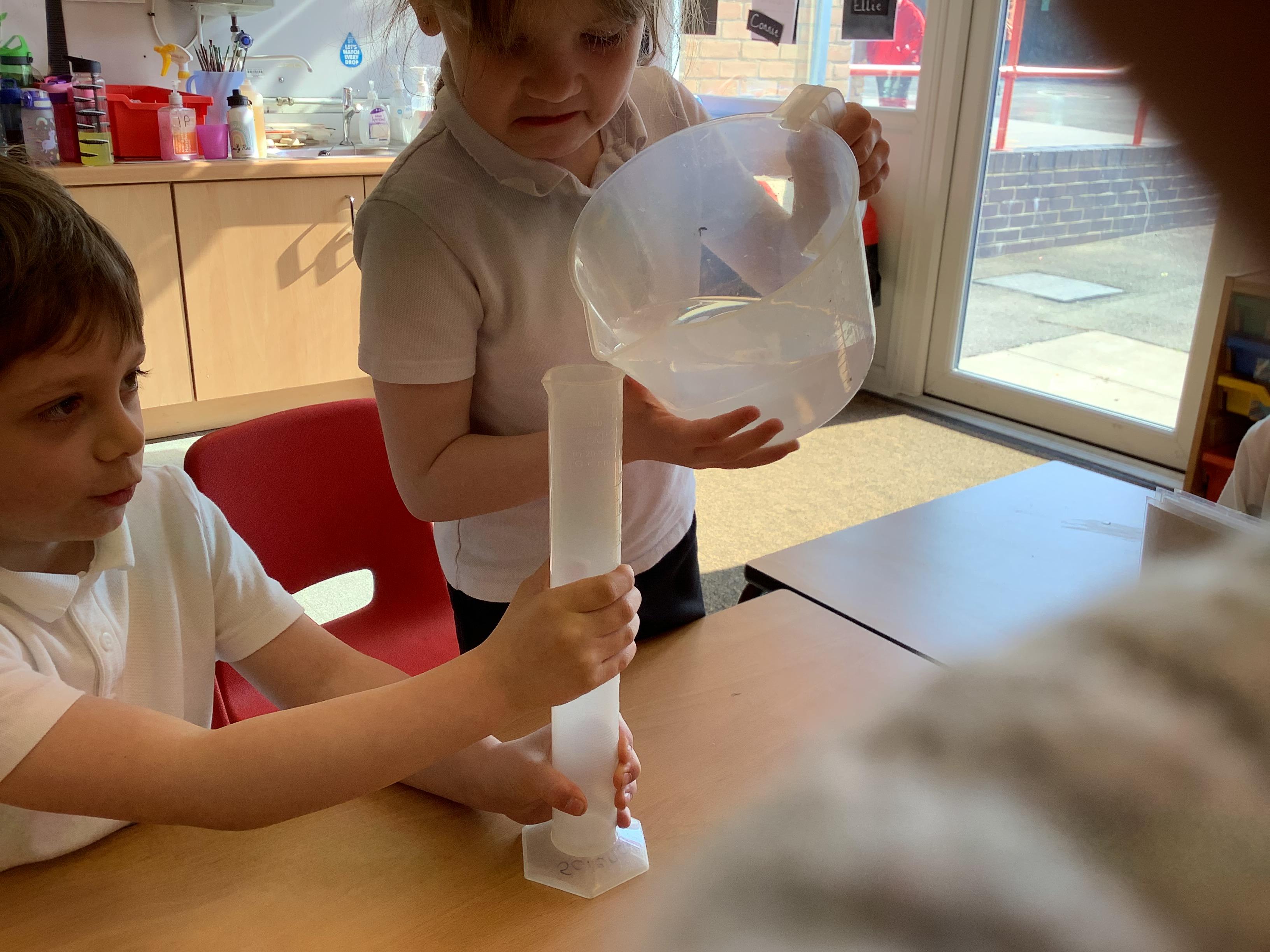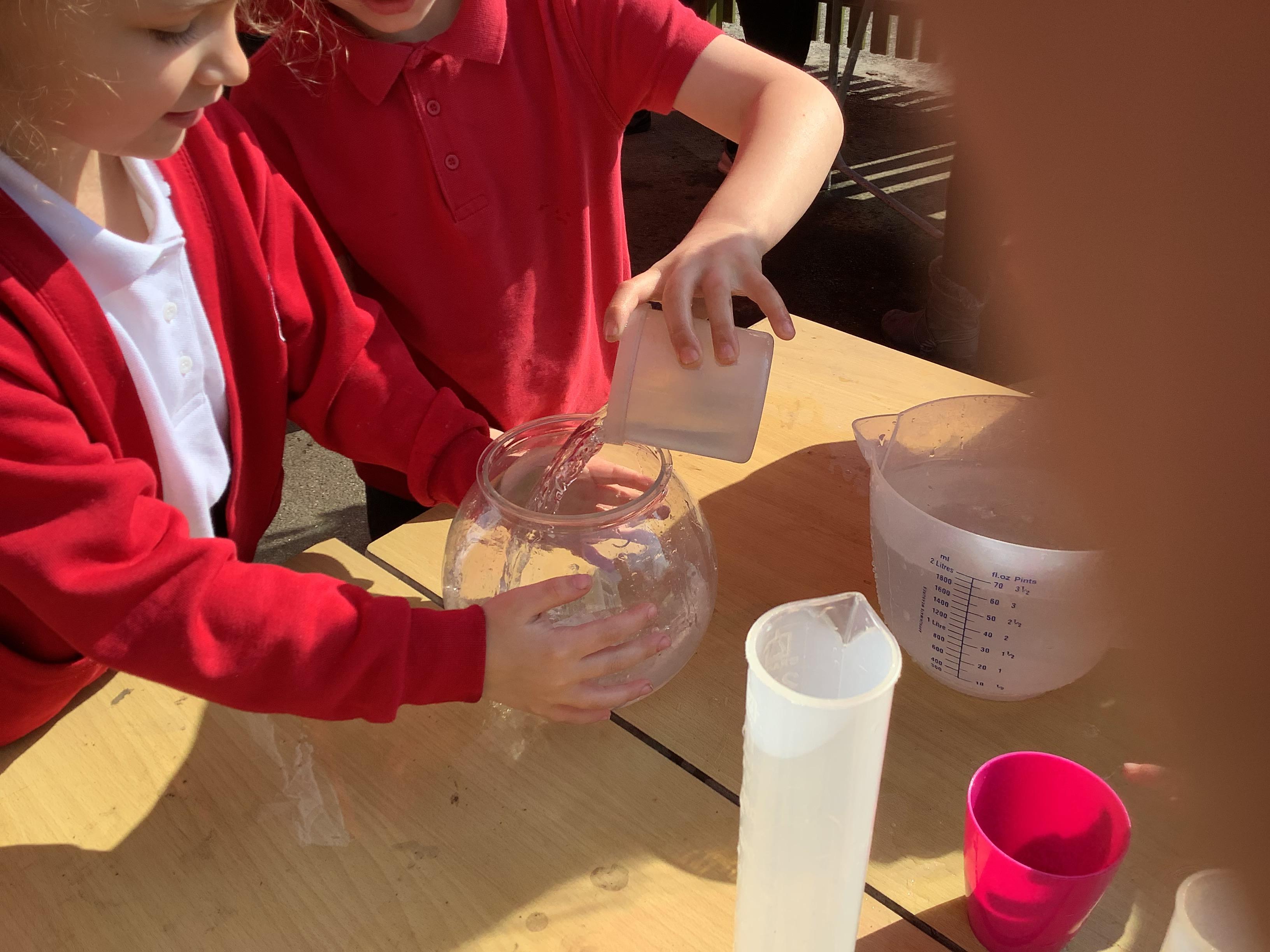 This week in Maths we are exploring capacity and volume. Today we used the language full, nearly full, half full, nearly empty and empty to describe volume. We also identified which containers had the most and the least.