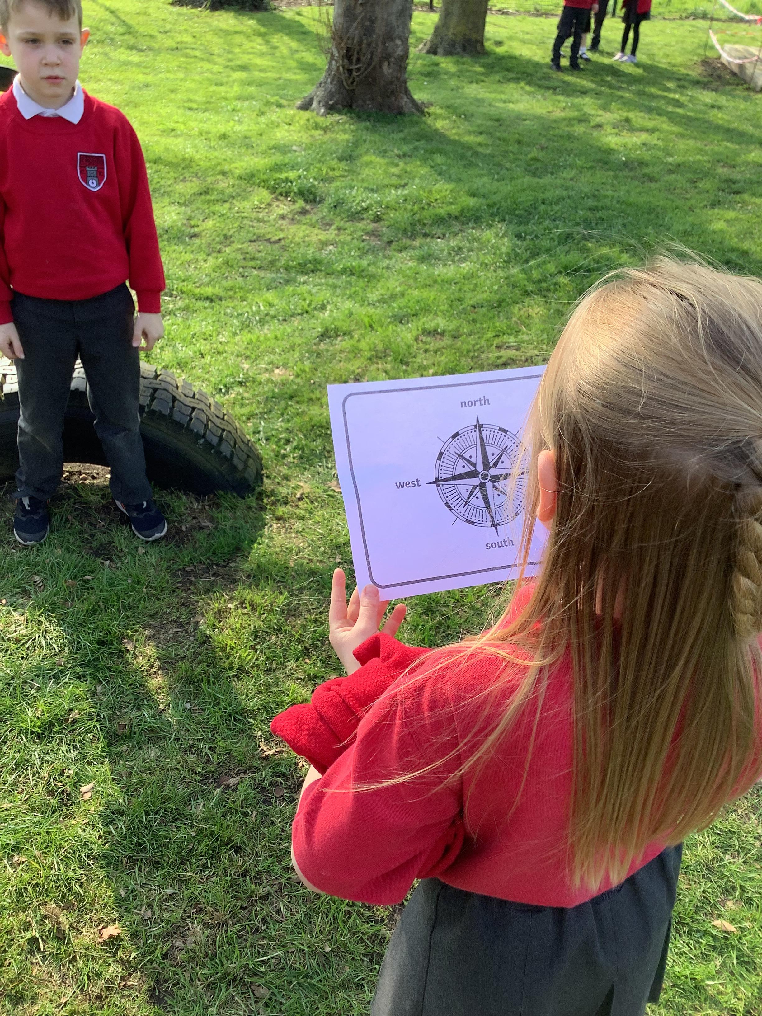 In Geography we looked at the four main points of a compass. We thought of different ways we could remember them and gave each other instructions to follow.