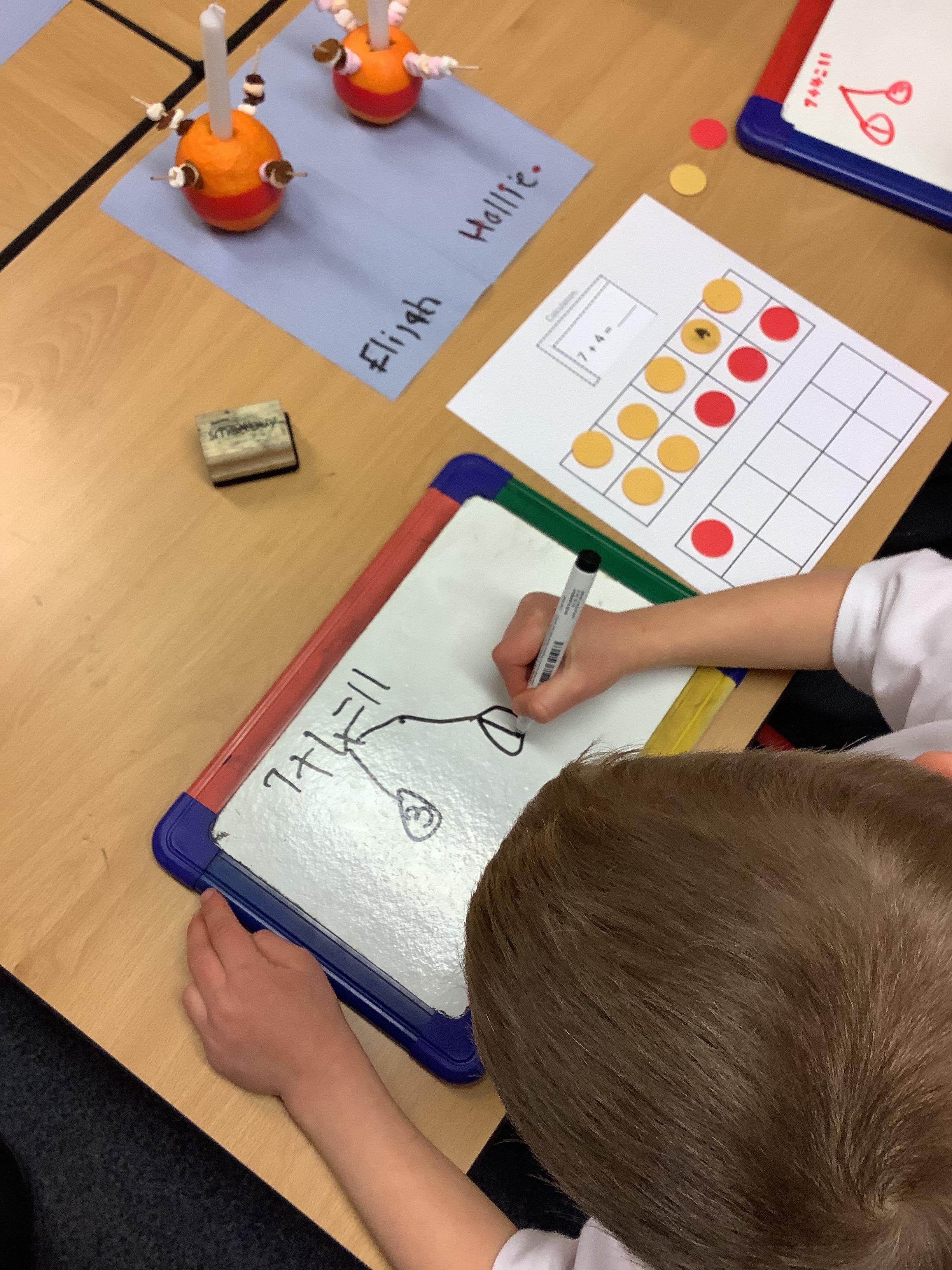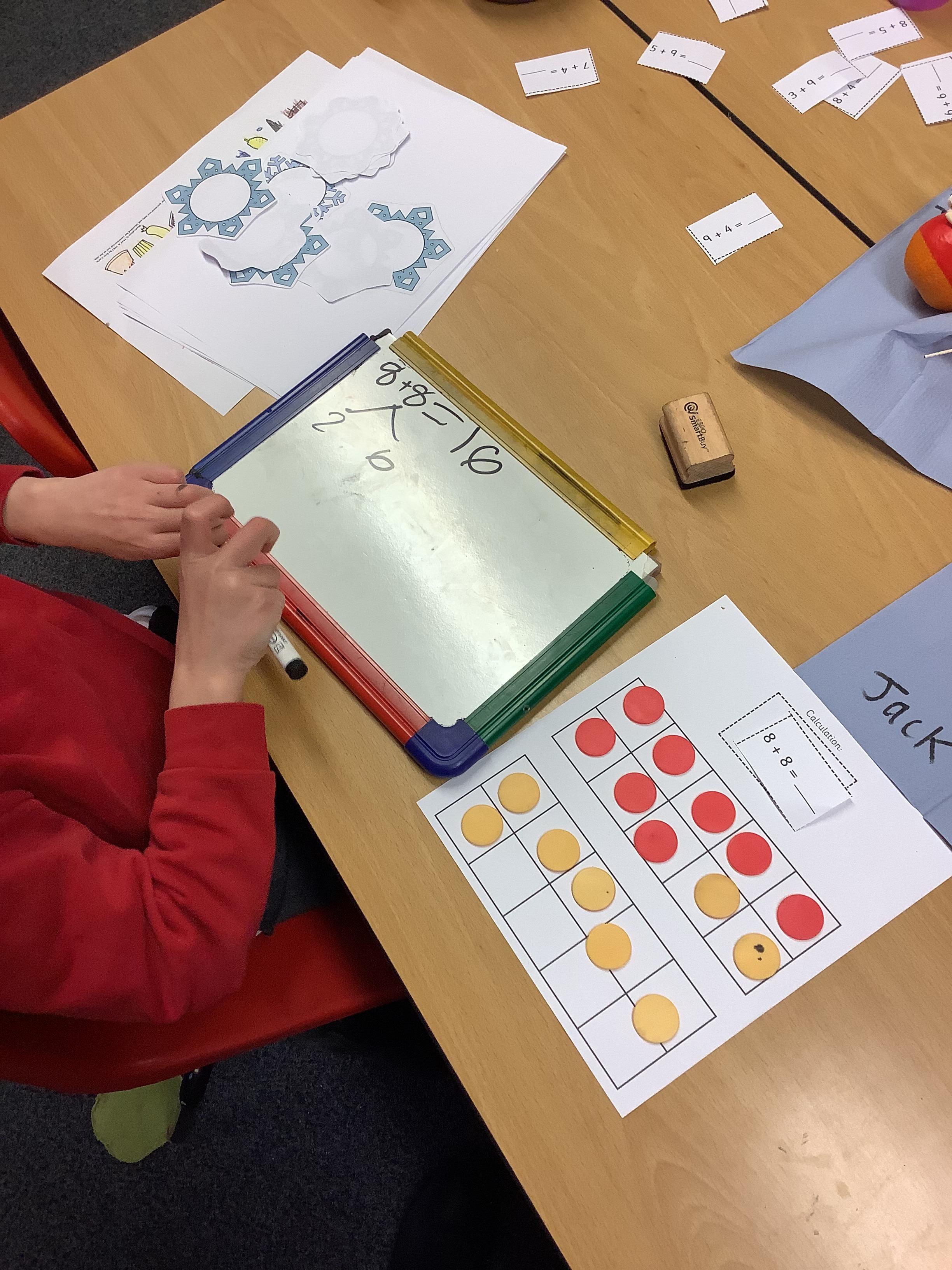 In Maths this week we have been adding numbers to 20. We used our number bonds to explore how we could add by making 10 first.