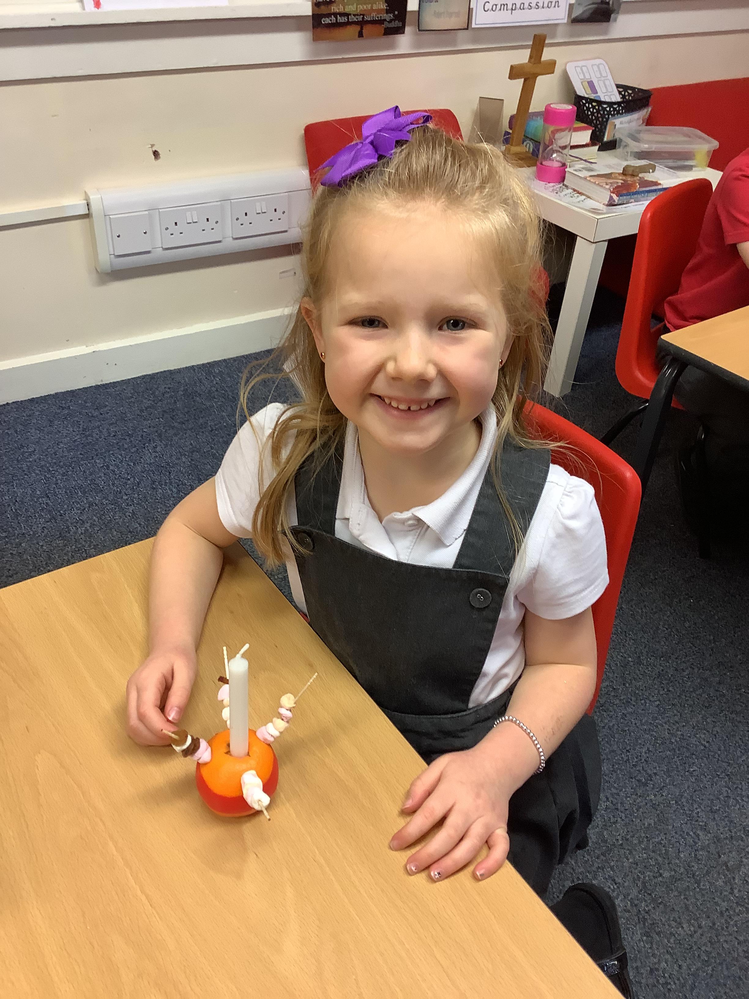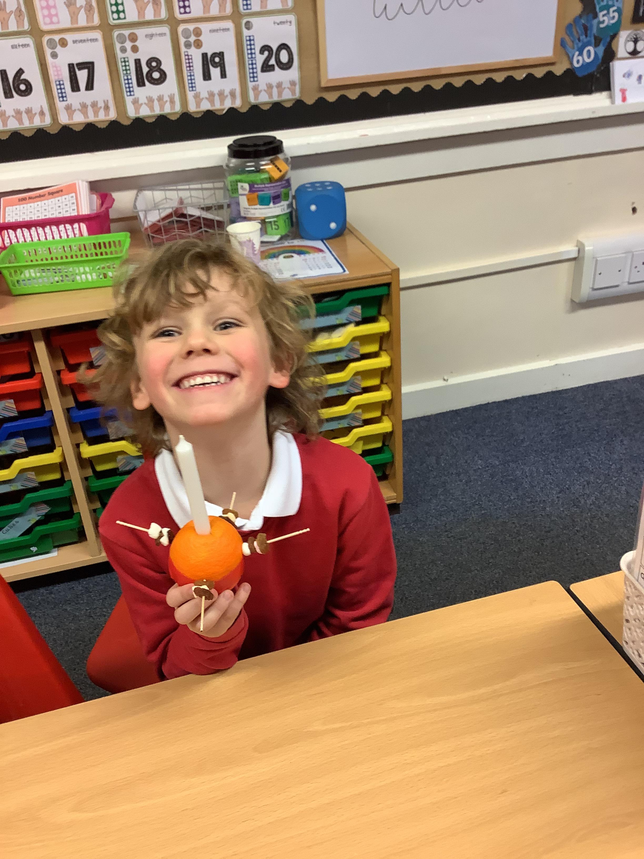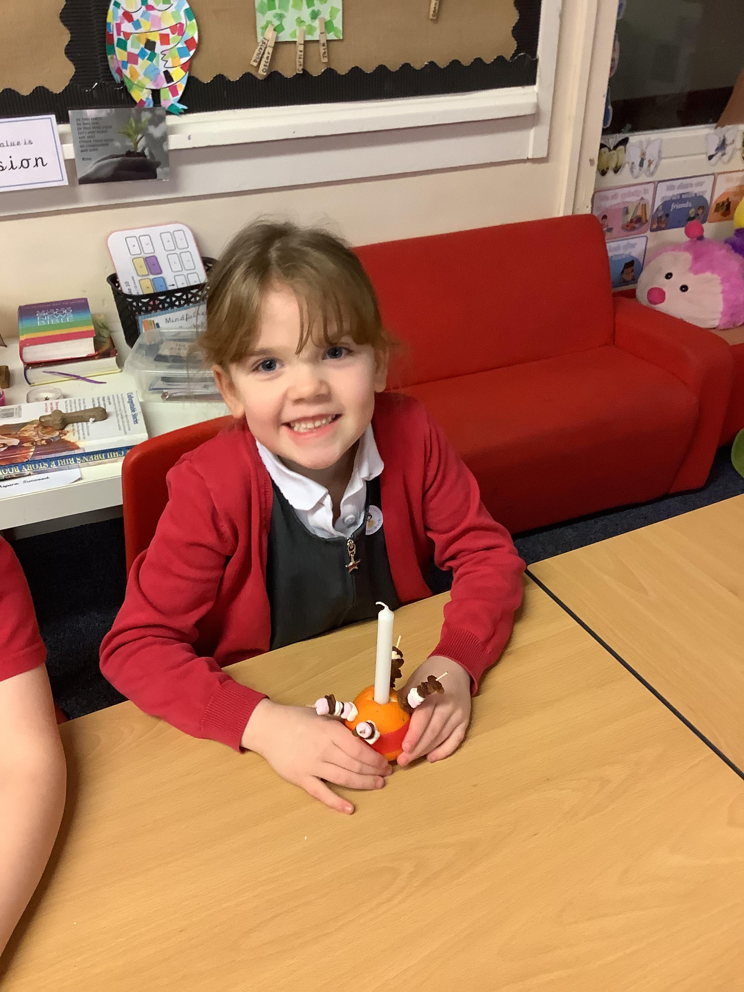 This week, we learnt about the importance of the Christingle Celebration in the Christian Faith. In small groups, we made our own Christingle using an orange, a candle, a red ribbon and dried fruit and sweets. We found out about the meaning of each part.