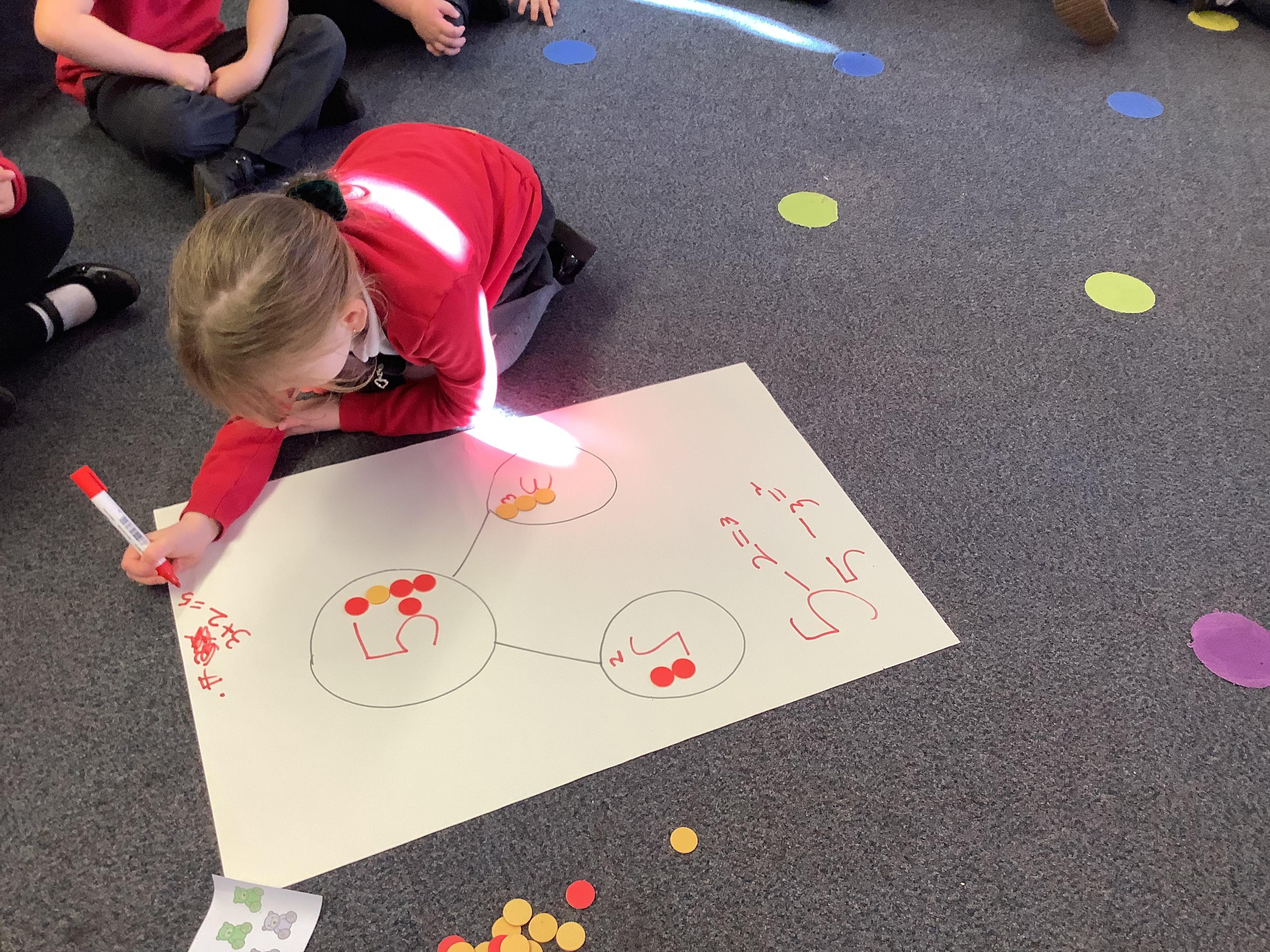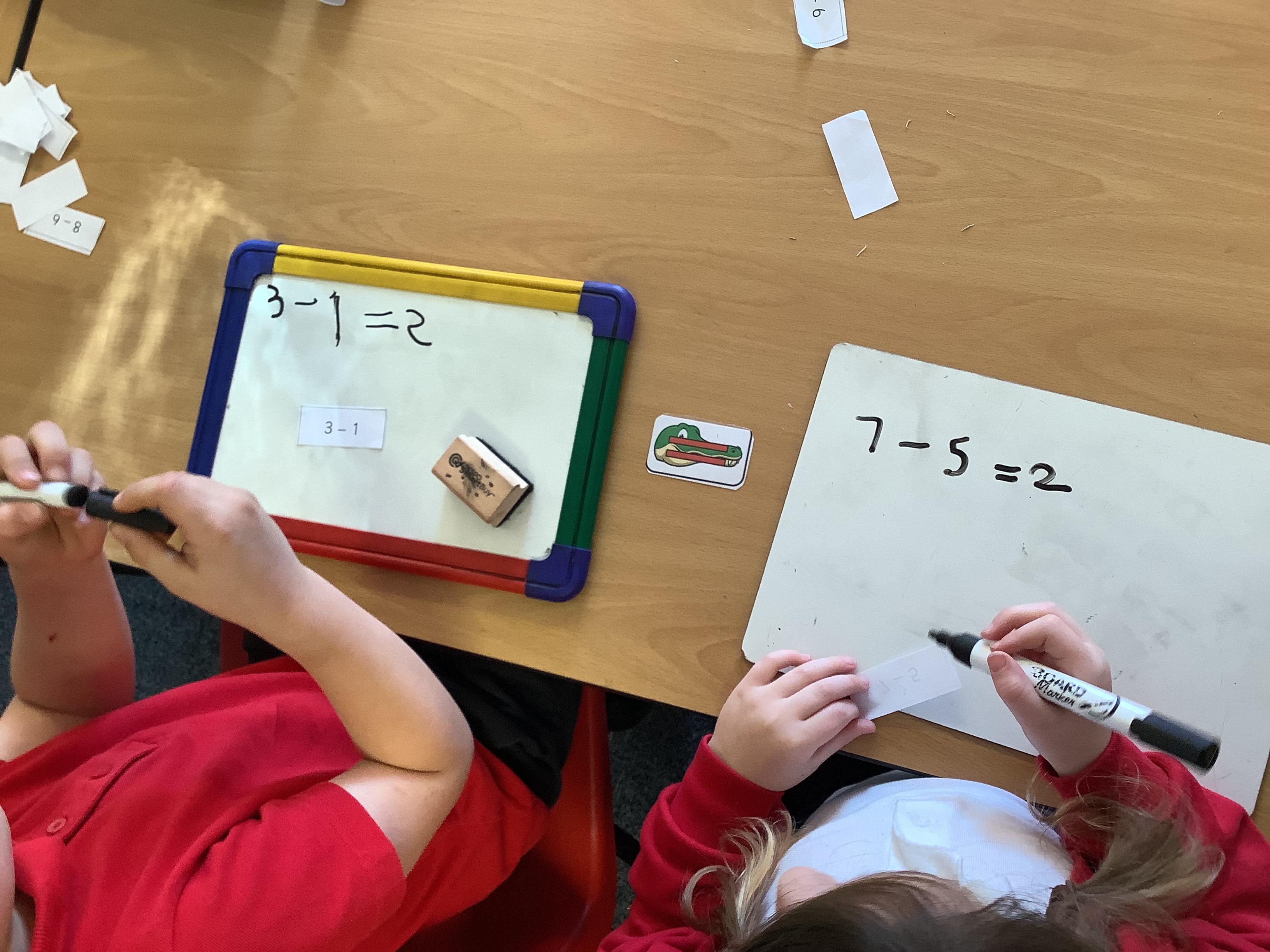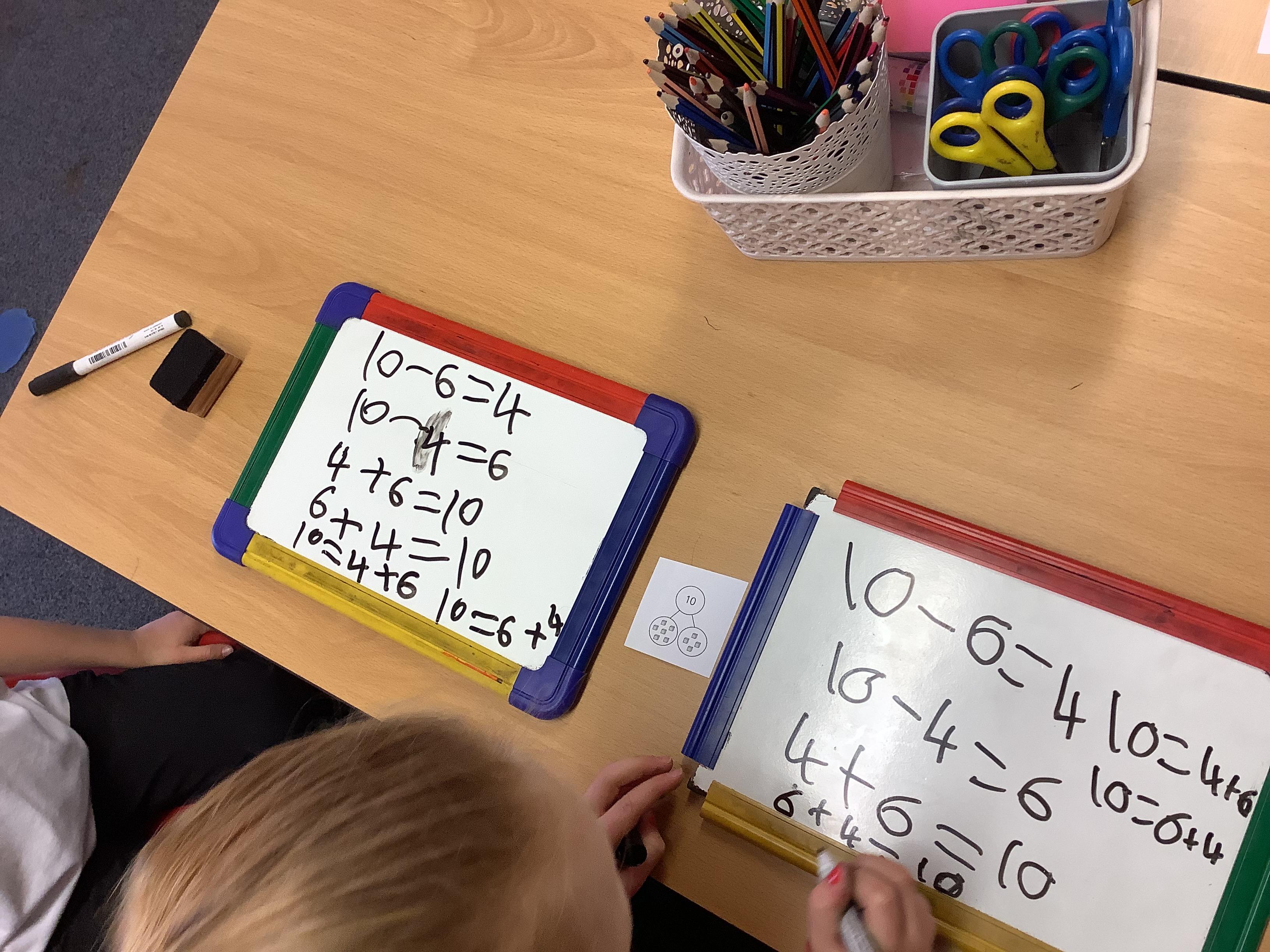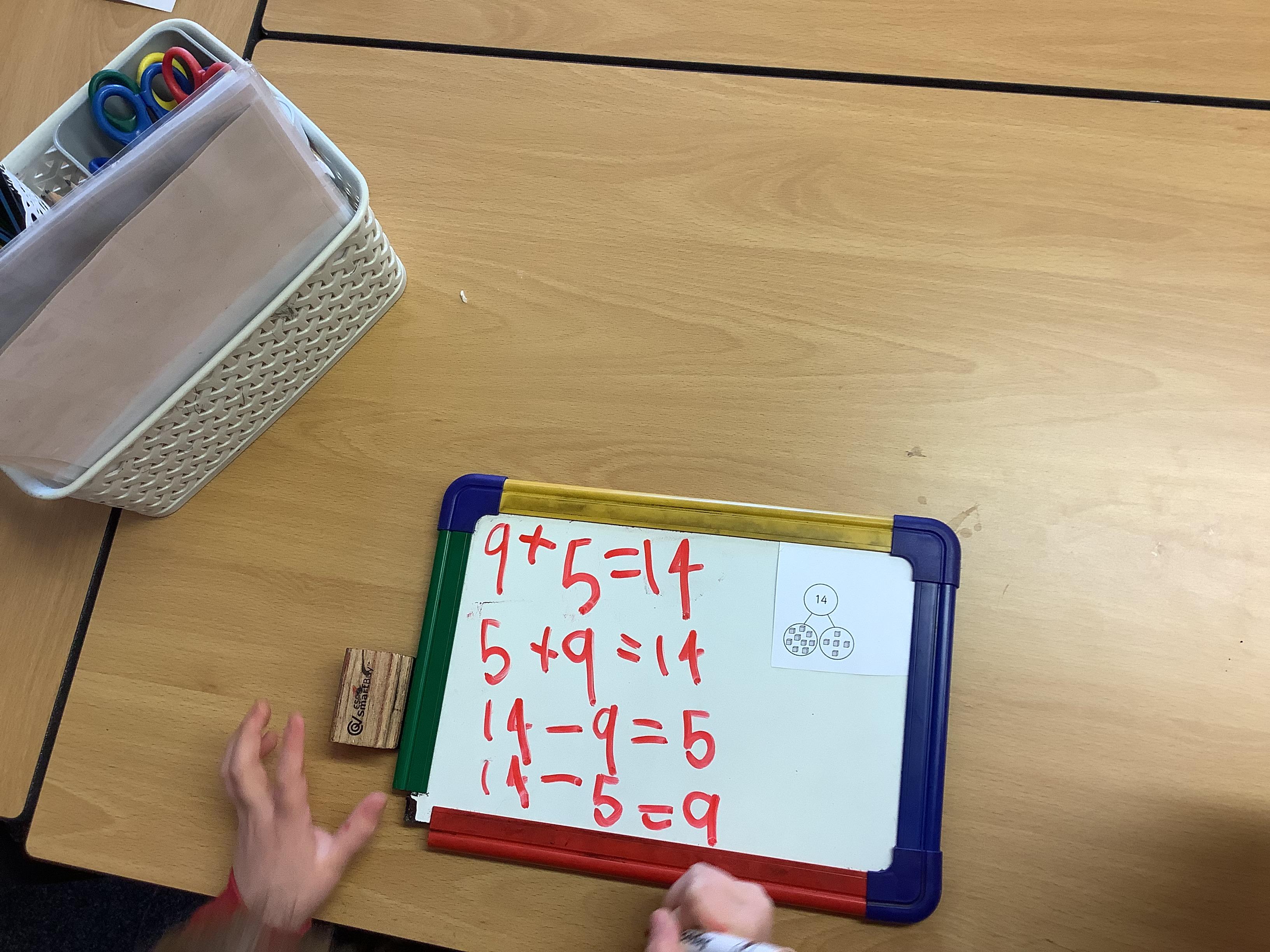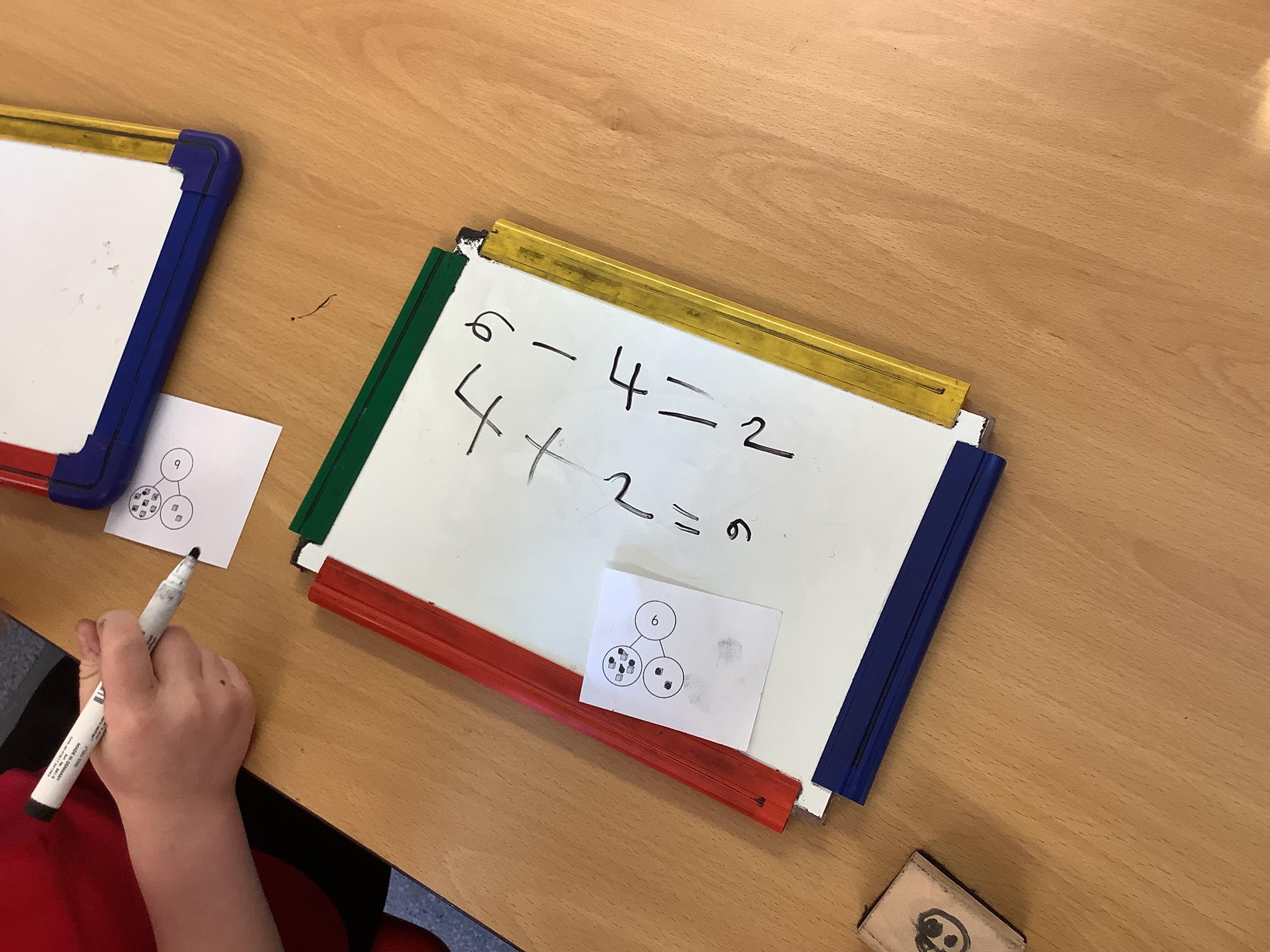 In Maths this week we have been learning all about subtraction. We have been using part whole models to help us with our understanding. Towards the end of the week we started to look at fact families and how we could find different addition and subtraction facts to match our part whole models.