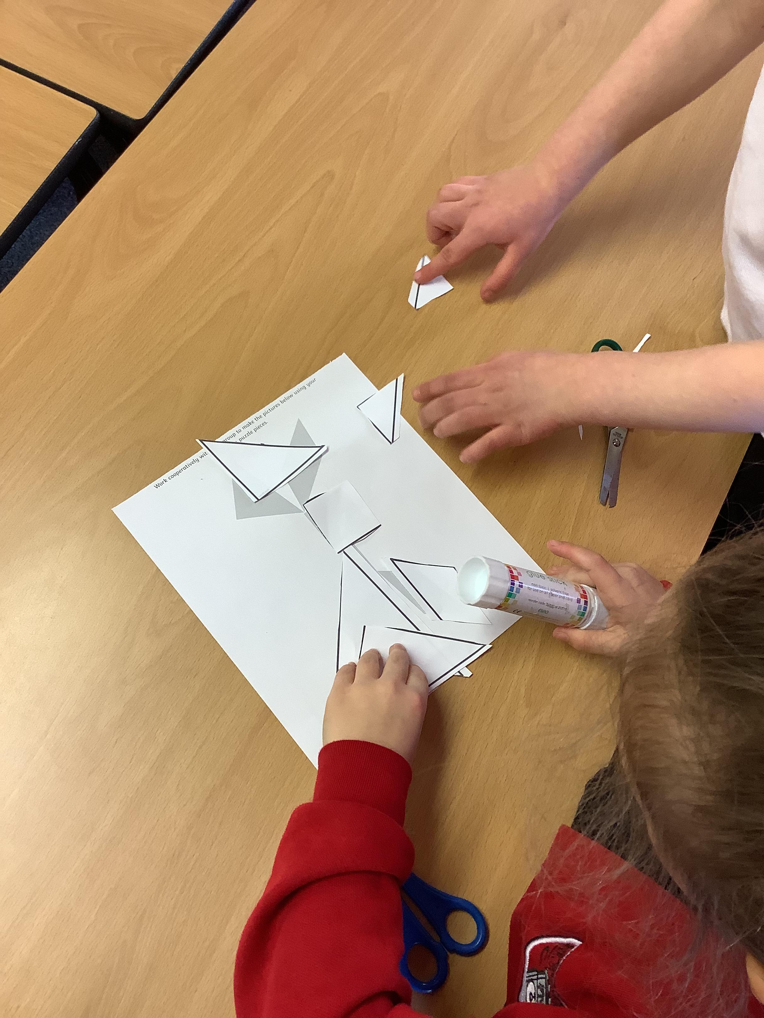 Team work makes the dream work! In our PSHE we had to work cooperatively with a partner to work out the tangram picture. It was tricky but when we worked together we got the job done!