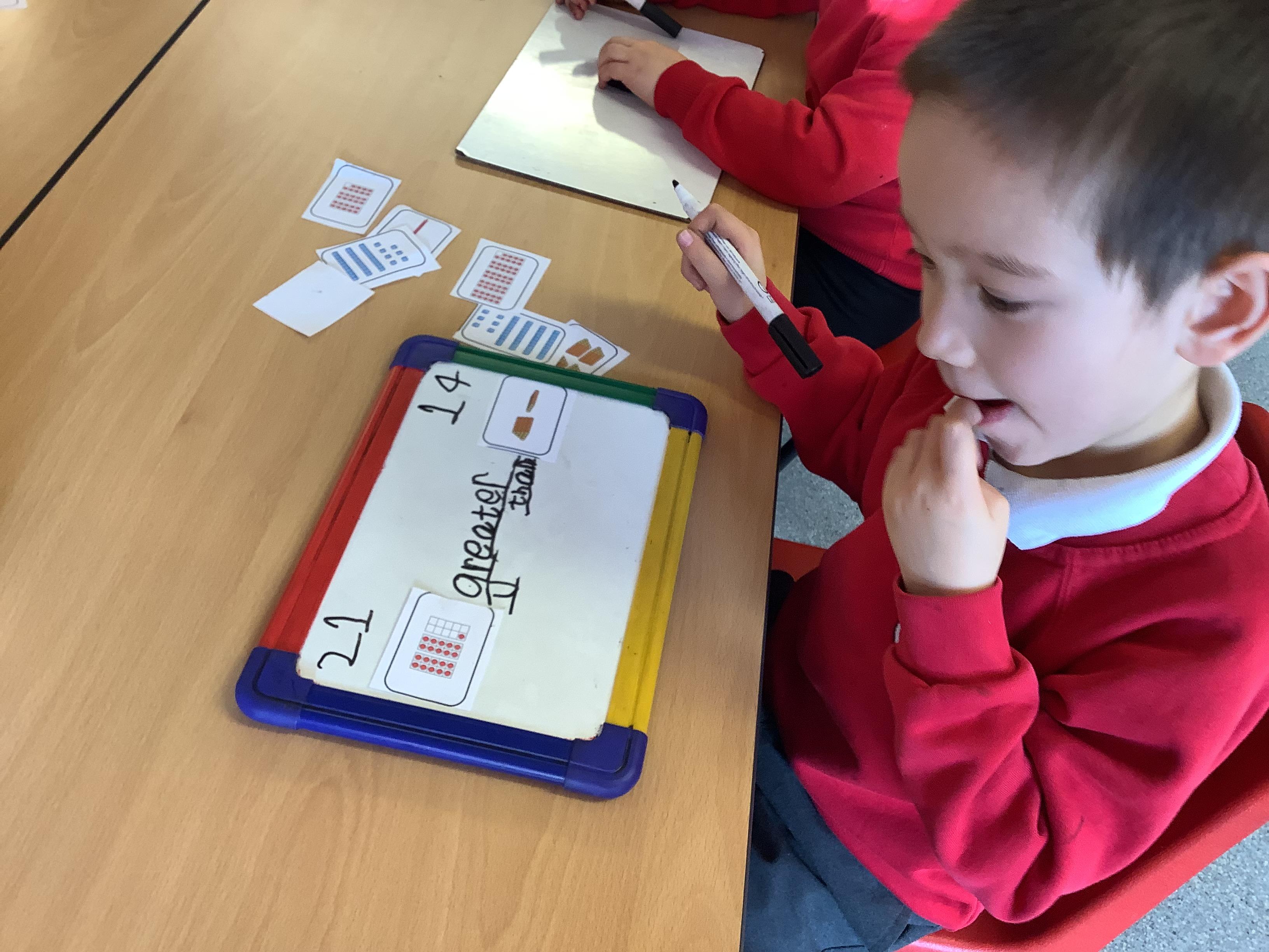 In Maths this week we have been using the language greater than, less than and equal to to compare numbers to 20.