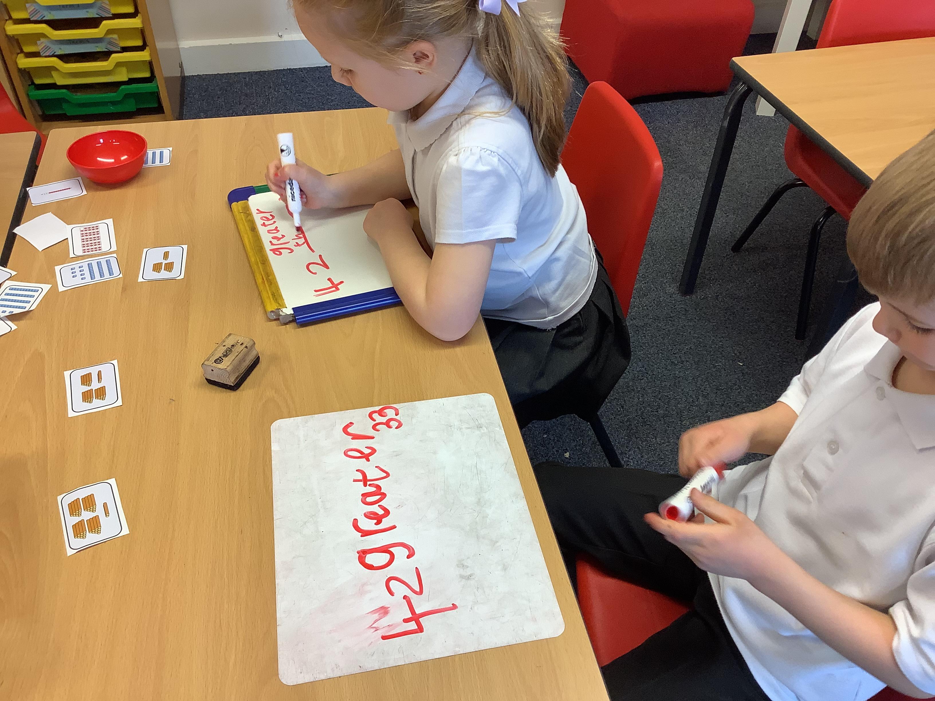In Maths this week, we have been comparing number sentences using greater than, less than and equal to.
