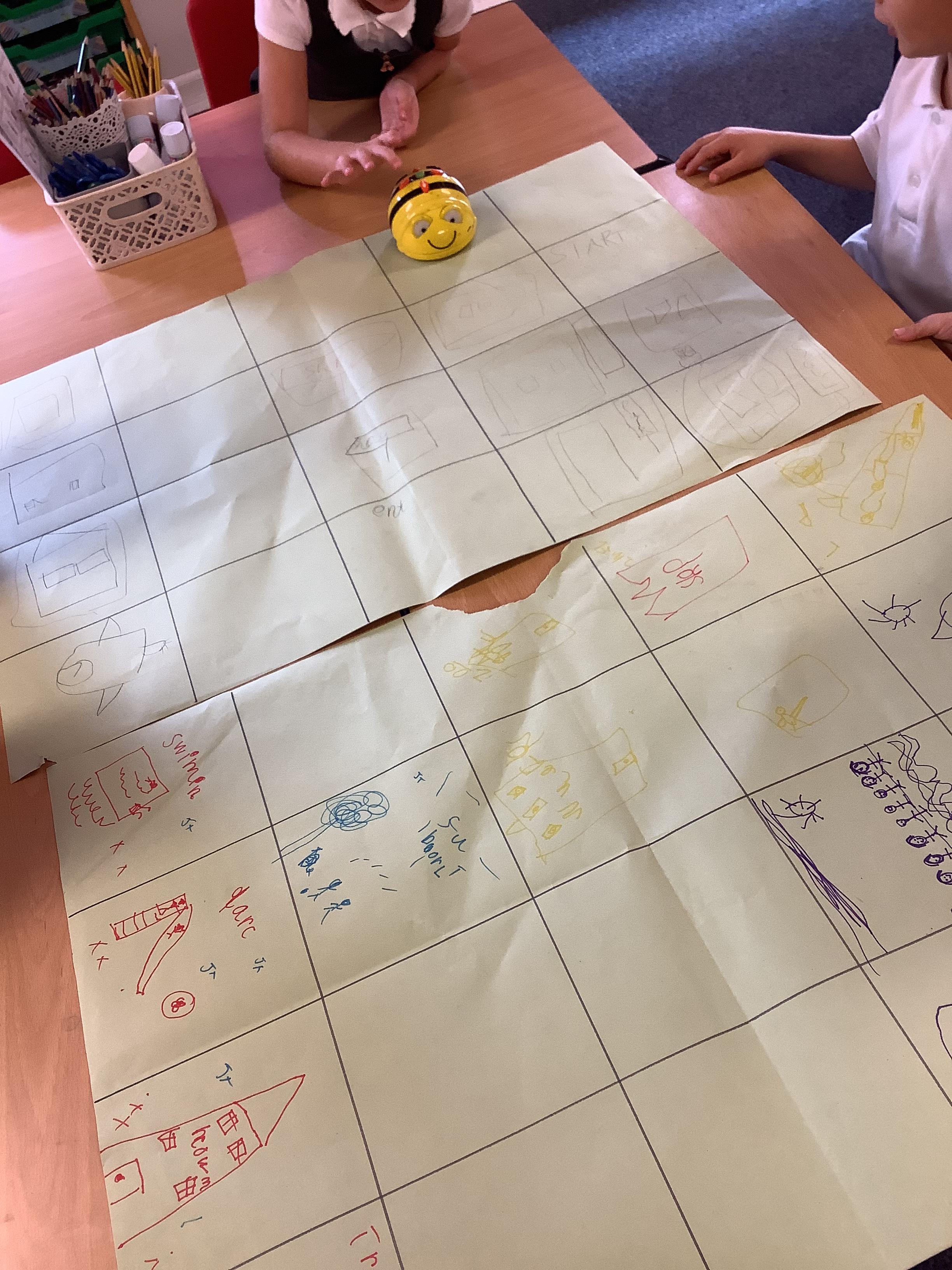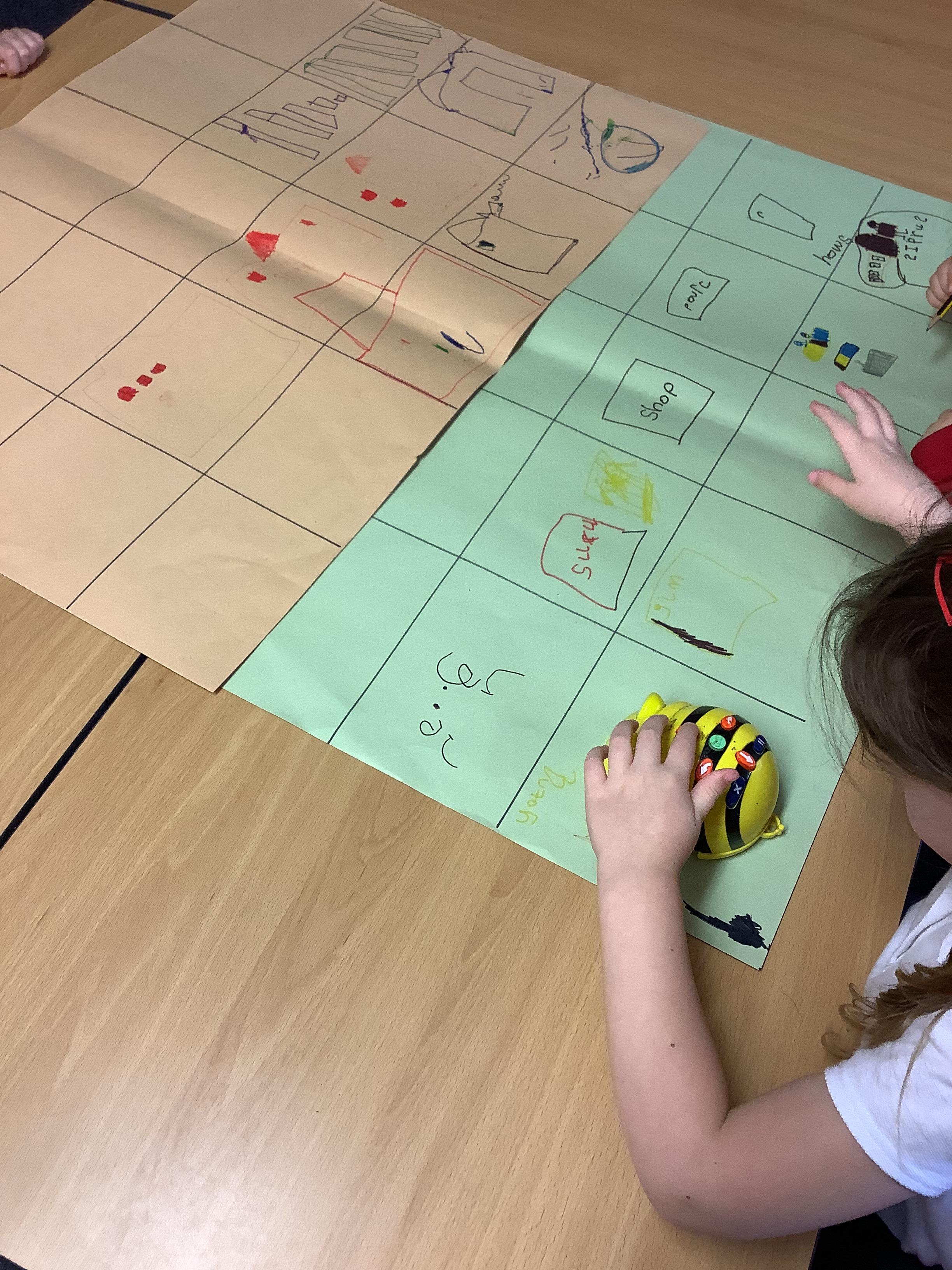 In our computing lessons, we have designed our own bee-bot worlds and explored programming the bee-bots to move in different directions.