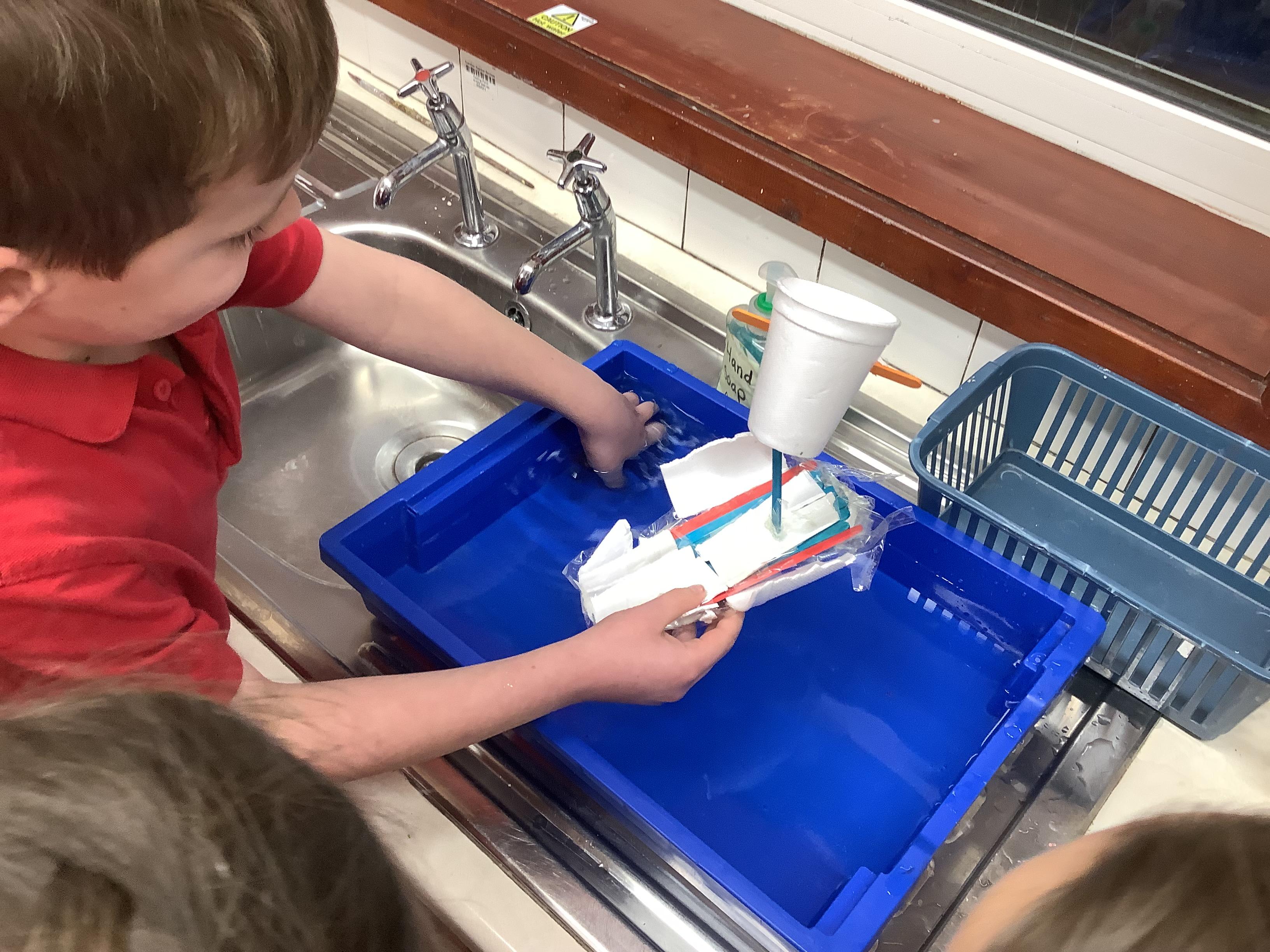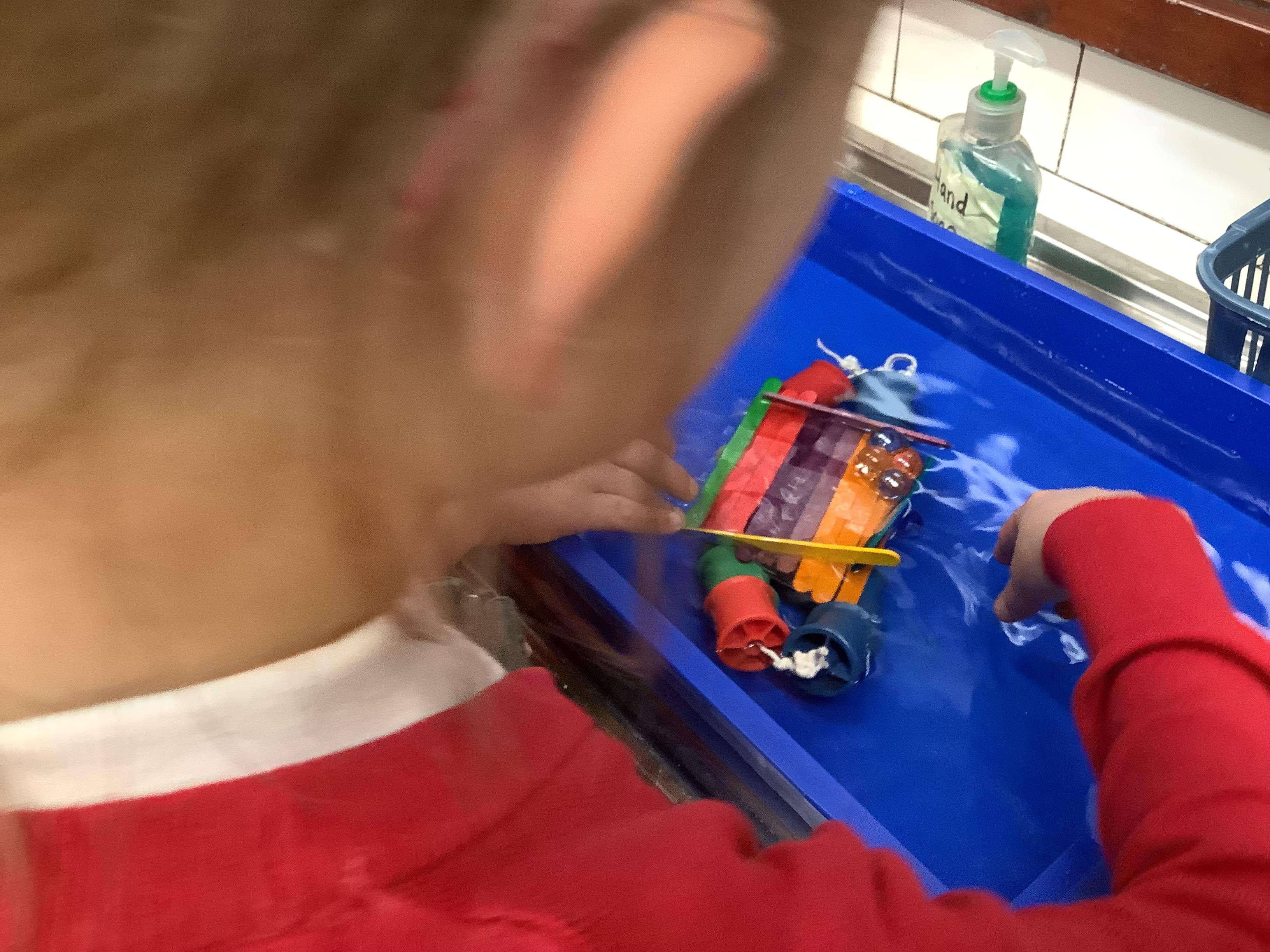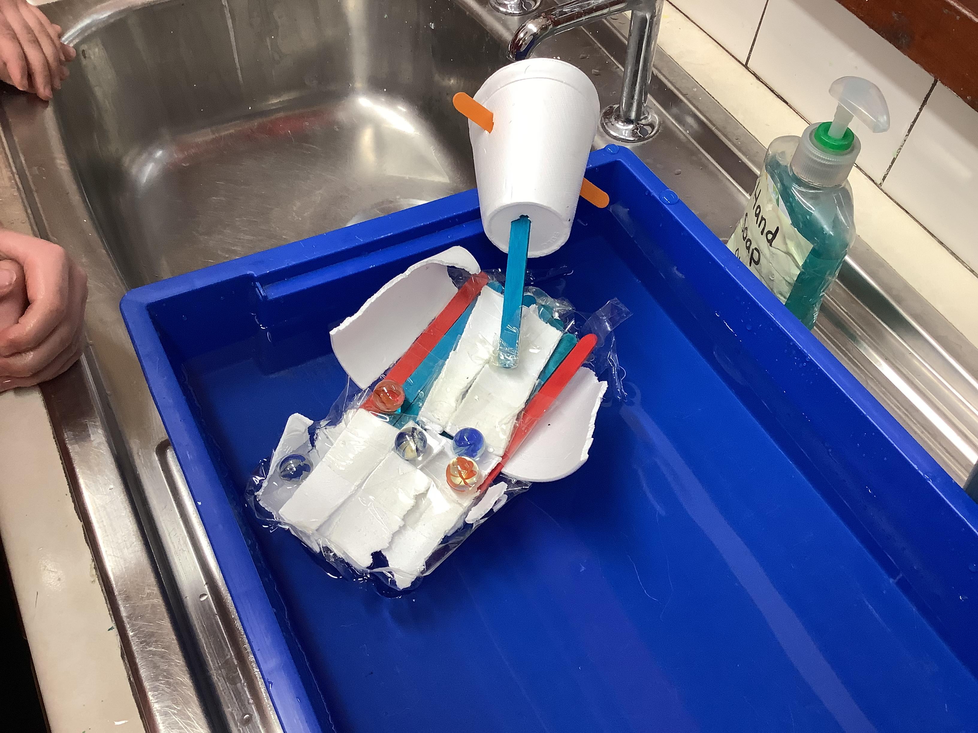 This week in STEM Club children have been learning all about Isambard Kingdom Brunel who designed and built boats. Brunel’s boat was made from iron and driven by propellers. The most important challenge of all was to ensure this heavy vessel would float. Whether an object sinks or floats depends on the gravitational (downwards) force and the buoyancy (upwards force – also called upthrust). When a boat enters the water, it pushes aside (displaces) a volume of water. The buoyancy created is equal to the weight of this displaced water. The boat’s volume (and weight) depends on the boat’s material and the air that is inside it. For a boat to float, the buoyancy pushing up must be equal to or greater than the gravitational force pulling it down. So, if the weight of water displaced is equal to or greater than the weight of the boat, the boat will float.