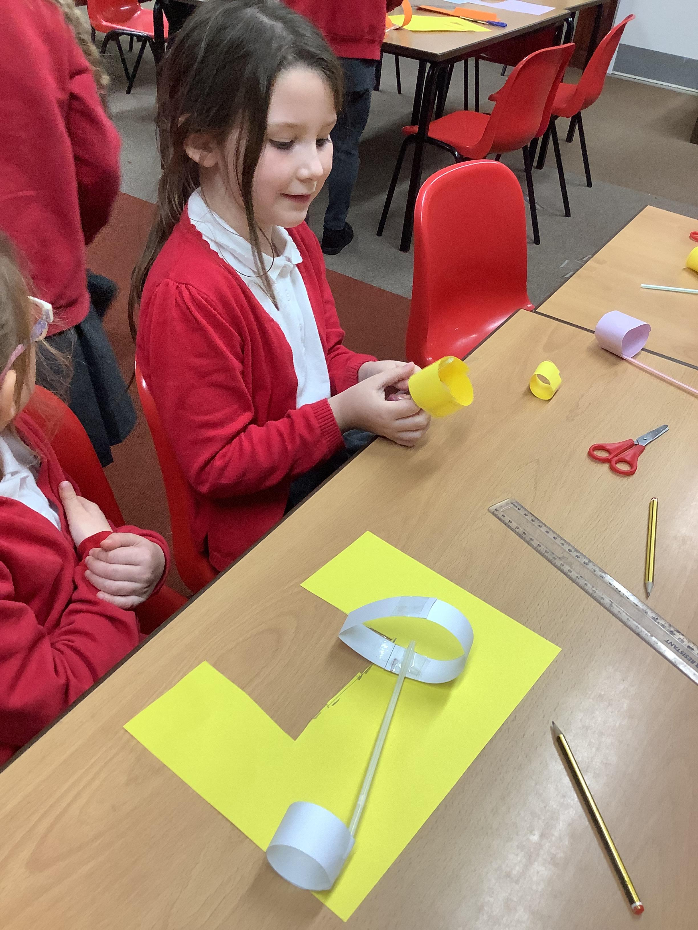 This week in STEM club children have been looking at facts about Leonardo Da Vinci, besides his art work, he also created designs for flying machines, solar power, armoured vehicles and adding machines, years before the technology existed to create them. He also made discoveries in anatomy, civil engineering, geology, optics and hydrodynamics. Children made hoop gliders out of two different lengths of paper and used them to form hoops; securing hoops to either end of the straw and launching the straw with the smaller hoop at the front to watch it fly!