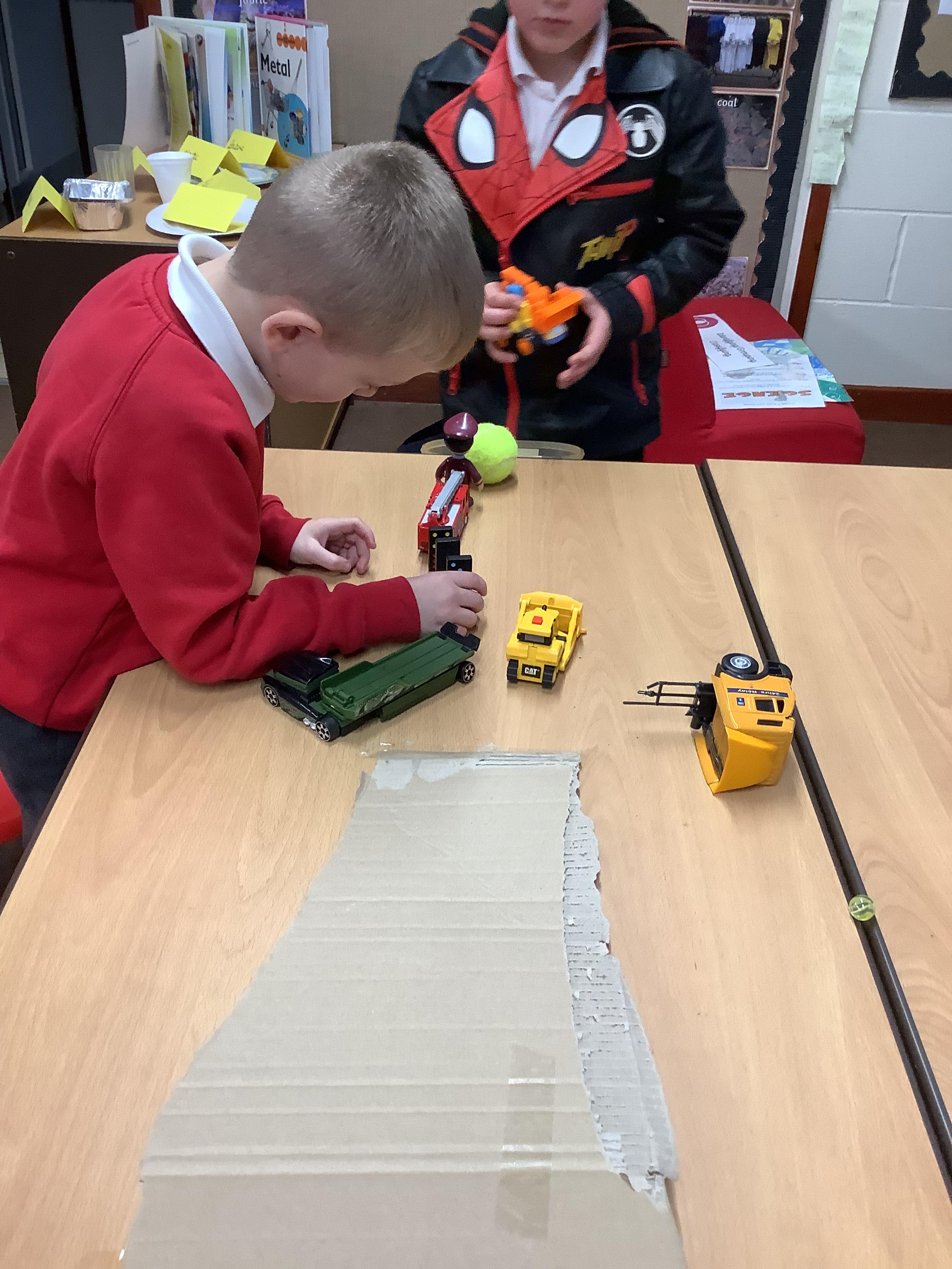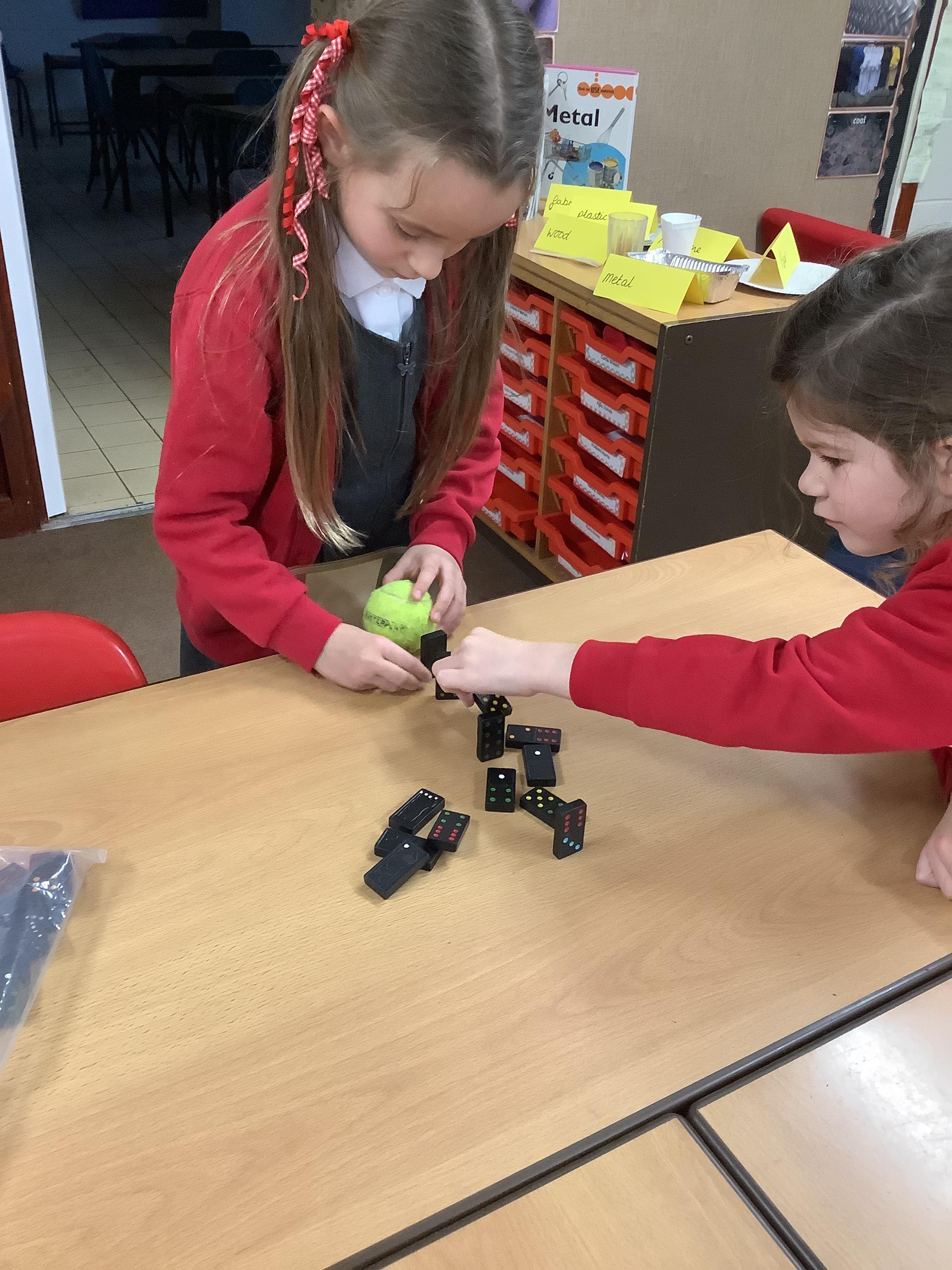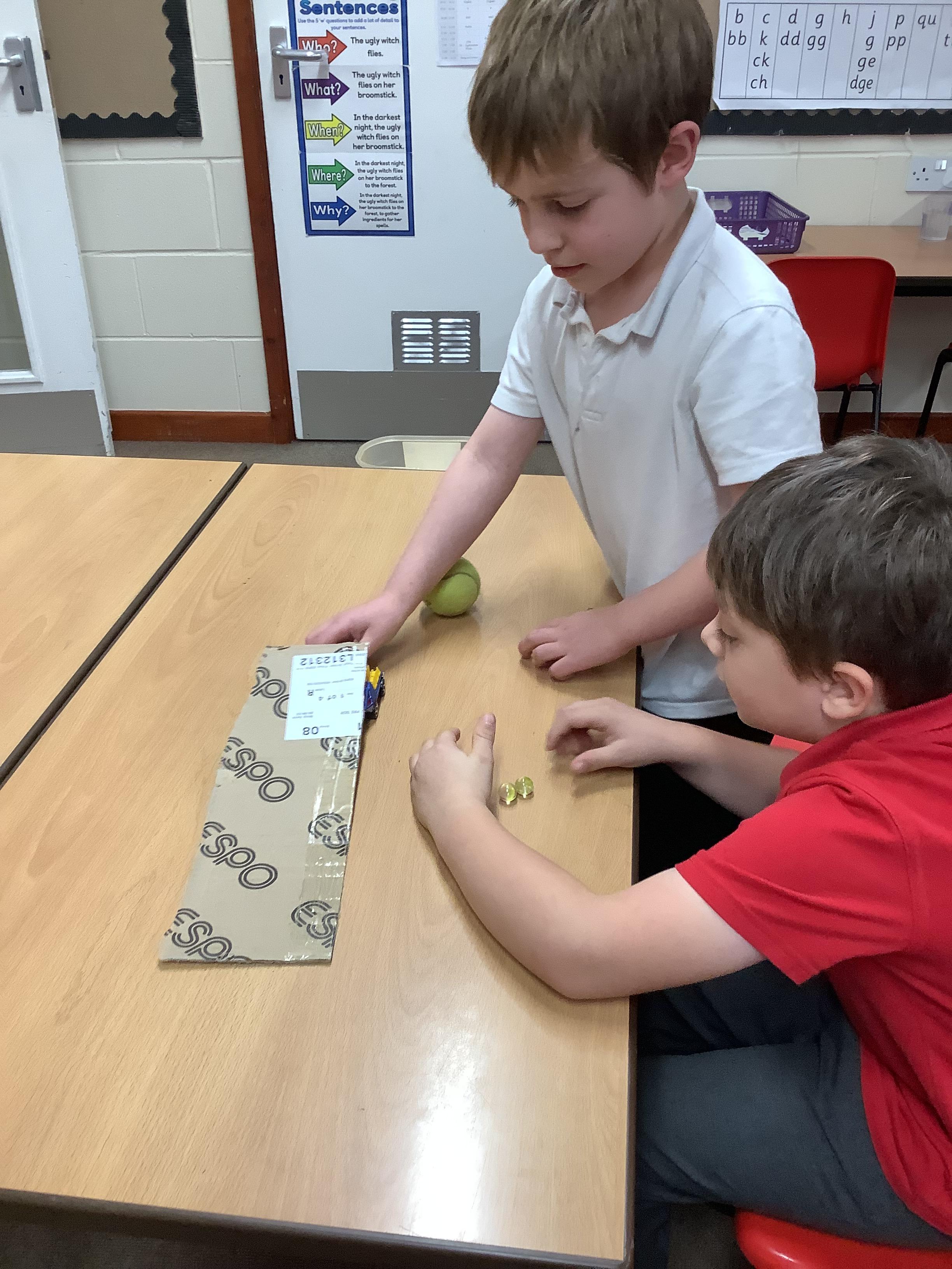This week in STEM club we have been looking at the work of Rube Goldberg who won a Pulitzer Prize as well as many other honours and awards for his cartoons. His work is the inspiration for many cartoons, films and even board games, such as Mouse Trap. Children were give a tennis ball and container and encouraged to work backwards from the ball going into the container. For example: a container could be laid sideways or attached the end of the table with the tennis ball in front of it. Children then worked to set in place a mechanical chain reaction to push the ball forwards. This could be triggered by dominoes falling, toys rolling down ramps etc. Children were encouraged to test, adapt and add to their chain reaction in the time they had.