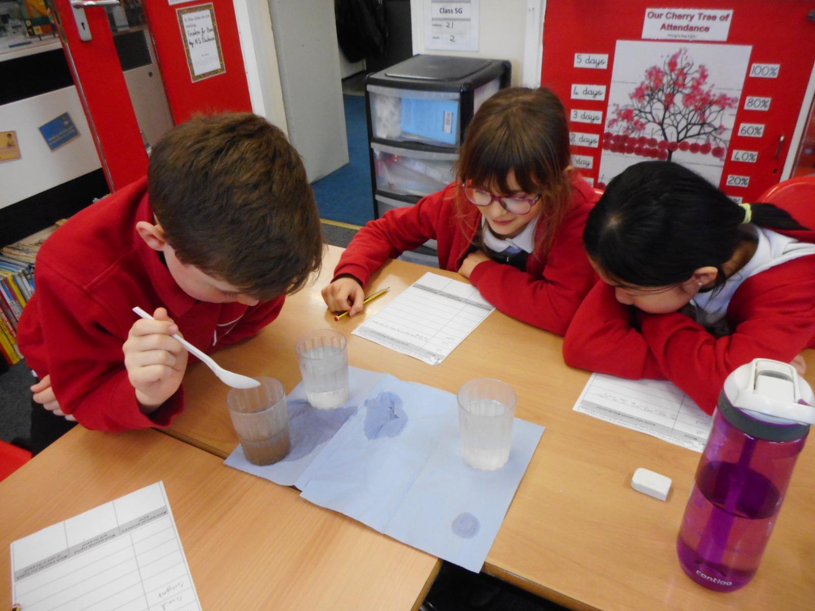 In 5G we investigated what happens when different materials are added to water and sorted our results into those that are soluble and those that are insoluble.