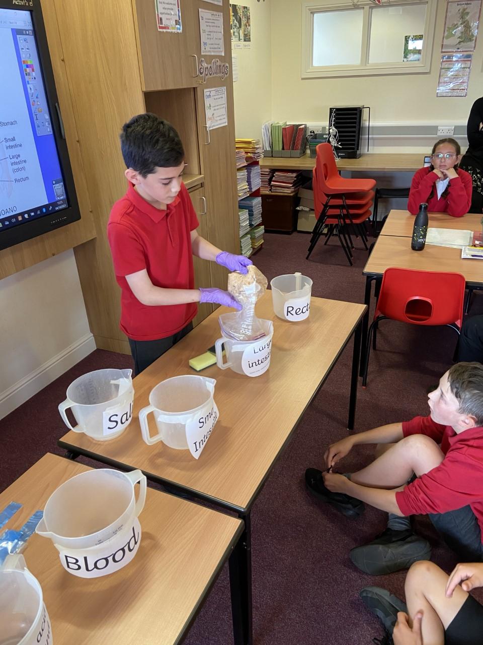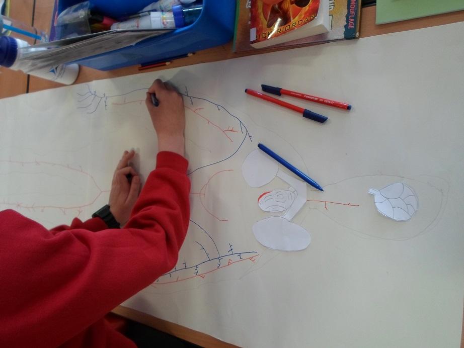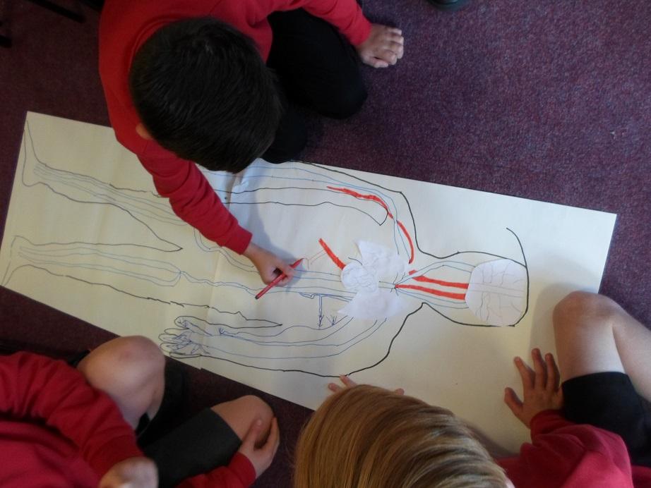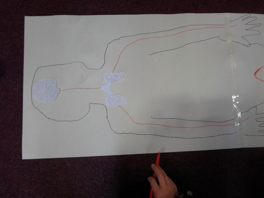 In science we have been finding out about the circulatory system. We pretended to be red blood cells going from the heart to be oxygenated at the lungs and then travelling through the arteries to transport the oxygen, nutrients and water to different parts of the body before travelling back up the veins to the heart to start the journey again. We then wrote class definitions for the circulatory system before working as a group to make a life sized diagram of the circulatory system.