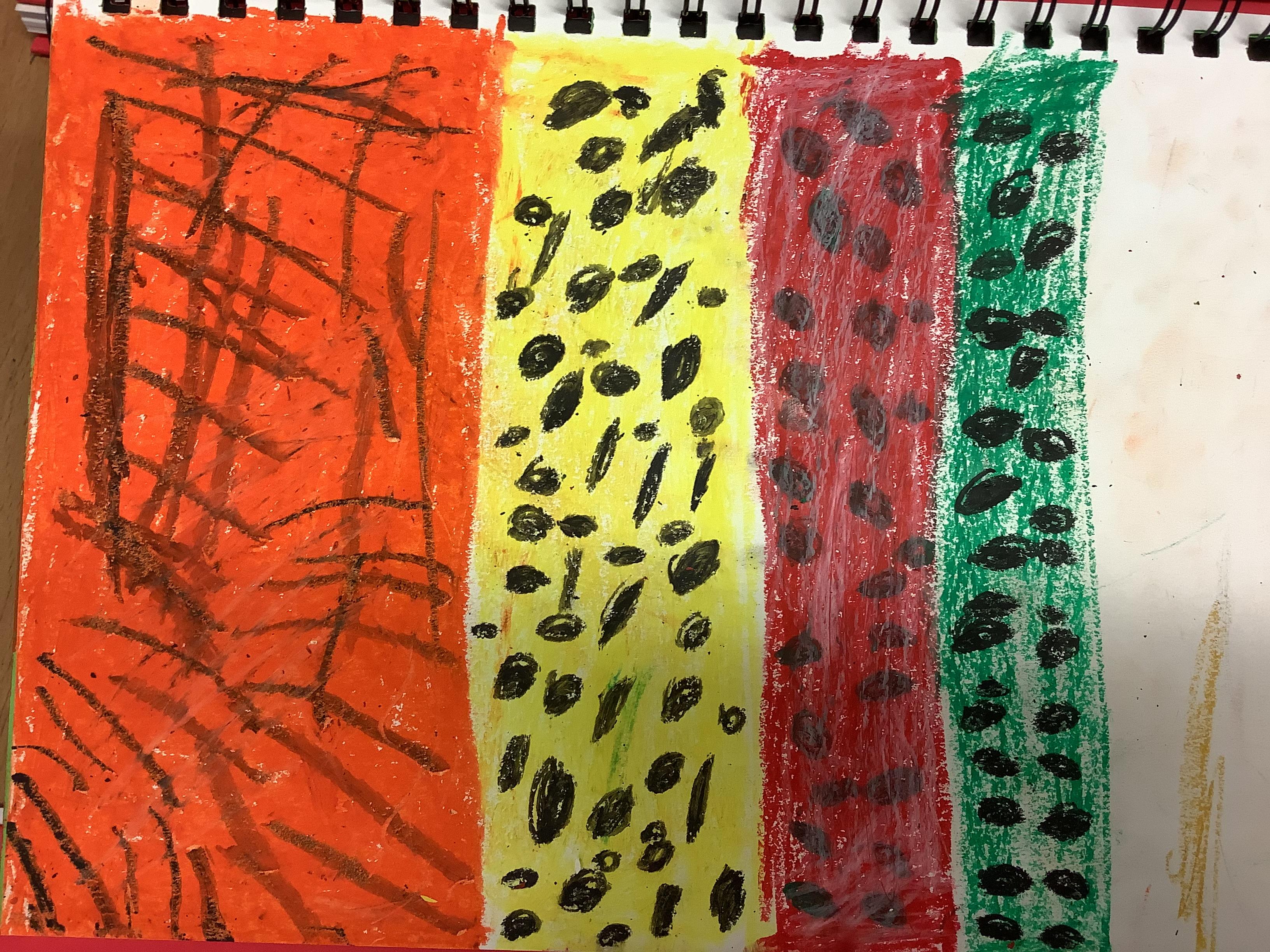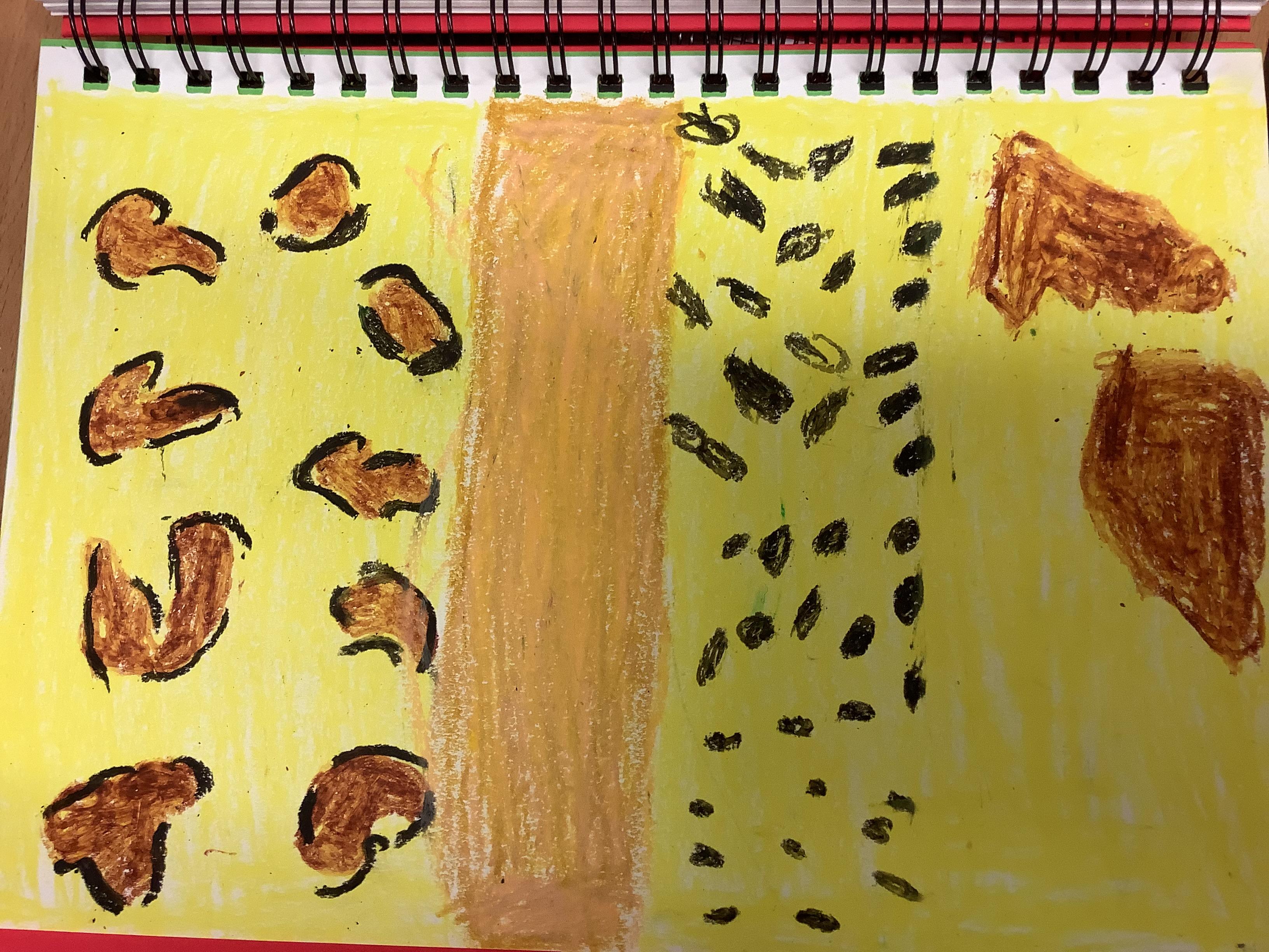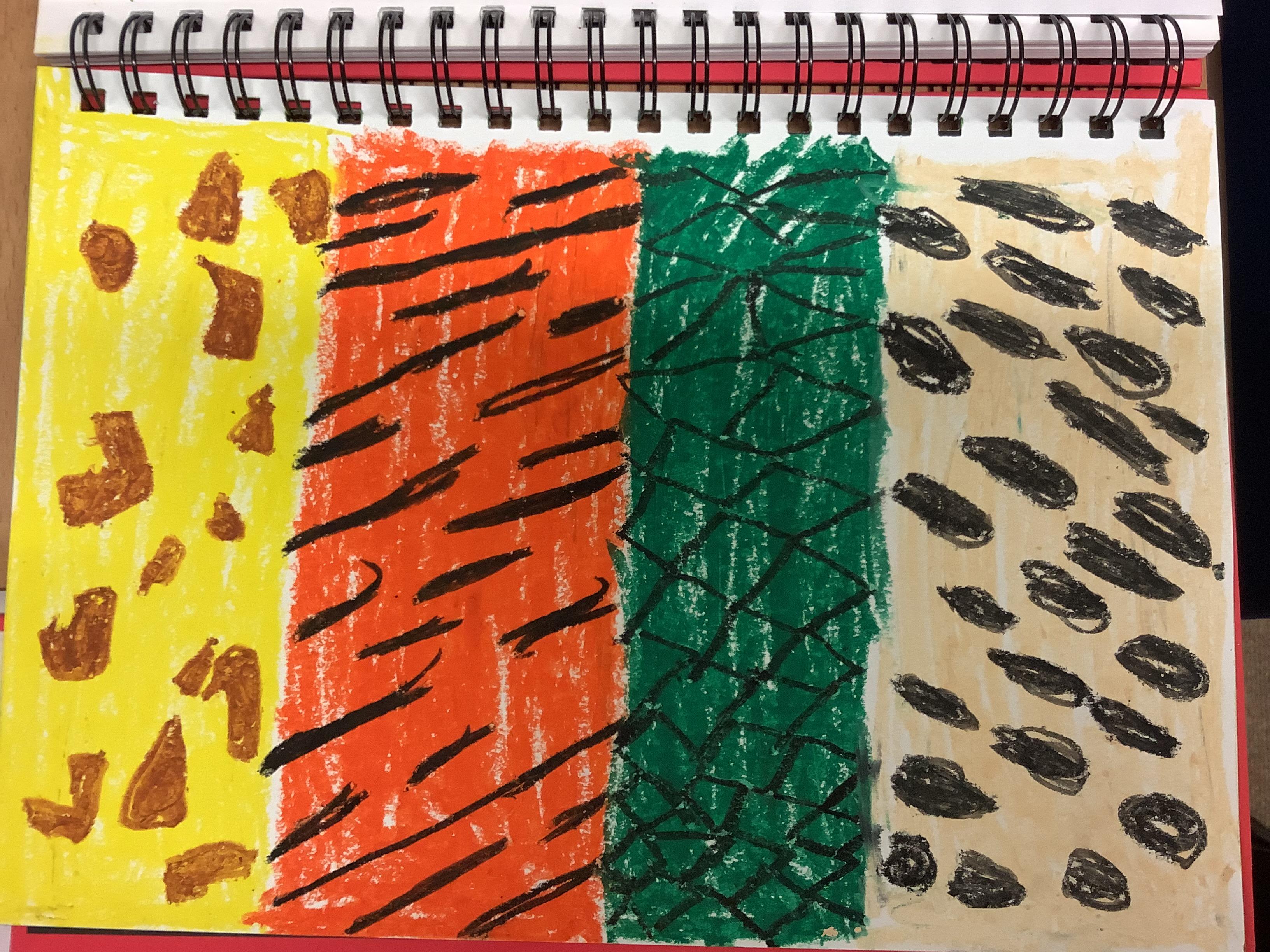 This week in Art children looked at pictures s of different animal skins. Then they used pastels to design their own animal prints!
