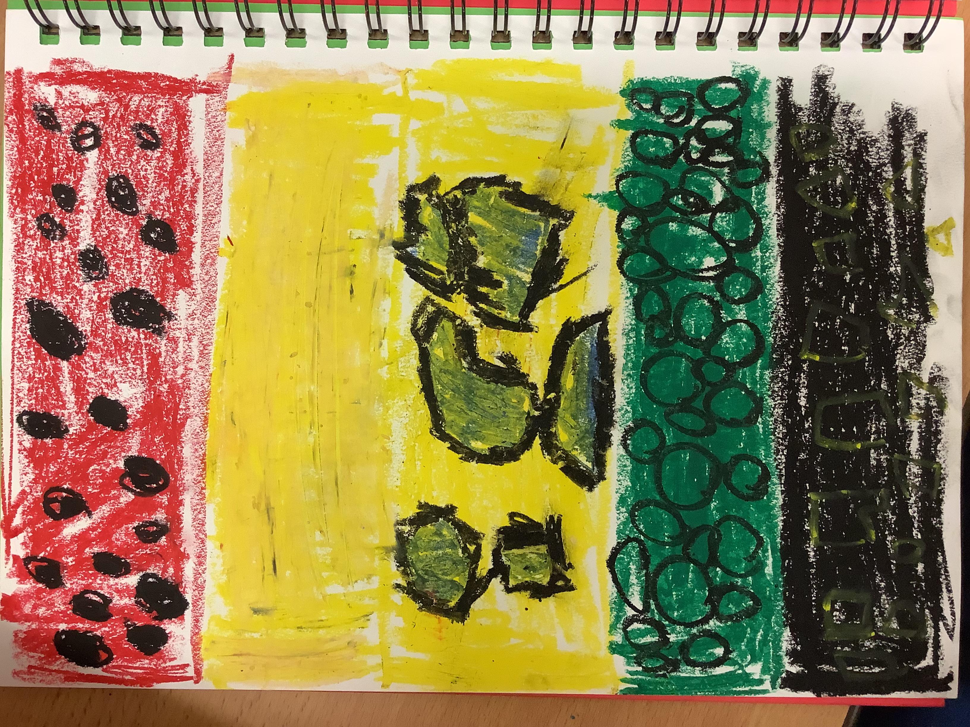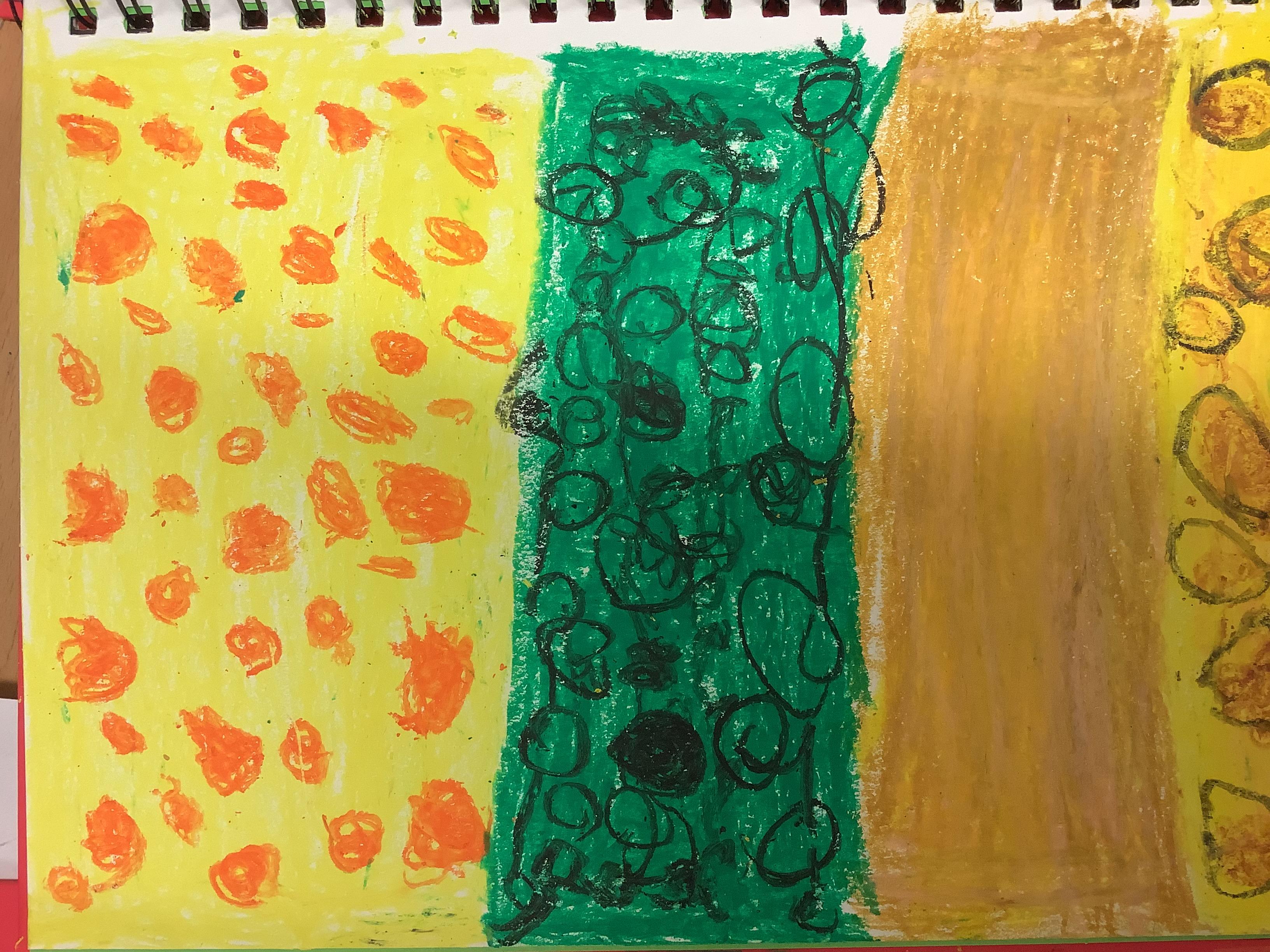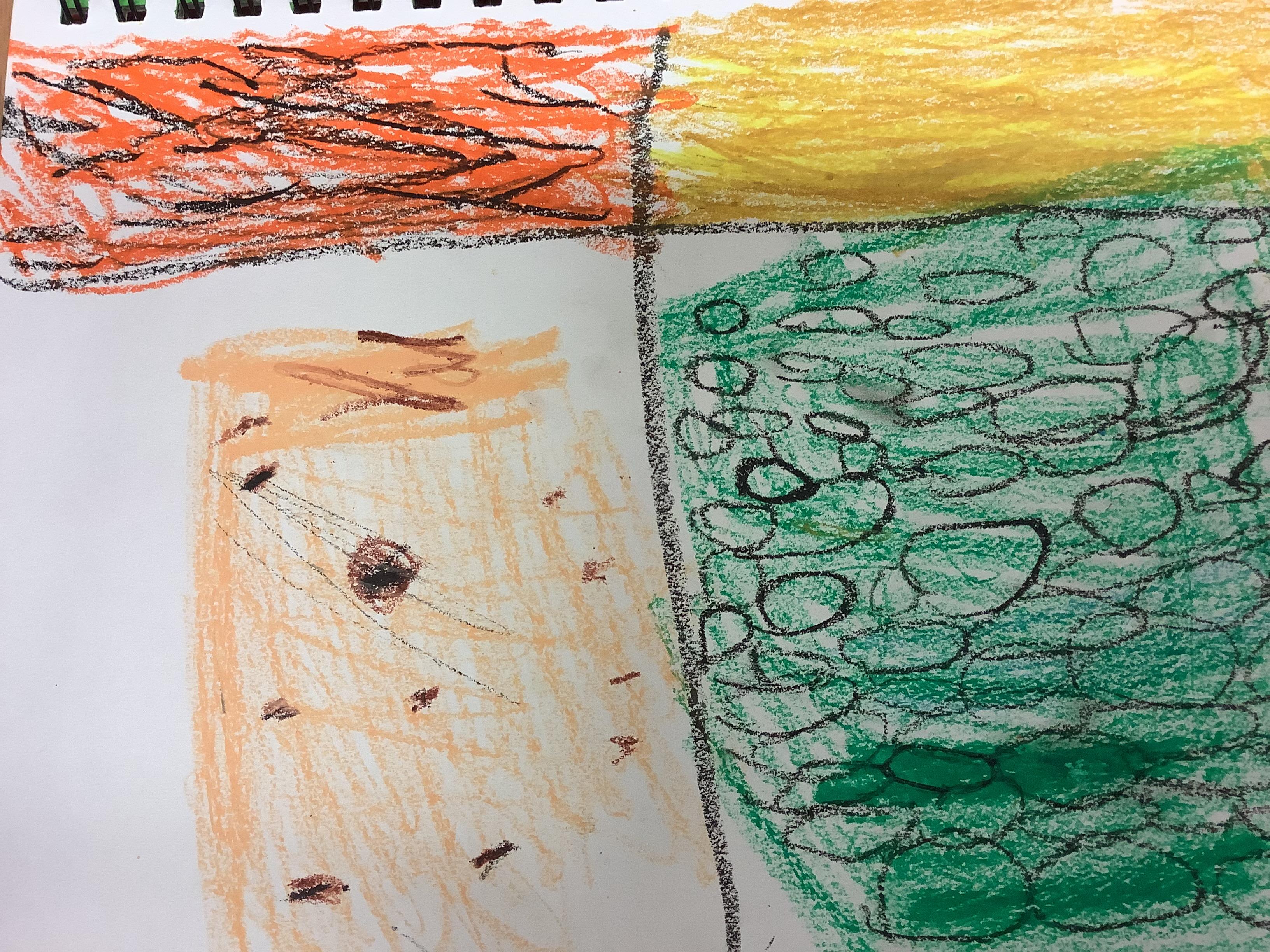This week in Art children looked at pictures s of different animal skins. Then they used pastels to design their own animal prints!