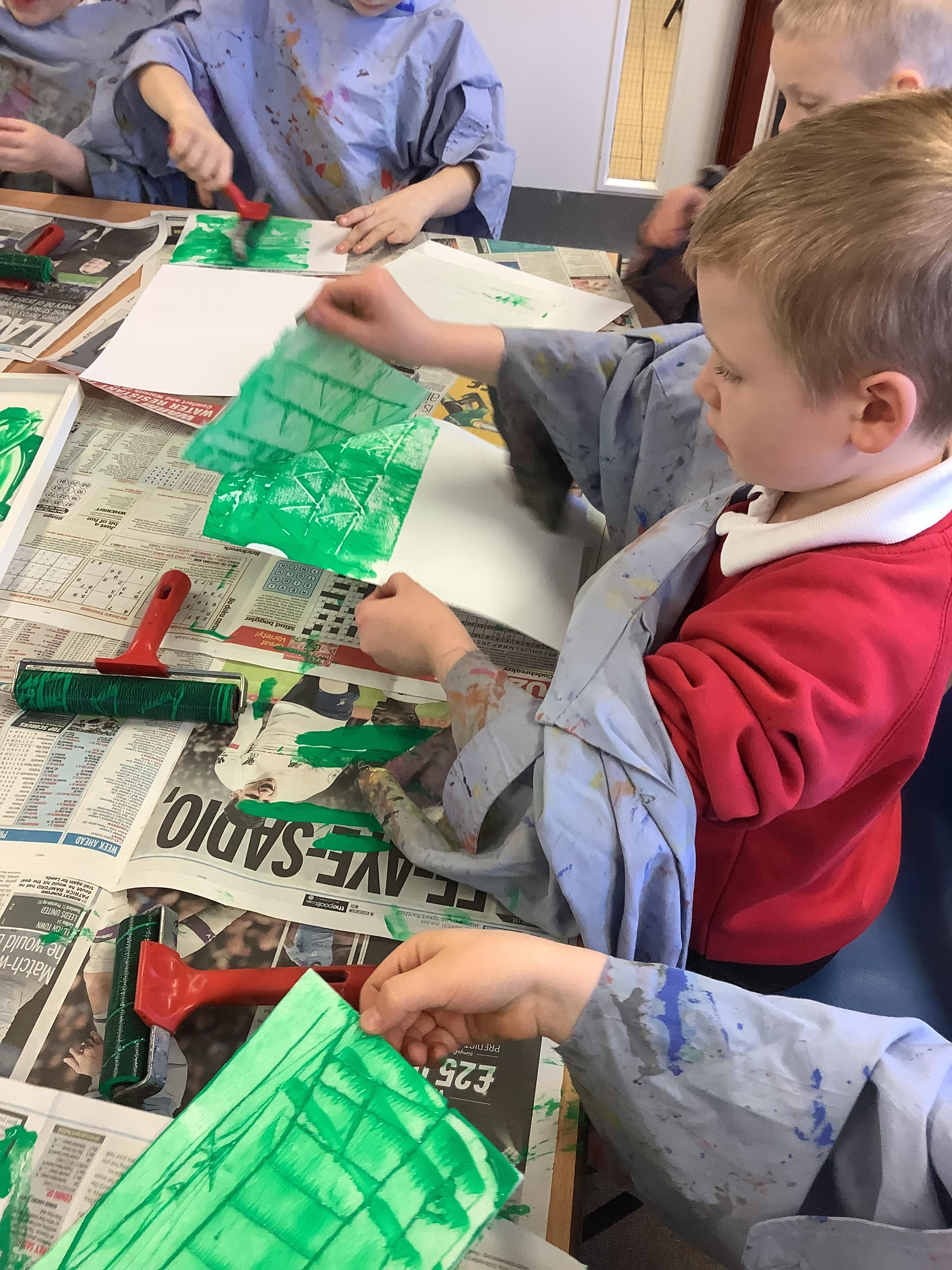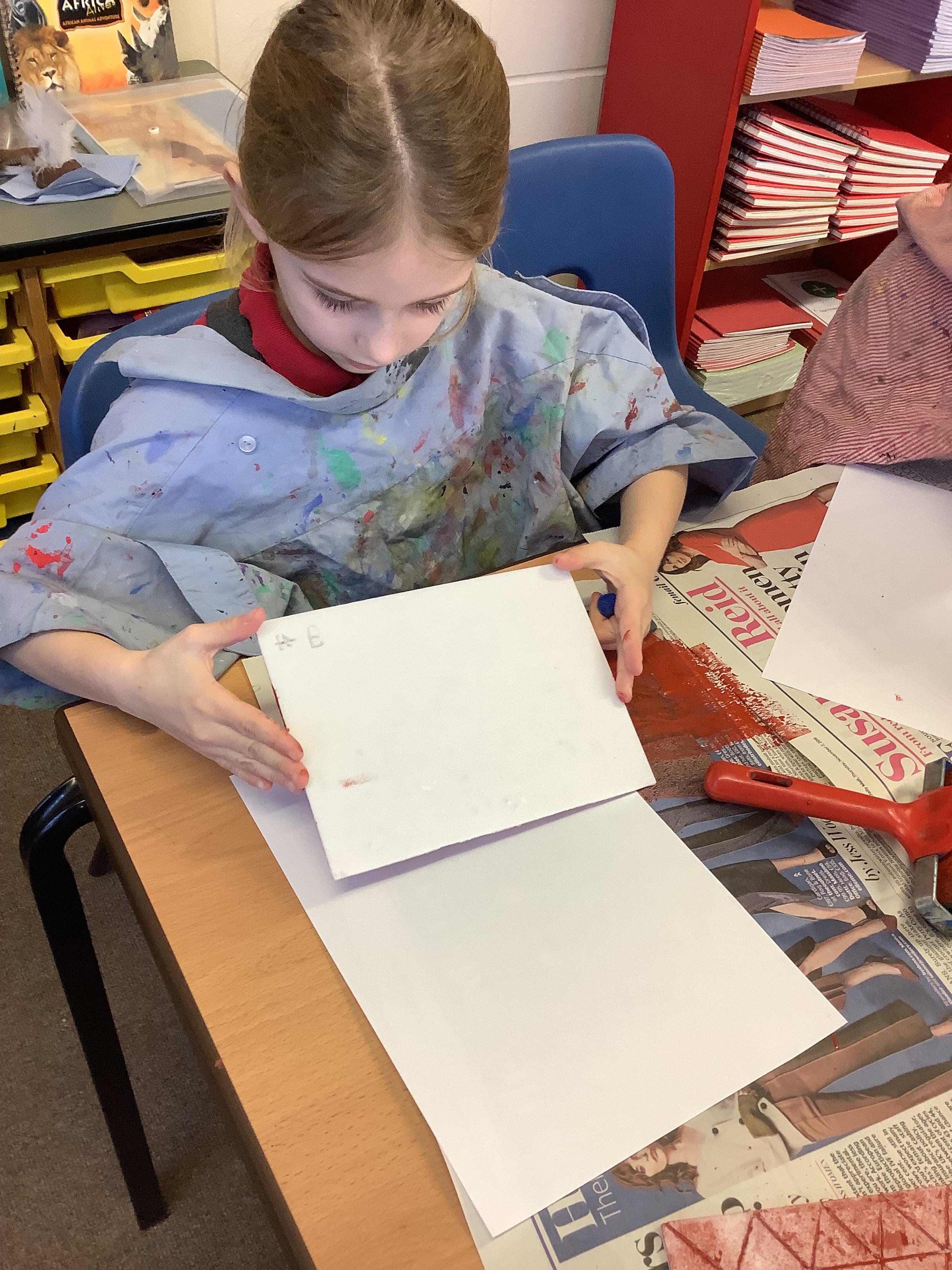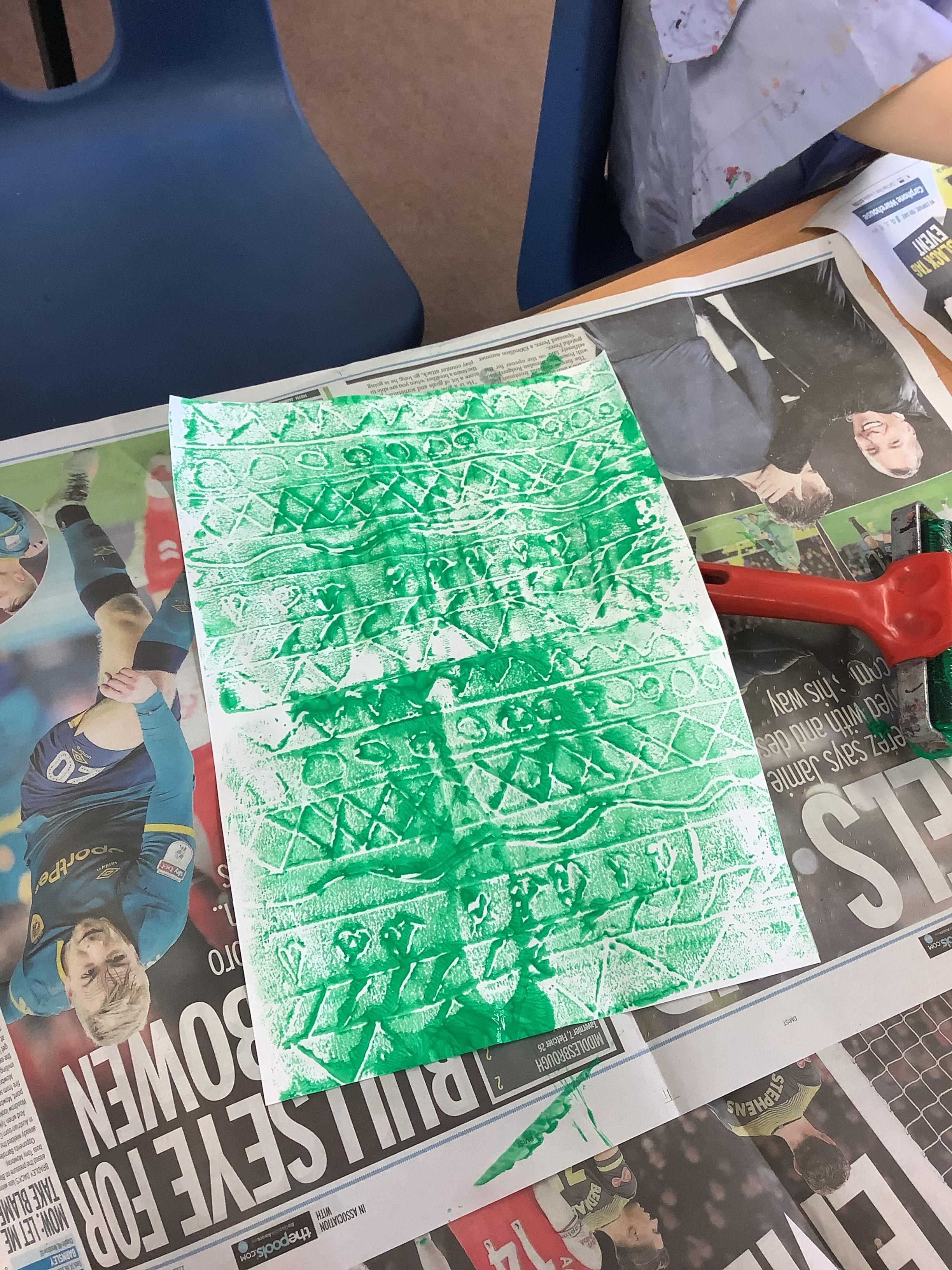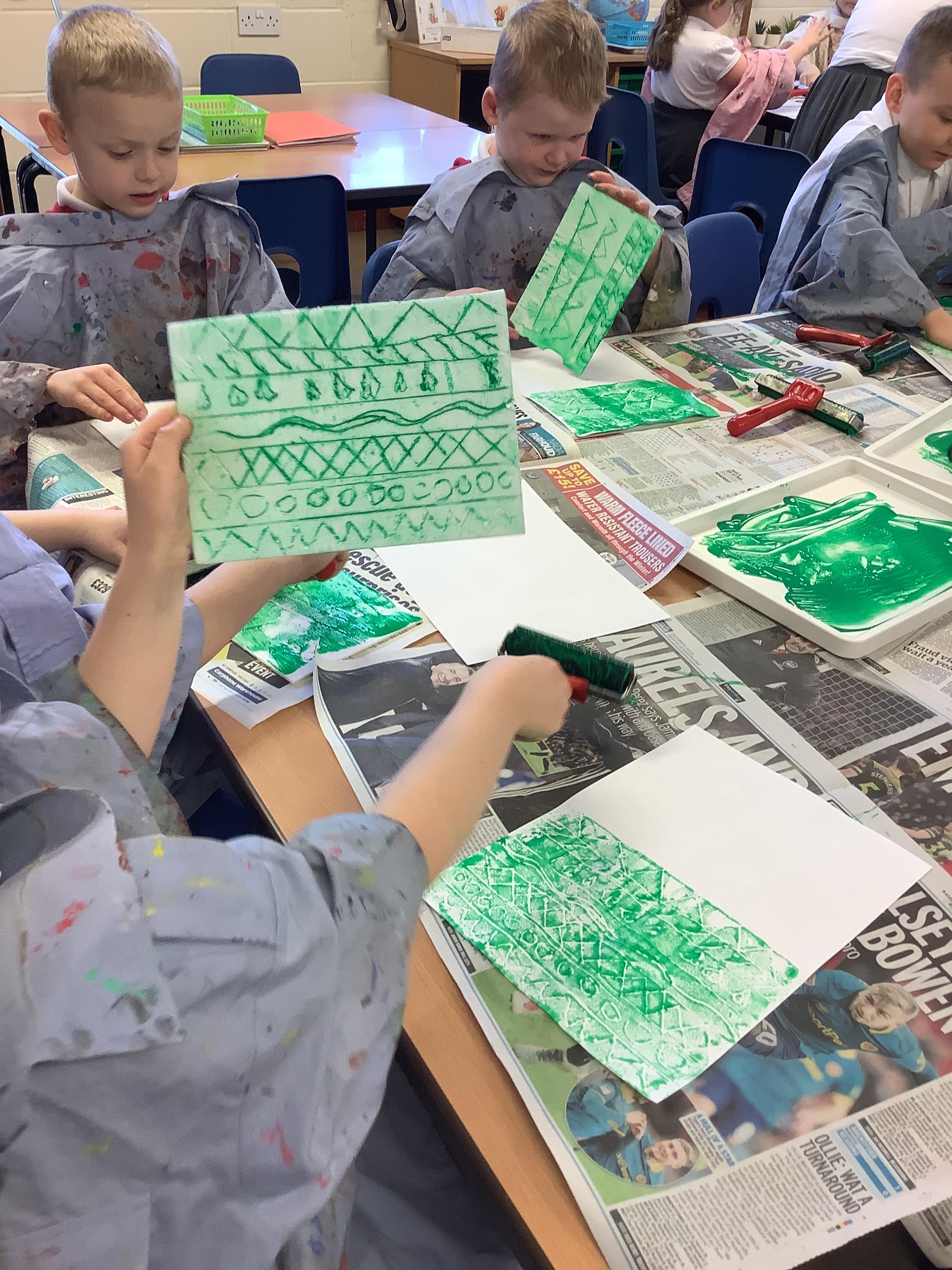 Over the last few weeks children have been designing their own animal prints. They transferred their designs to foam pads then used paint to roll over the foam pads and then printed them on A4 paper.