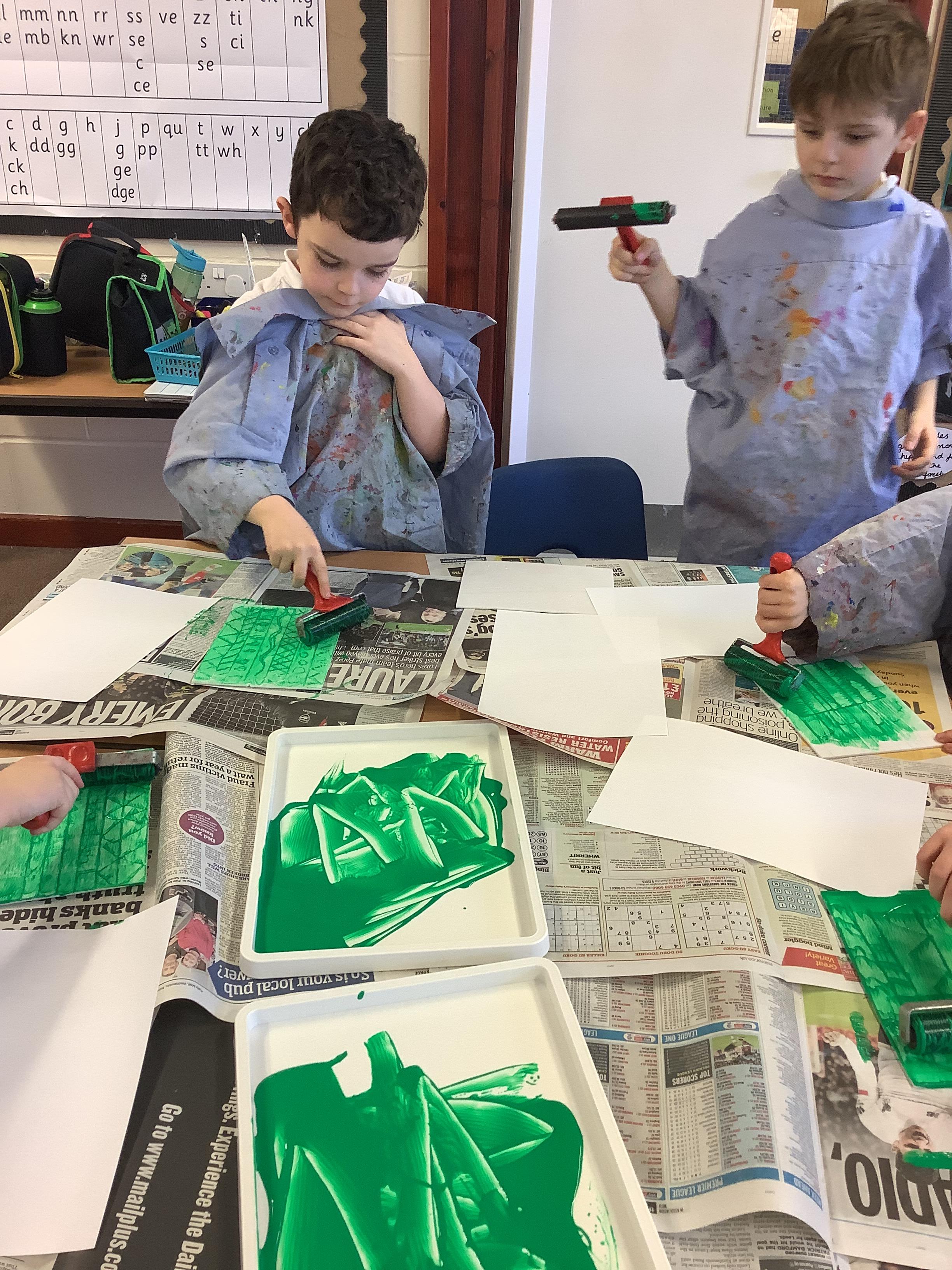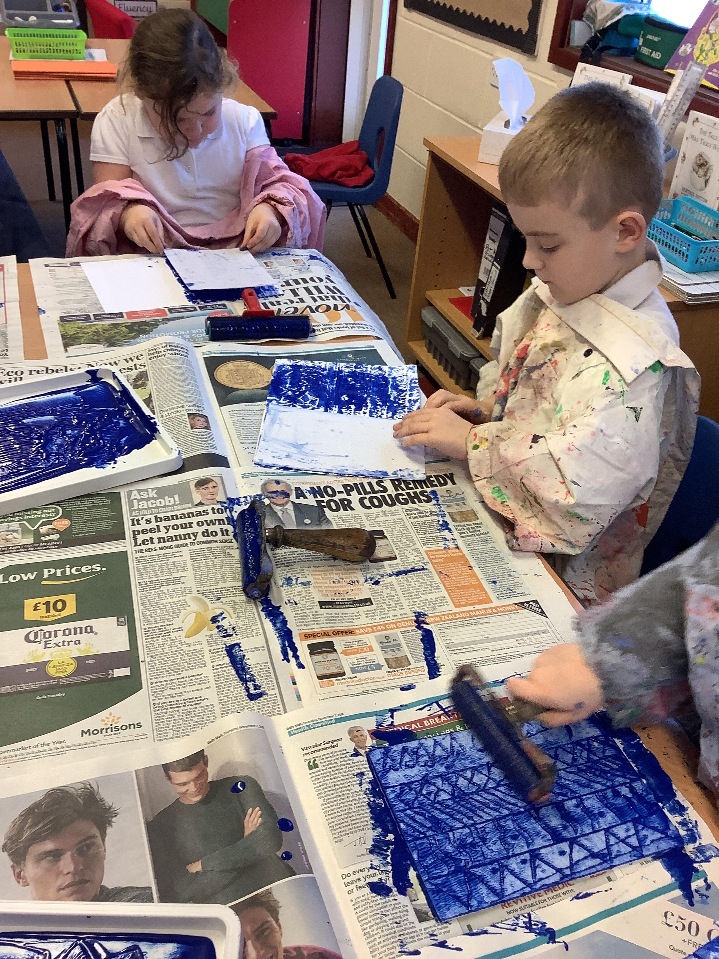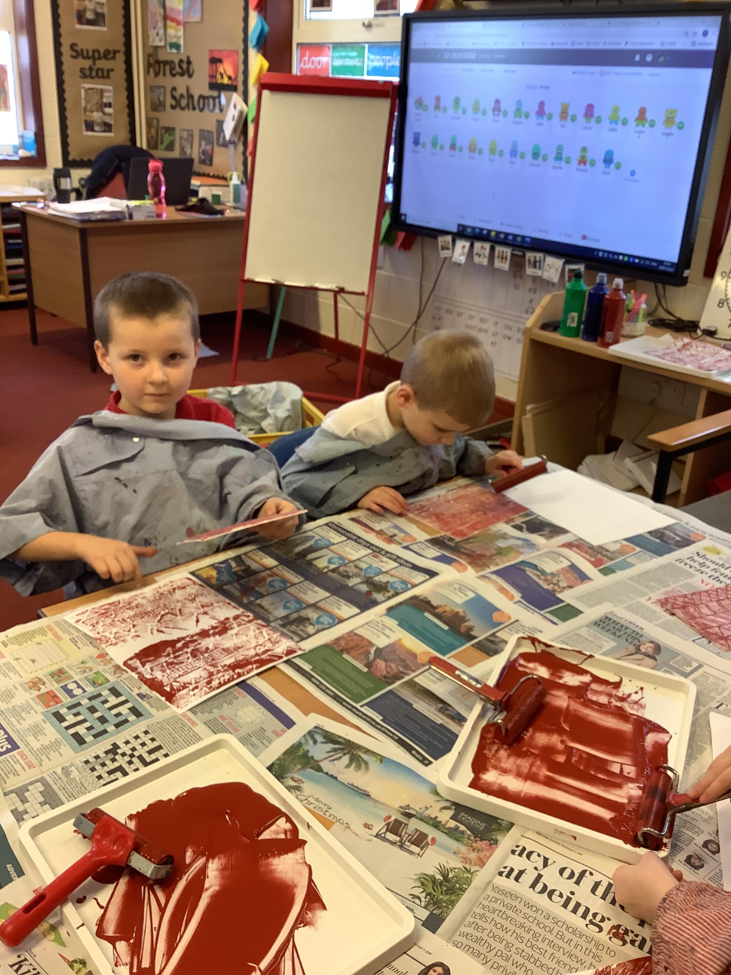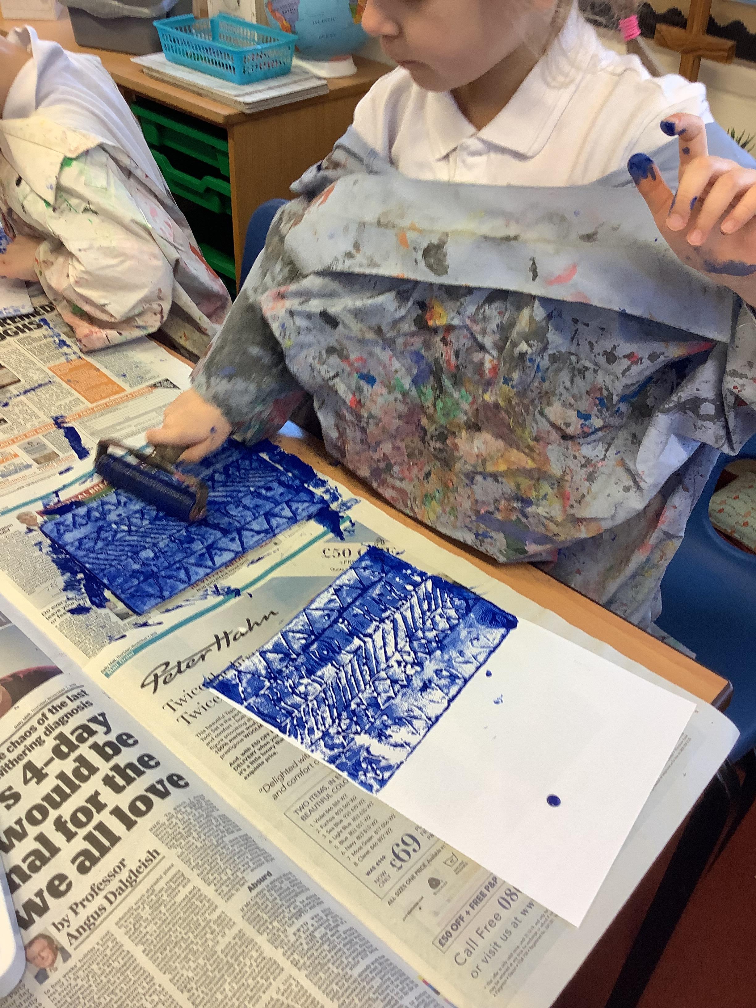 Over the last few weeks children have been designing their own animal prints. They transferred their designs to foam pads then used paint to roll over the foam pads and then printed them on A4 paper.