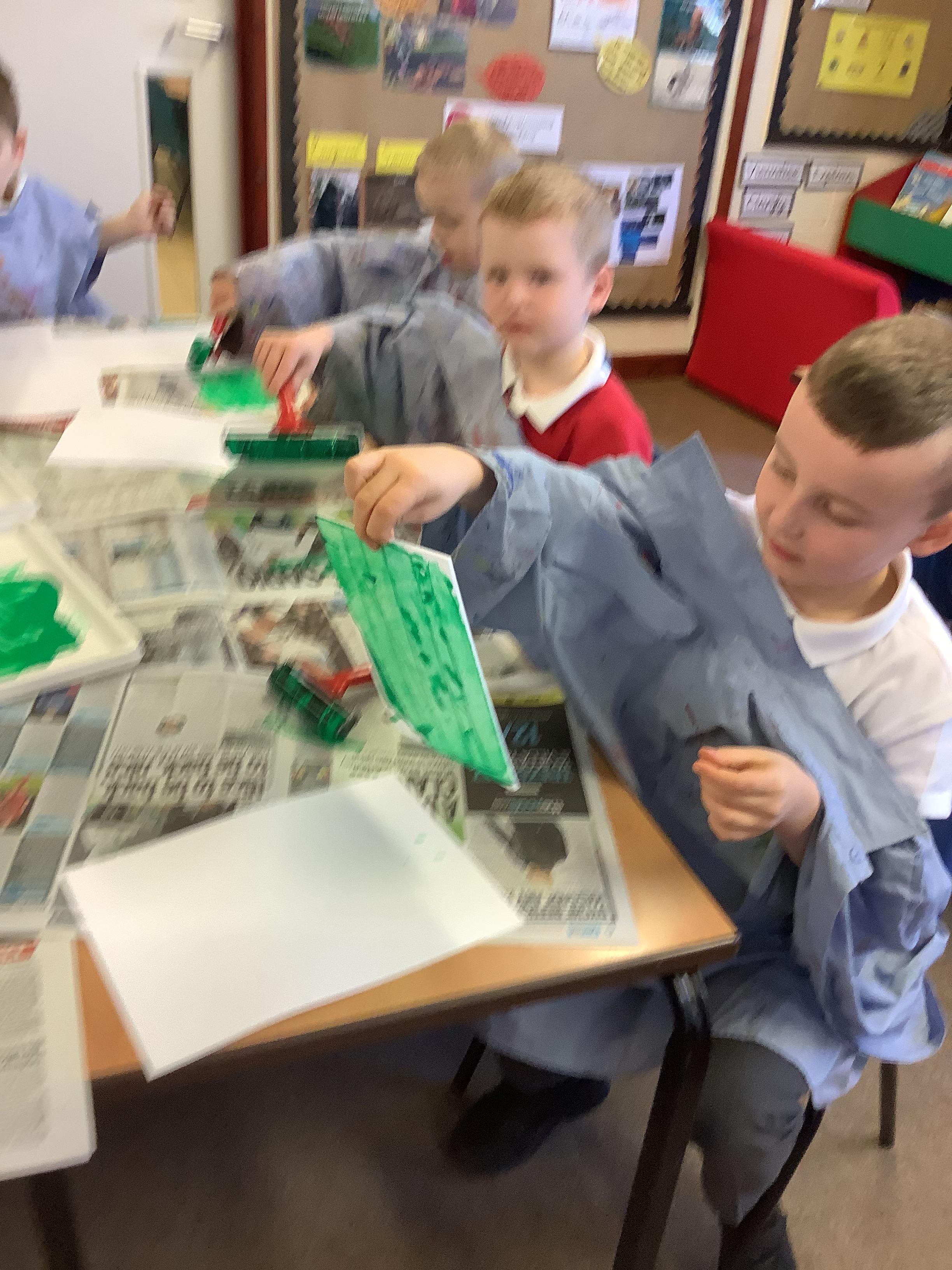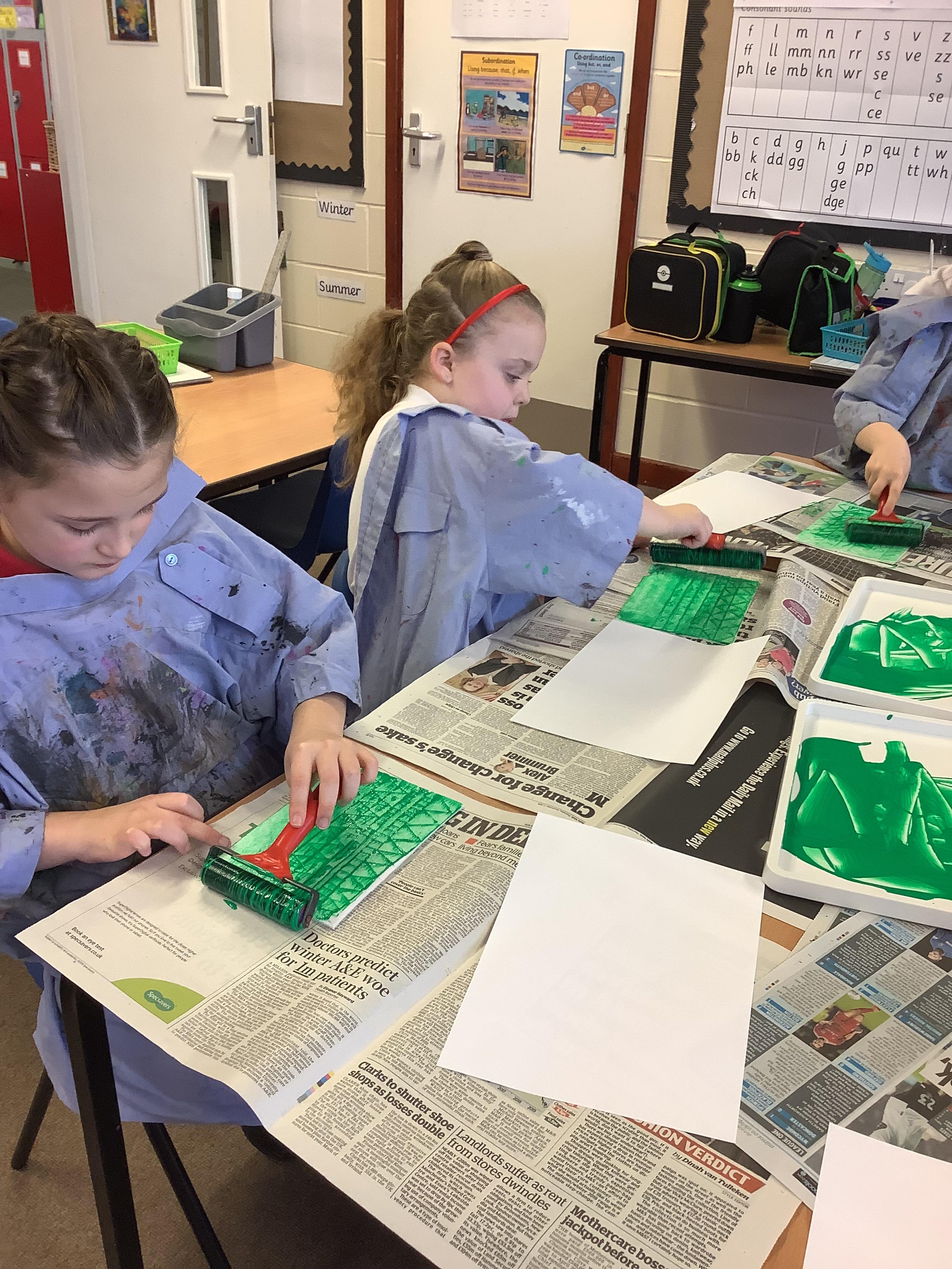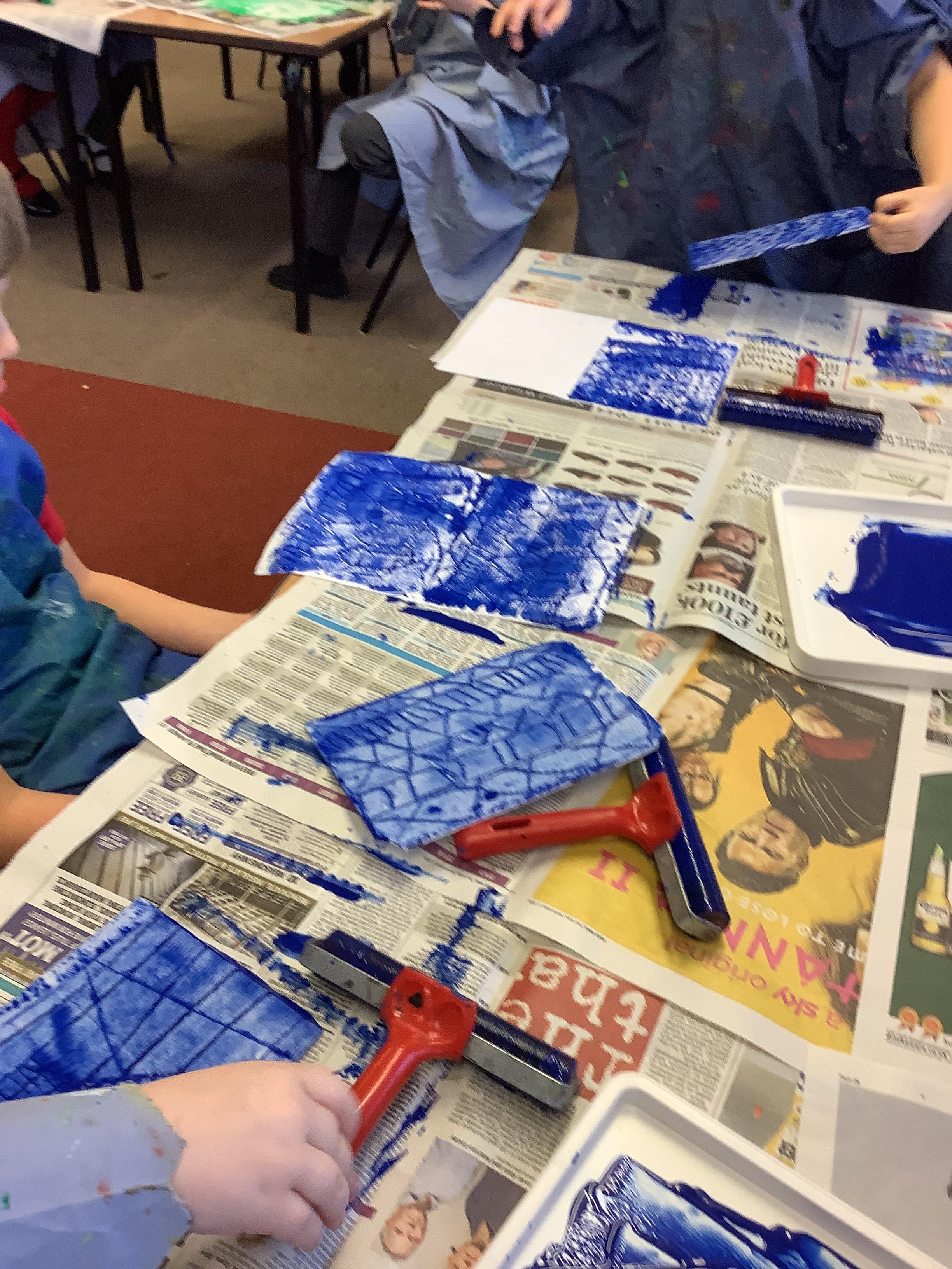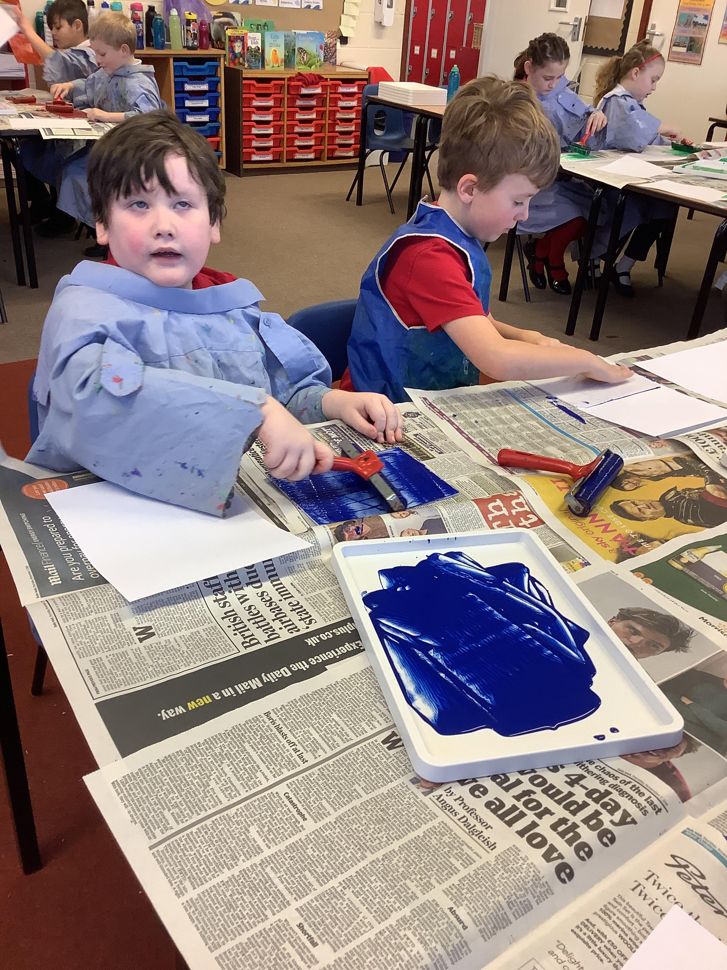 Over the last few weeks children have been designing their own animal prints. They transferred their designs to foam pads then used paint to roll over the foam pads and then printed them on A4 paper.