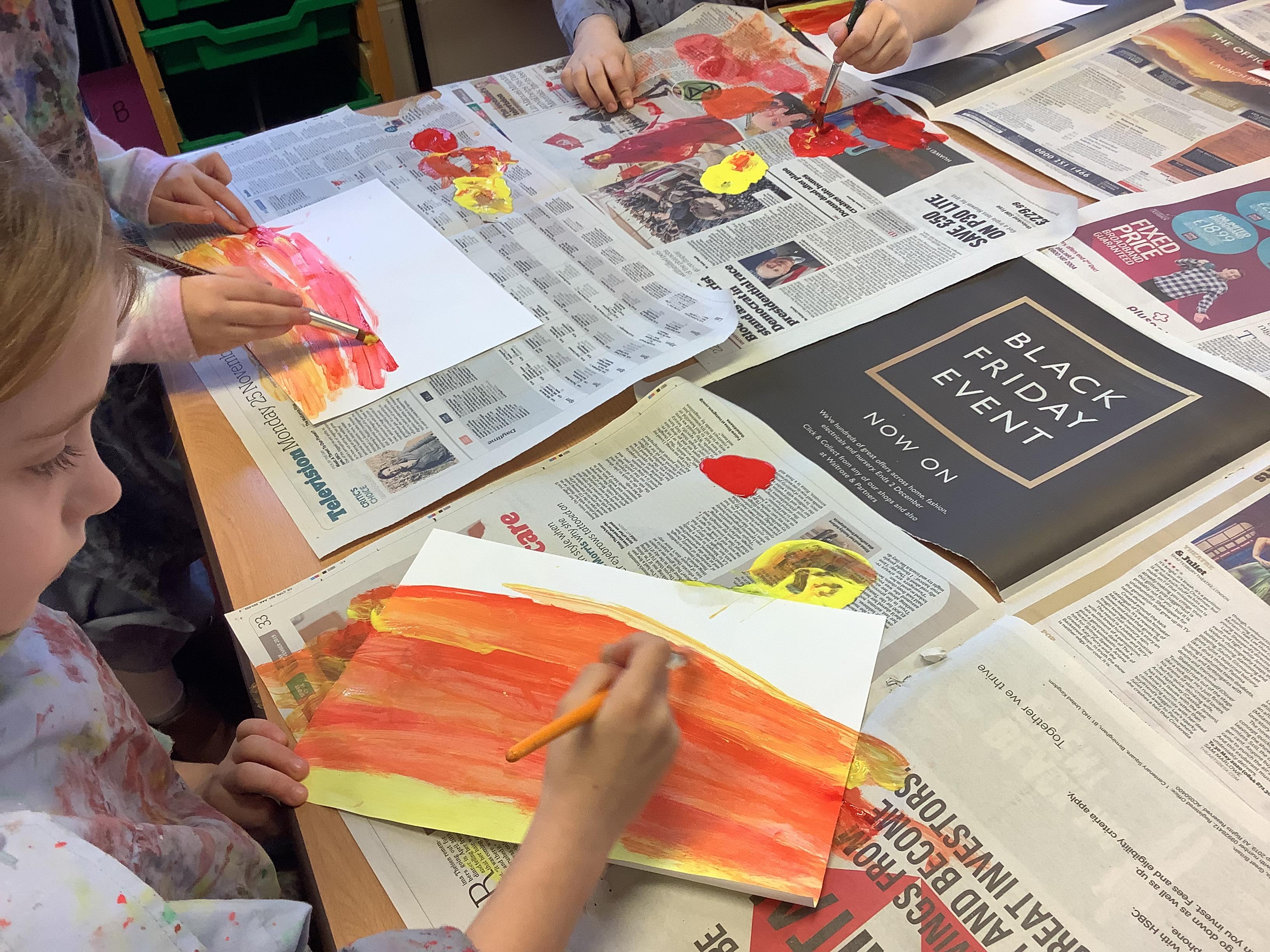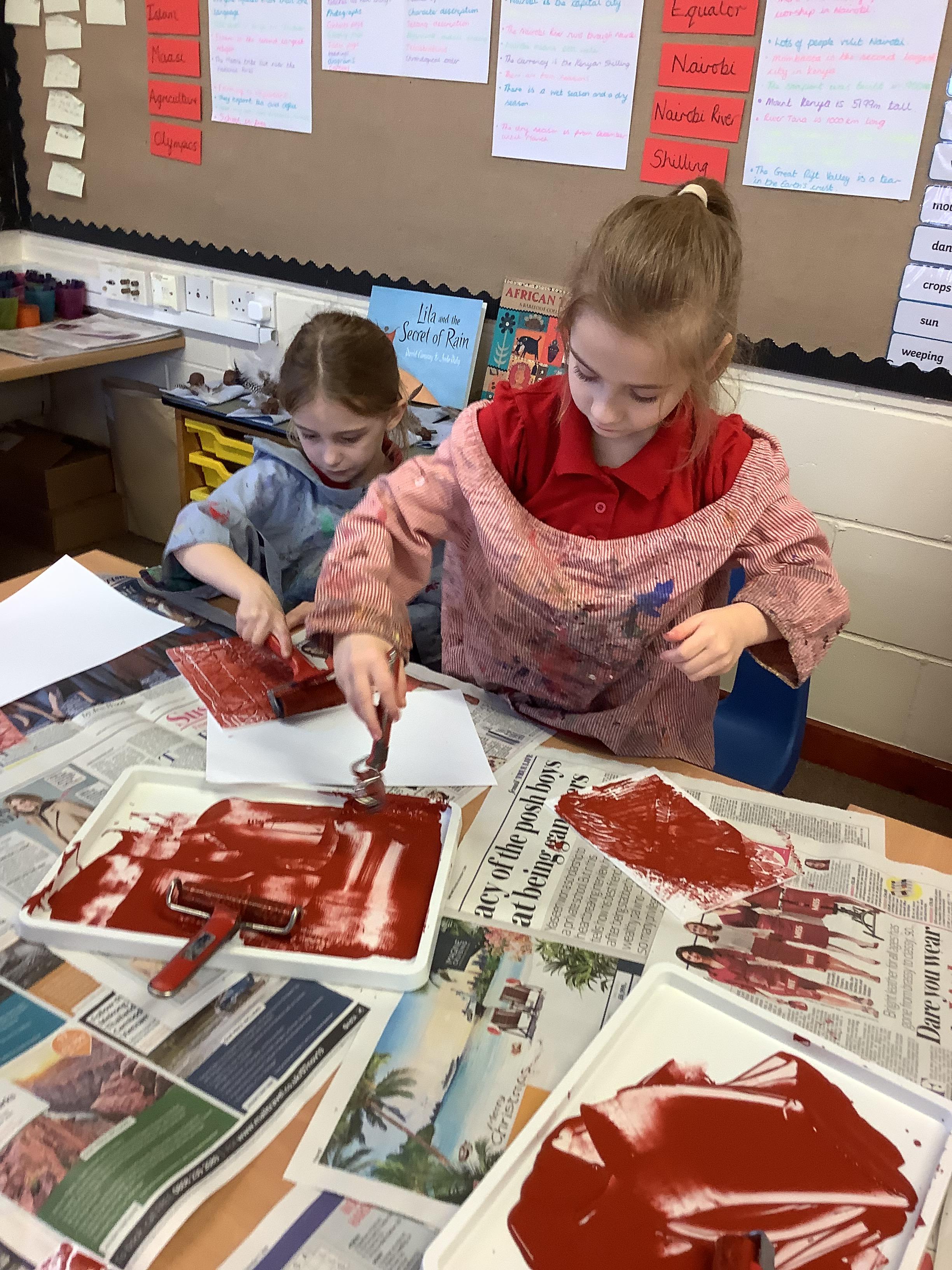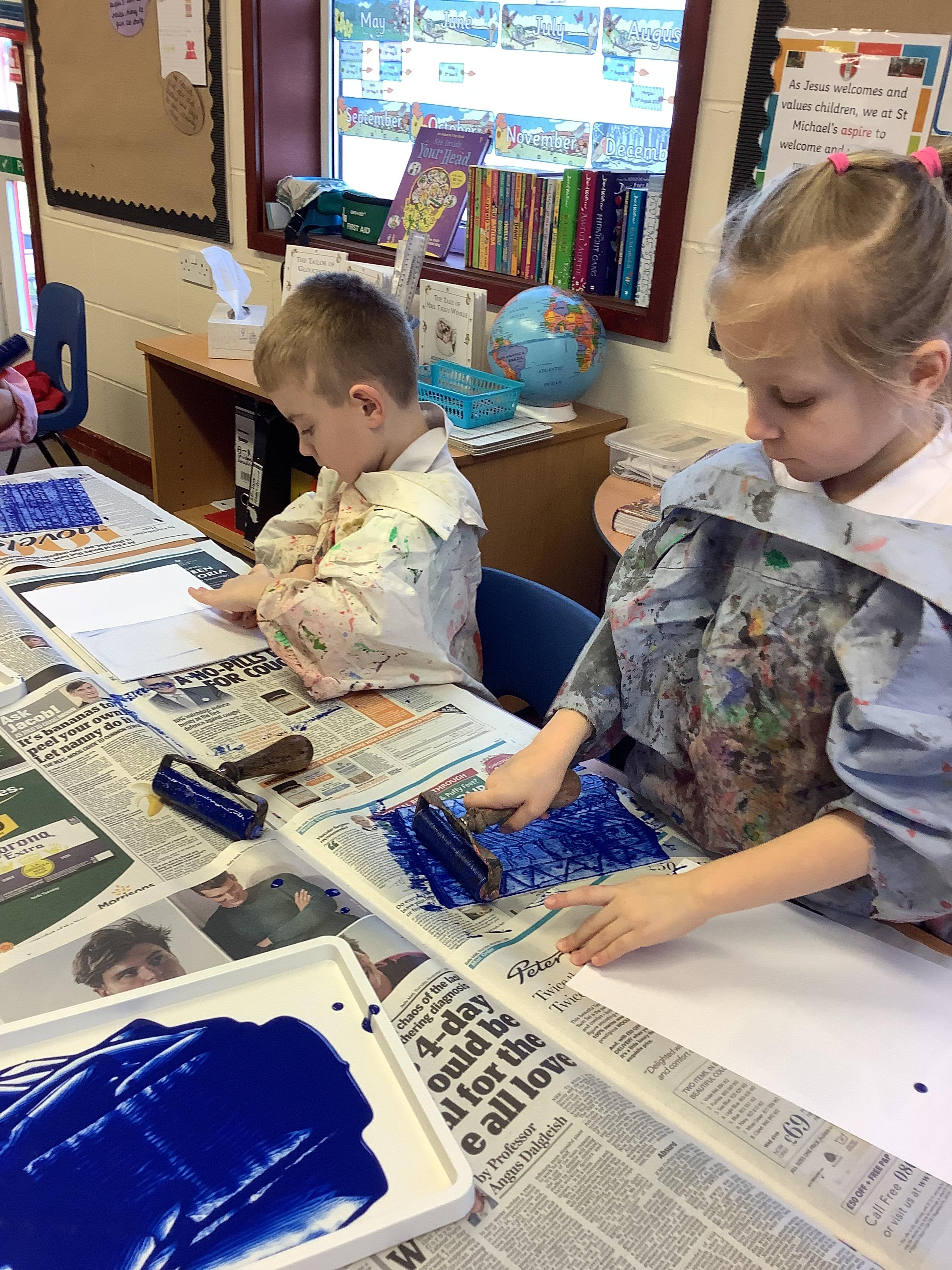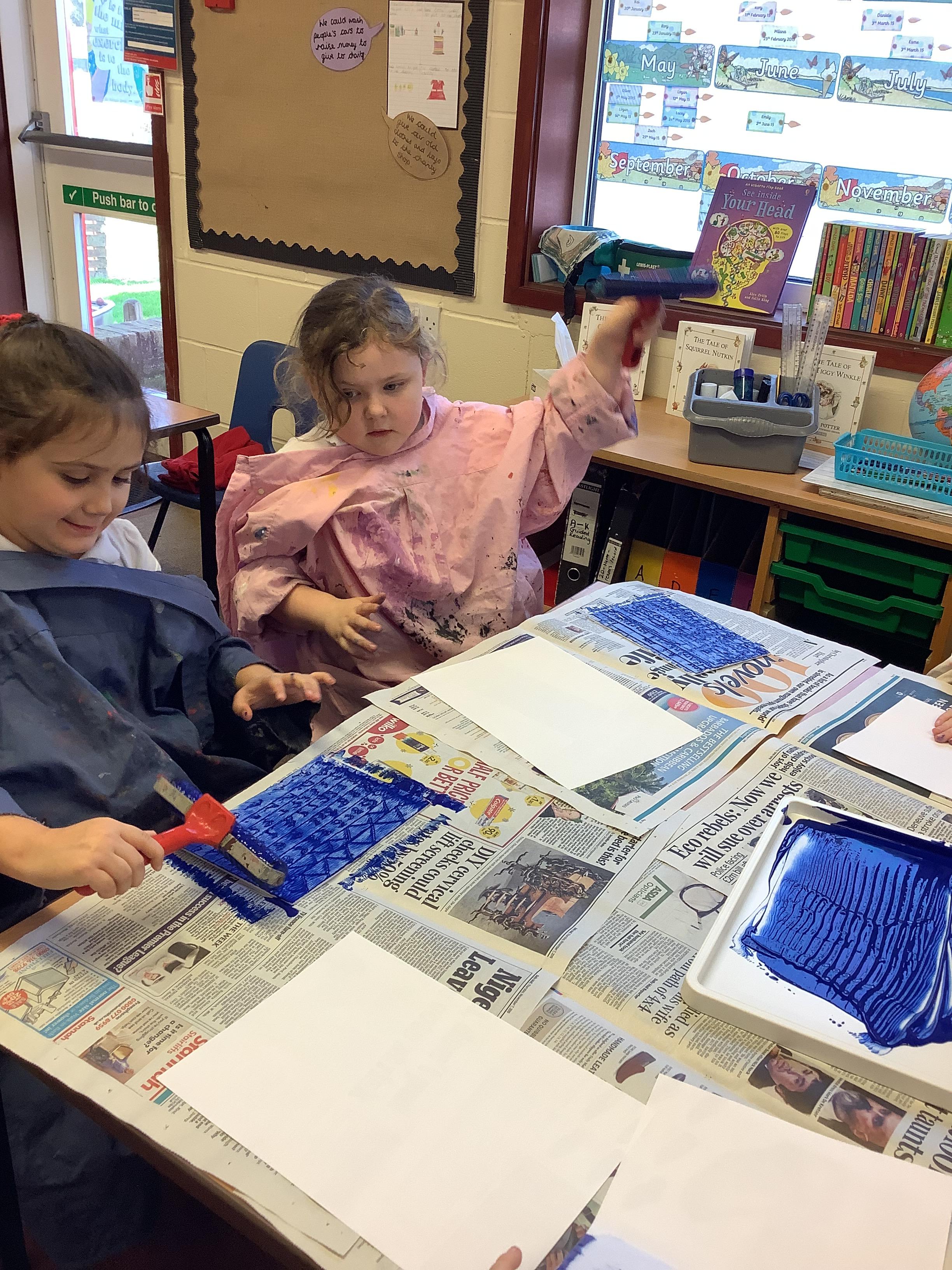 Over the last few weeks children have been designing their own animal prints. They transferred their designs to foam pads then used paint to roll over the foam pads and then printed them on A4 paper.