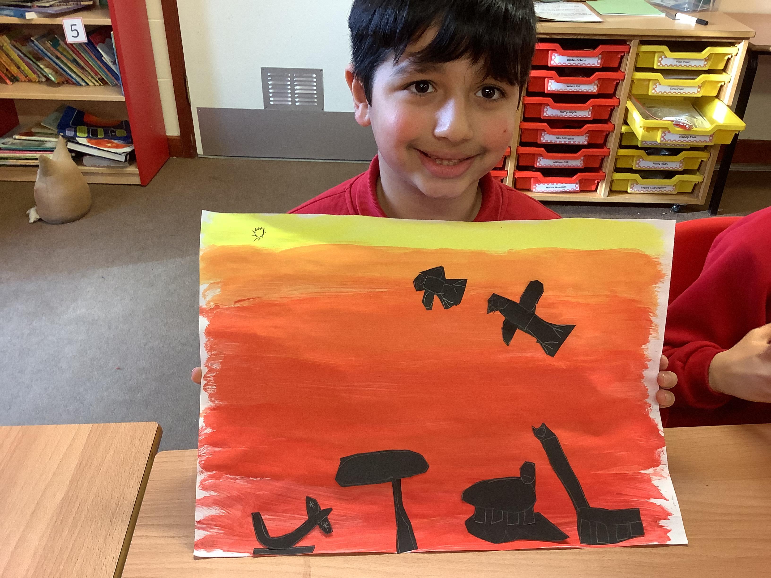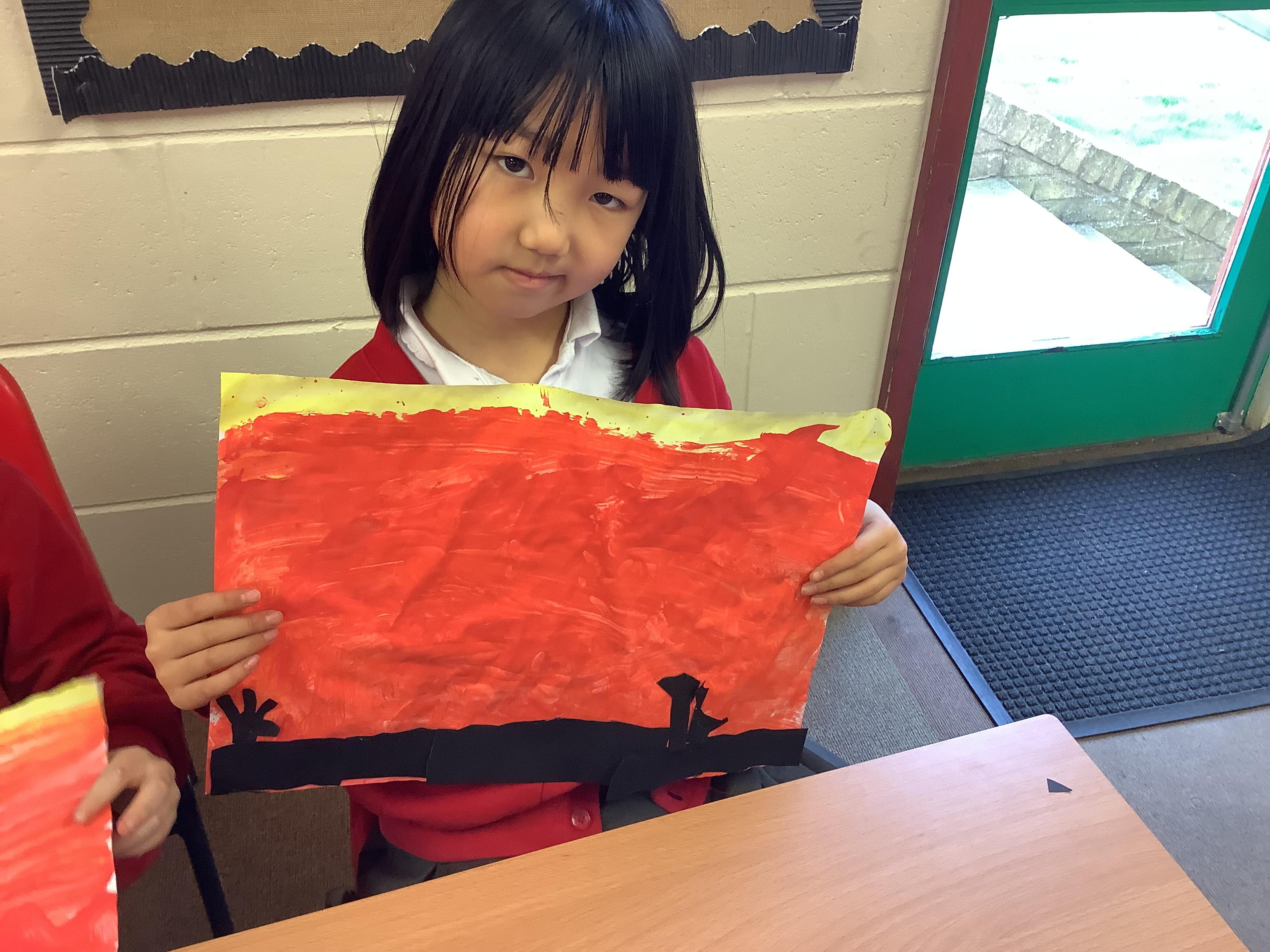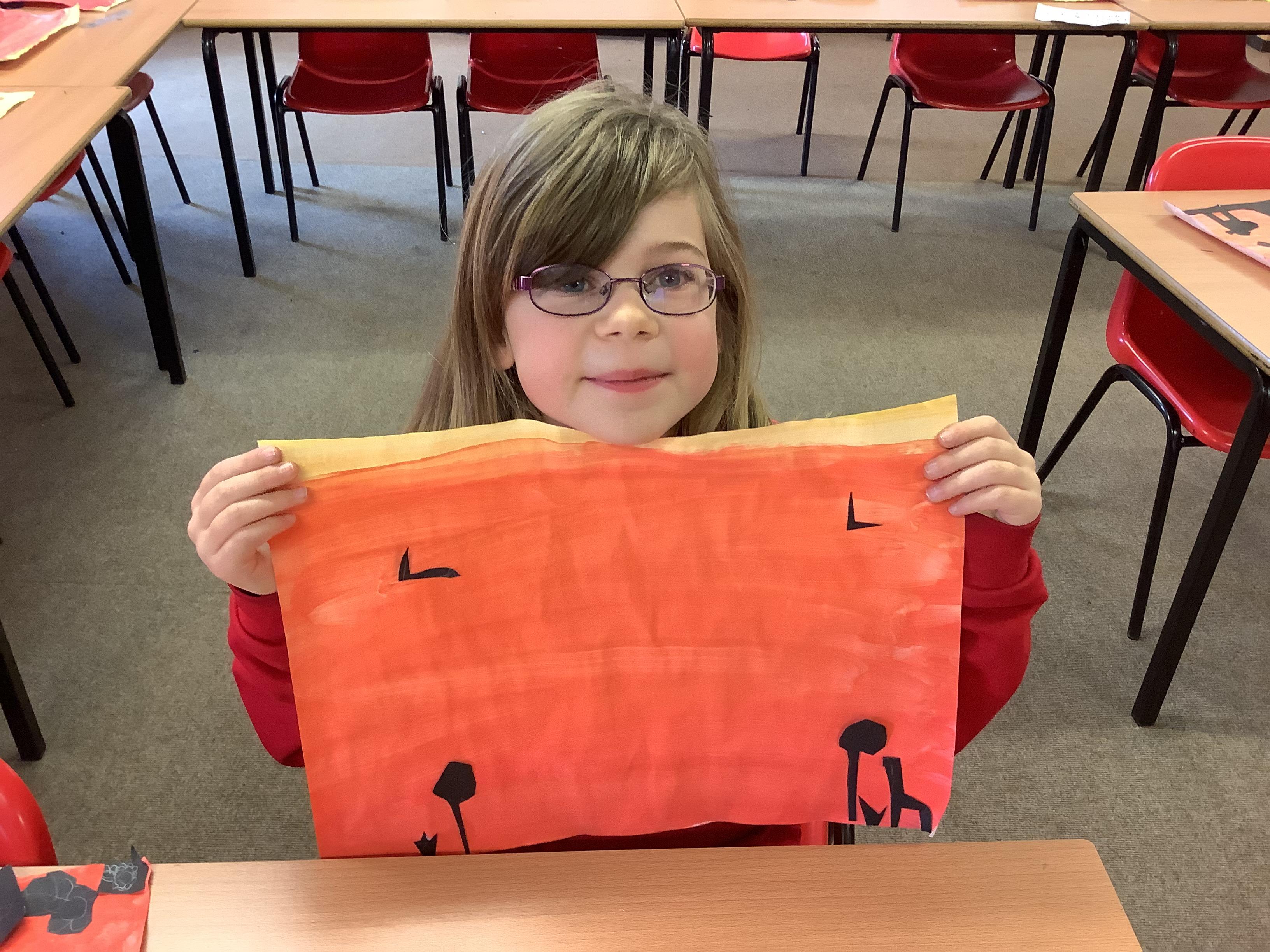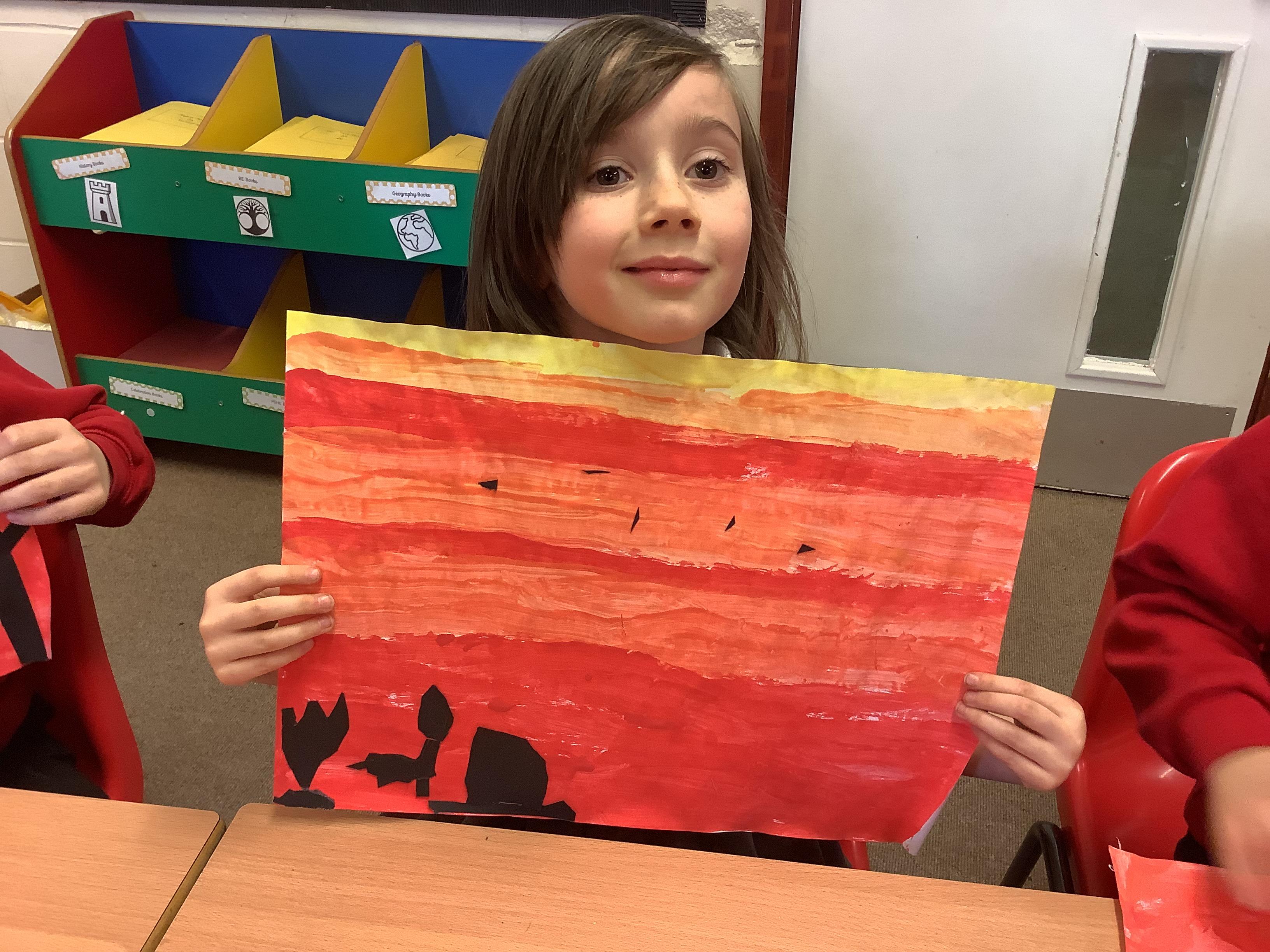 We created sunset pictures and cut out animal silhouettes! We had to think carefully about mixing our colours to create the gradual effect.