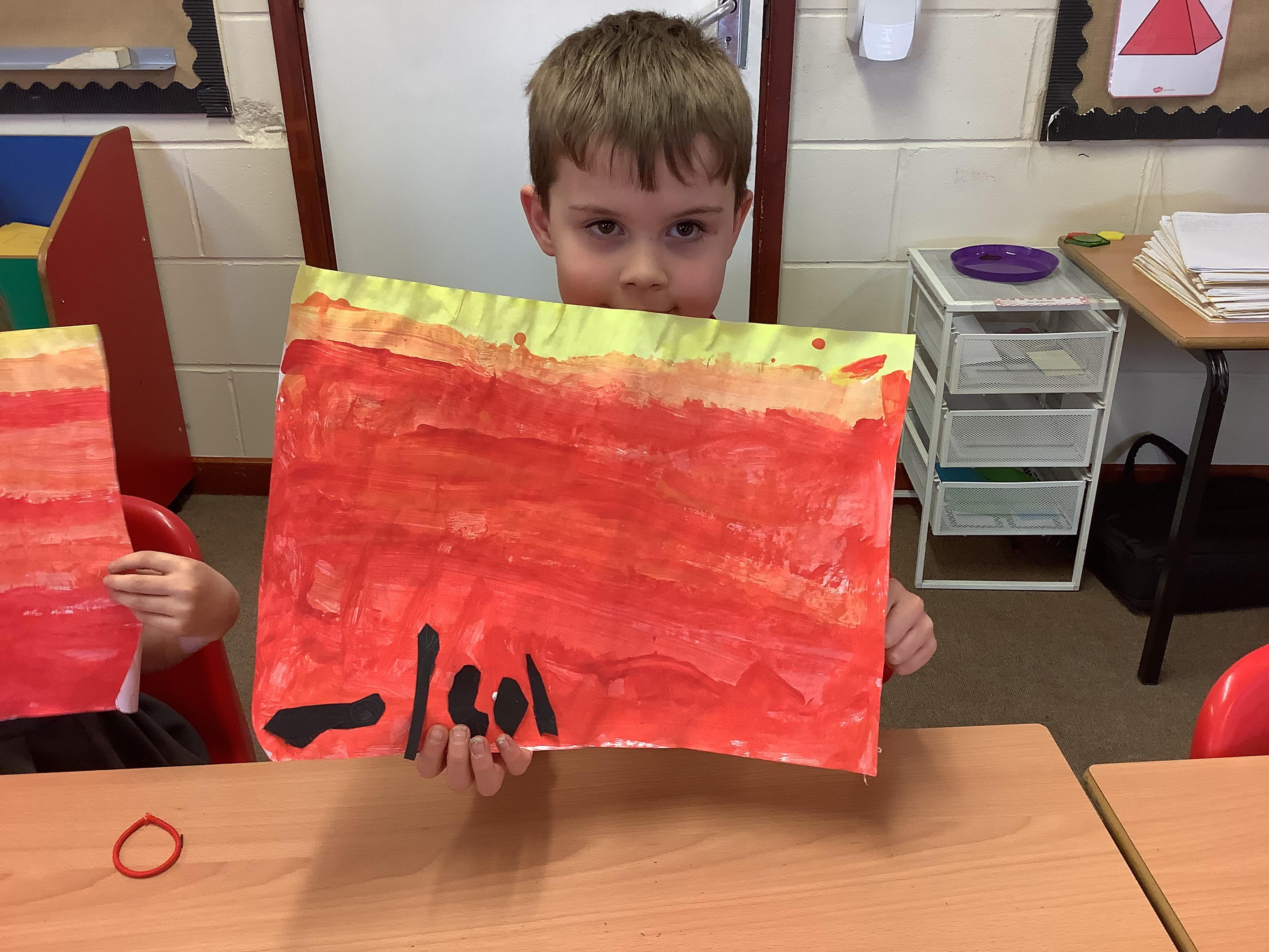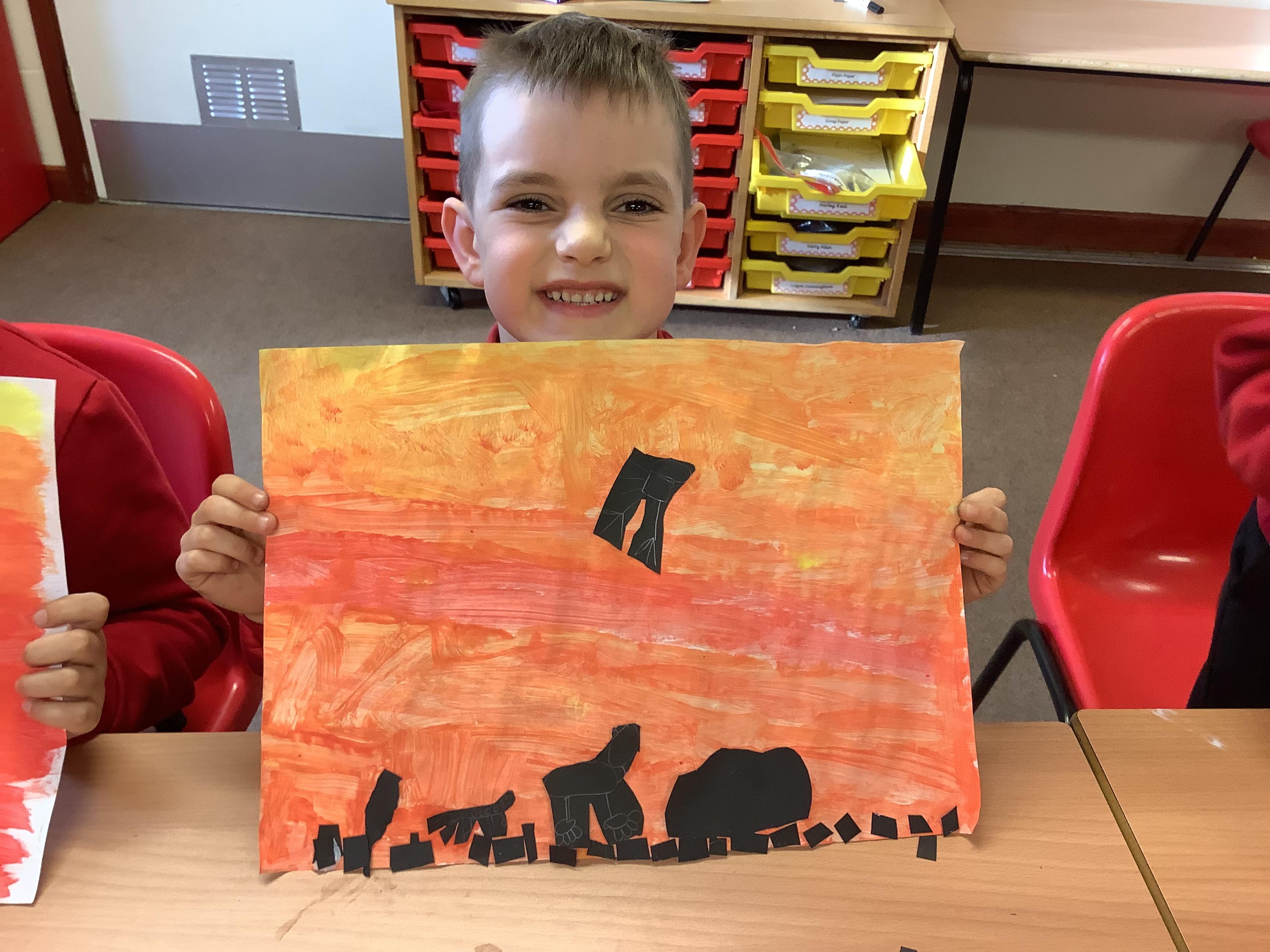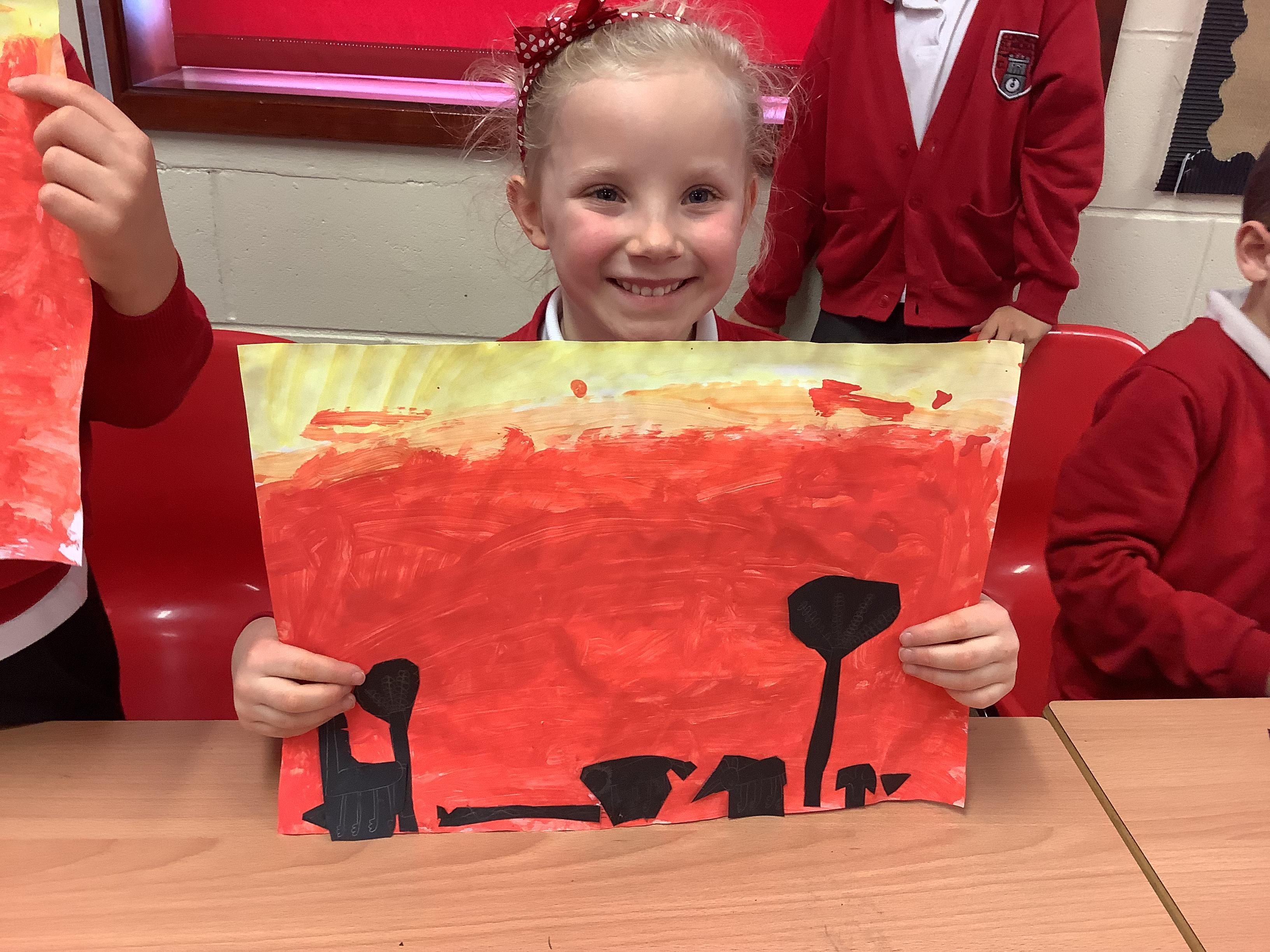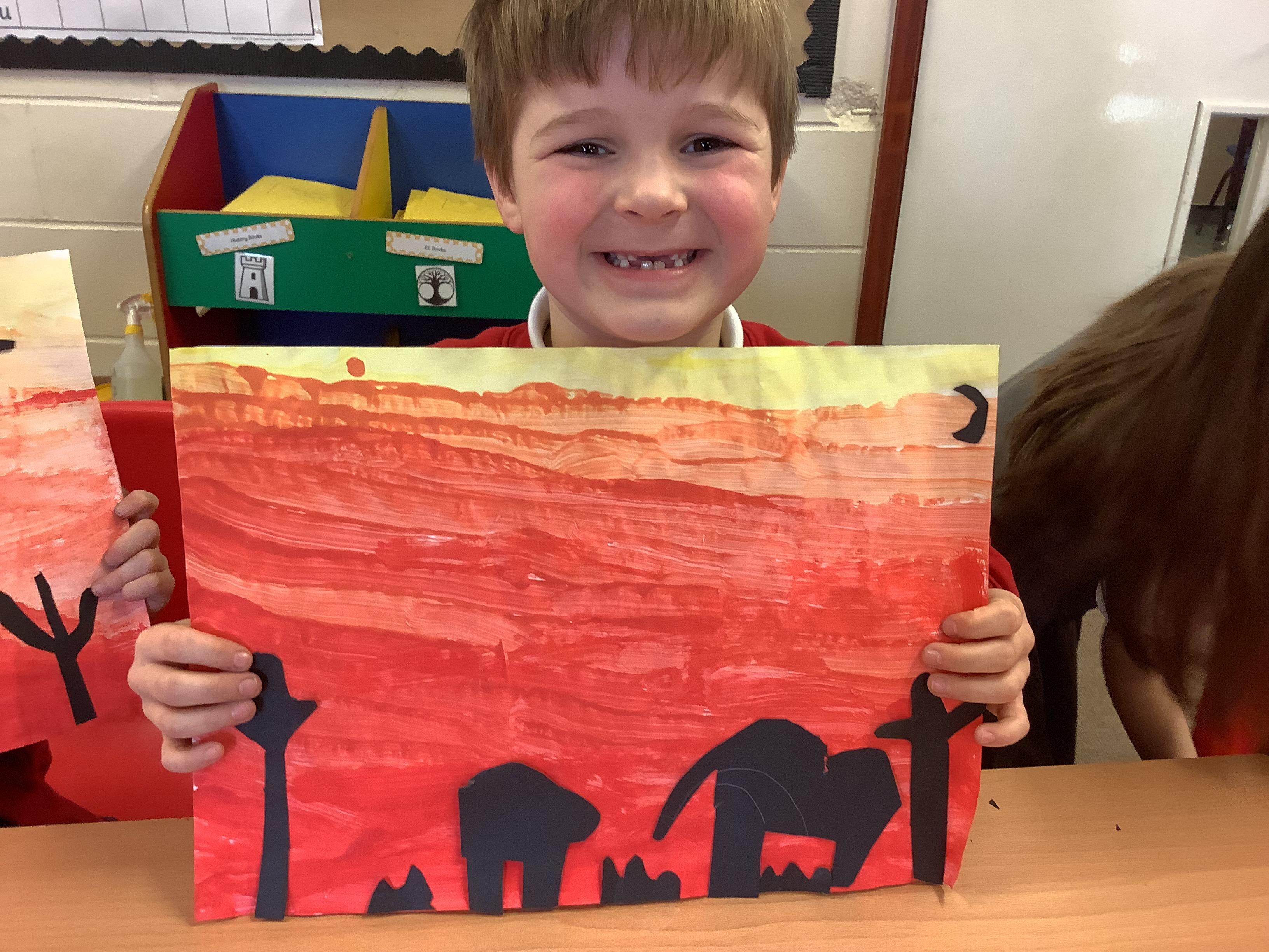 We created sunset pictures and cut out animal silhouettes! We had to think carefully about mixing our colours to create the gradual effect.