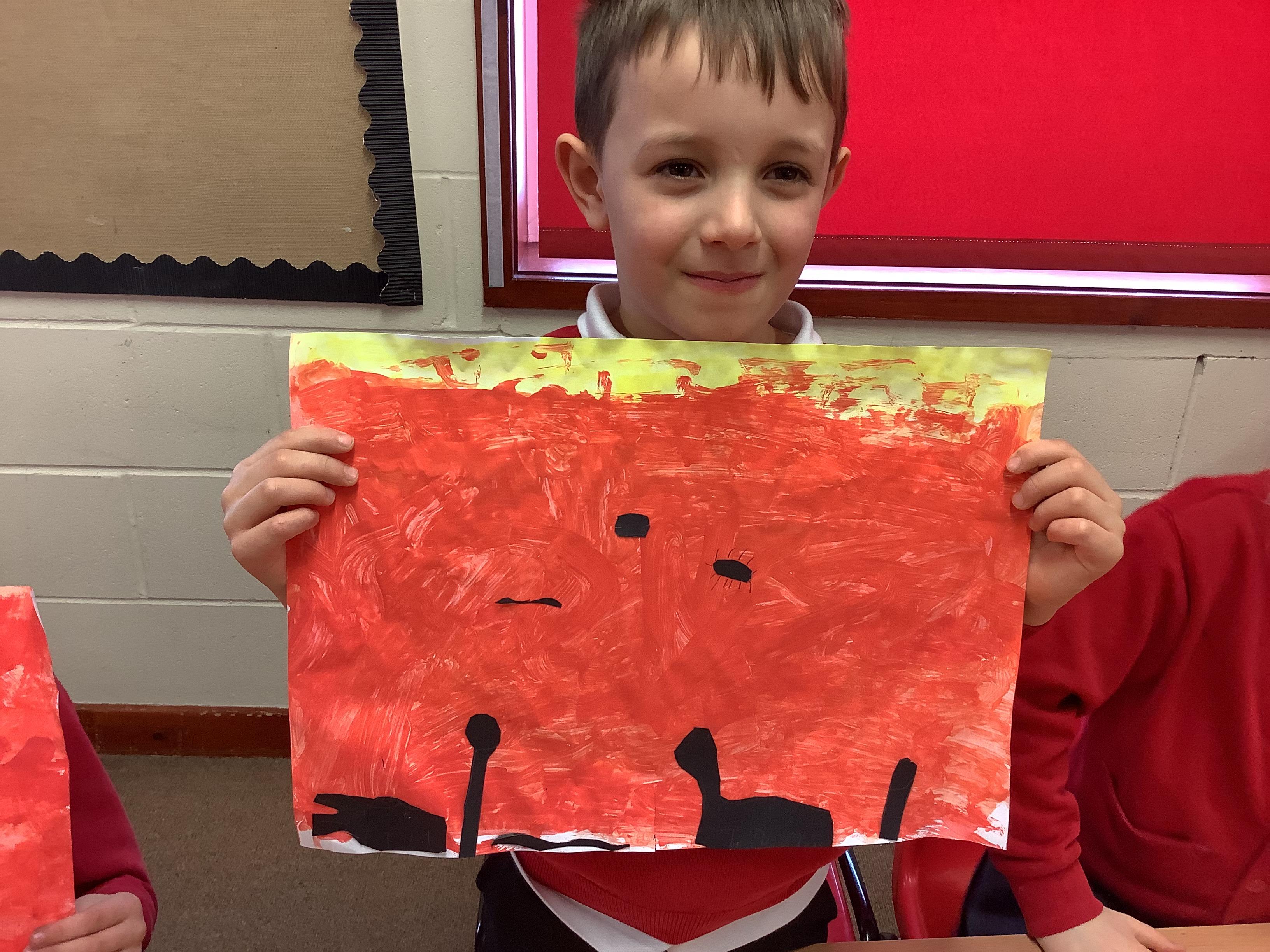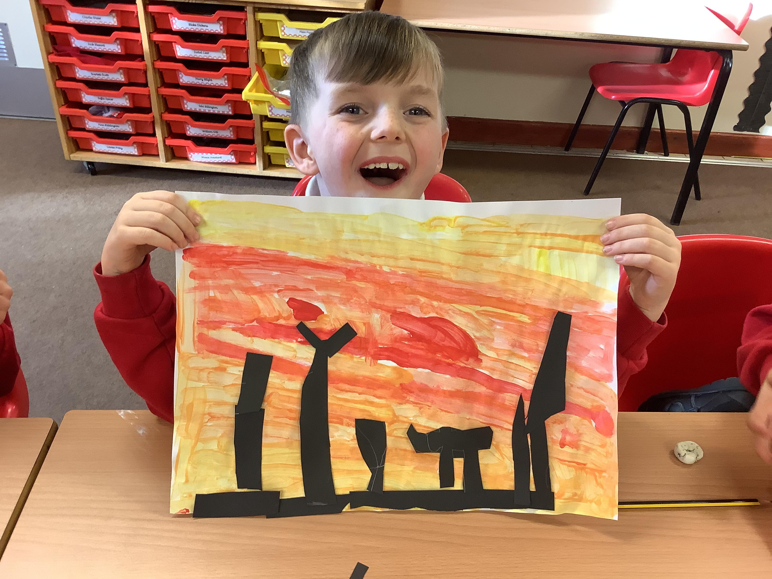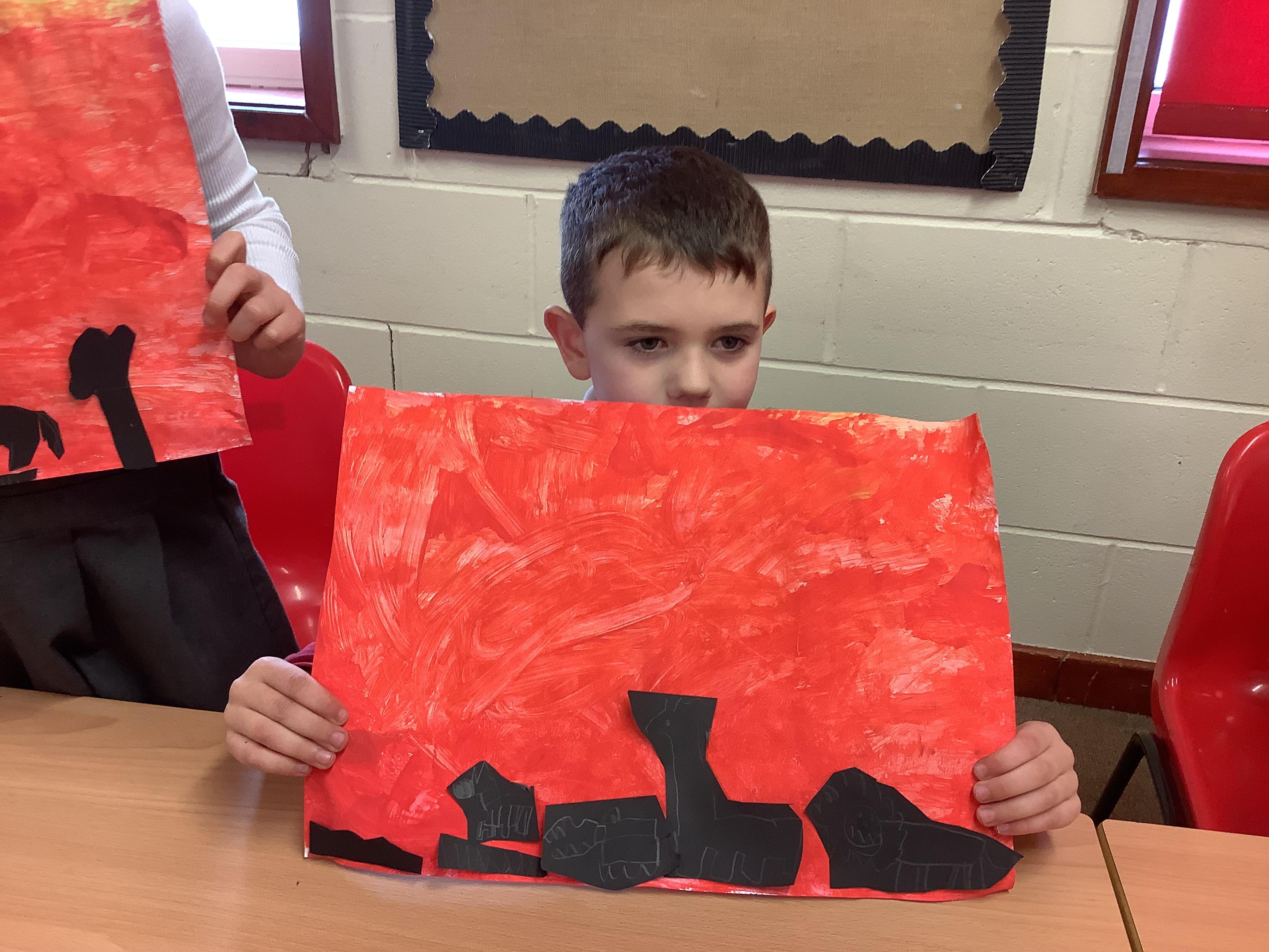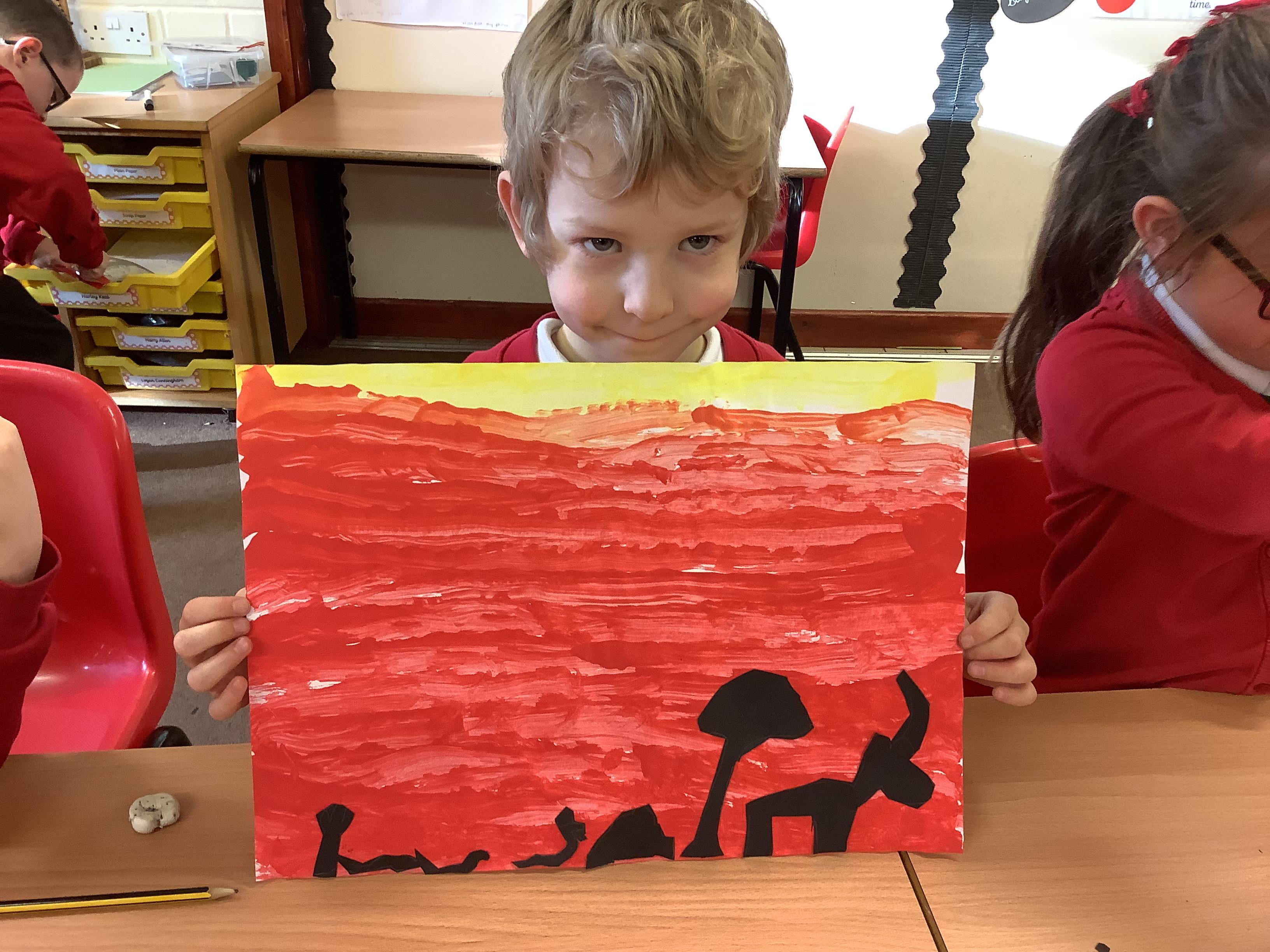 We created sunset pictures and cut out animal silhouettes! We had to think carefully about mixing our colours to create the gradual effect.