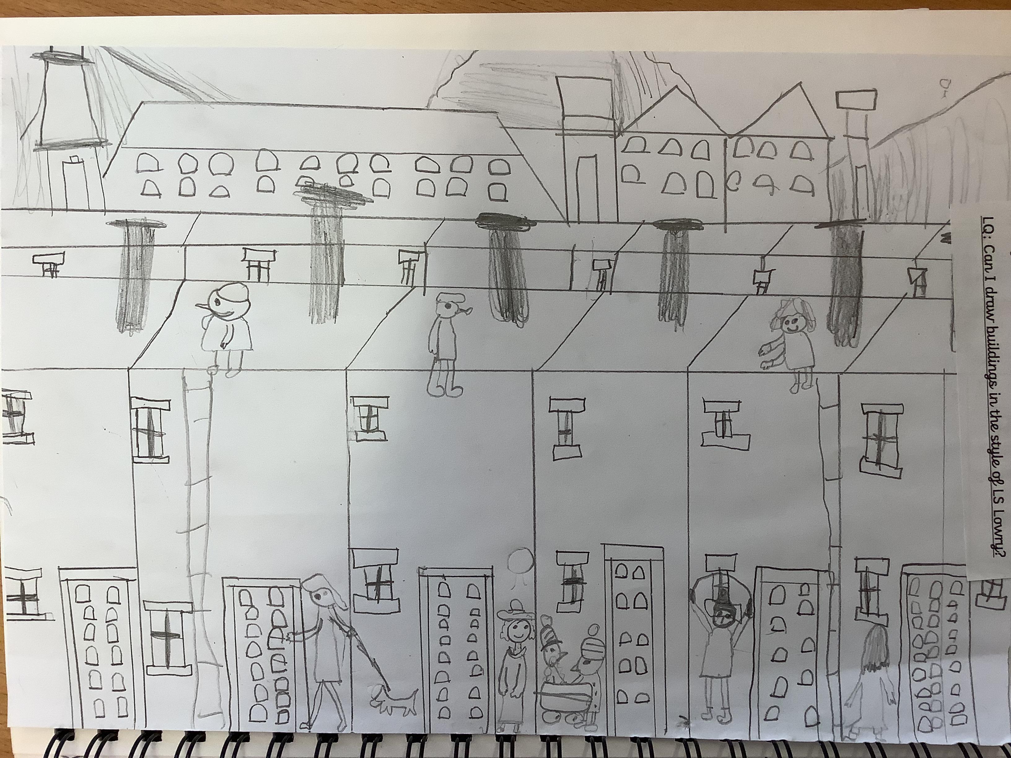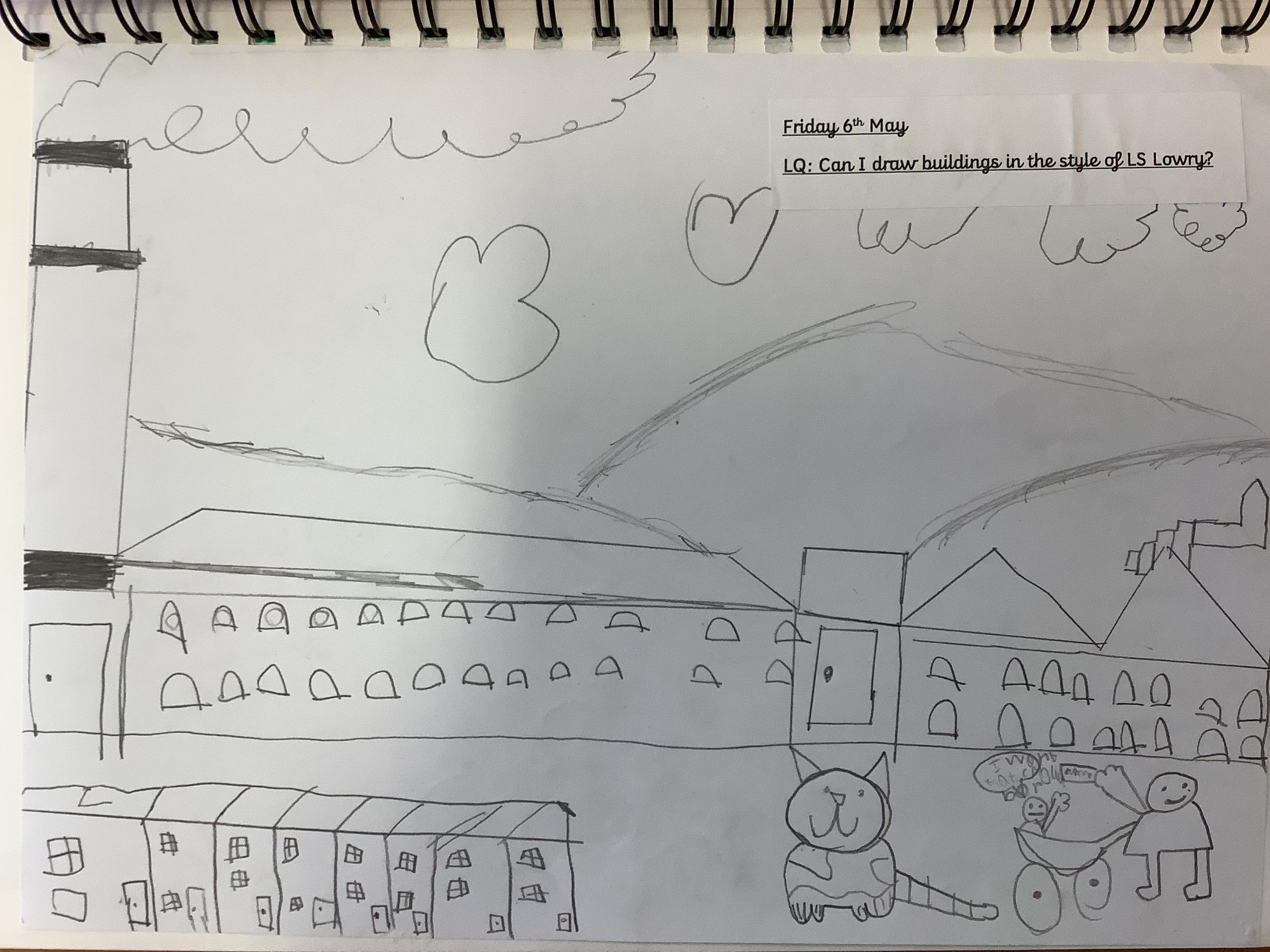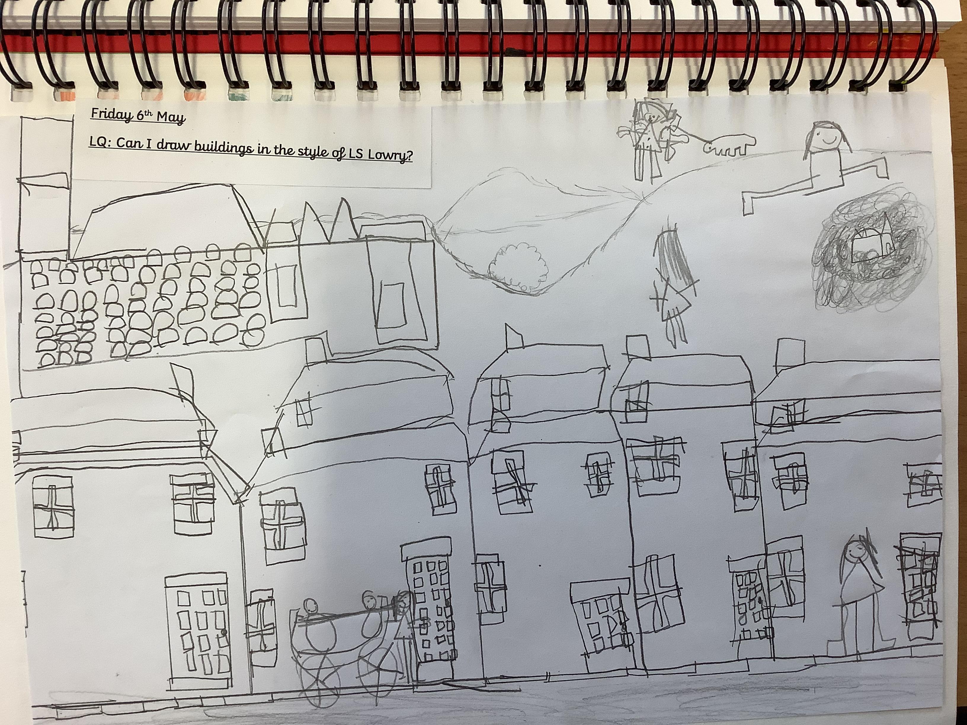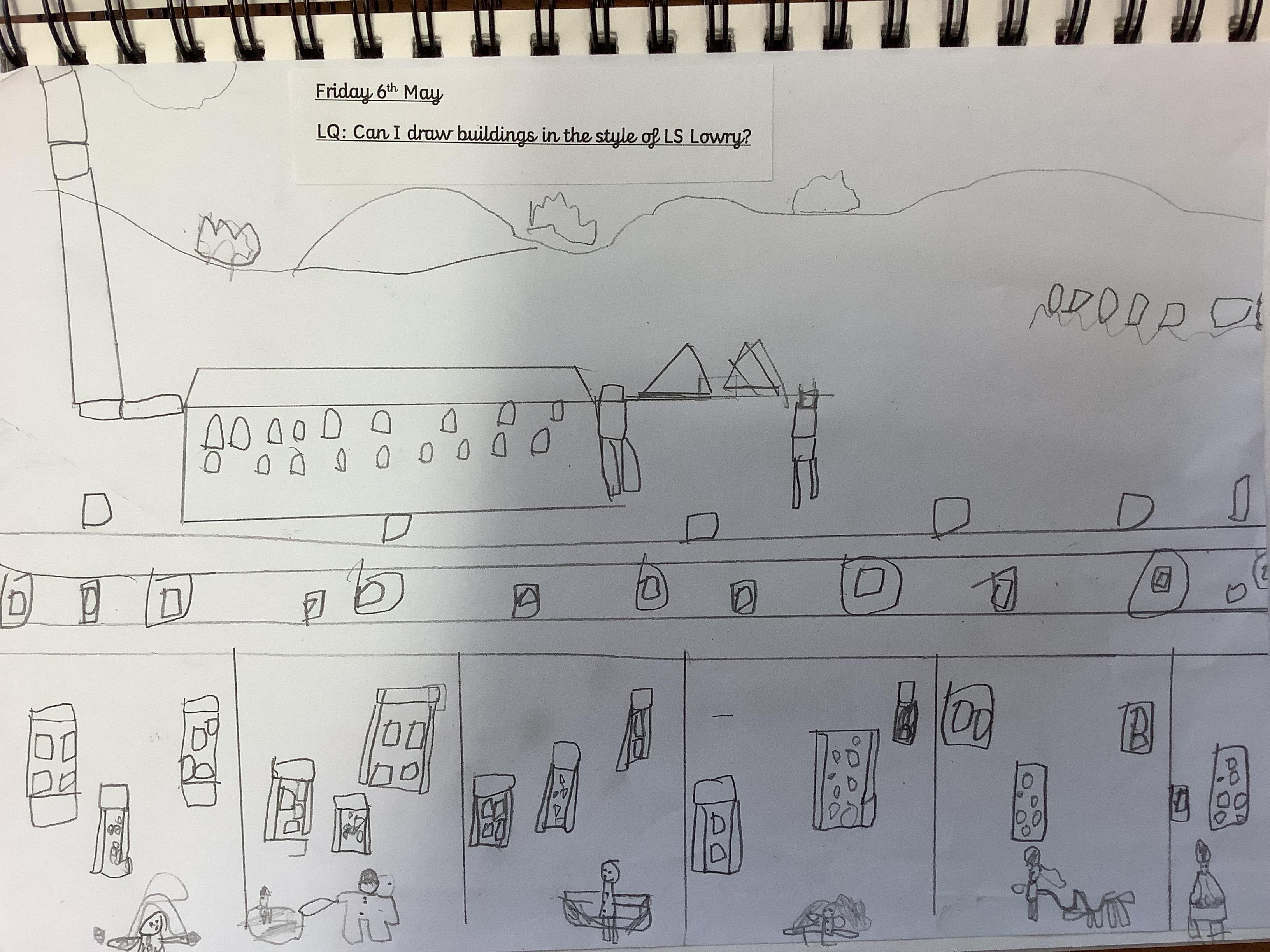 Children have spent 2 weeks creating their own versions of LS Lowry's iconic buildings, they started by drawing the outline of the buildings then filling in the finer details like the windows and doors, finally they added the people.