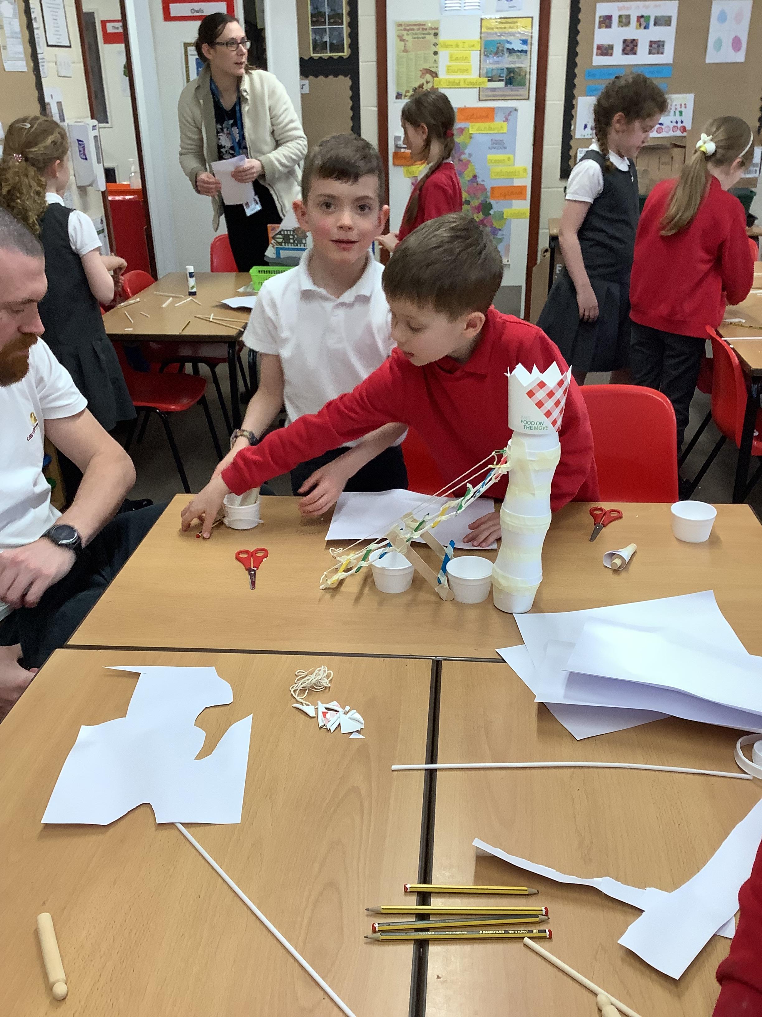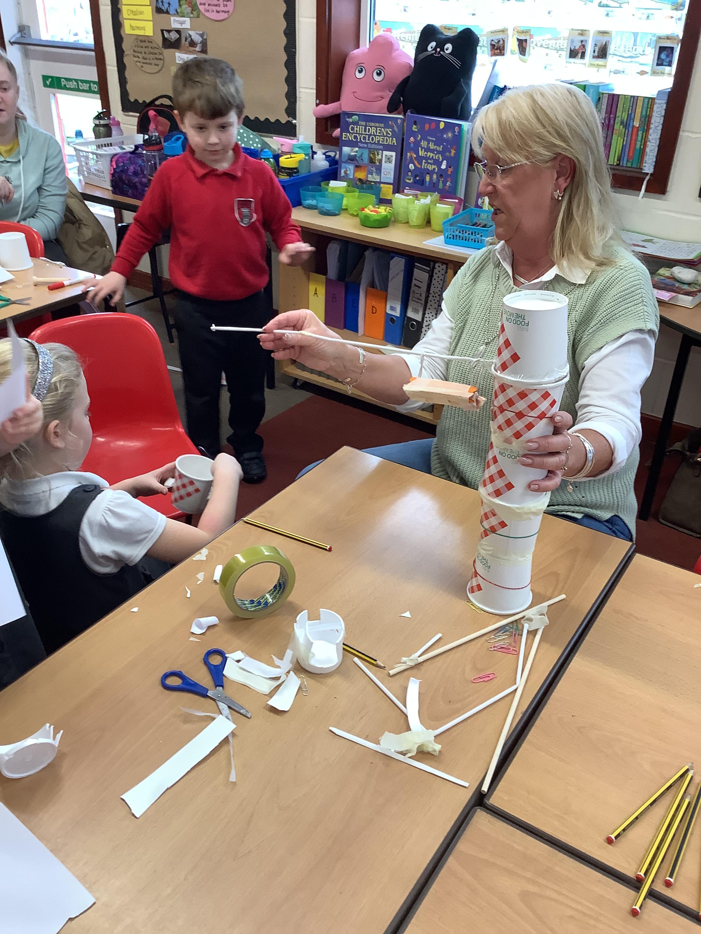 For British Science Week this year, parents were invited in for an afternoon of fairy tale engineering! They had to build a contraption to help Rapunzel escape from her tower. There were some amazing ideas, lifts, pulley systems, zip wires, rope ladders, shutes, slides! Well done everyone!