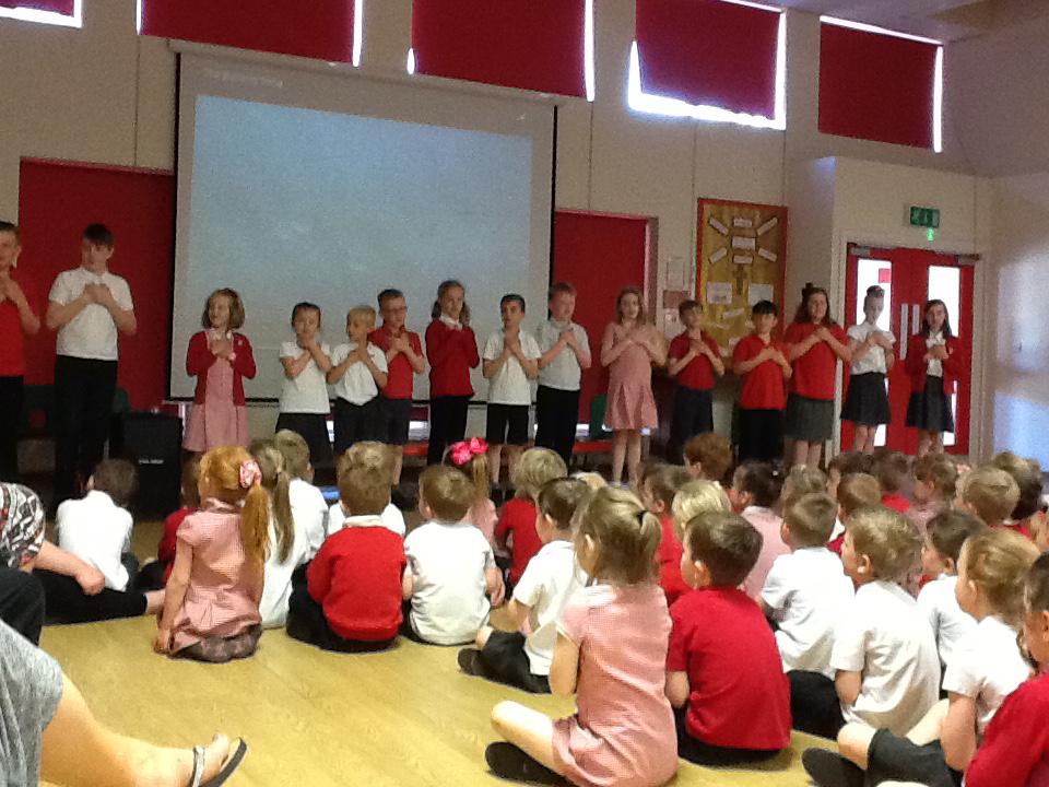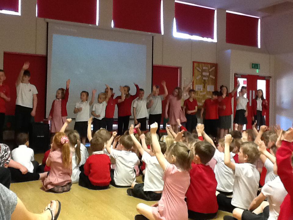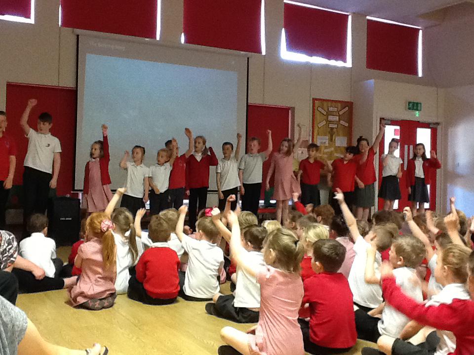 Members of the collective worship council leading worship for the whole school on the theme of our school vision.