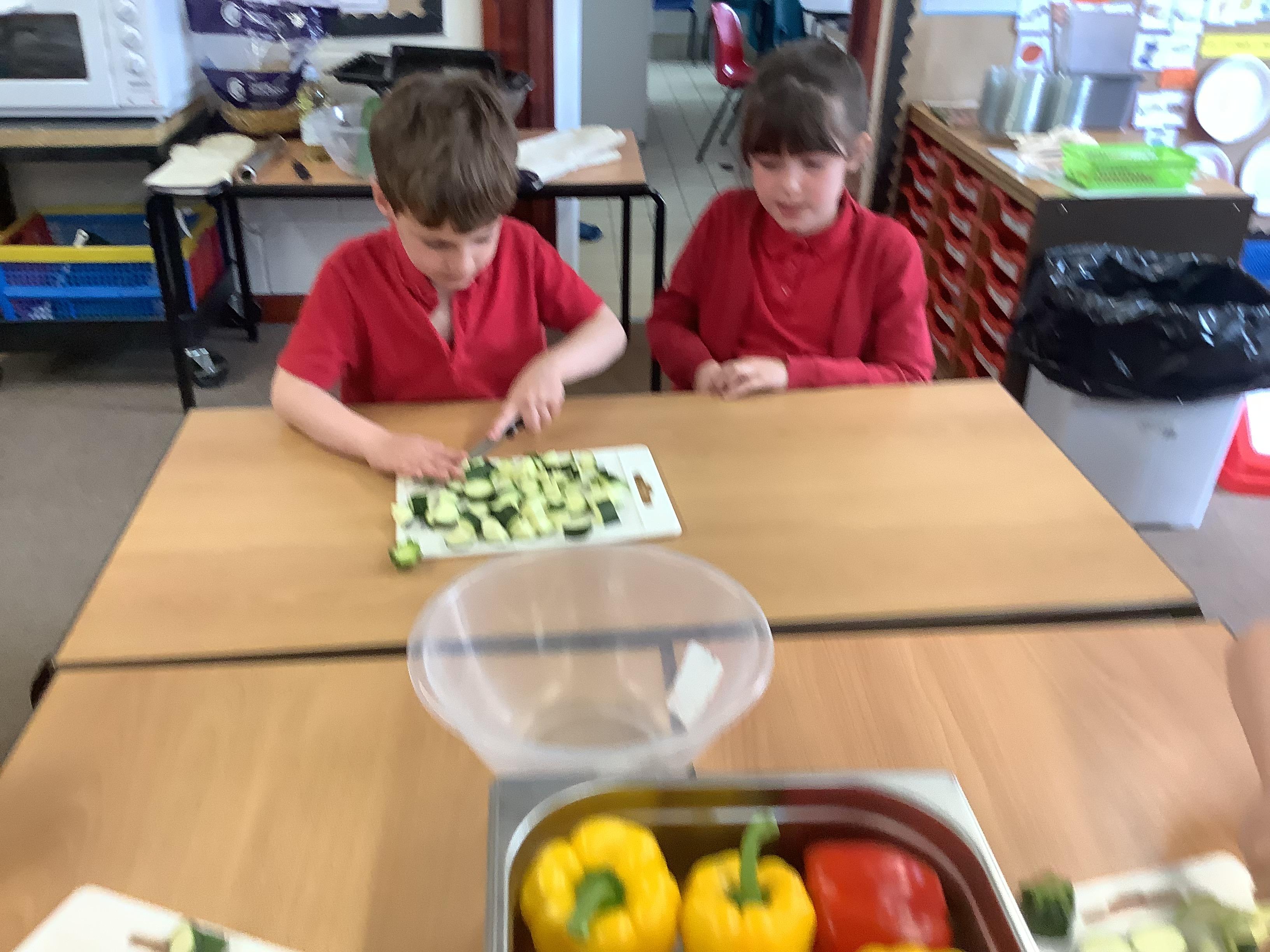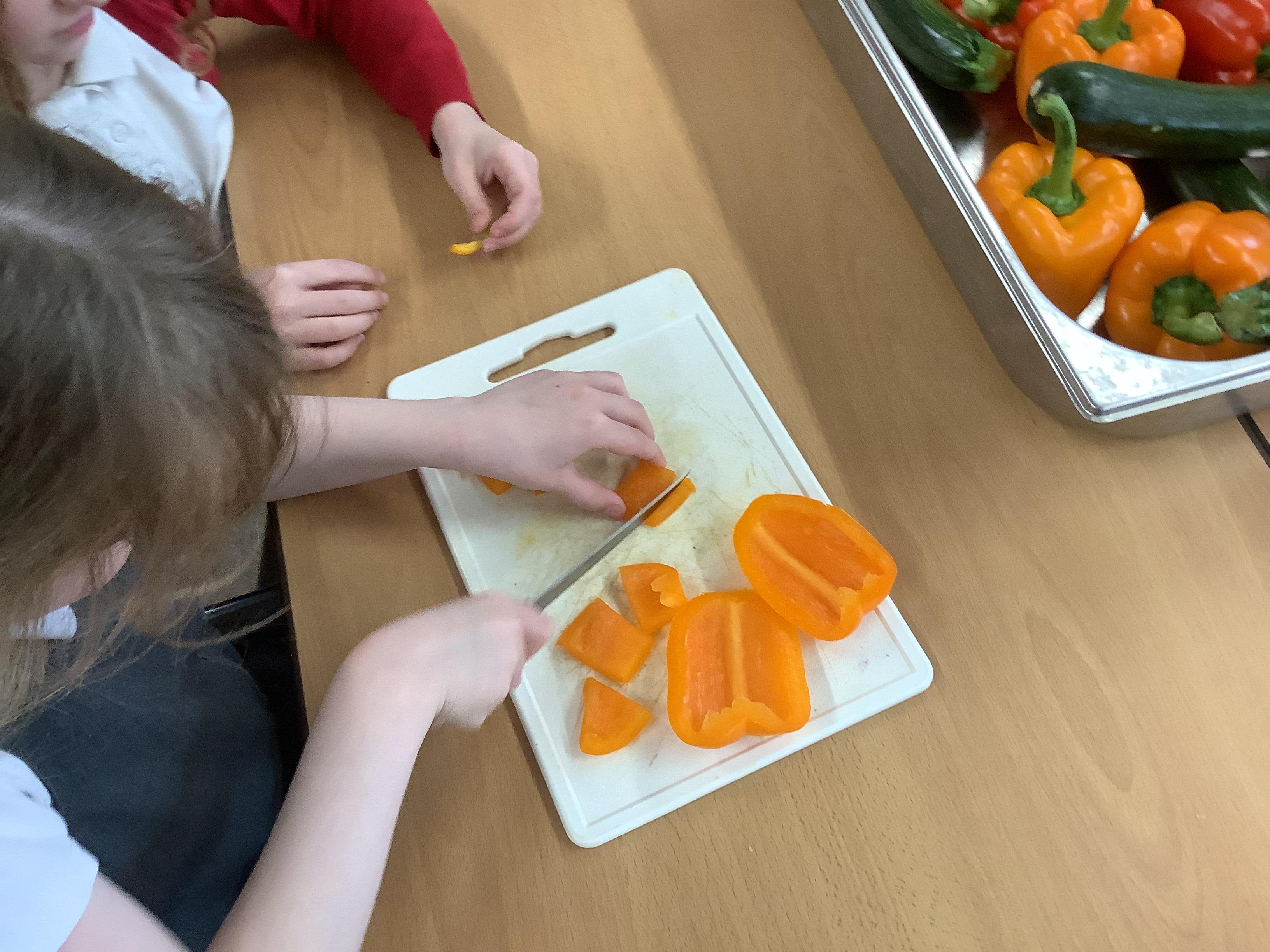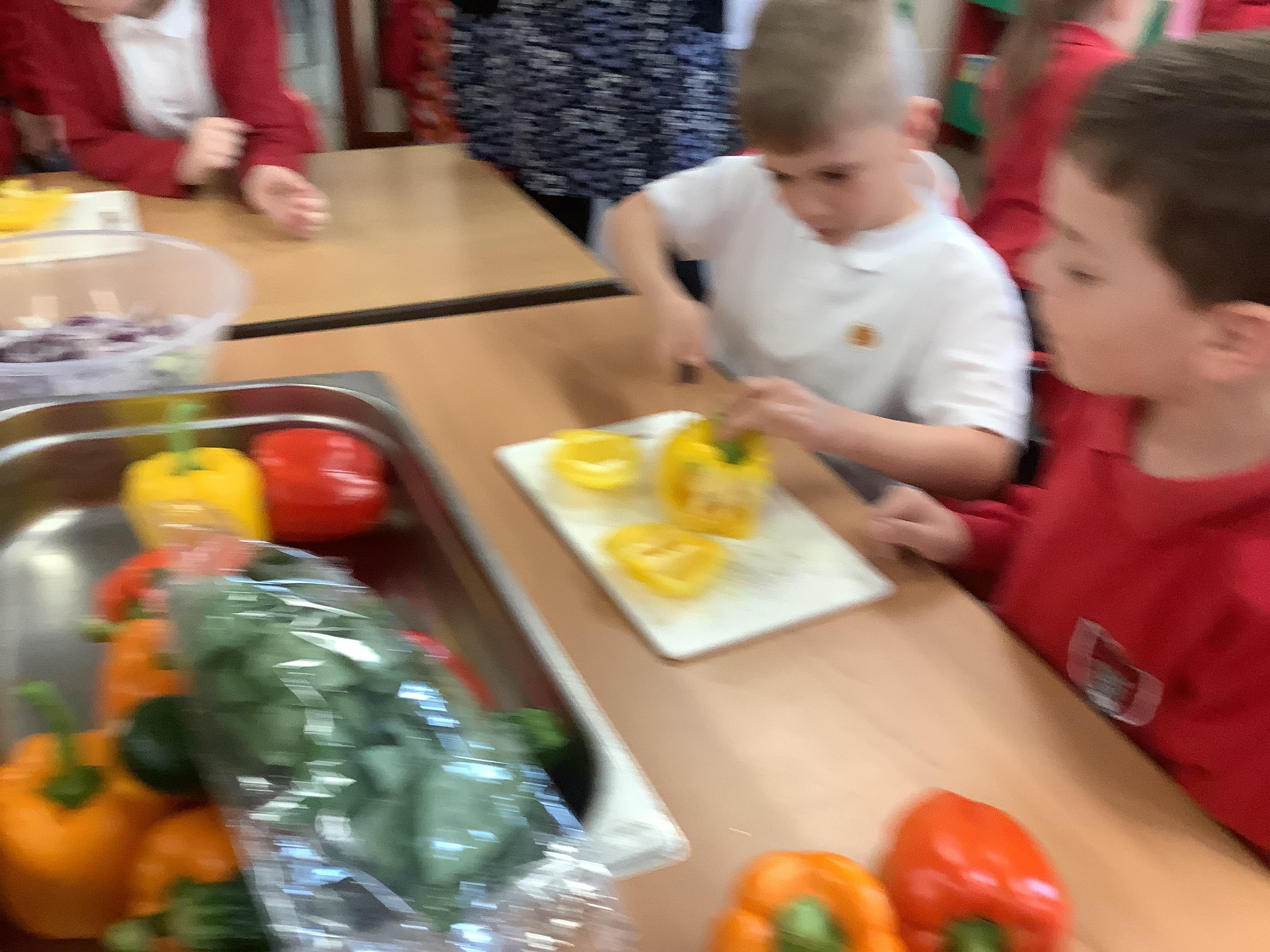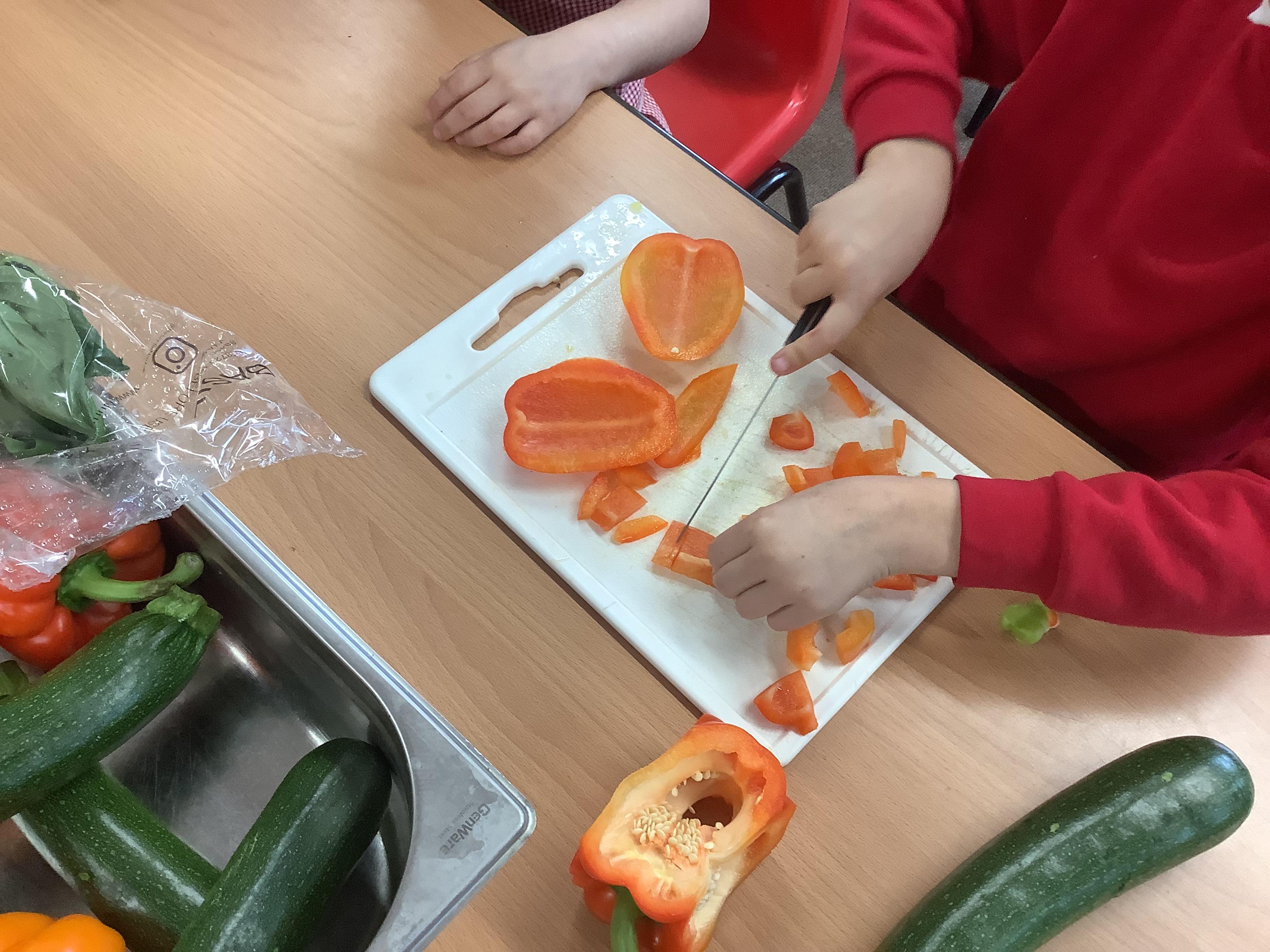 Today we got to make our healthy meal! We boiled the pasta and let it cool, then we cut all our veg into chunks, added some garlic and olive oil and roasted it in the oven. Then we combined all the ingredients with a little mayonnaise and added some basil leaves for a final touch!