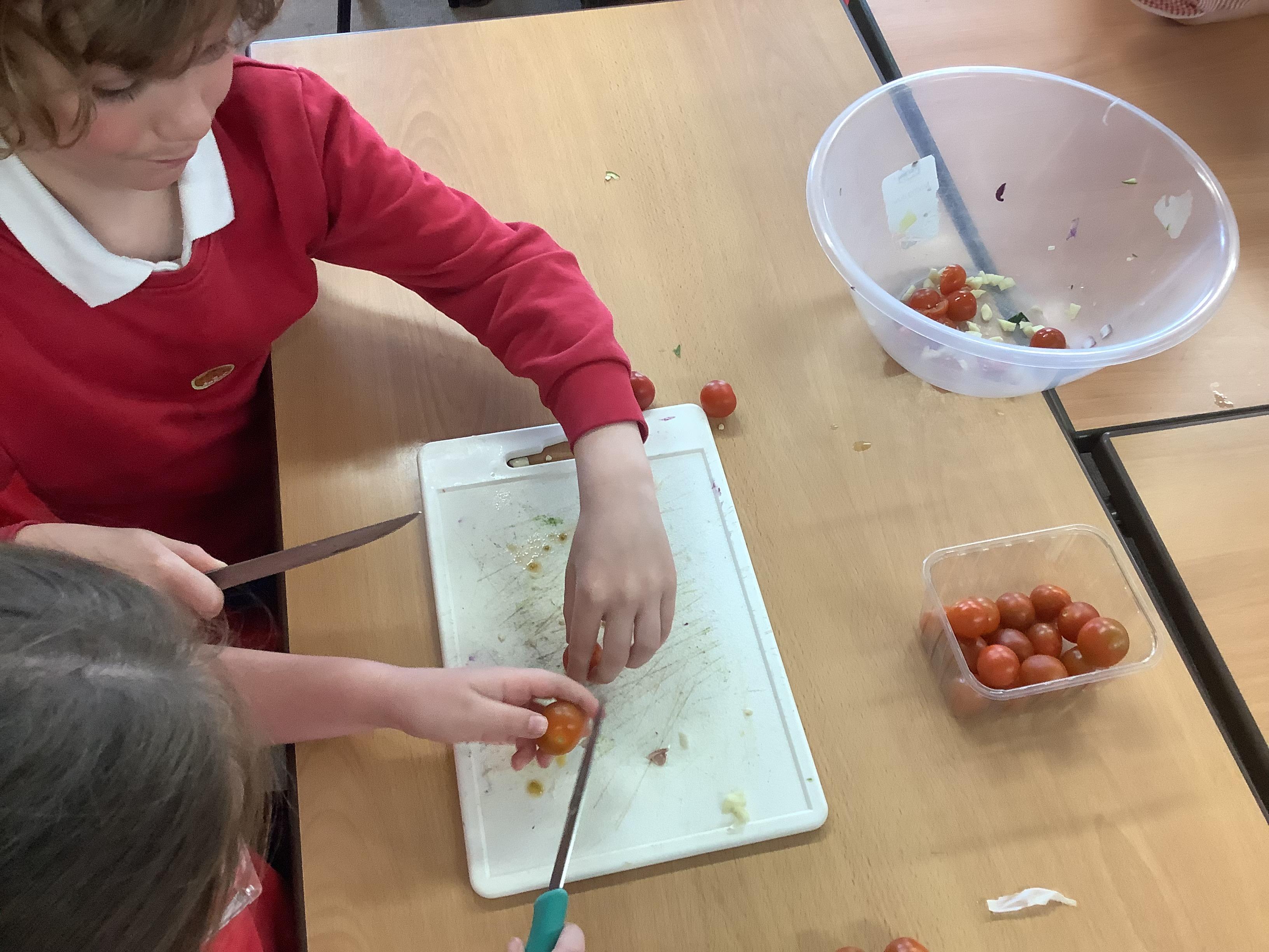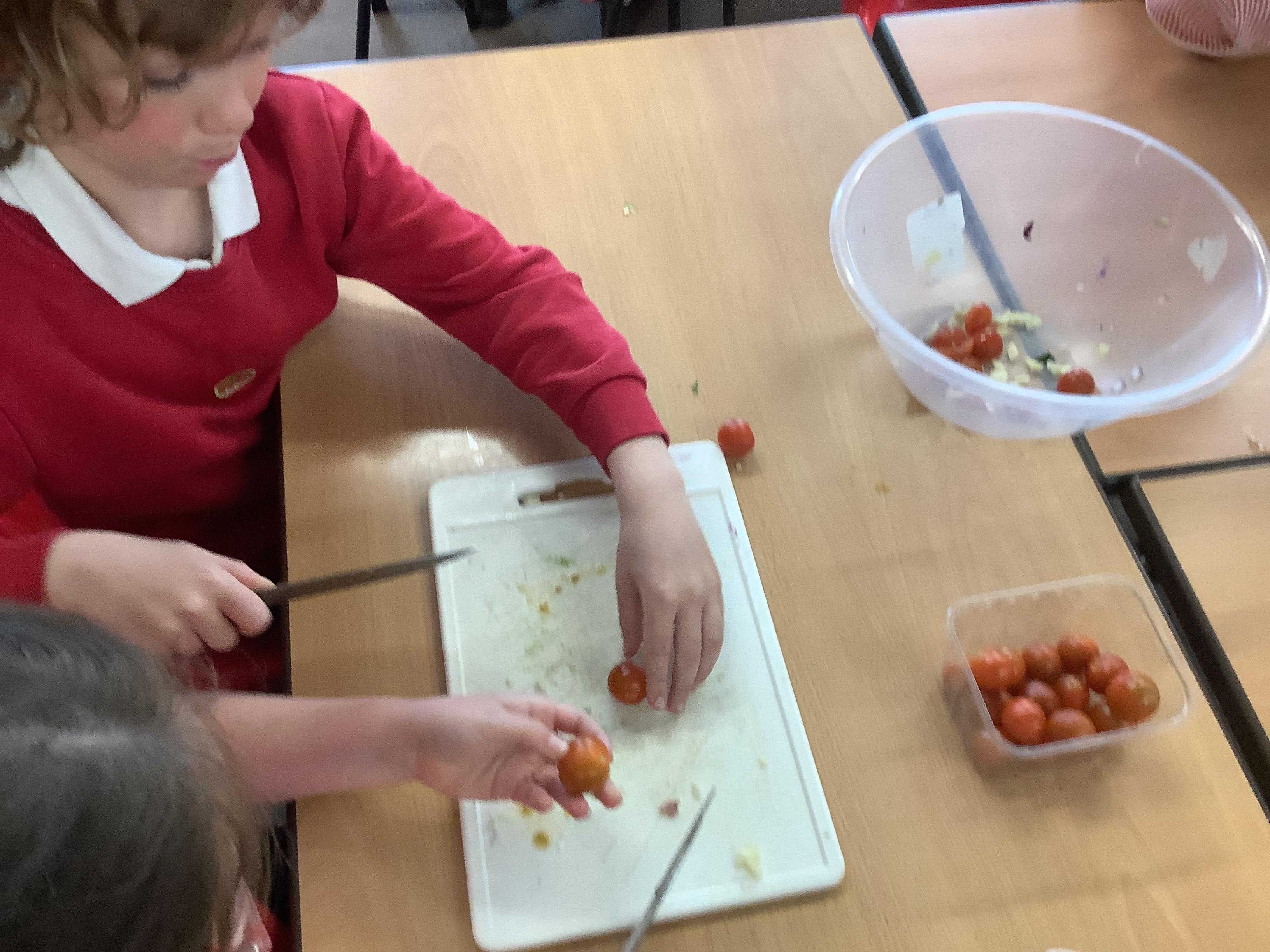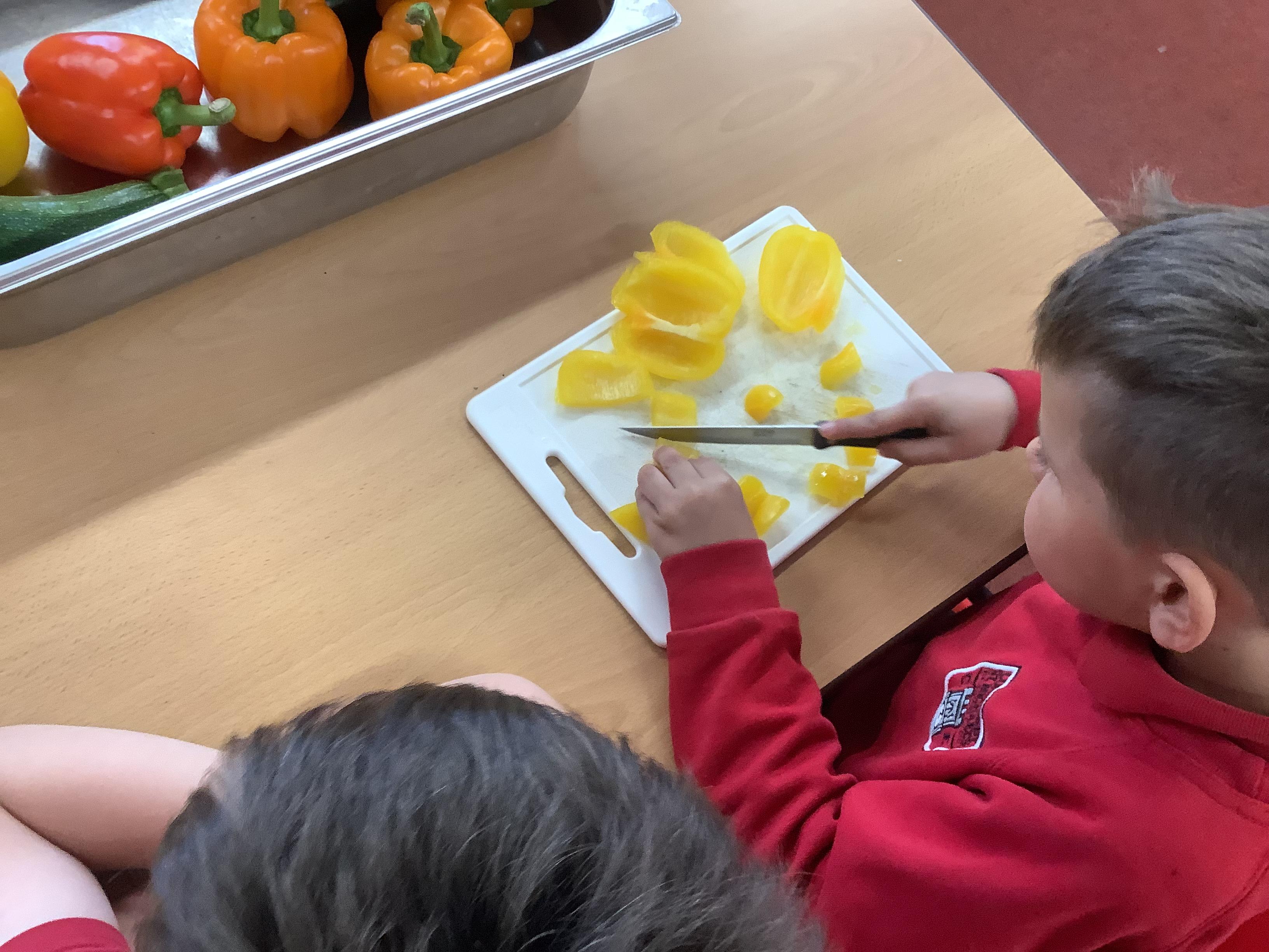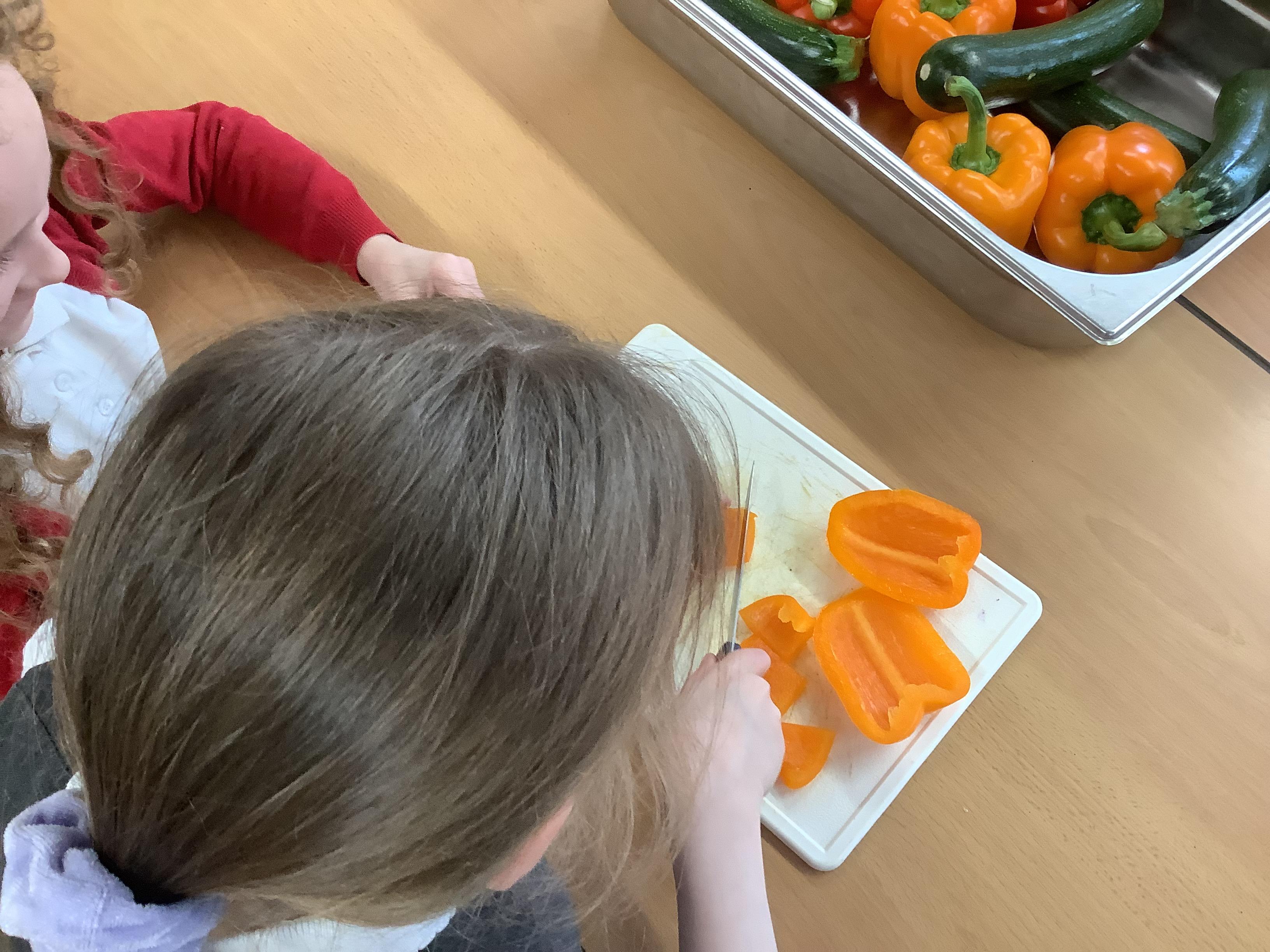 Today we got to make our healthy meal! We boiled the pasta and let it cool, then we cut all our veg into chunks, added some garlic and olive oil and roasted it in the oven. Then we combined all the ingredients with a little mayonnaise and added some basil leaves for a final touch!