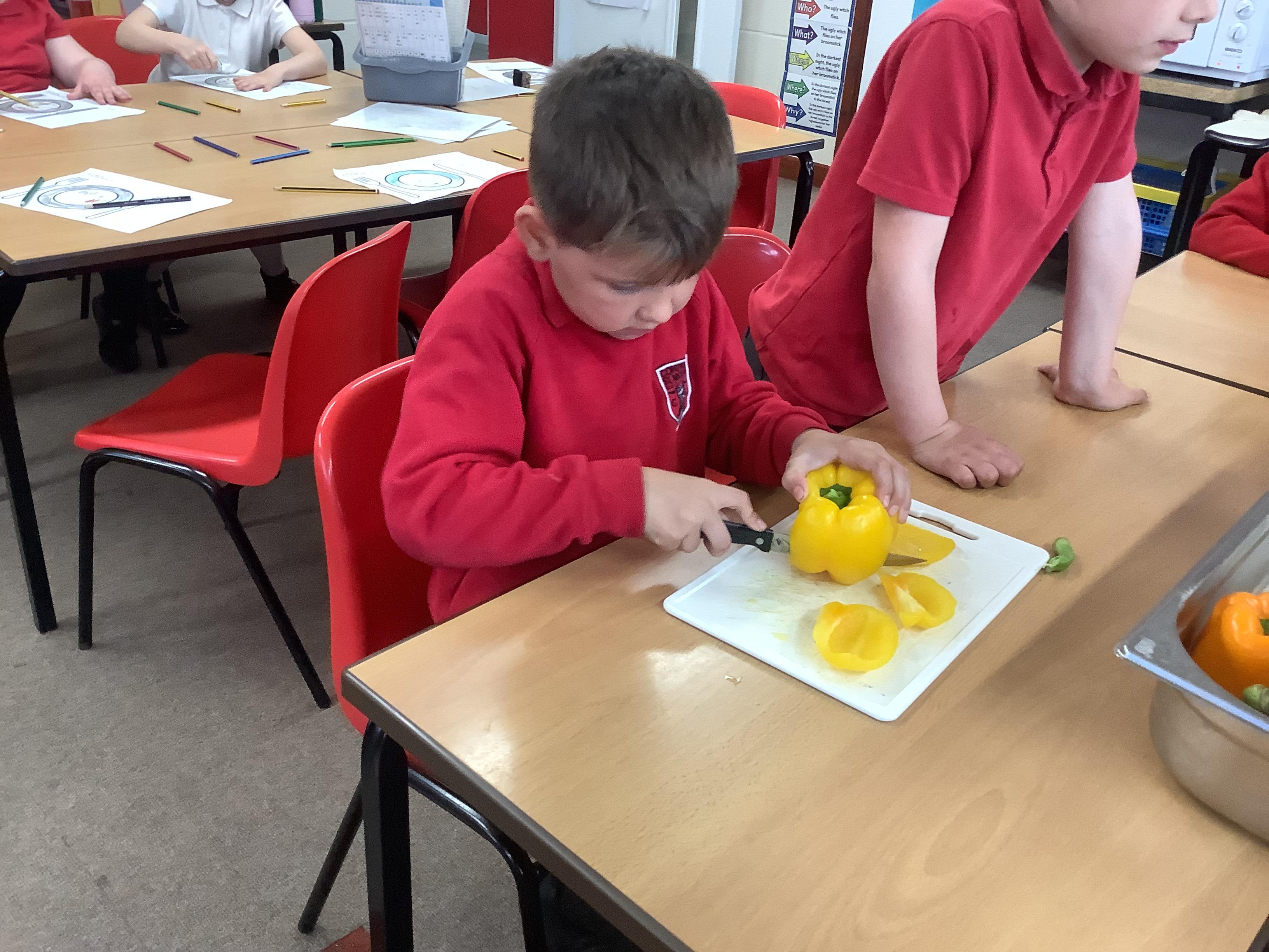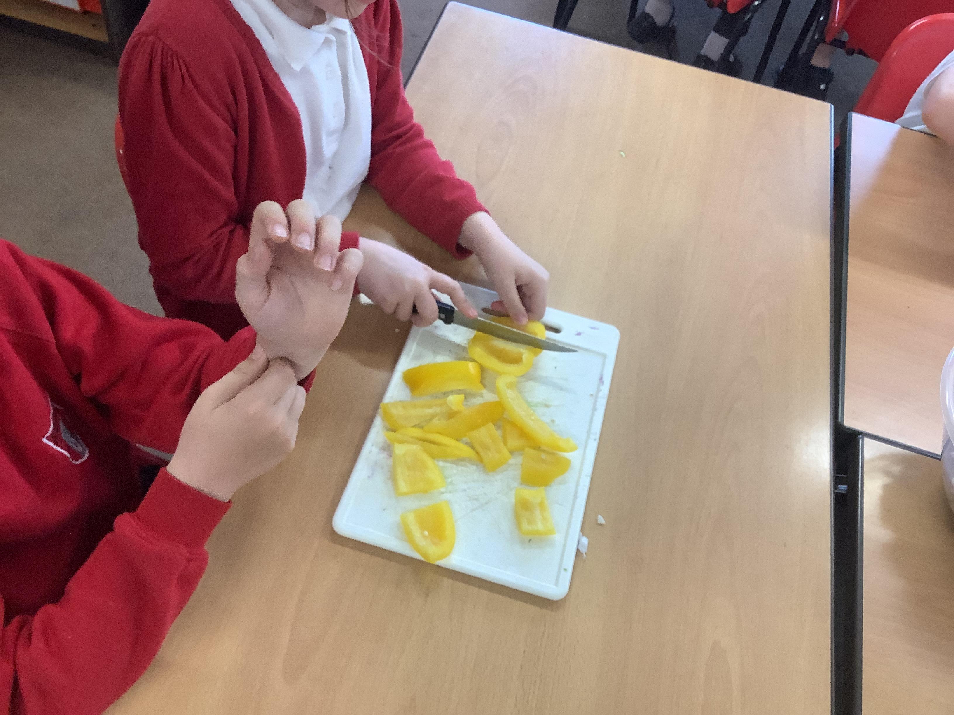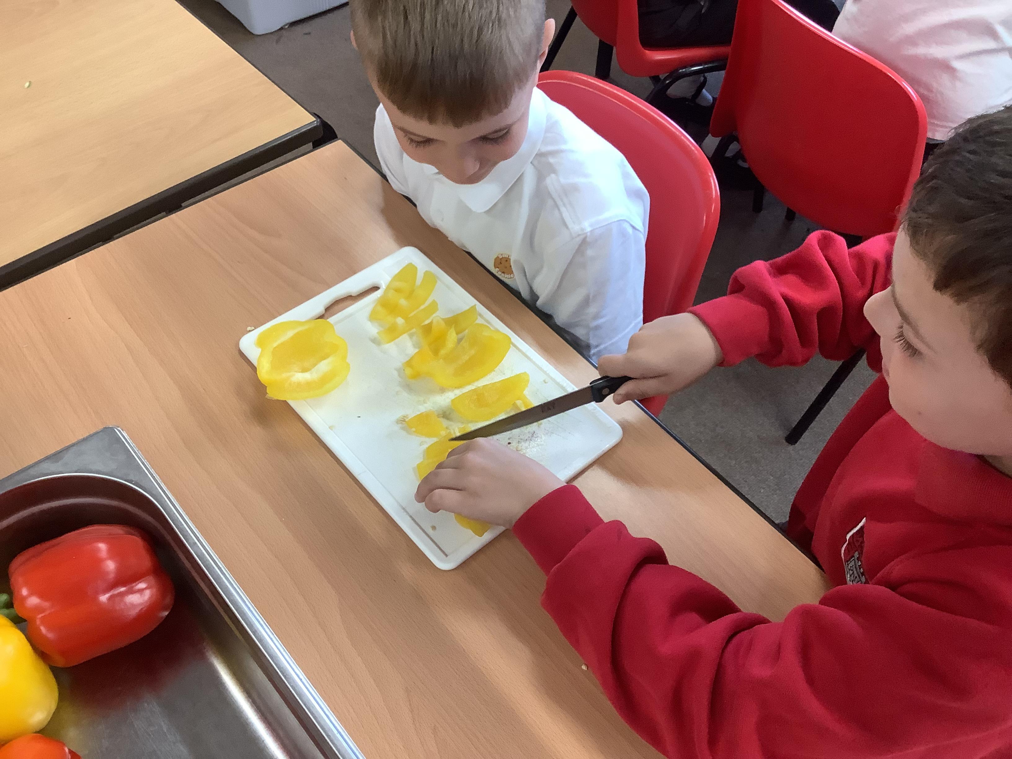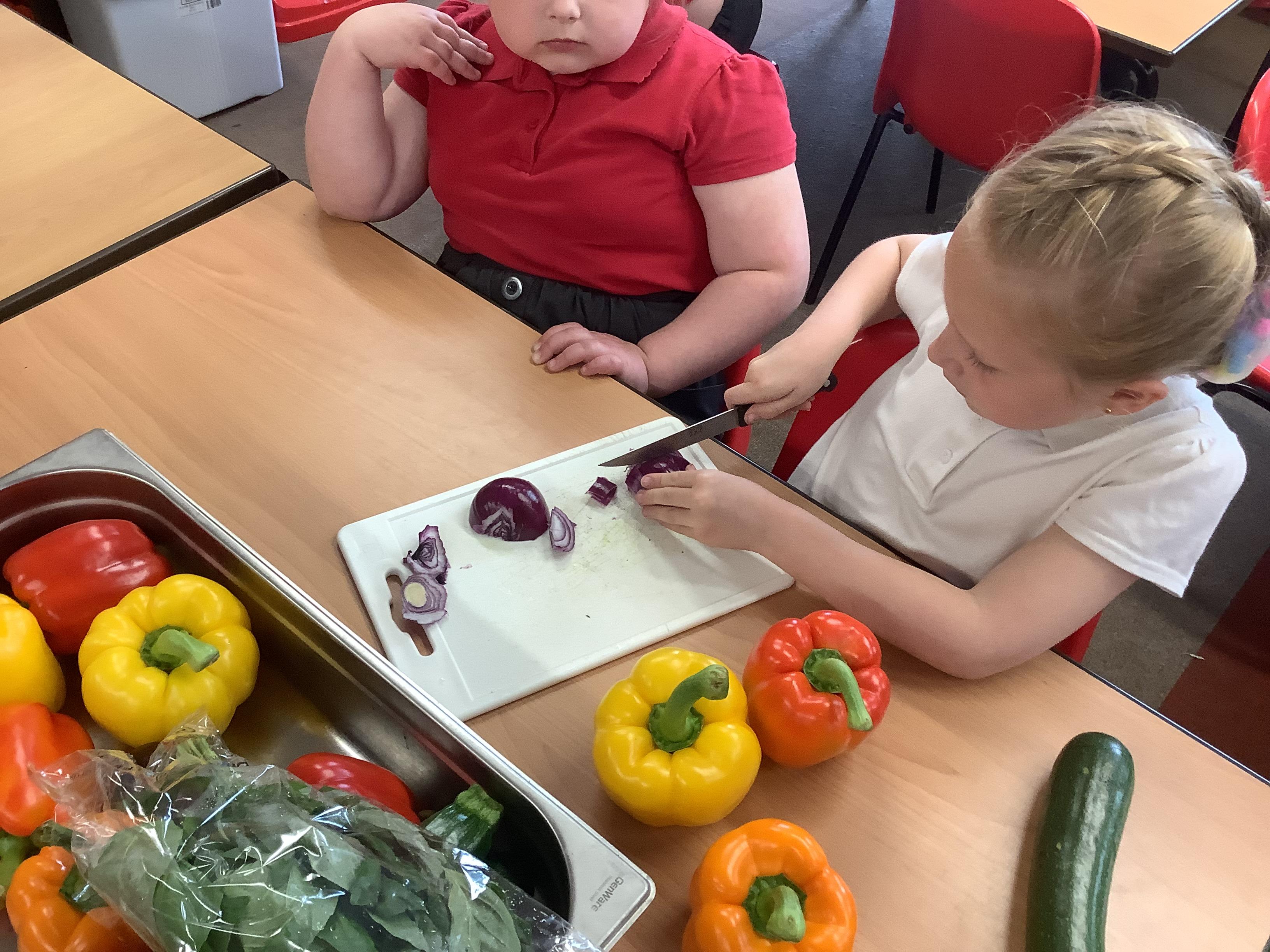 Today we got to make our healthy meal! We boiled the pasta and let it cool, then we cut all our veg into chunks, added some garlic and olive oil and roasted it in the oven. Then we combined all the ingredients with a little mayonnaise and added some basil leaves for a final touch!