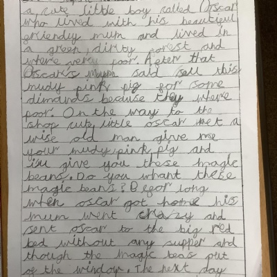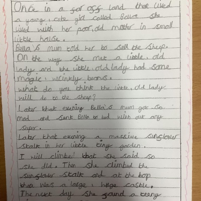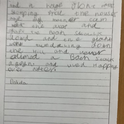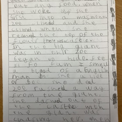 This term in English we have been looking at the features of traditional tales. We have written character and setting descriptions using the stories of Rapunzel and Jack and the Beanstalk for inspiration. Here are our own versions of Jack and the Beanstalk. We started by creating our character of the giant then used our senses to describe what it looked like at the top of the beanstalk then we planned our alternative stories. We have also been learning about how to use expanded noun phrases, subordinating and coordinating conjunctions, different sentence starters as well as adverbs in our writing to make it more interesting.