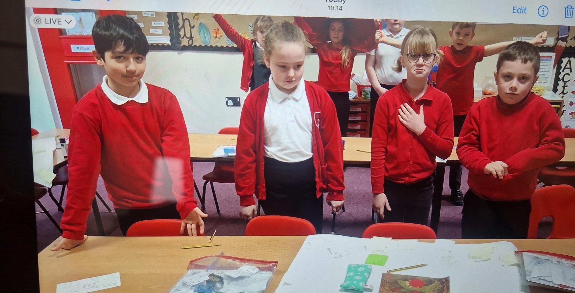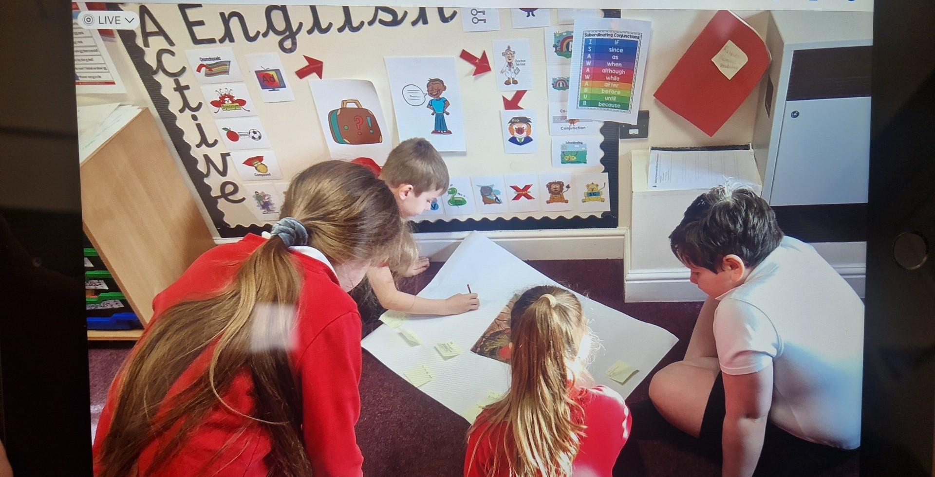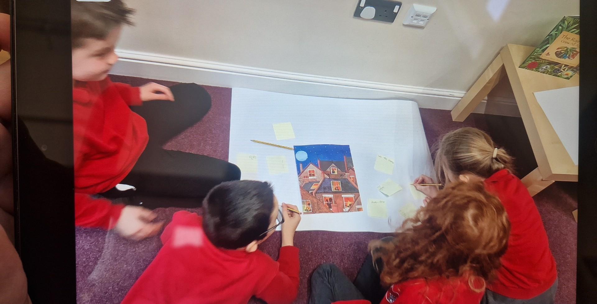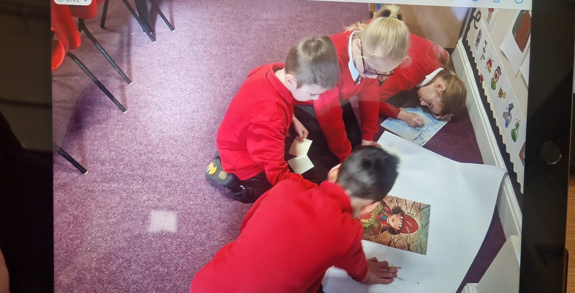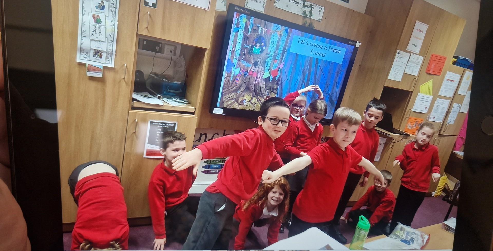 Today 20.2.24 we explored images from the book and stepped inside the pages. We thought about what we could; see, hear, touch and smell in the images and freeze framed some of the images within our groups. Here are some pictures of the children hard at work exploring our text.
