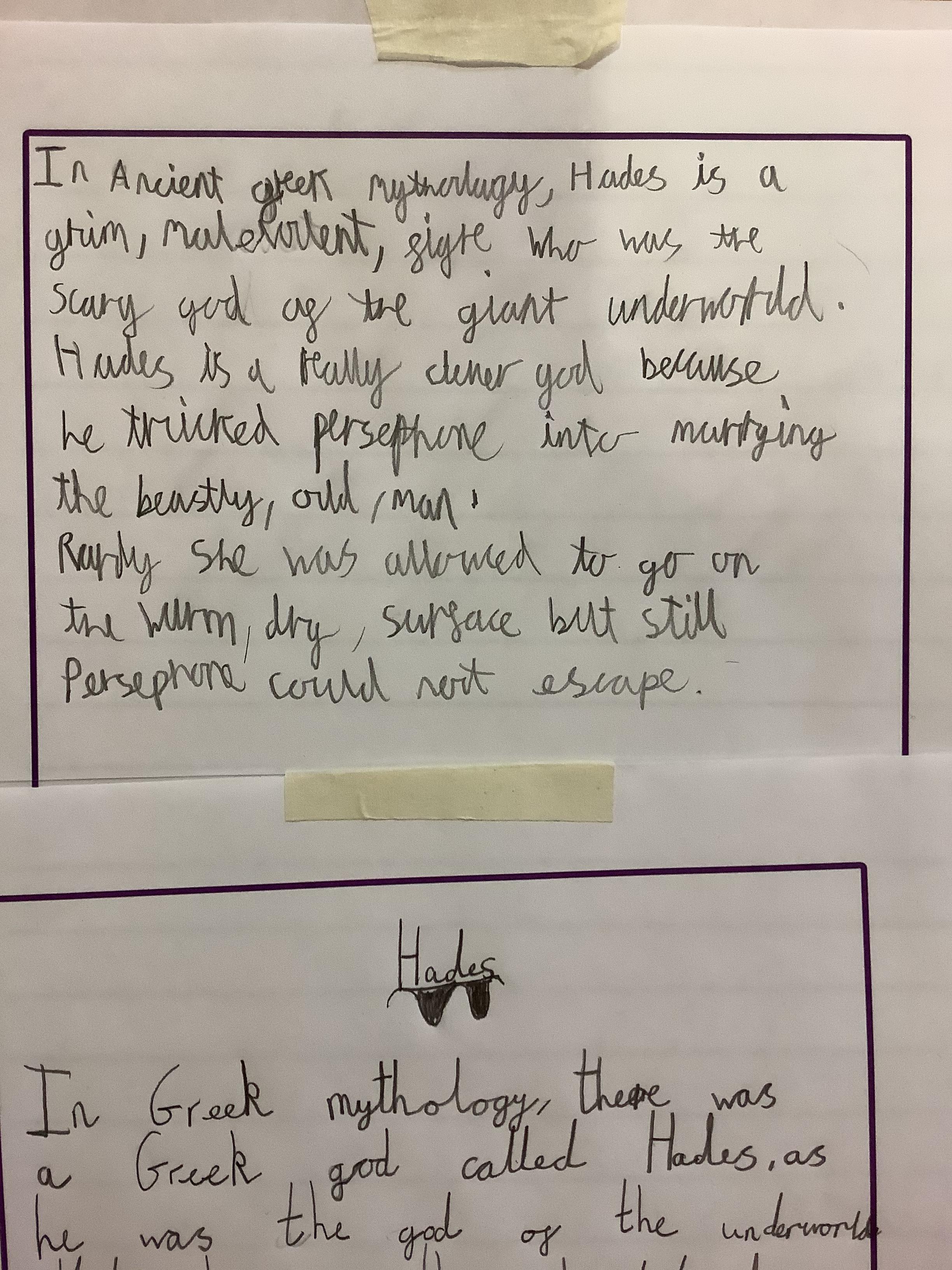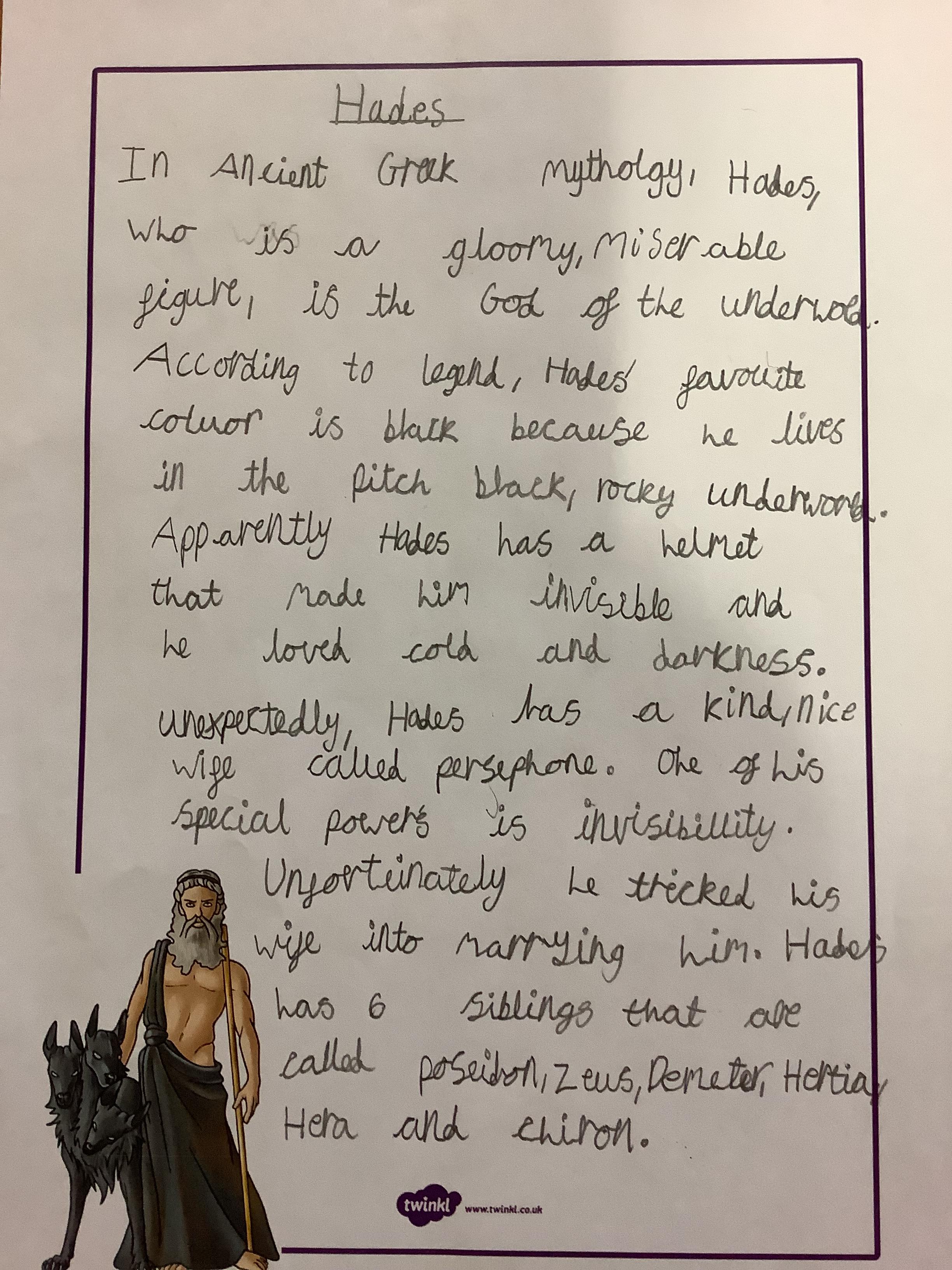 We wrote and published an information text about the Greek God Hades, here are some examples: