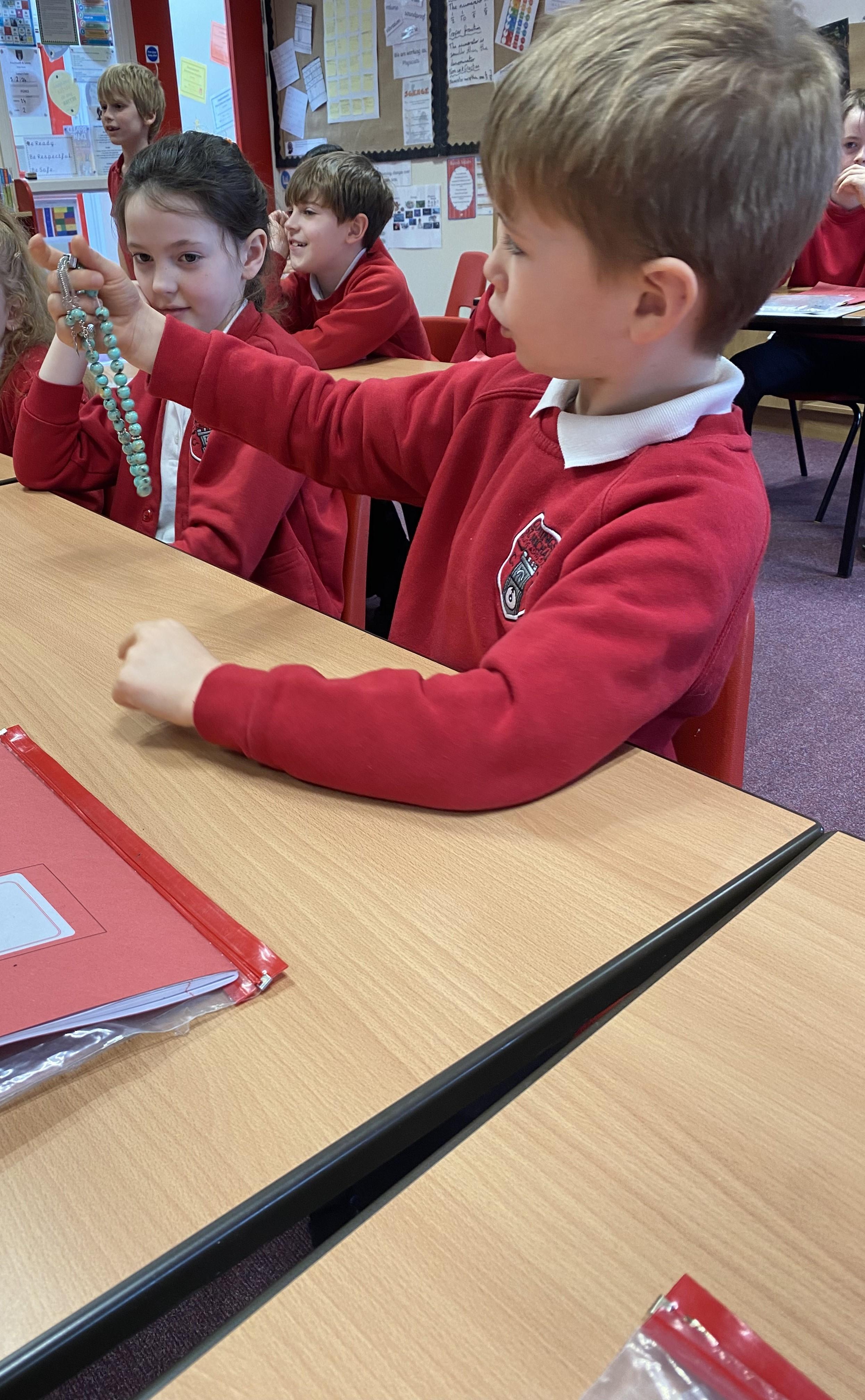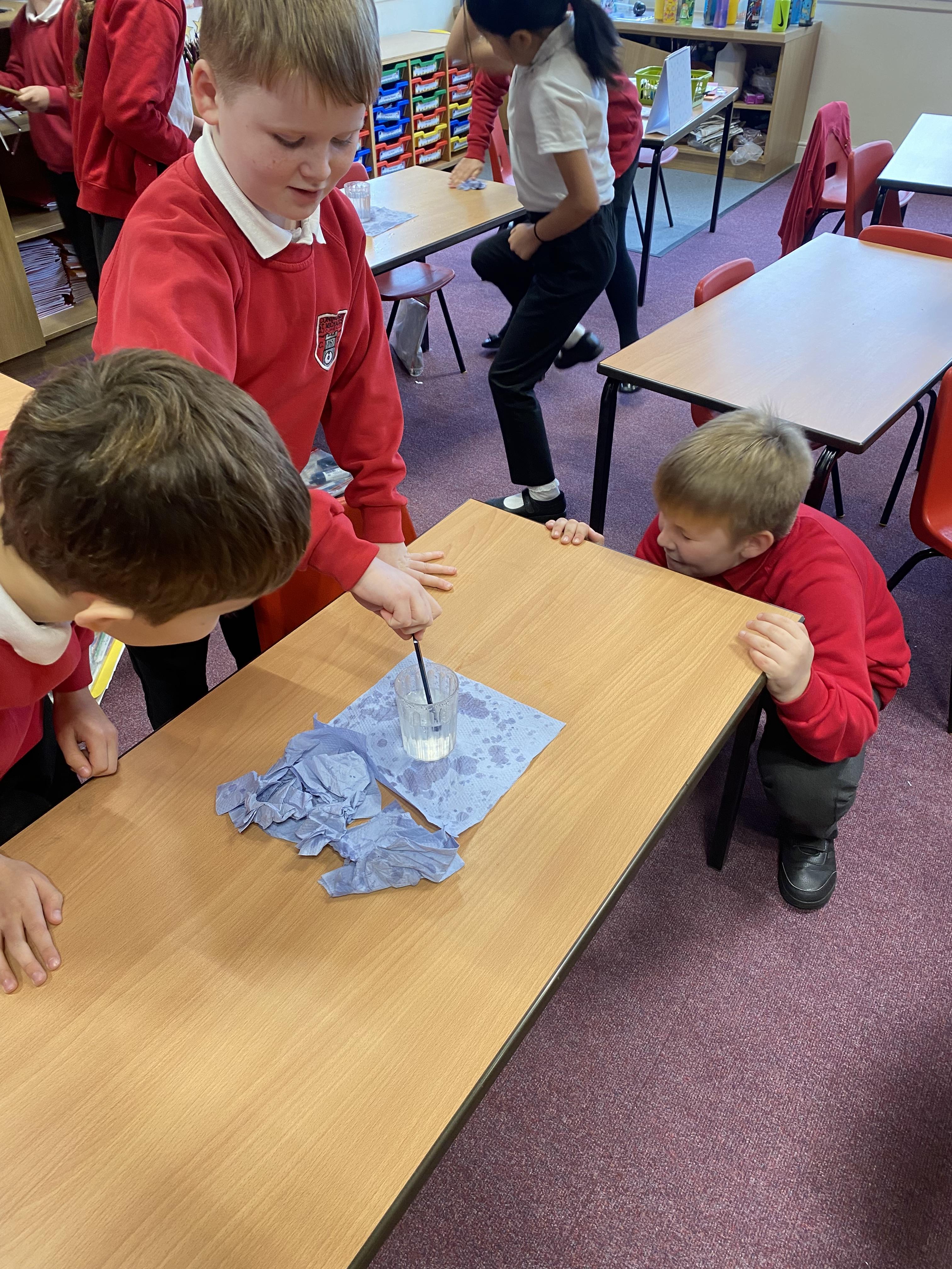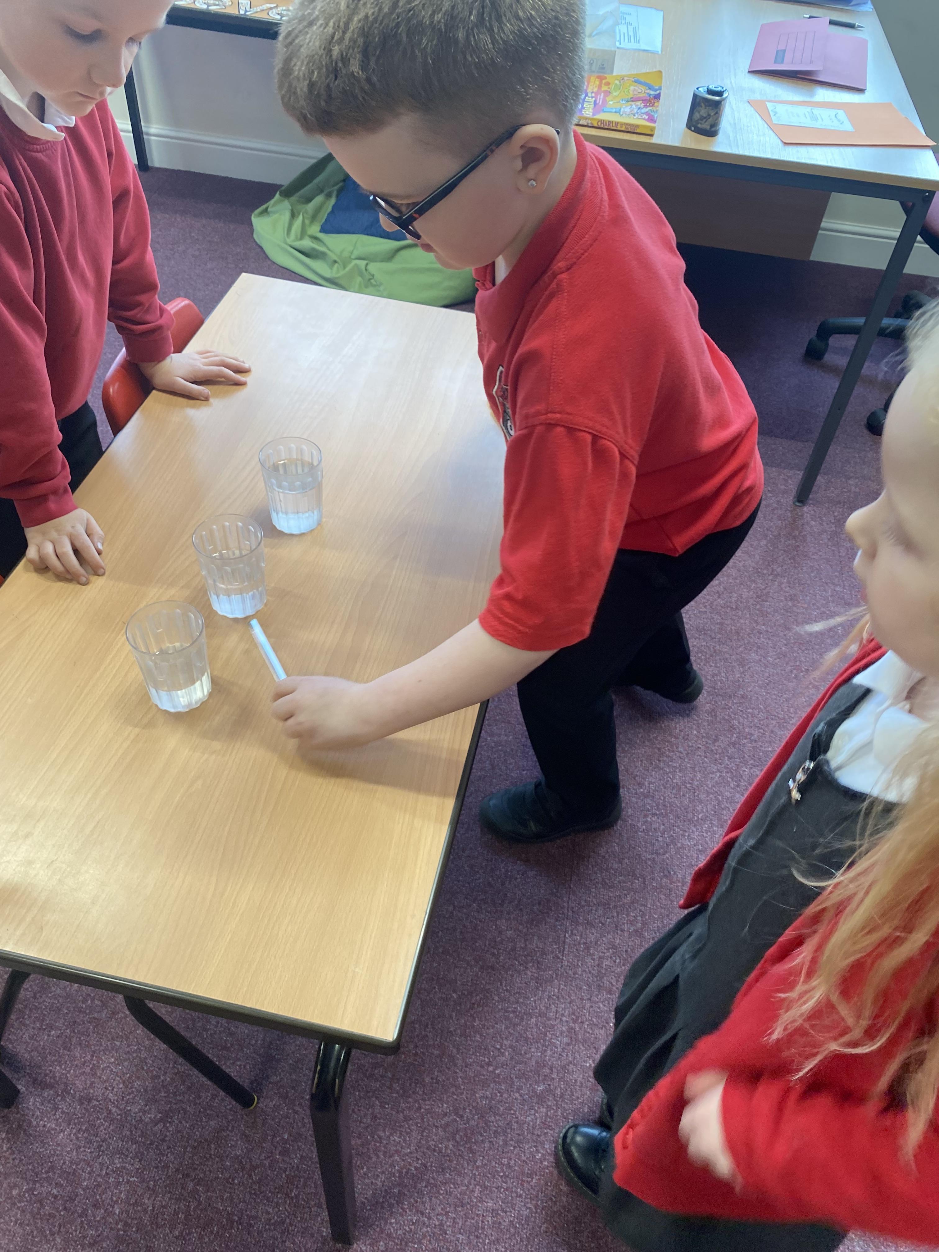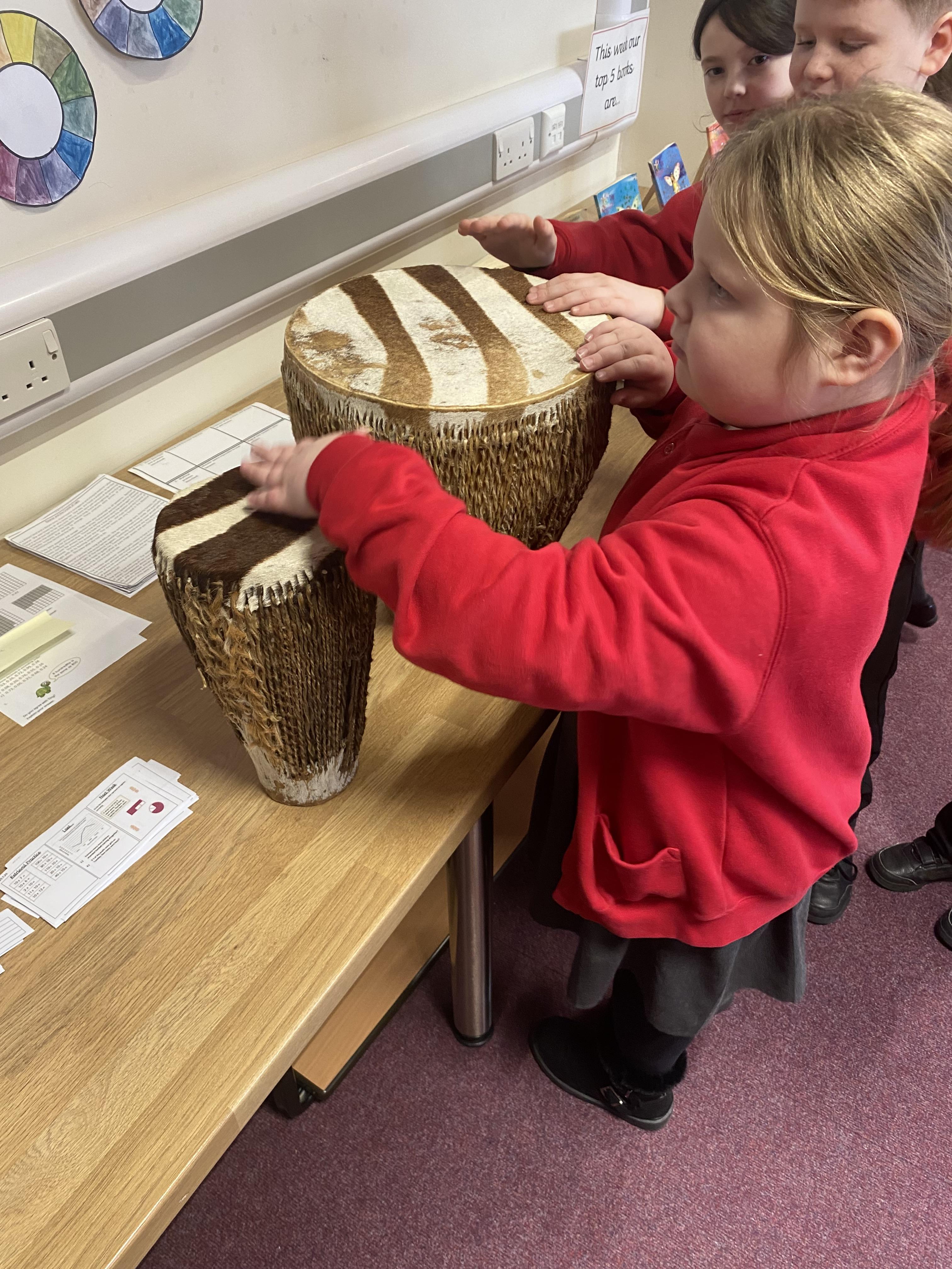 In Science, we tried to find out what changed the pitch of the sound for different producers of sound. We used elastic bands, a xylophone, drums, cups of water and a set of panpipes. We found out that:
