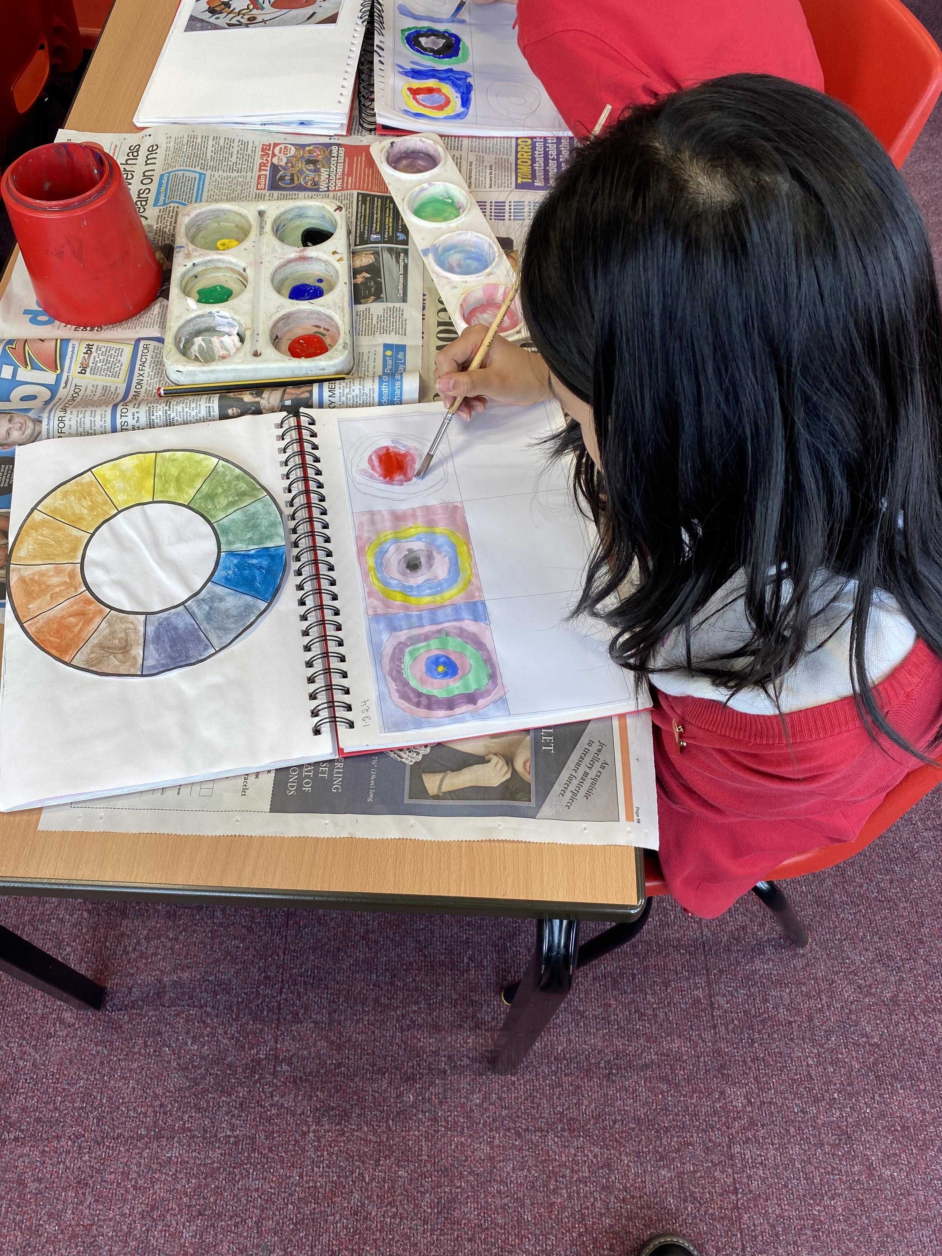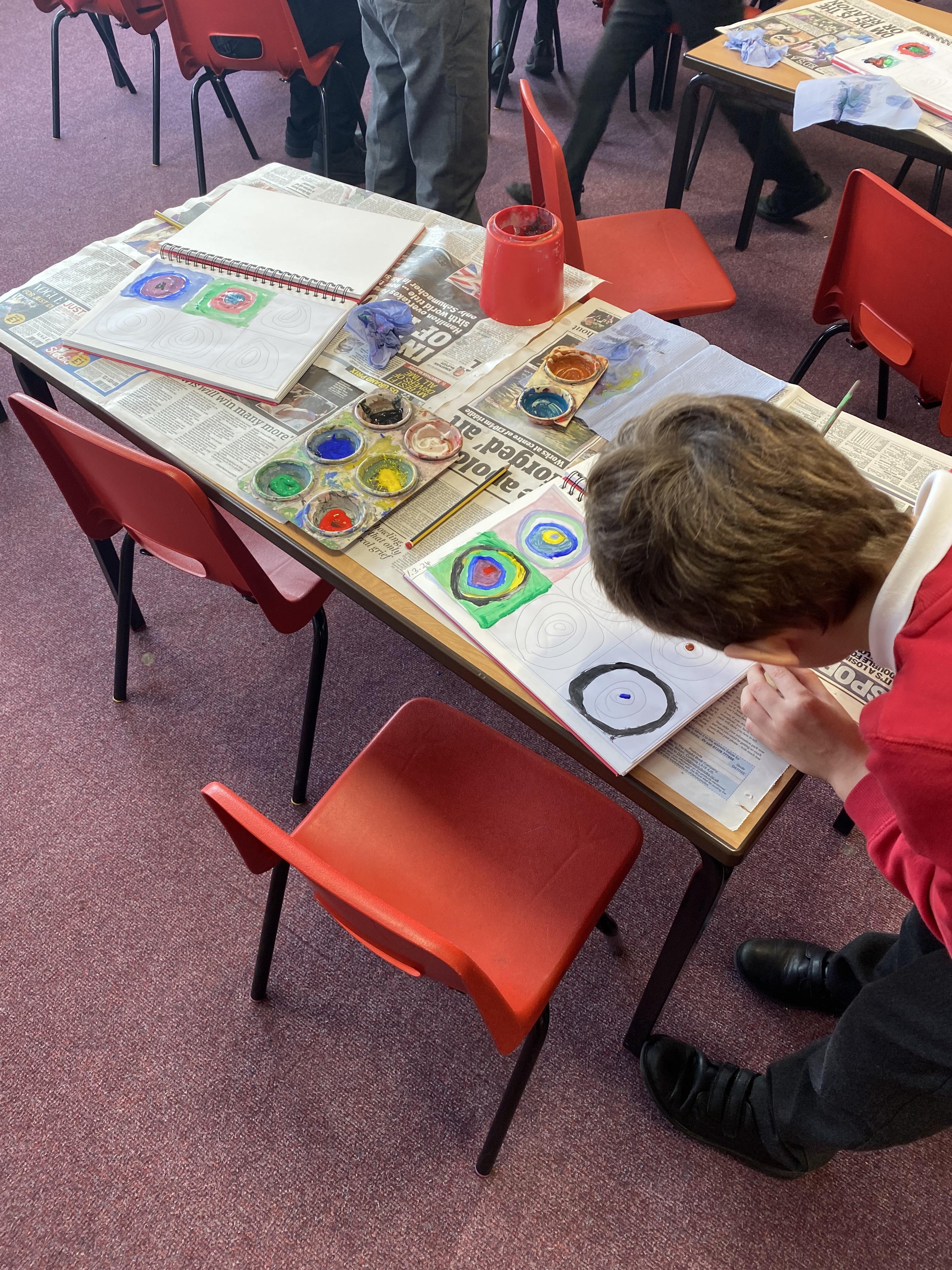 In our Art lesson we studied a piece of art by Wassily Kandinsky called "Squares with Concentric Circles (1913). We then tried to create our own version of this piece of art.