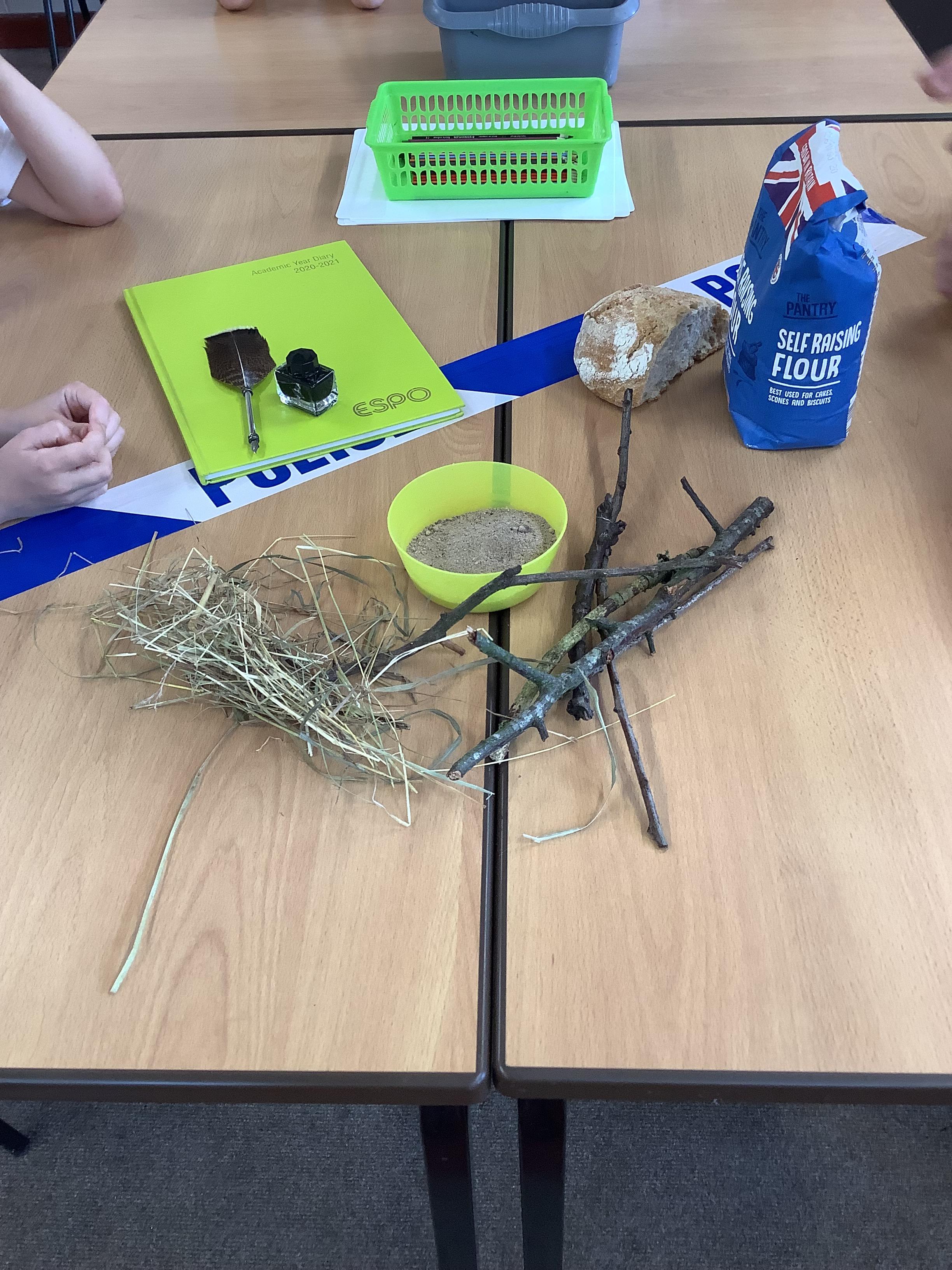 In History this term we are learning about The Great Fire of London. We started by investigating the significance of all the different items. A diary, ink and a quill, flour and bread, ash, wood and straw.