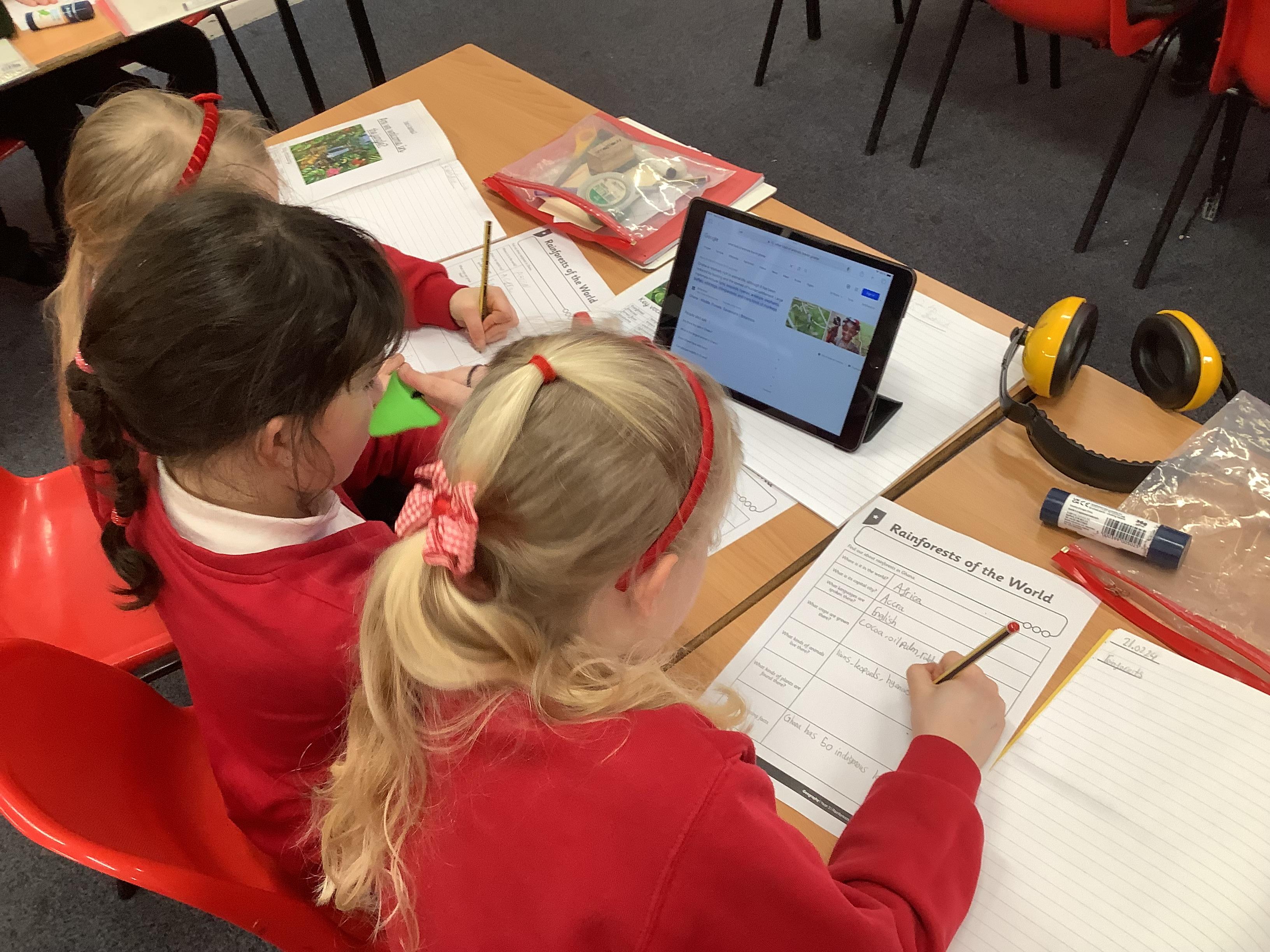 We have been learning about rainforests. We have researched in groups specific rainforest and their climate to present in groups.